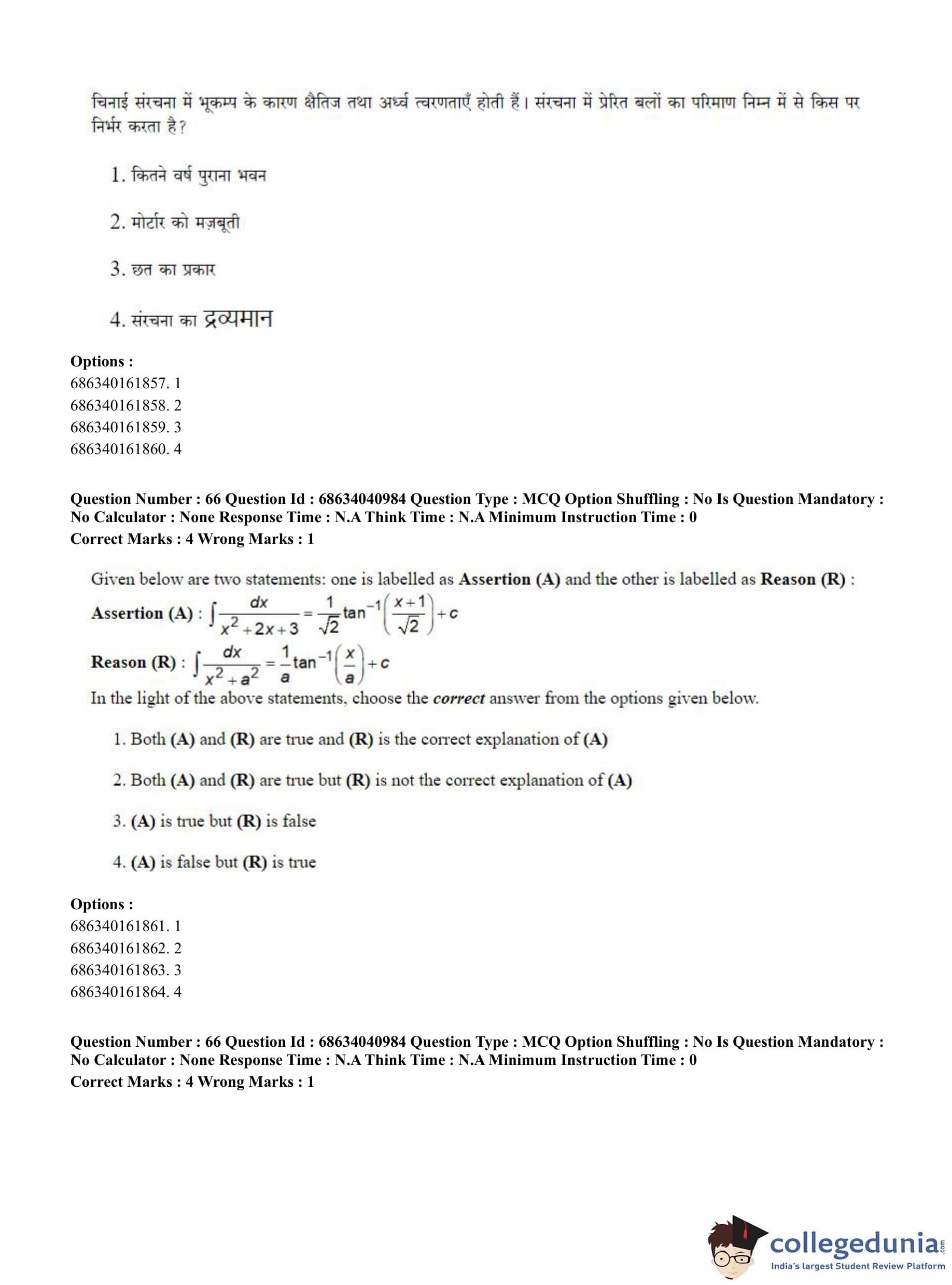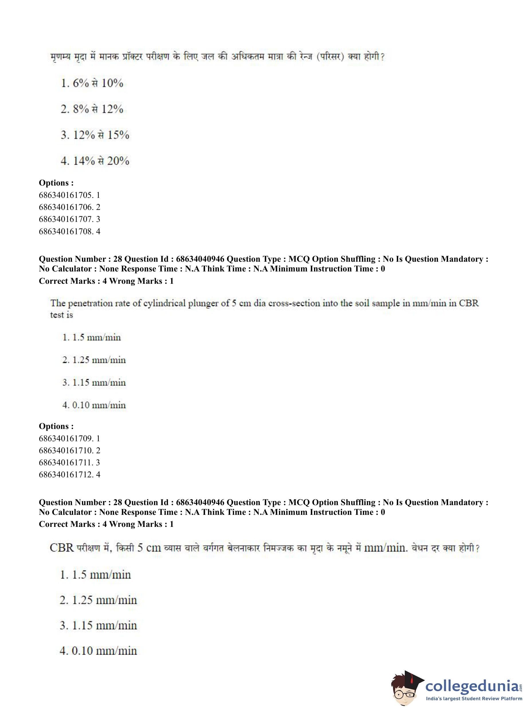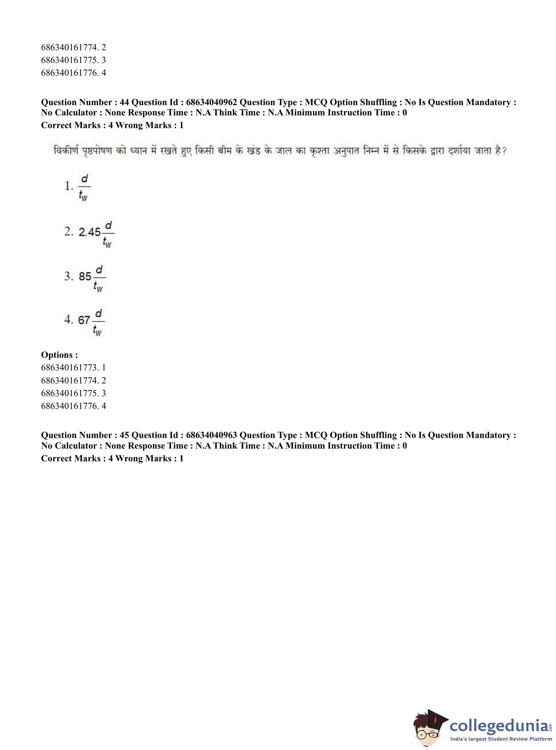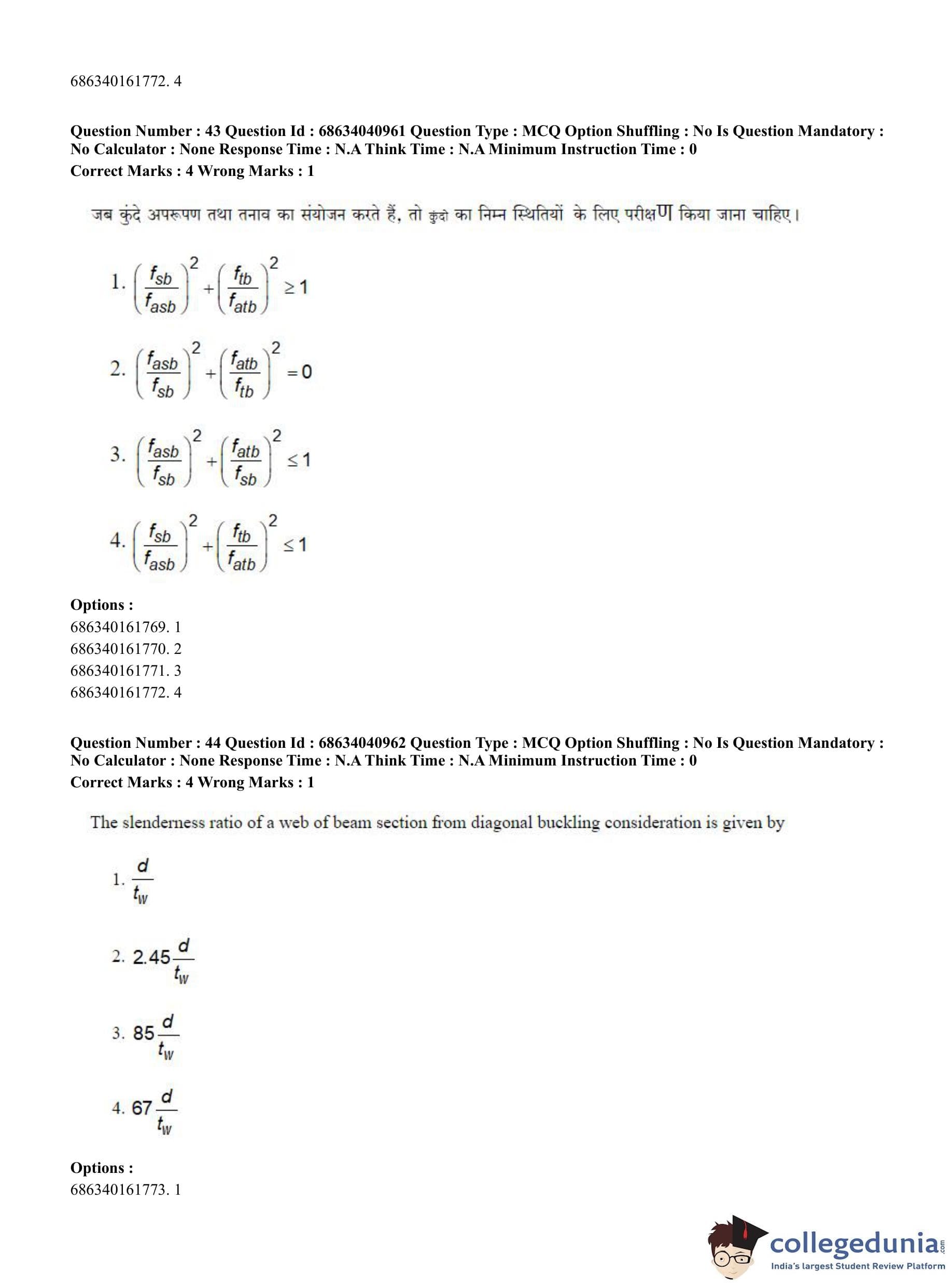 CUET PG 2023 Civil, Structural and Transport Engg Question Paper in Hindi (June 30 - Shift 3)