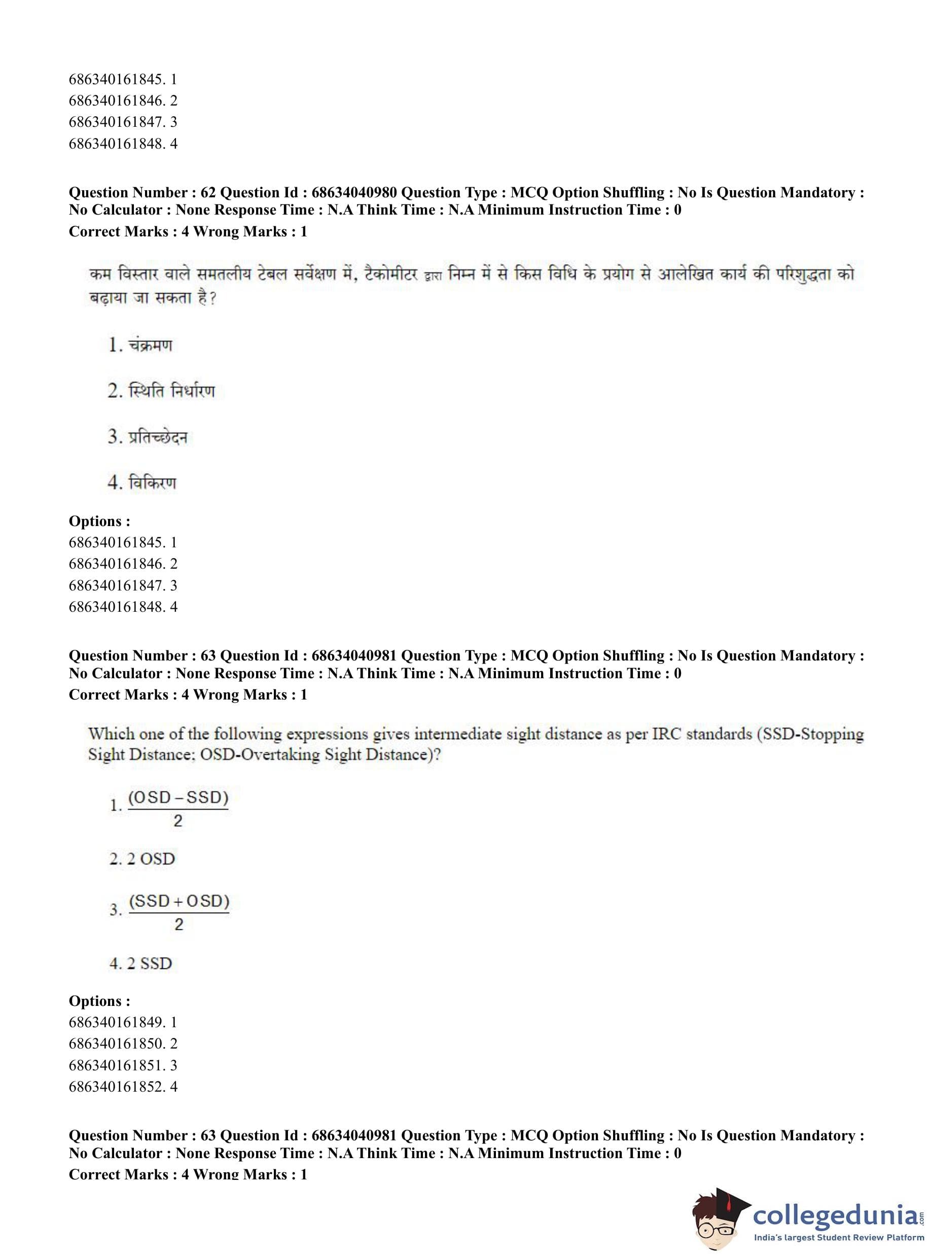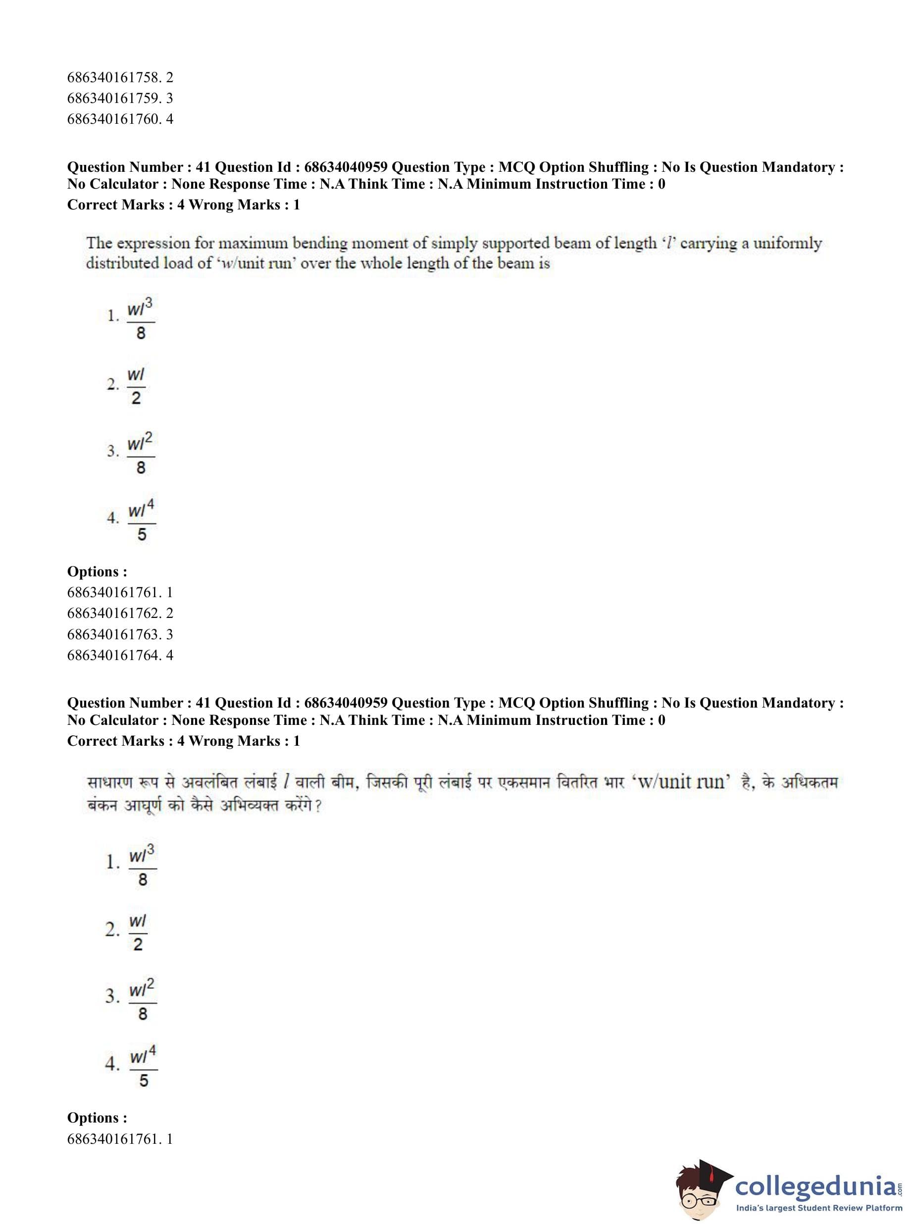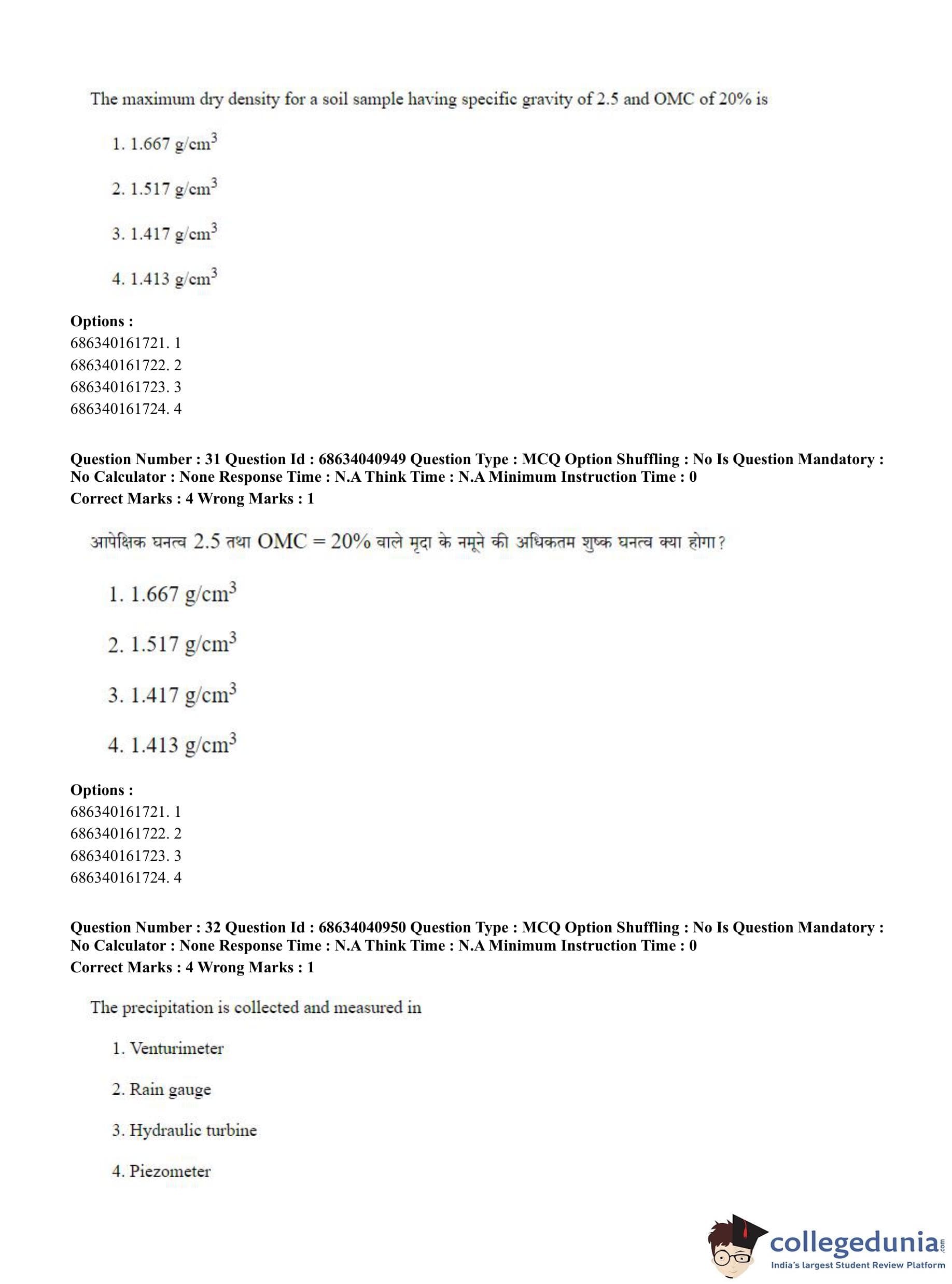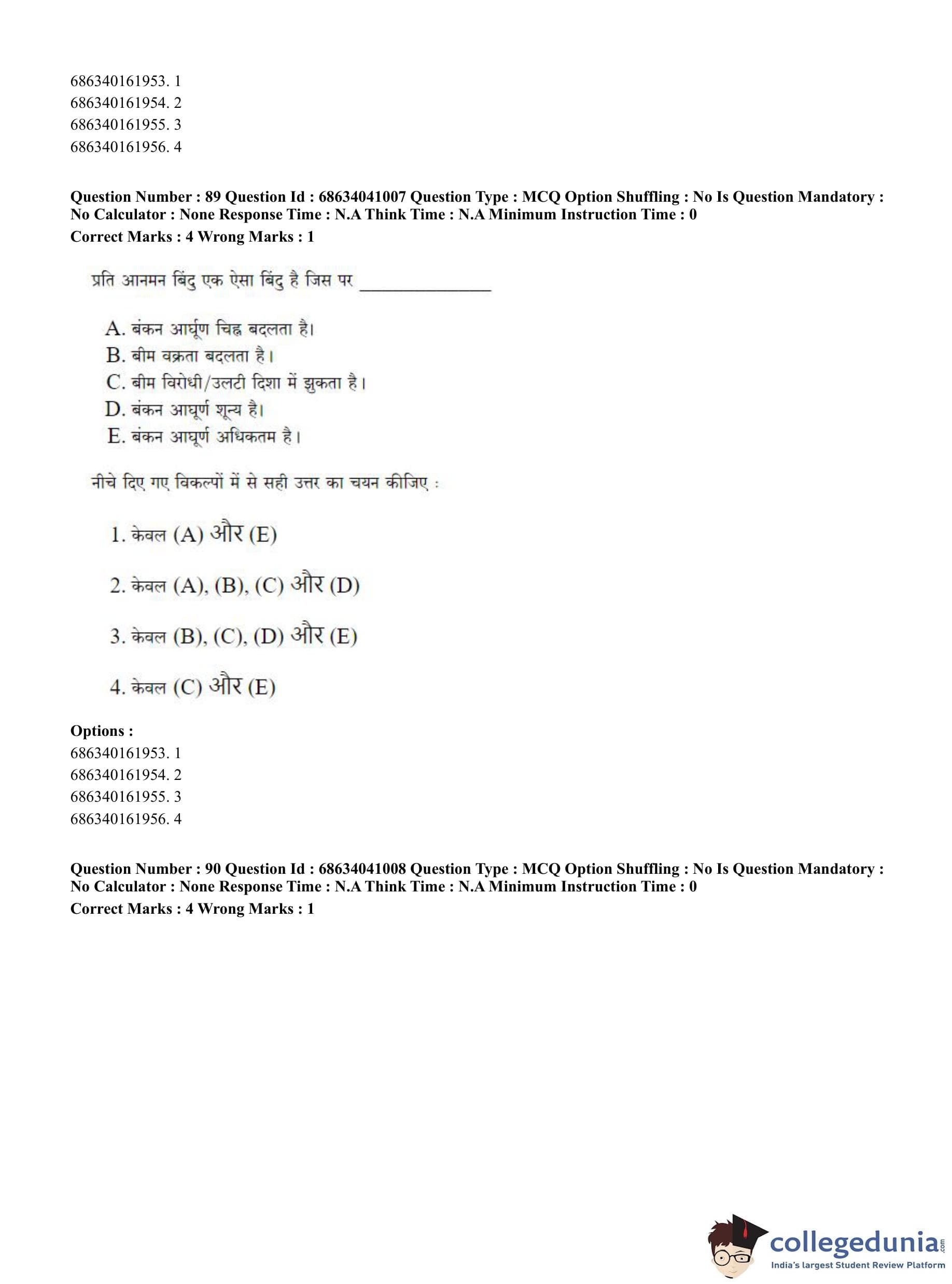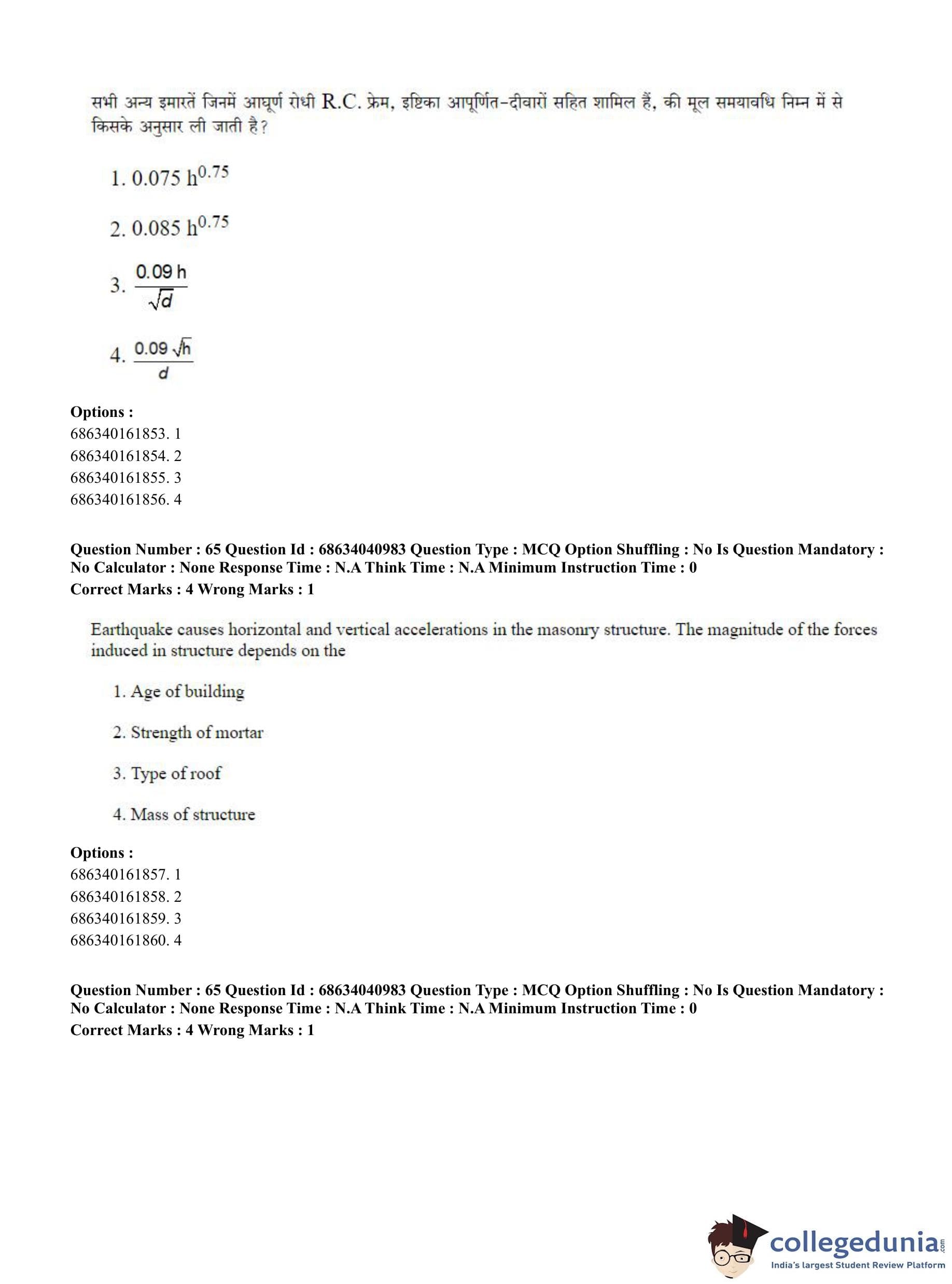 CUET PG 2023 Civil, Structural and Transport Engg Question Paper in Hindi (June 30 - Shift 3)