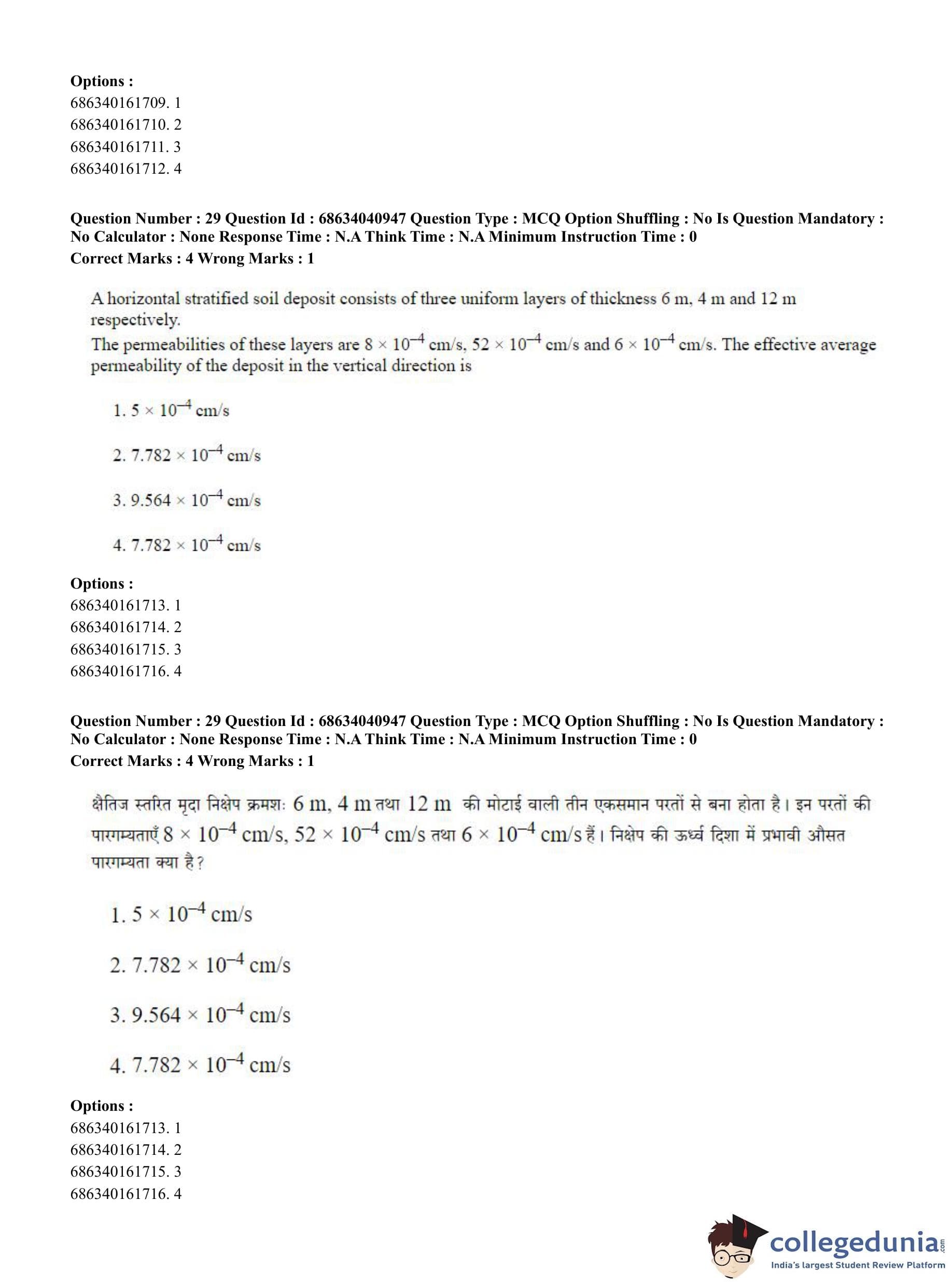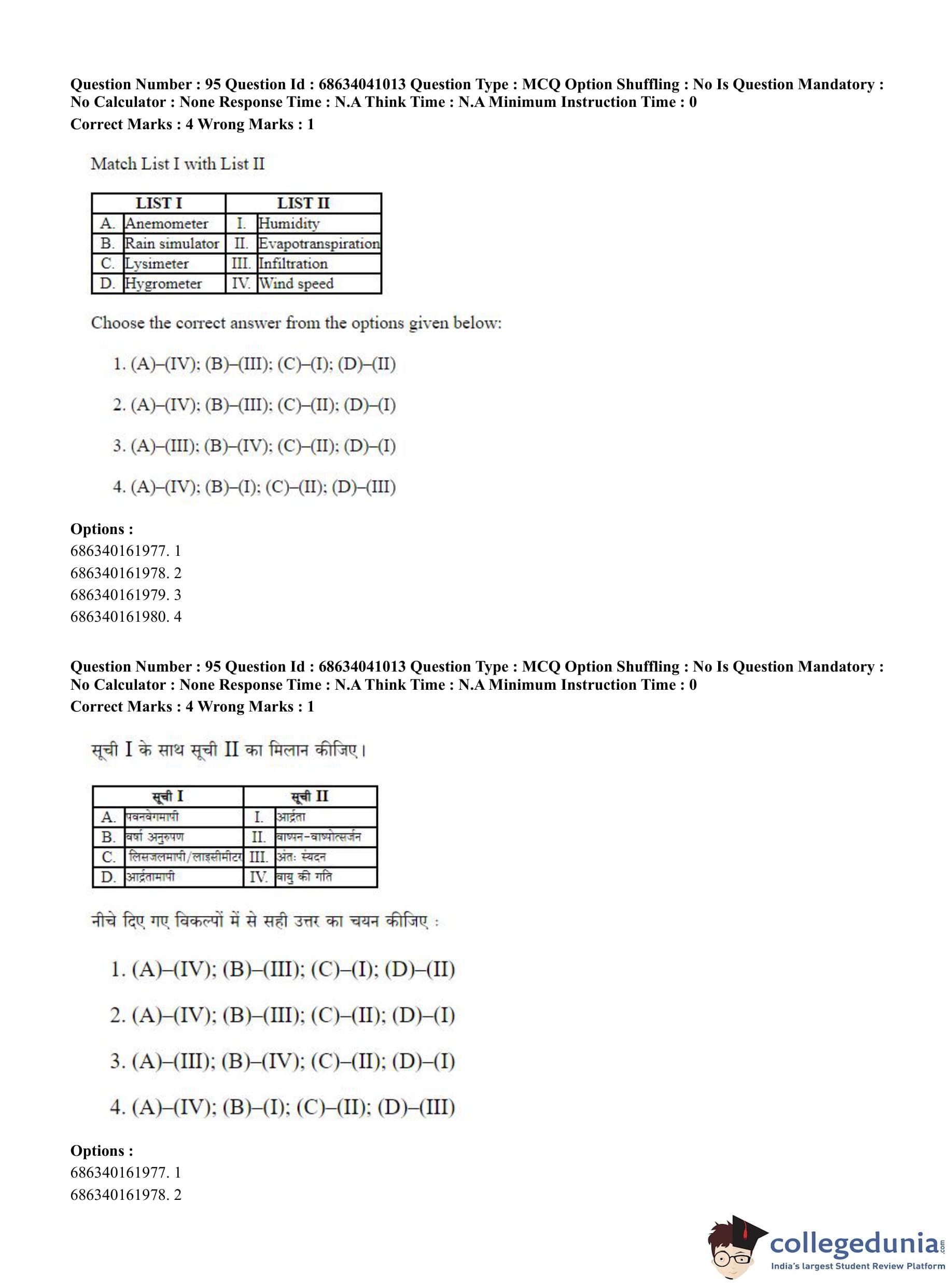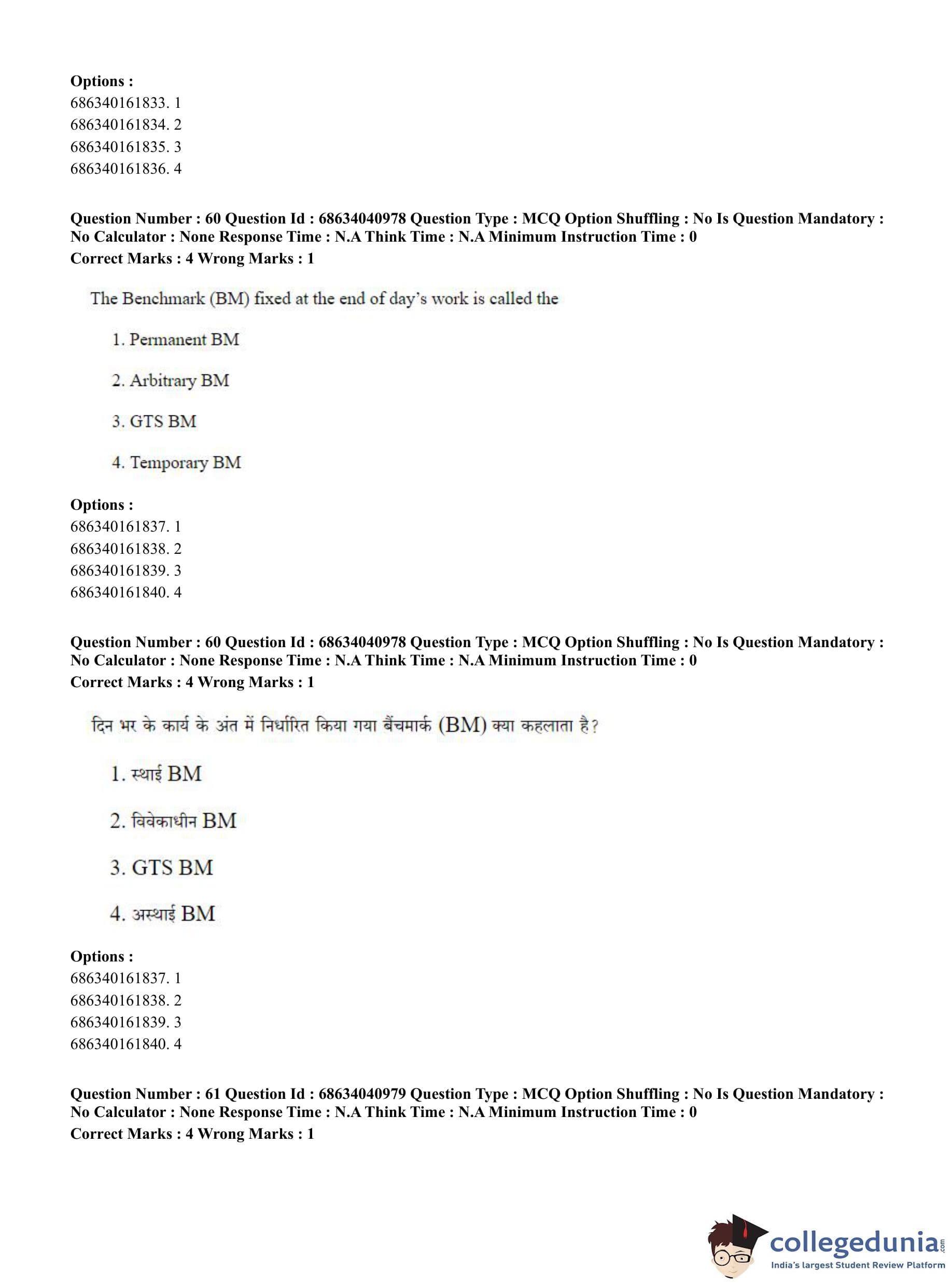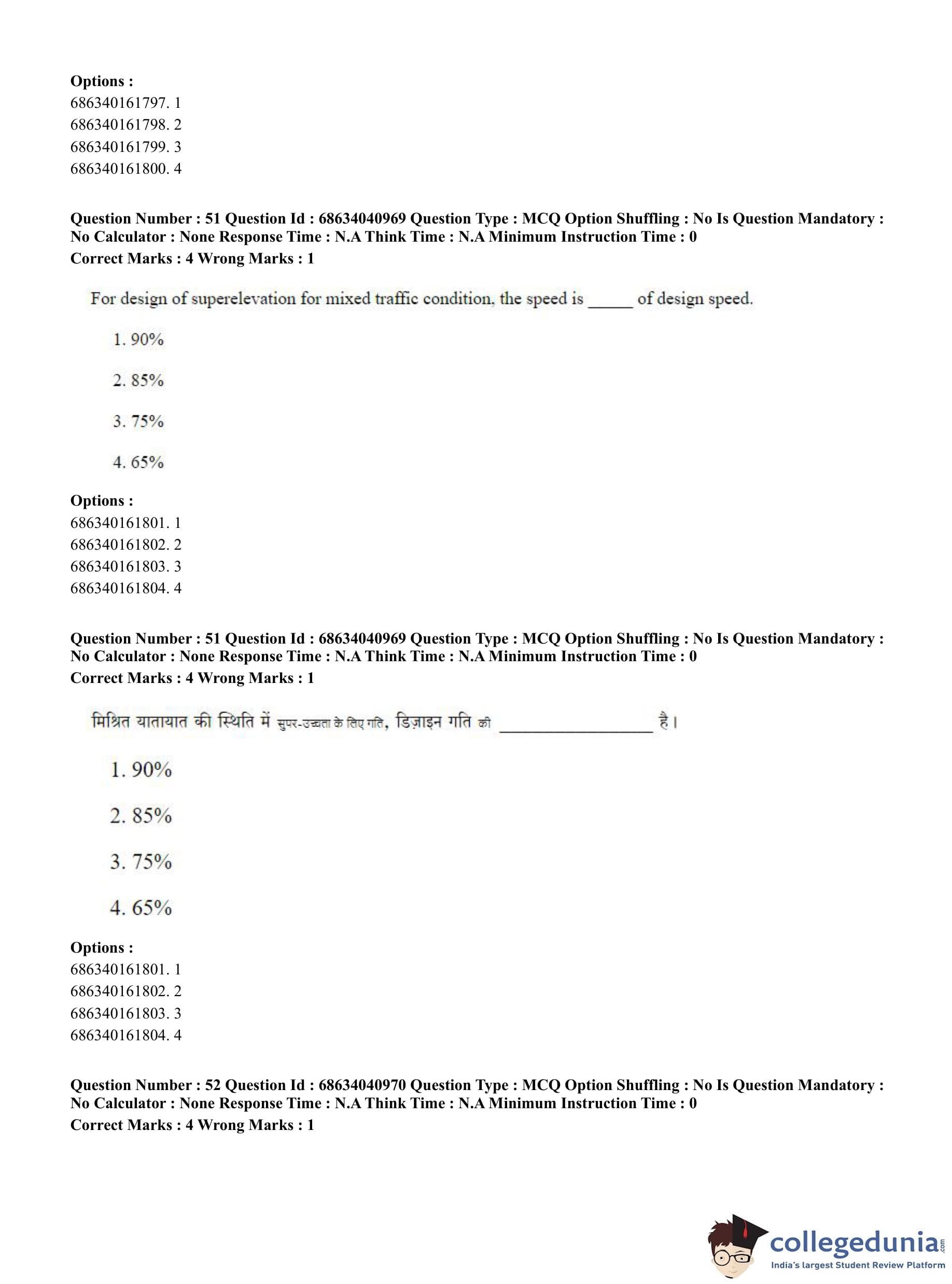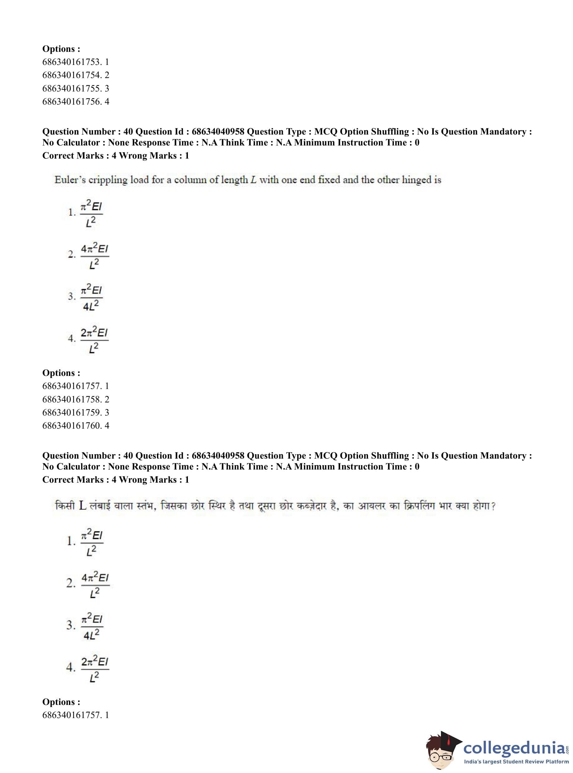 CUET PG 2023 Civil, Structural and Transport Engg Question Paper in Hindi (June 30 - Shift 3)