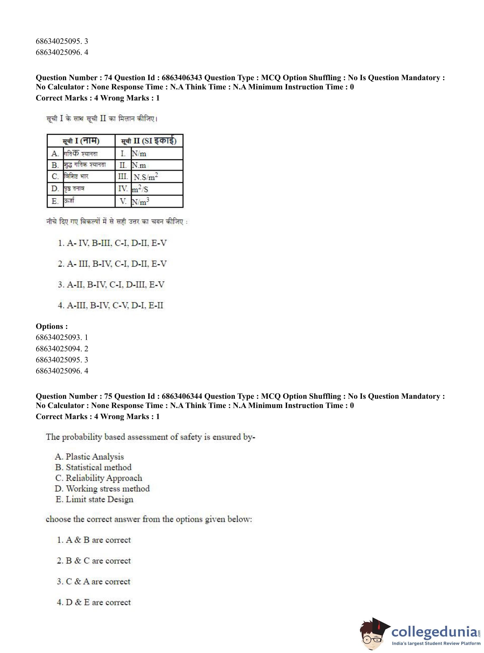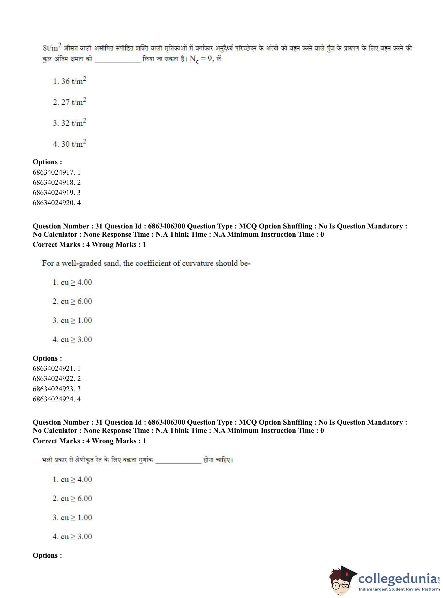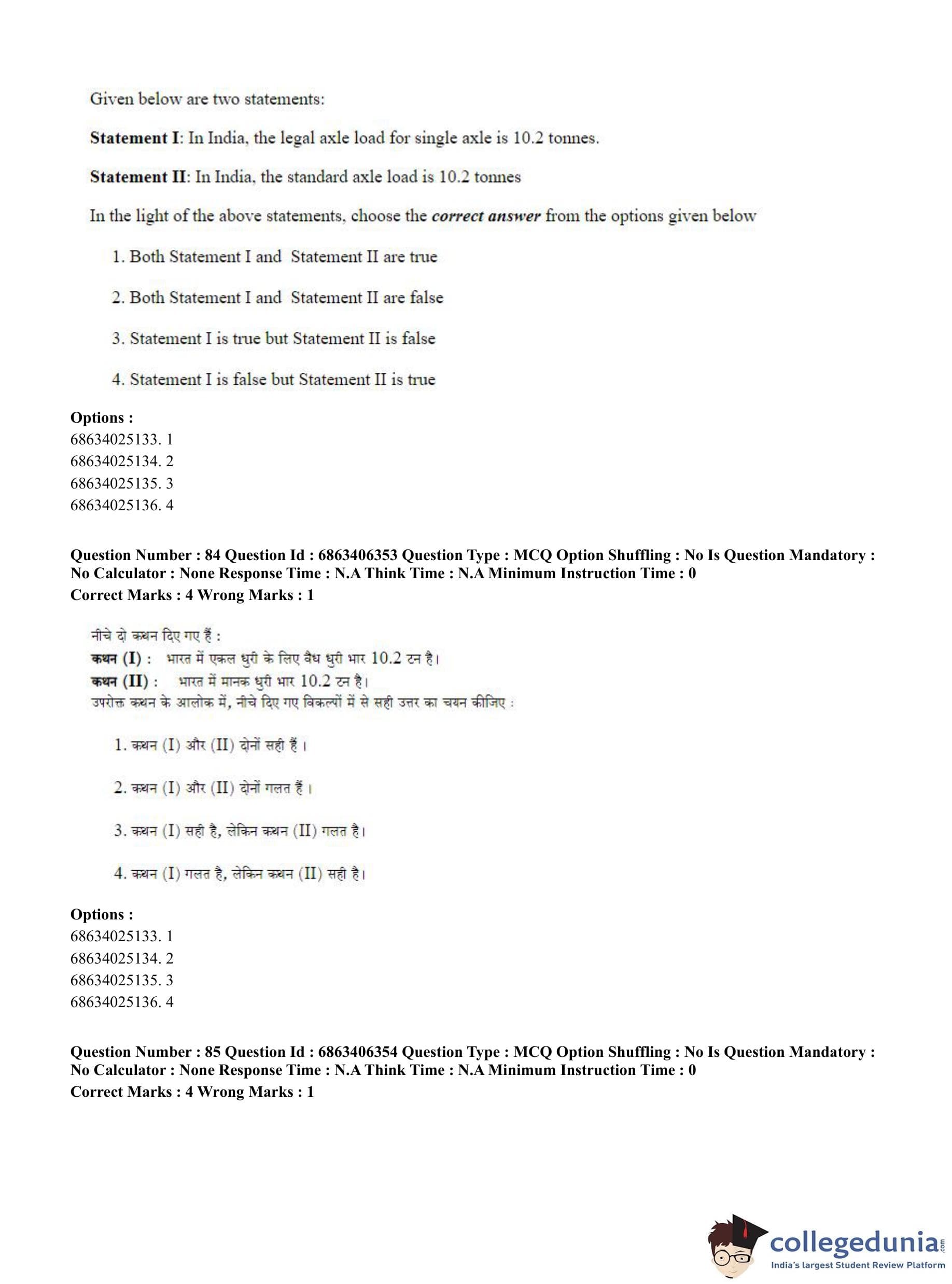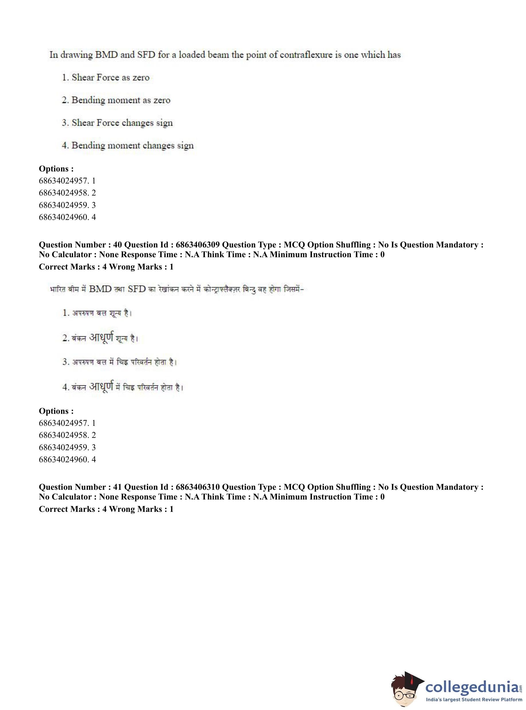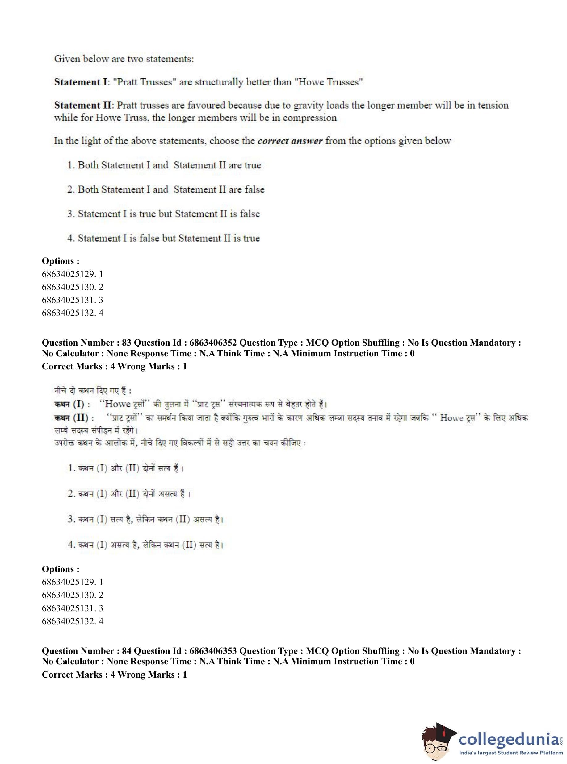 CUET PG 2023 Civil, Structural and Transport Engg Question Paper in Hindi (June 5 - Shift 3)