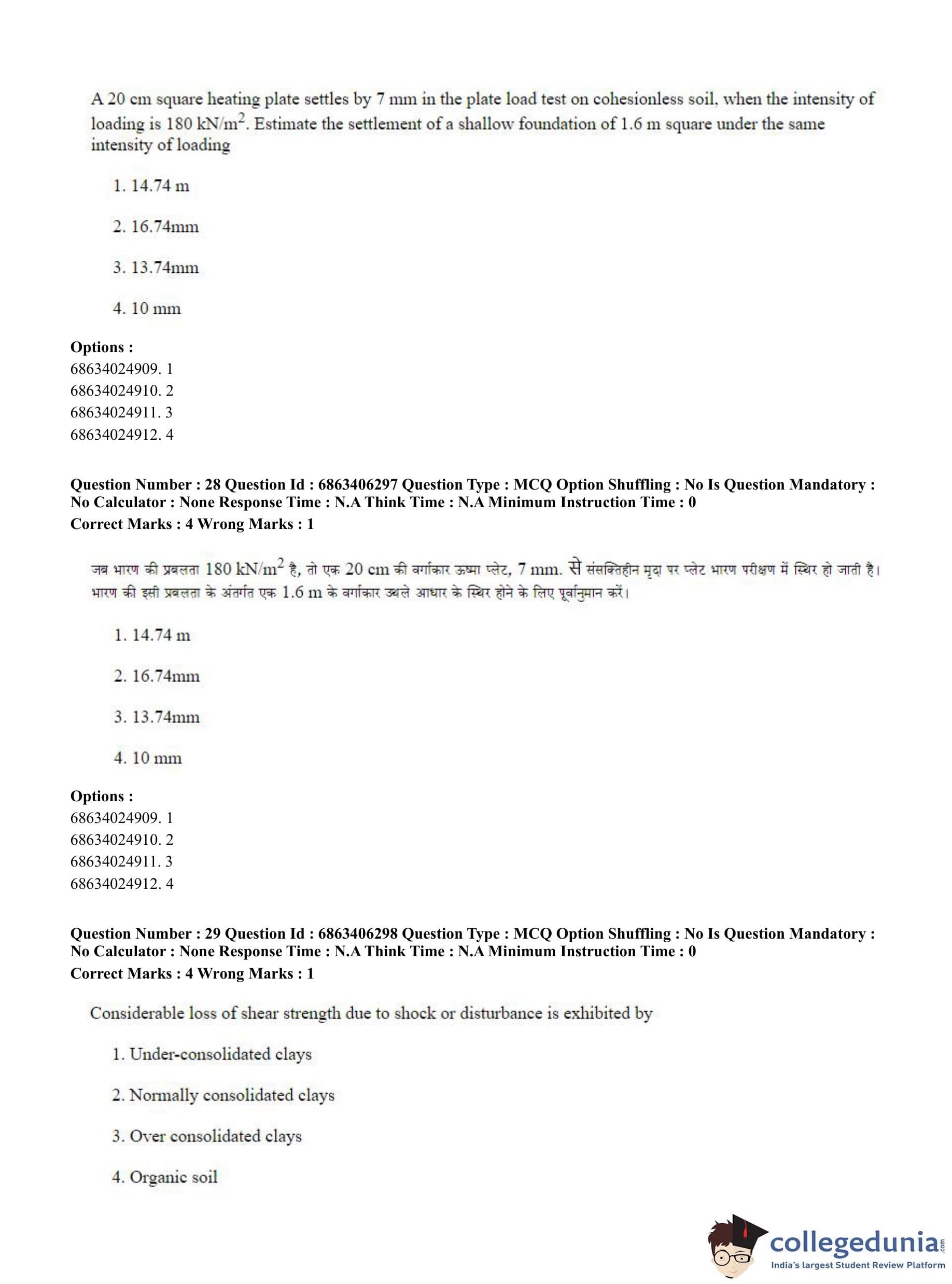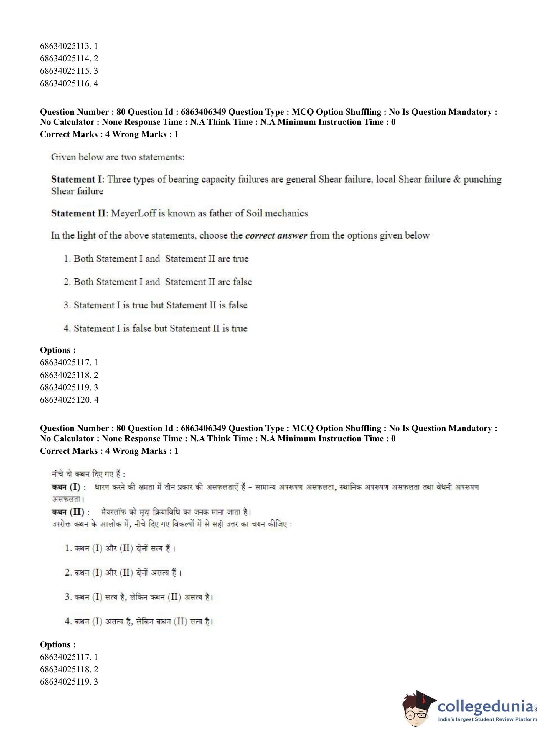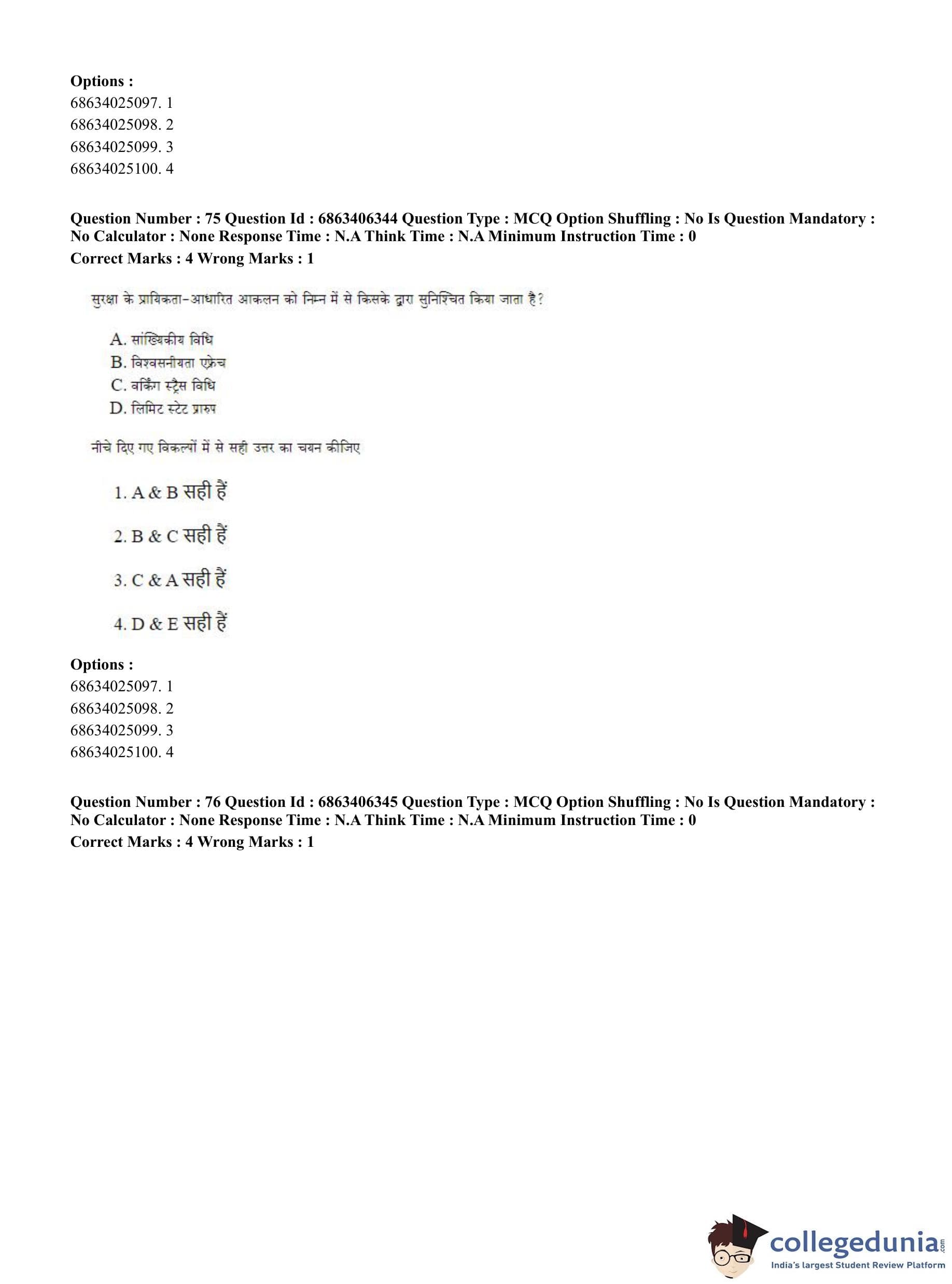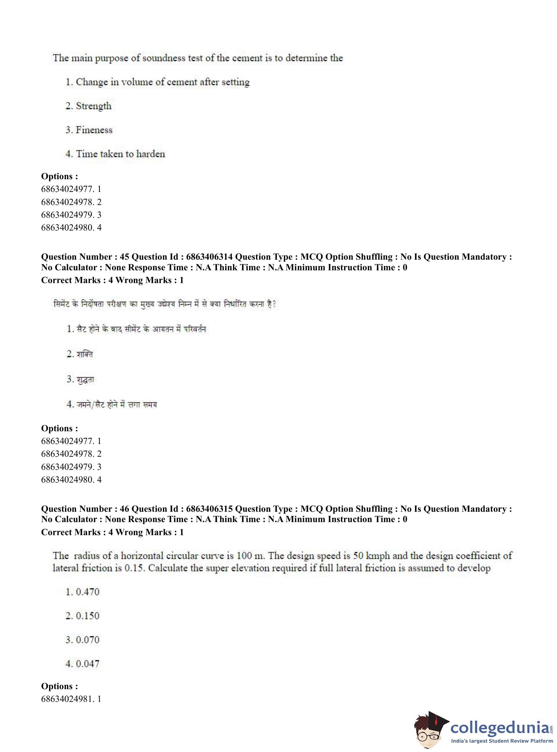 CUET PG 2023 Civil, Structural and Transport Engg Question Paper in Hindi (June 5 - Shift 3)