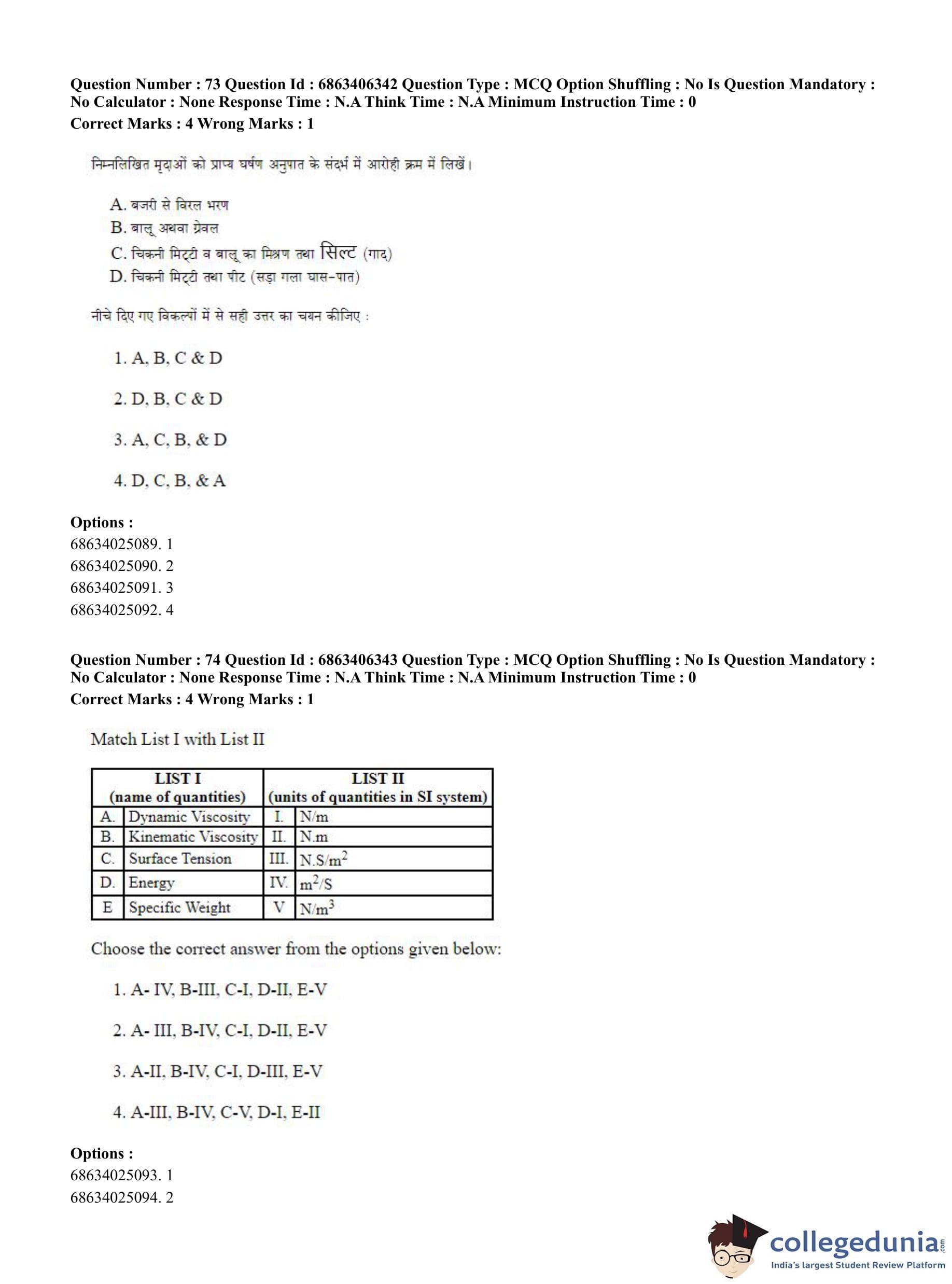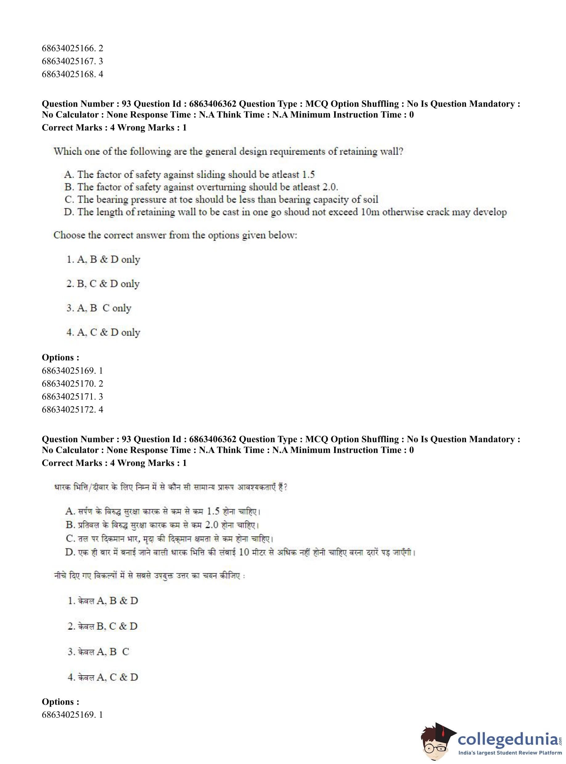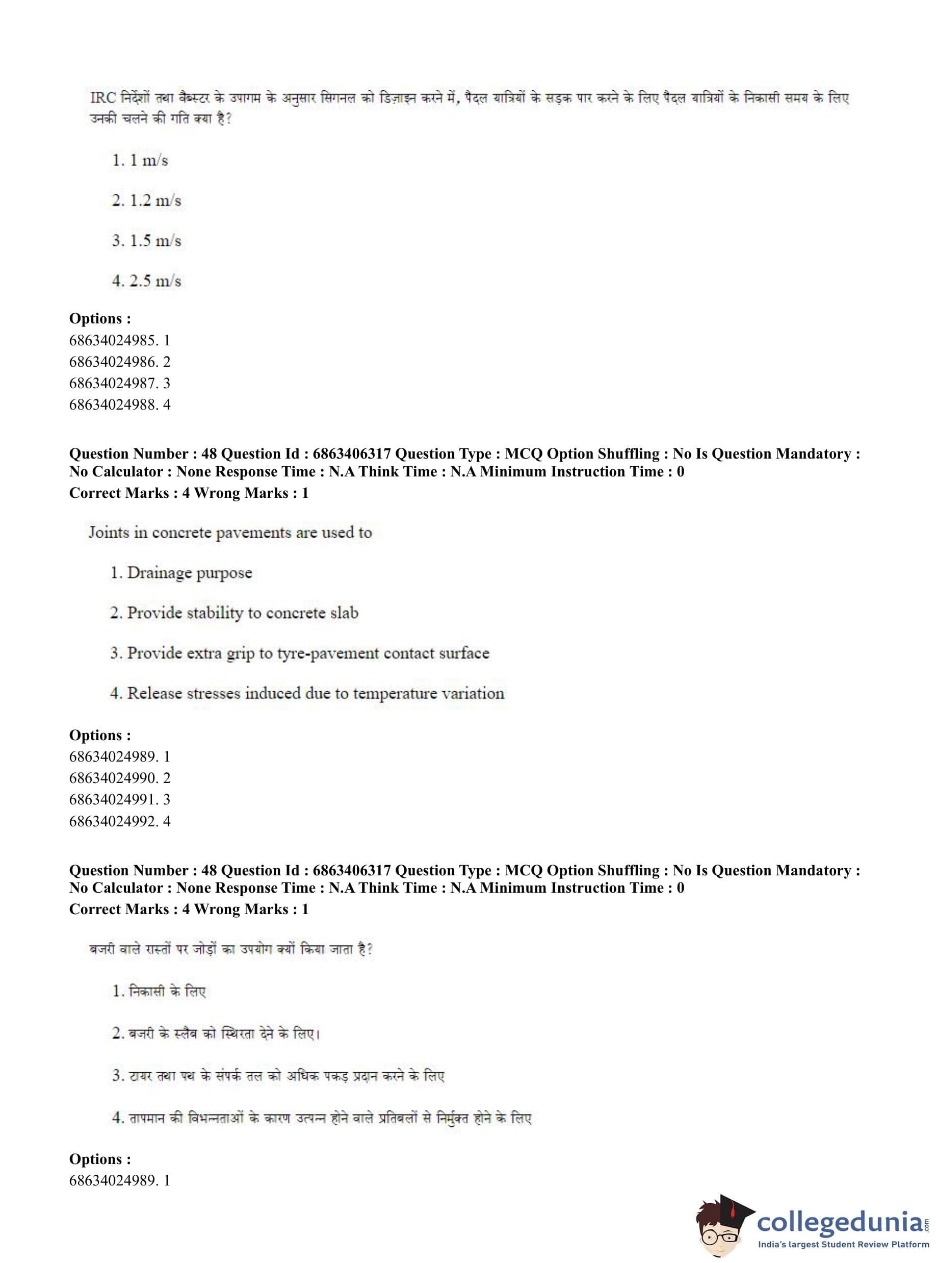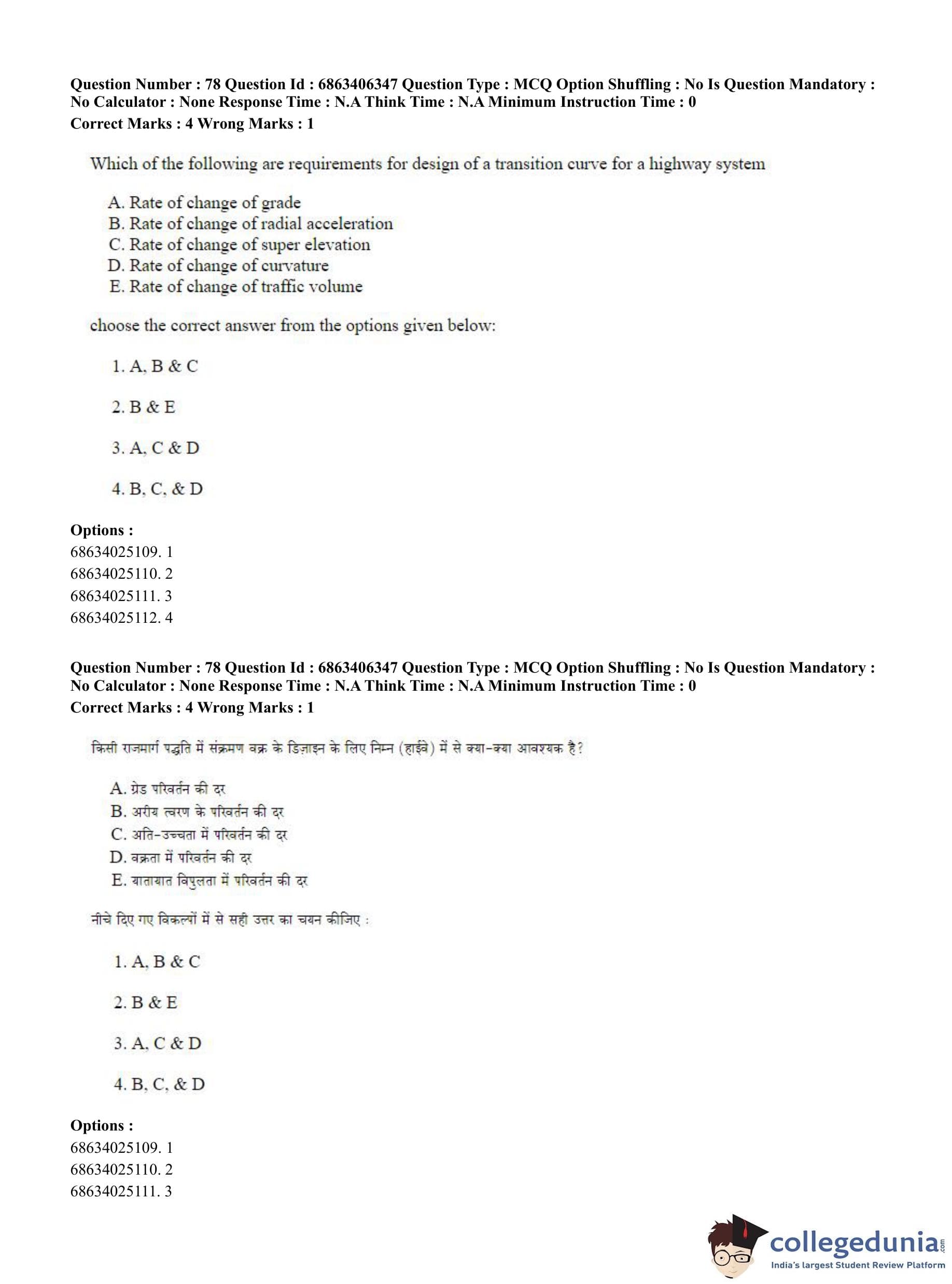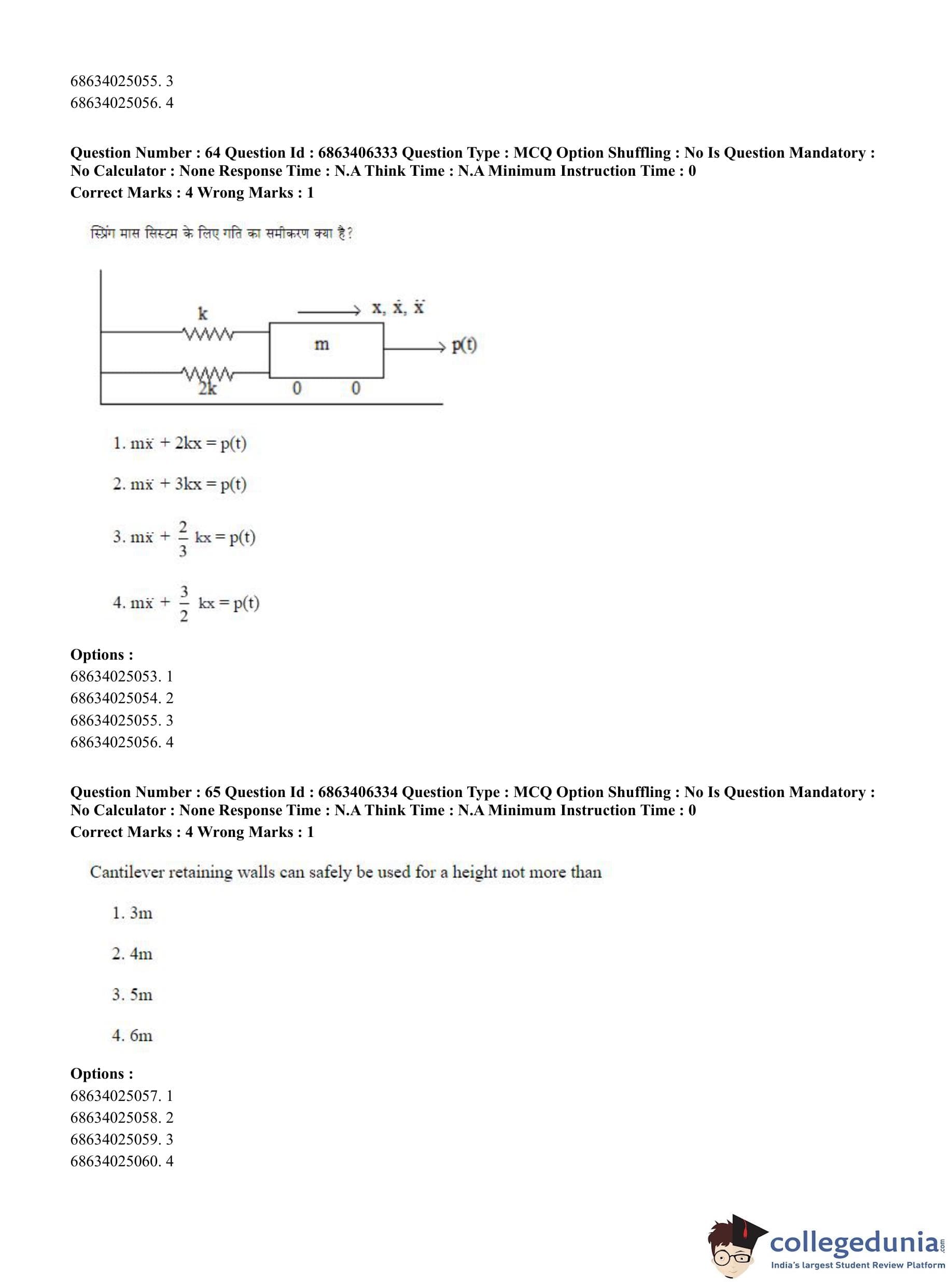 CUET PG 2023 Civil, Structural and Transport Engg Question Paper in Hindi (June 5 - Shift 3)