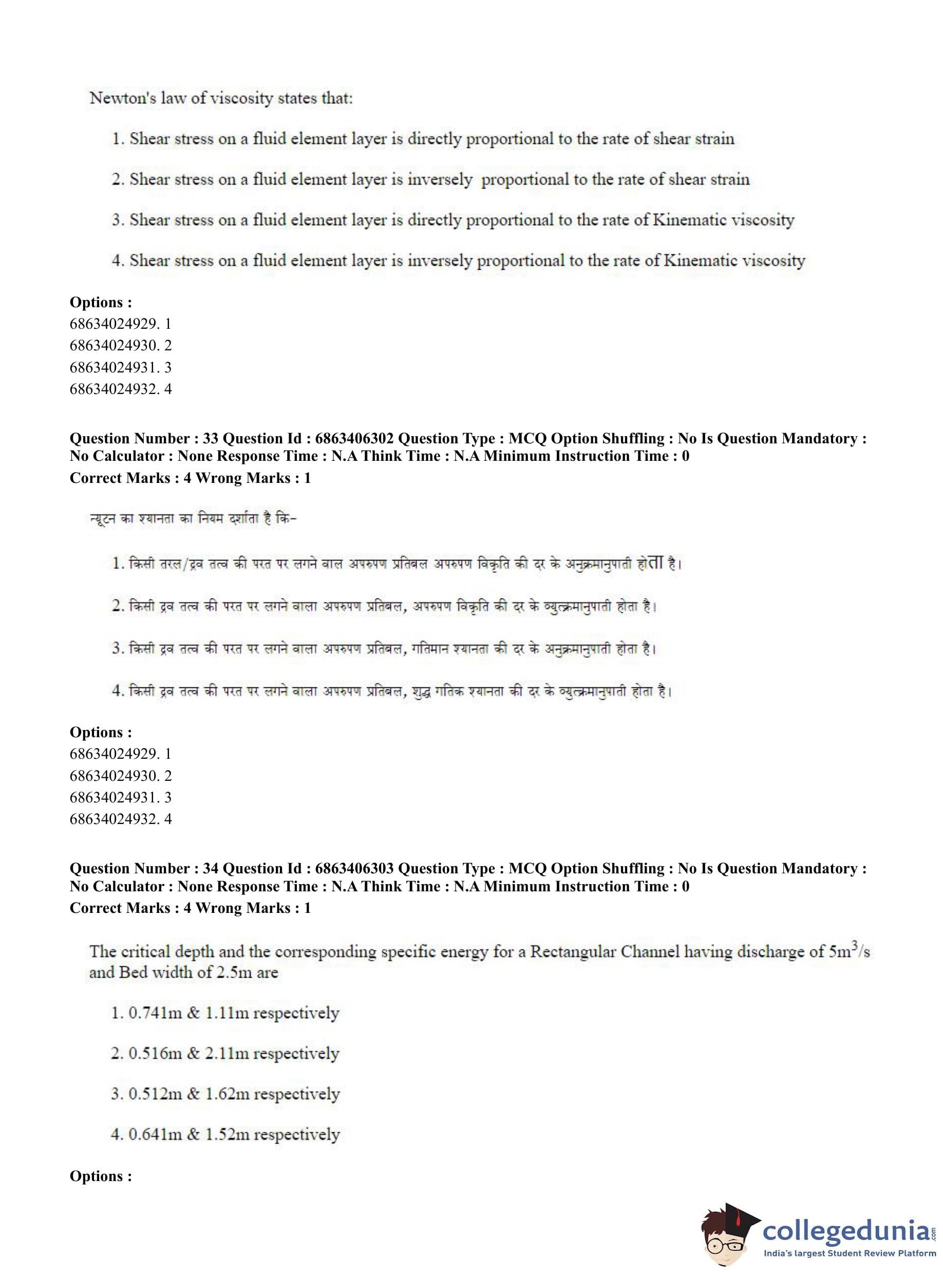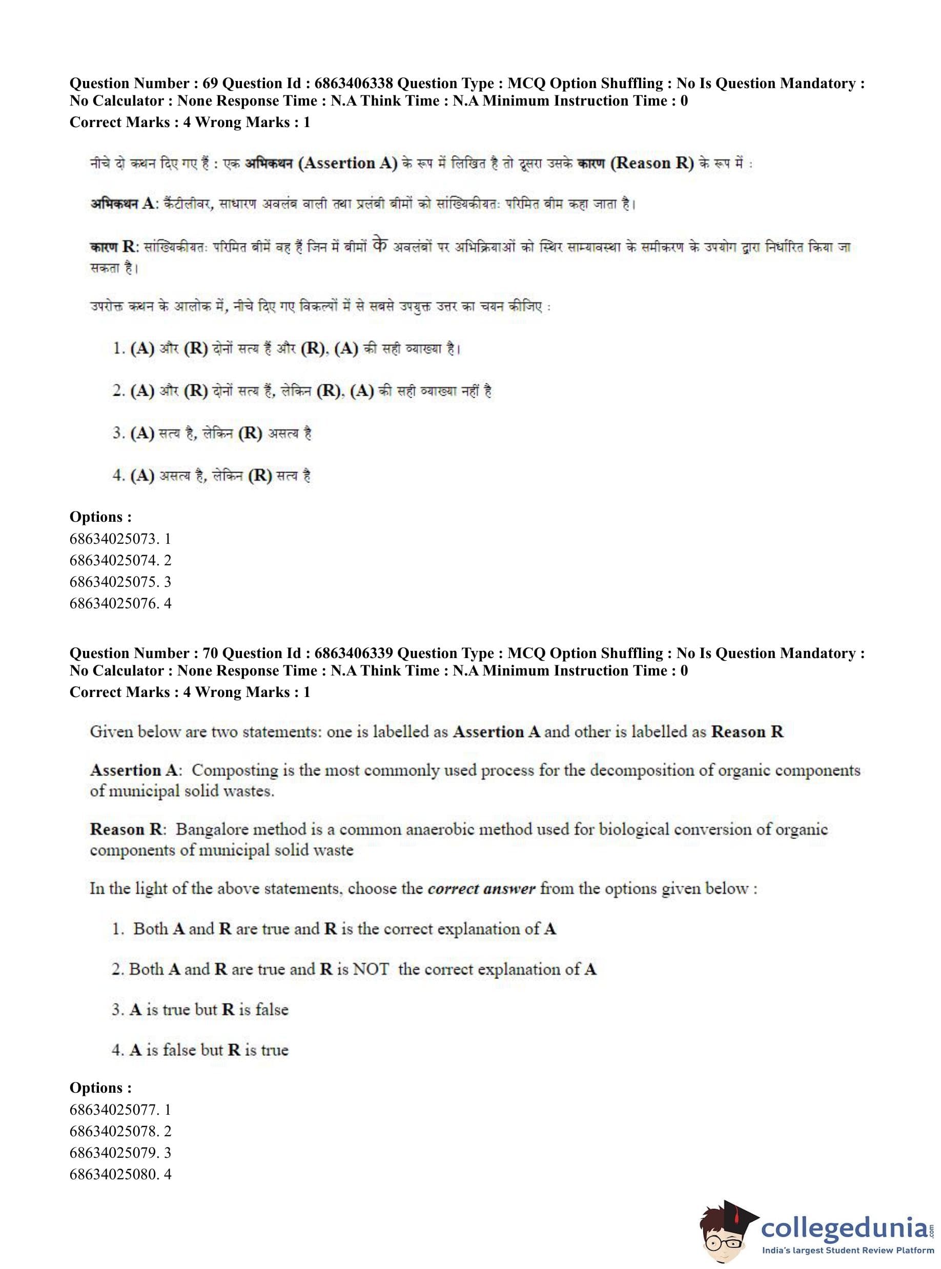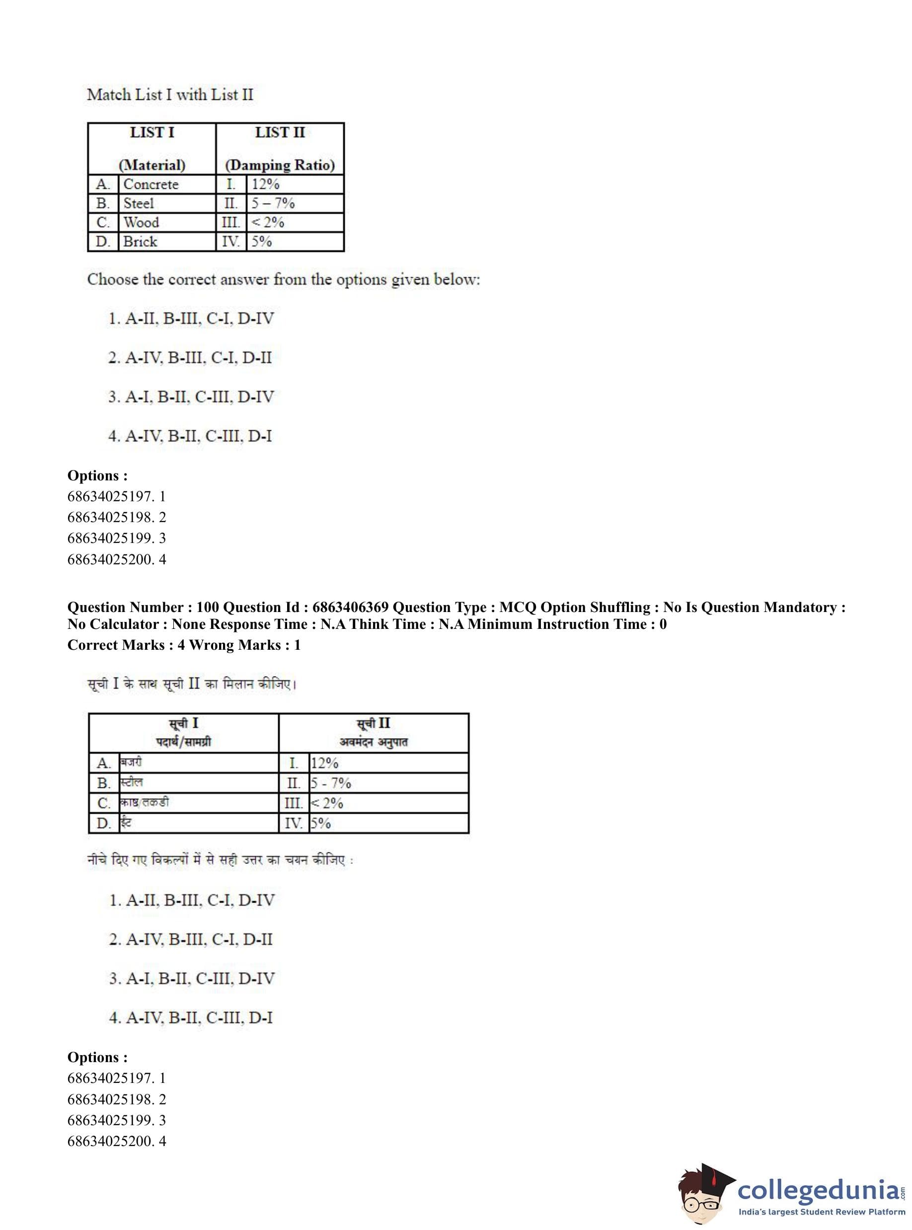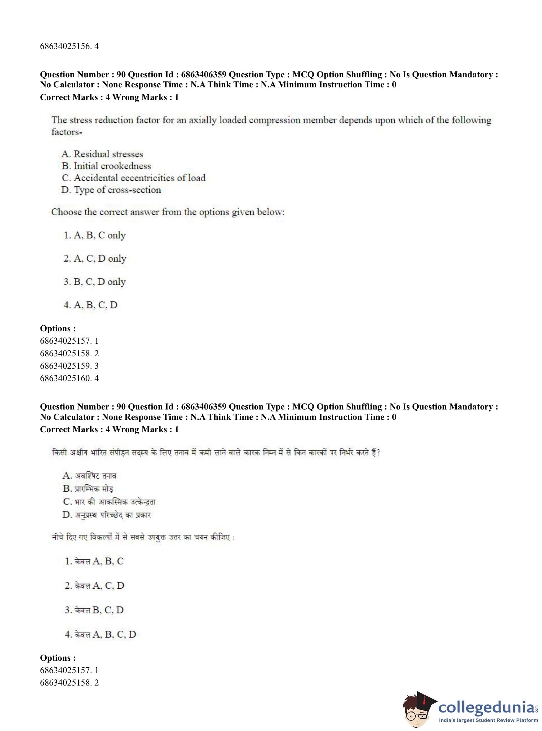 CUET PG 2023 Civil, Structural and Transport Engg Question Paper in Hindi (June 5 - Shift 3)