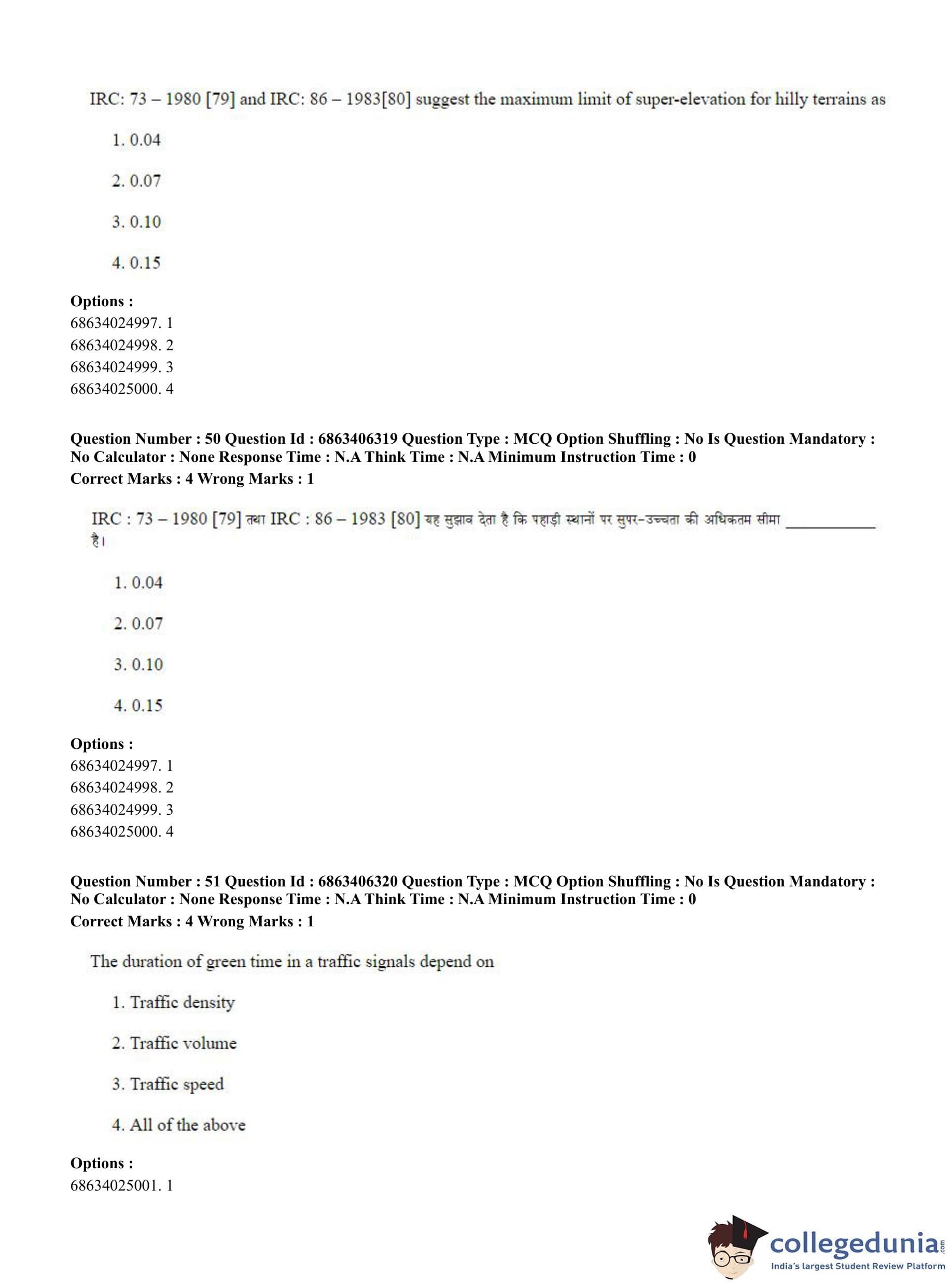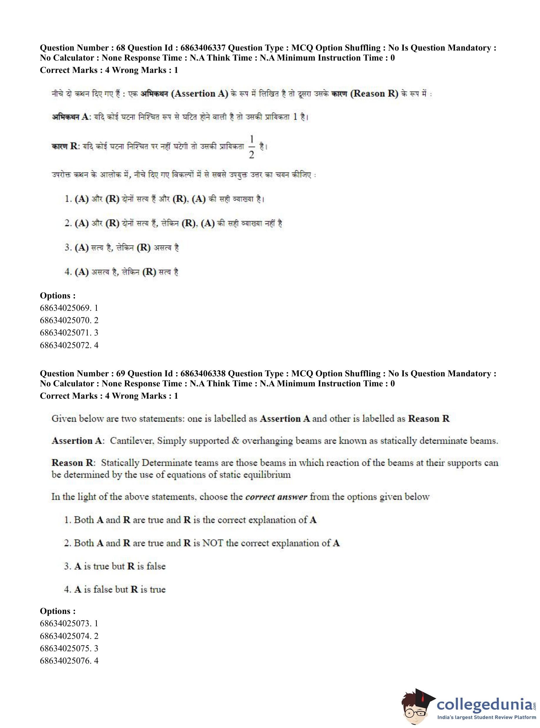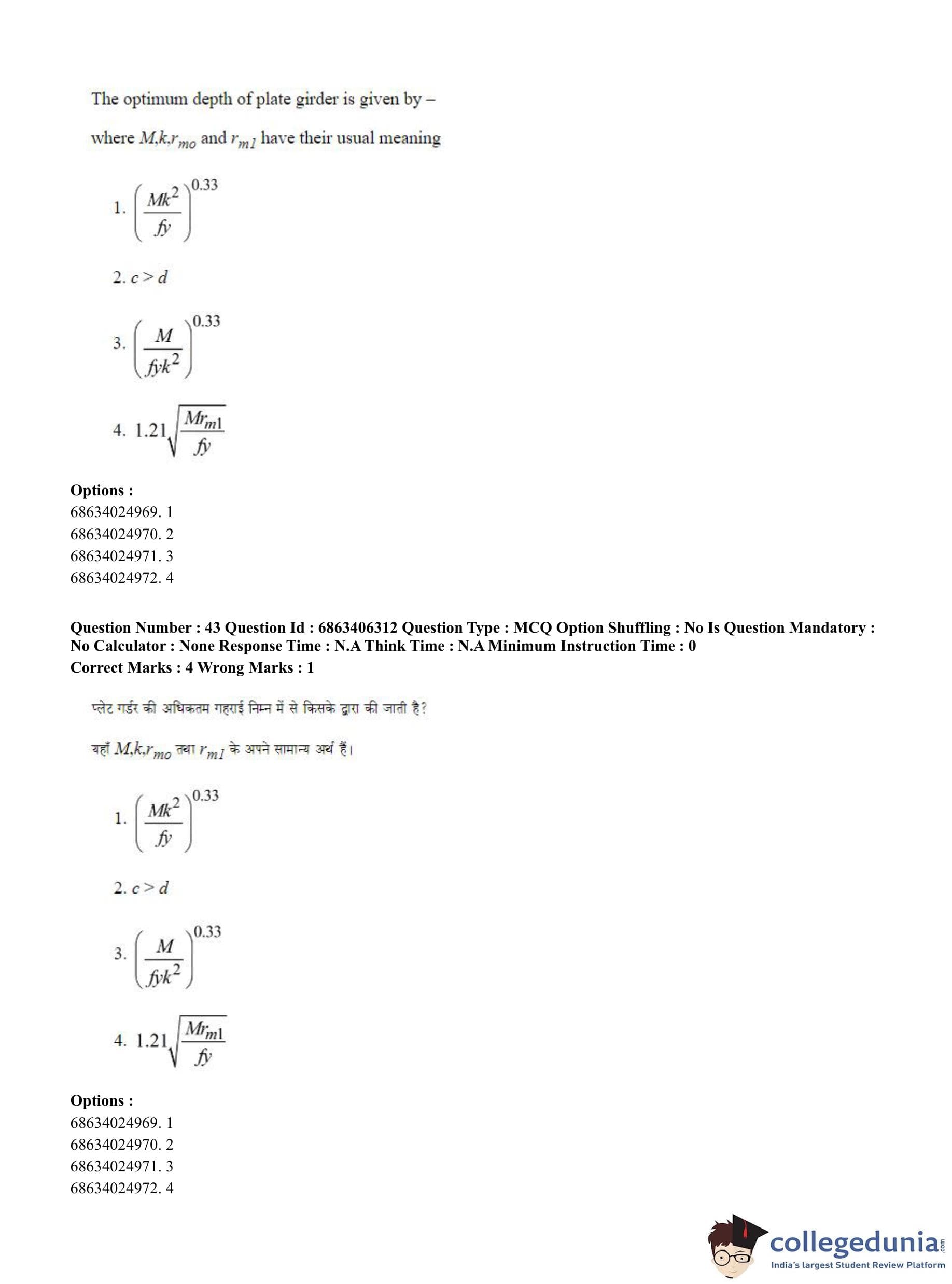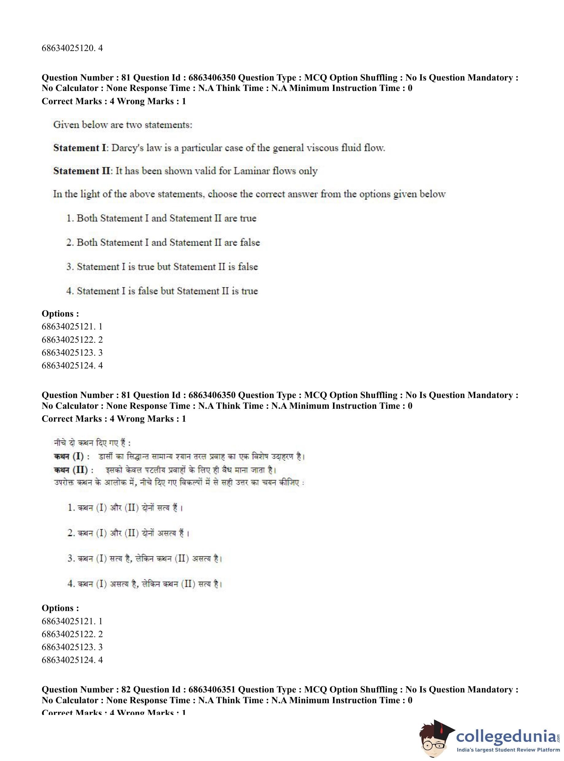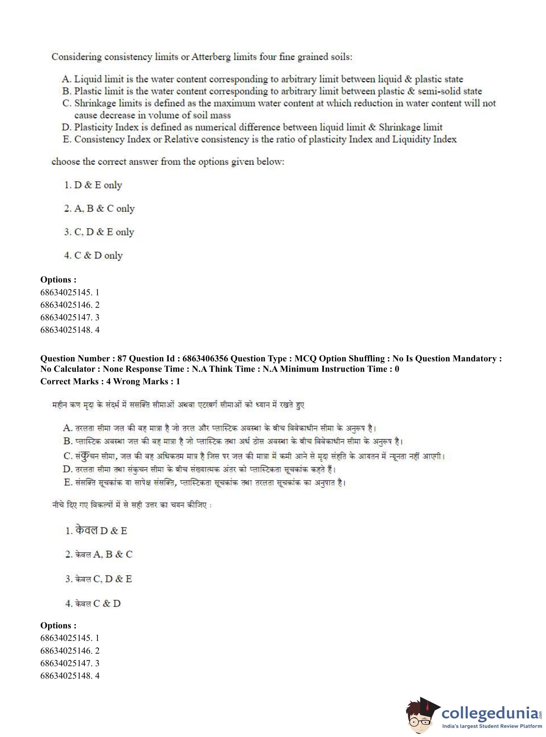 CUET PG 2023 Civil, Structural and Transport Engg Question Paper in Hindi (June 5 - Shift 3)