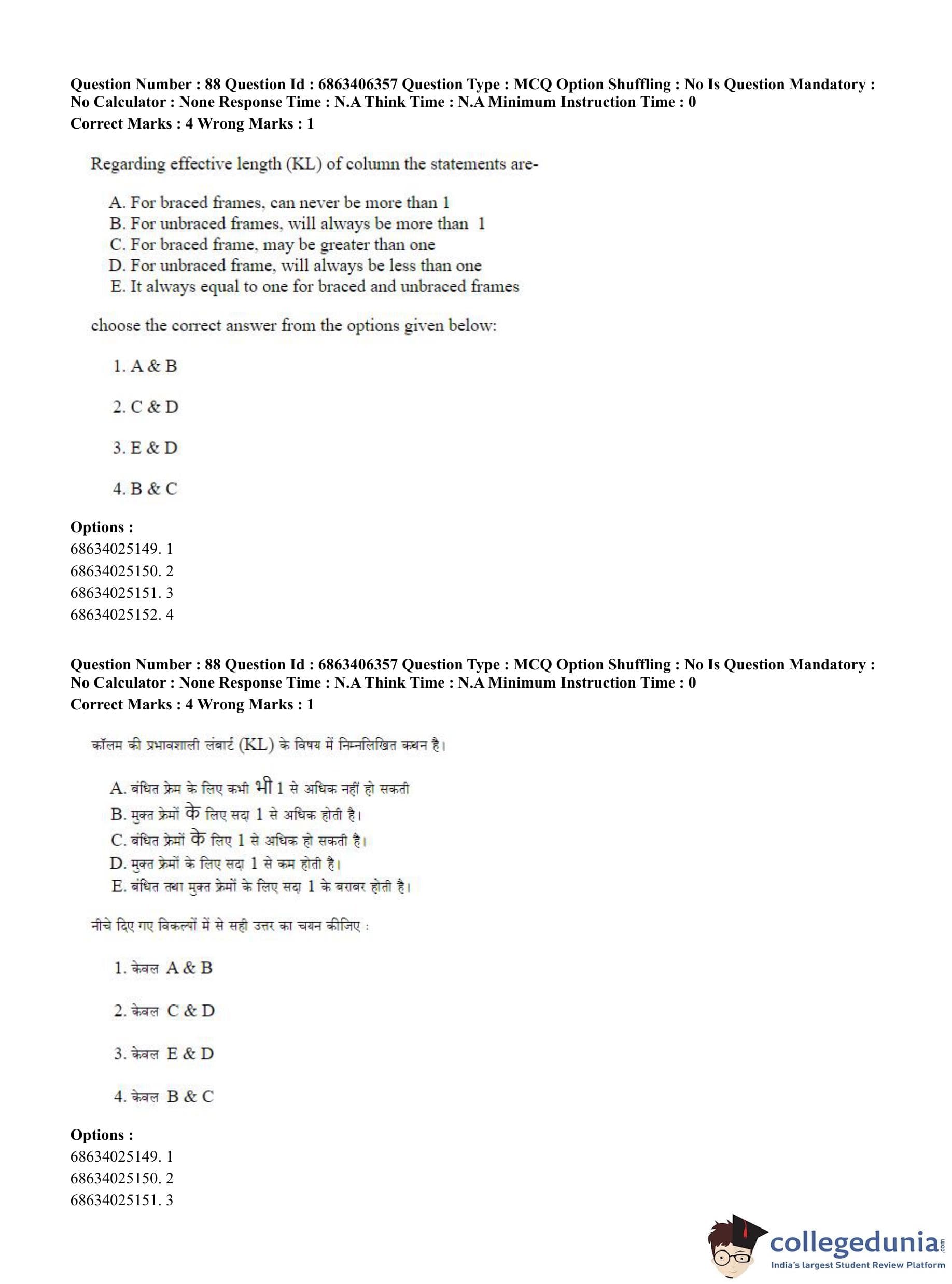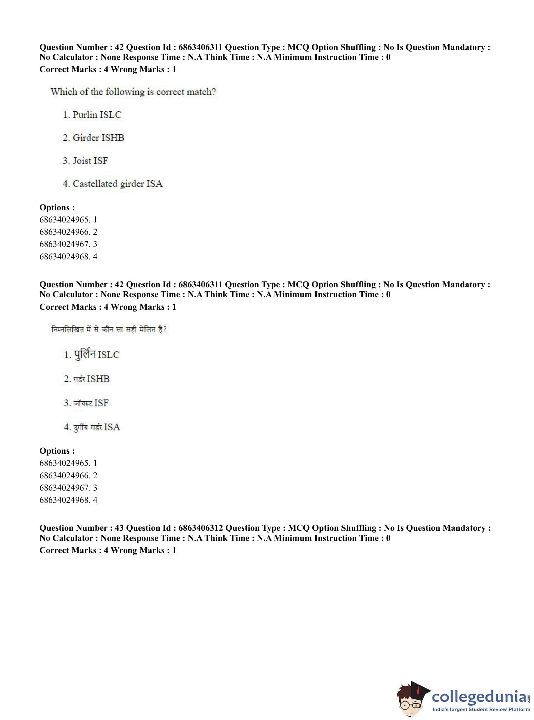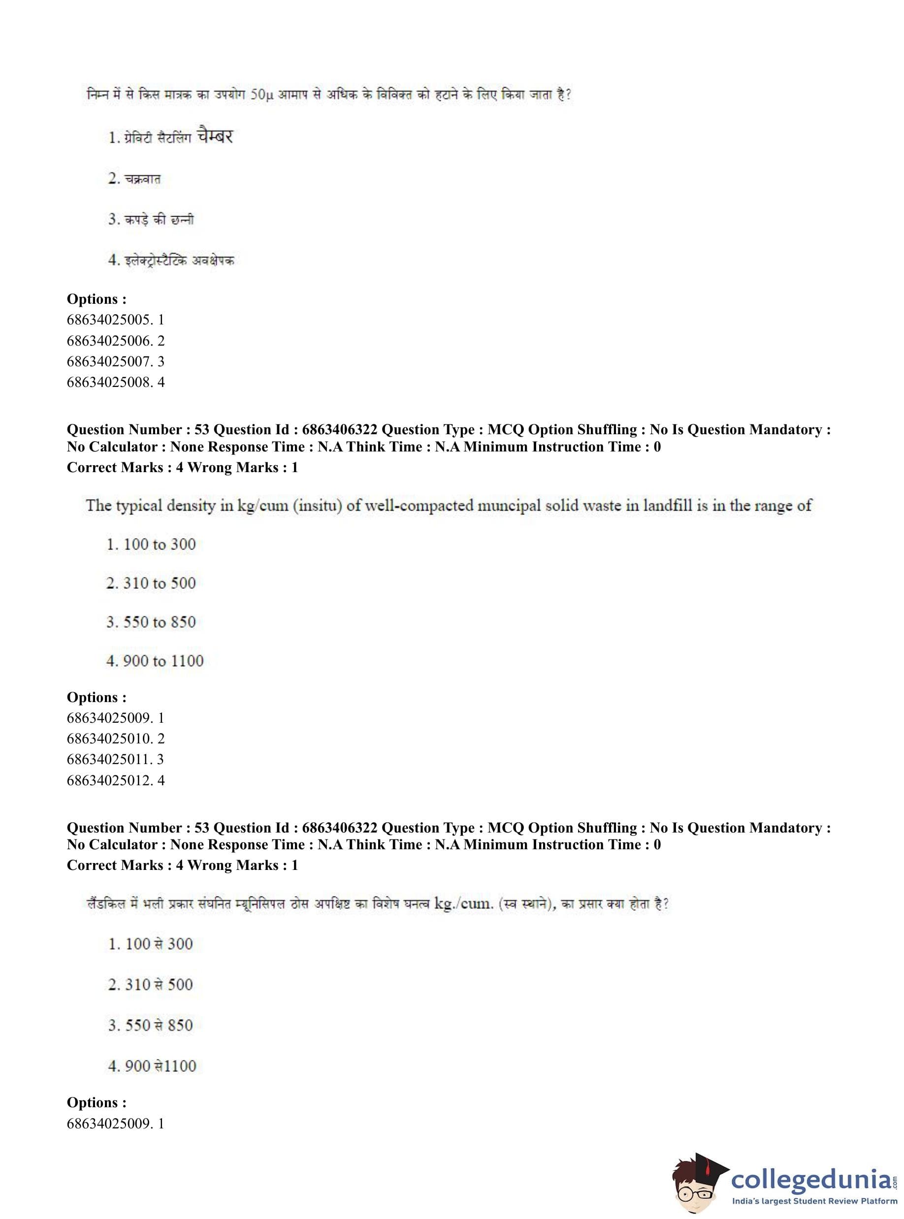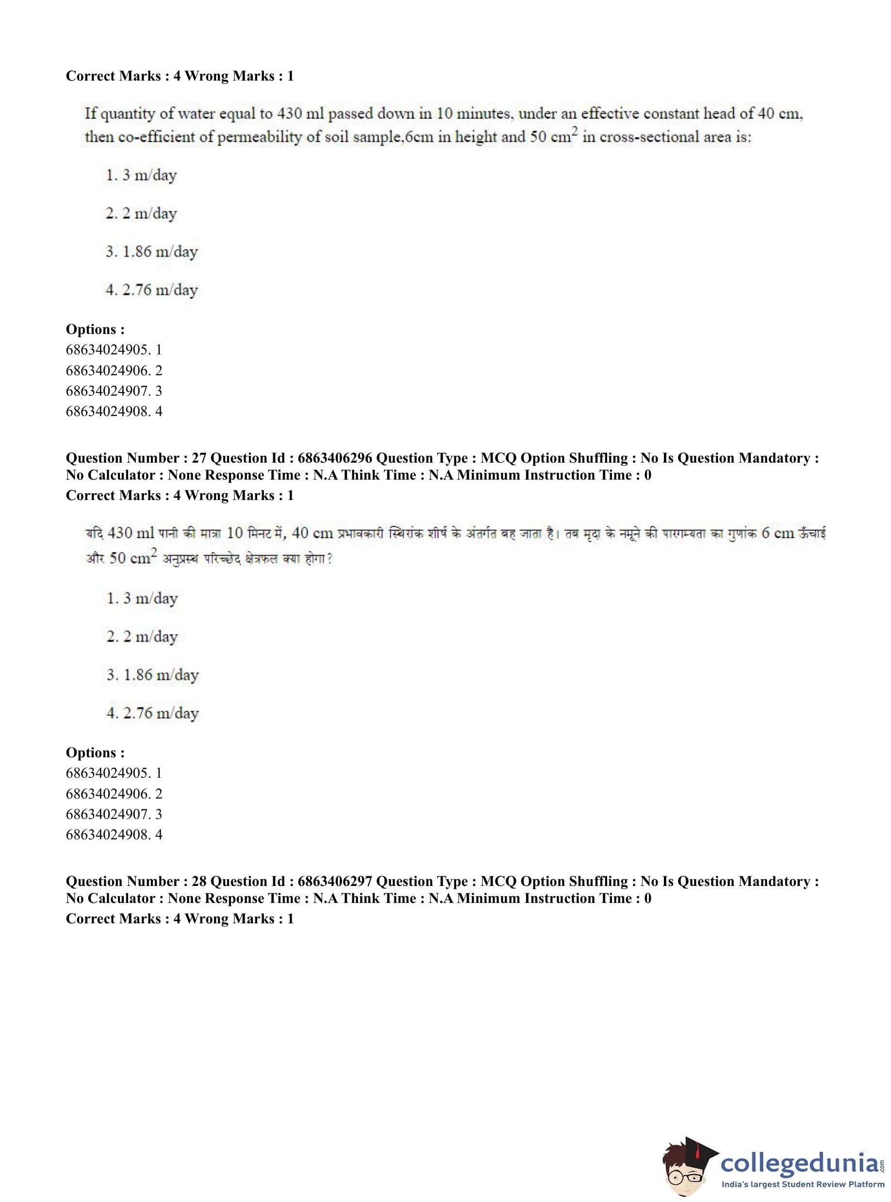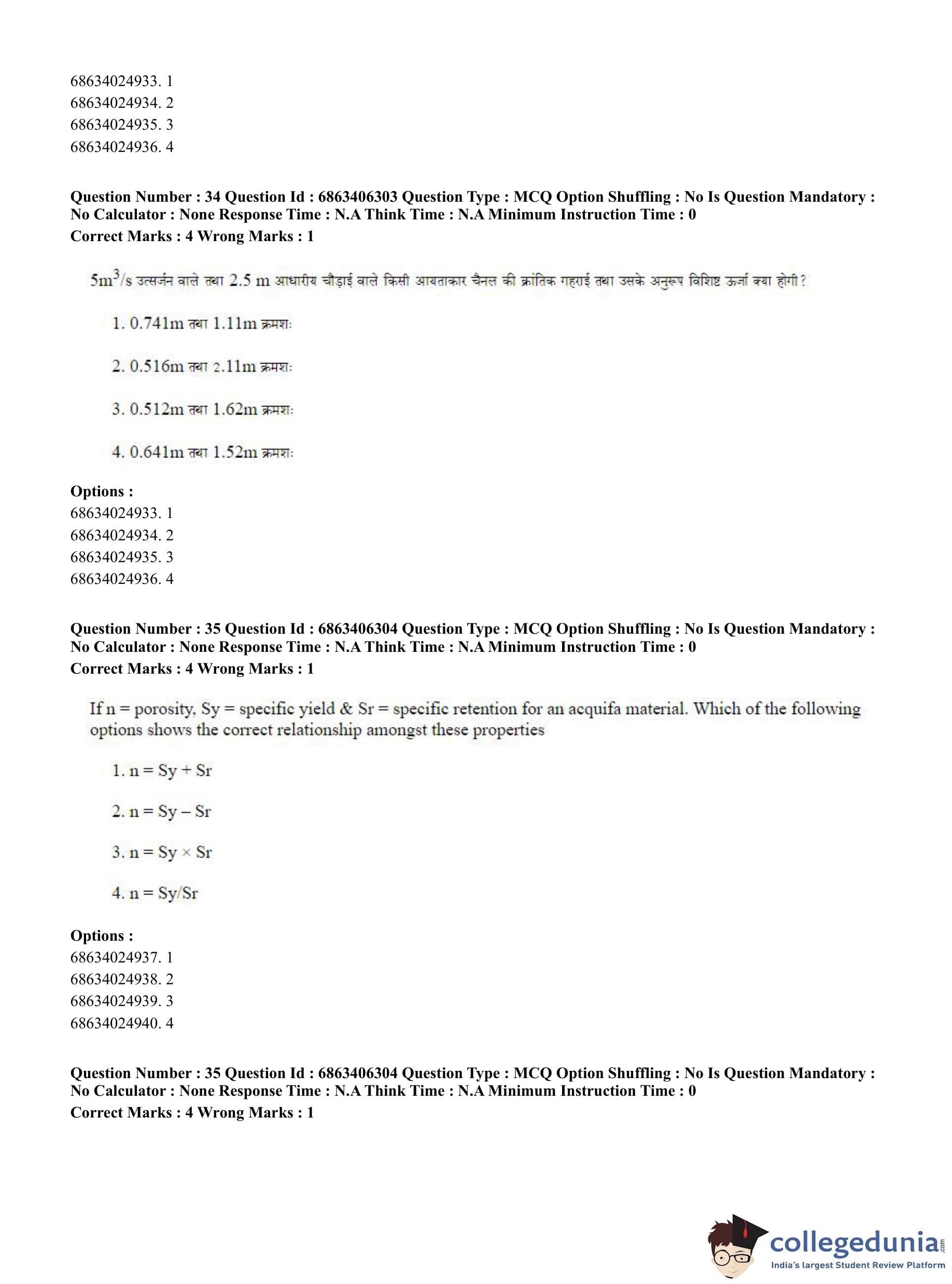 CUET PG 2023 Civil, Structural and Transport Engg Question Paper in Hindi (June 5 - Shift 3)