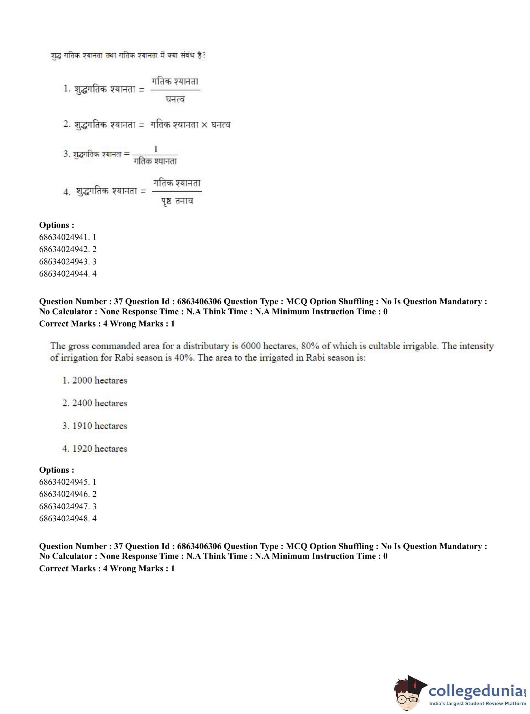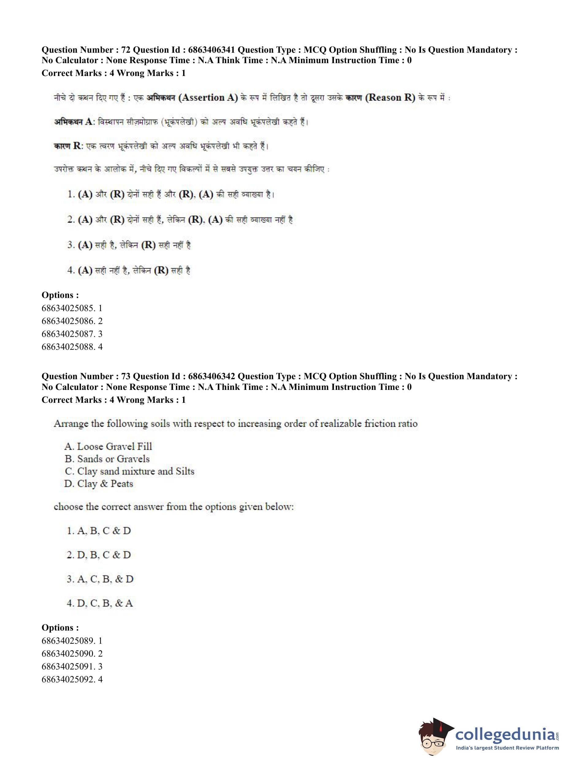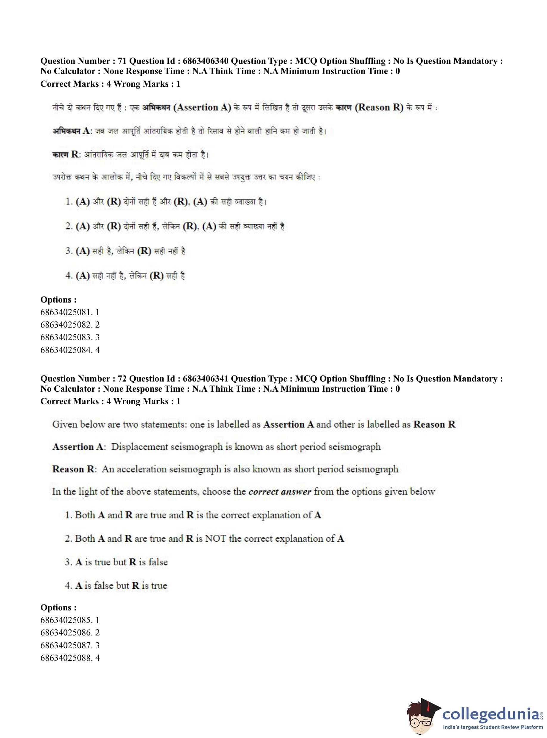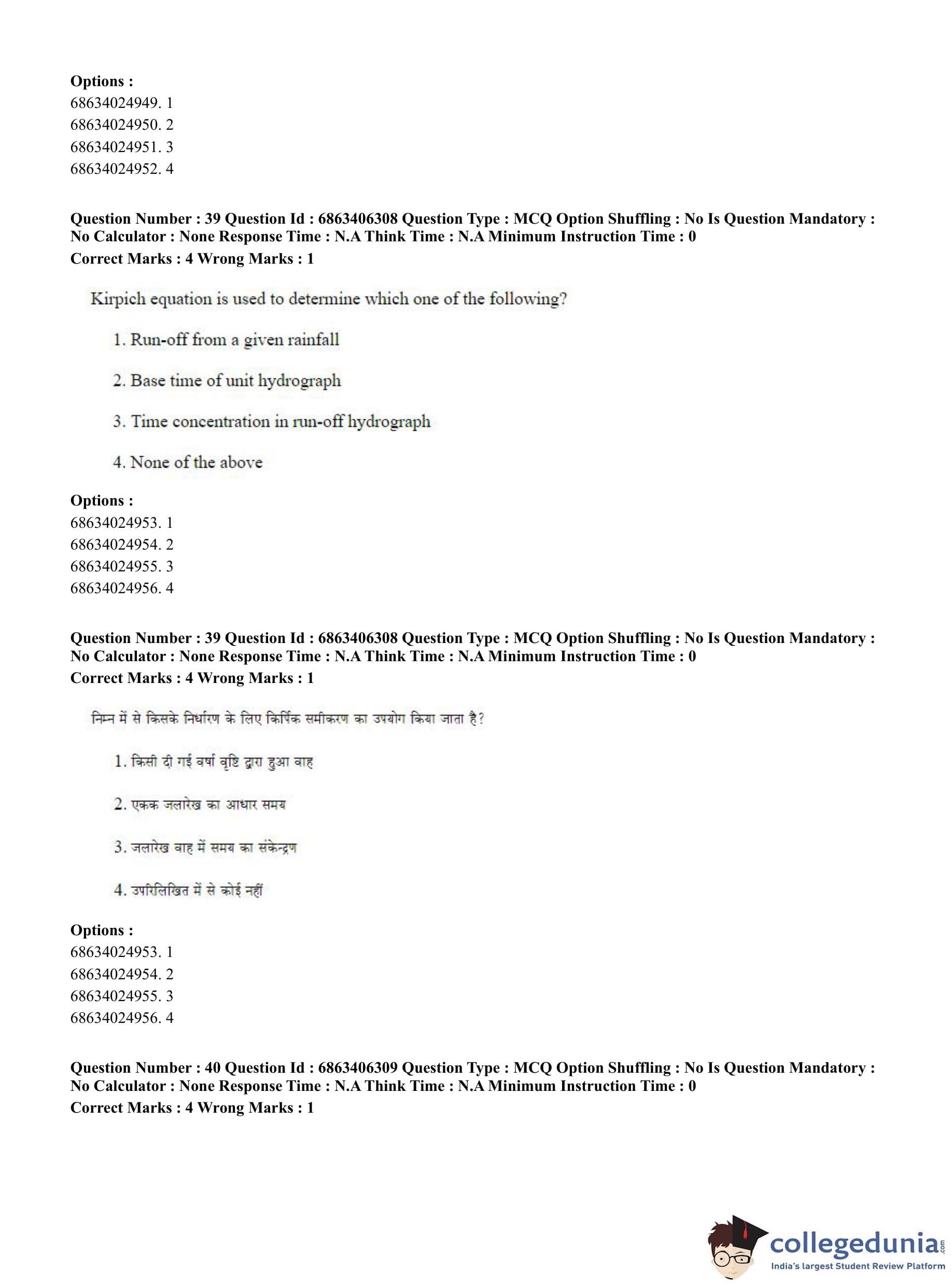 CUET PG 2023 Civil, Structural and Transport Engg Question Paper in Hindi (June 5 - Shift 3)