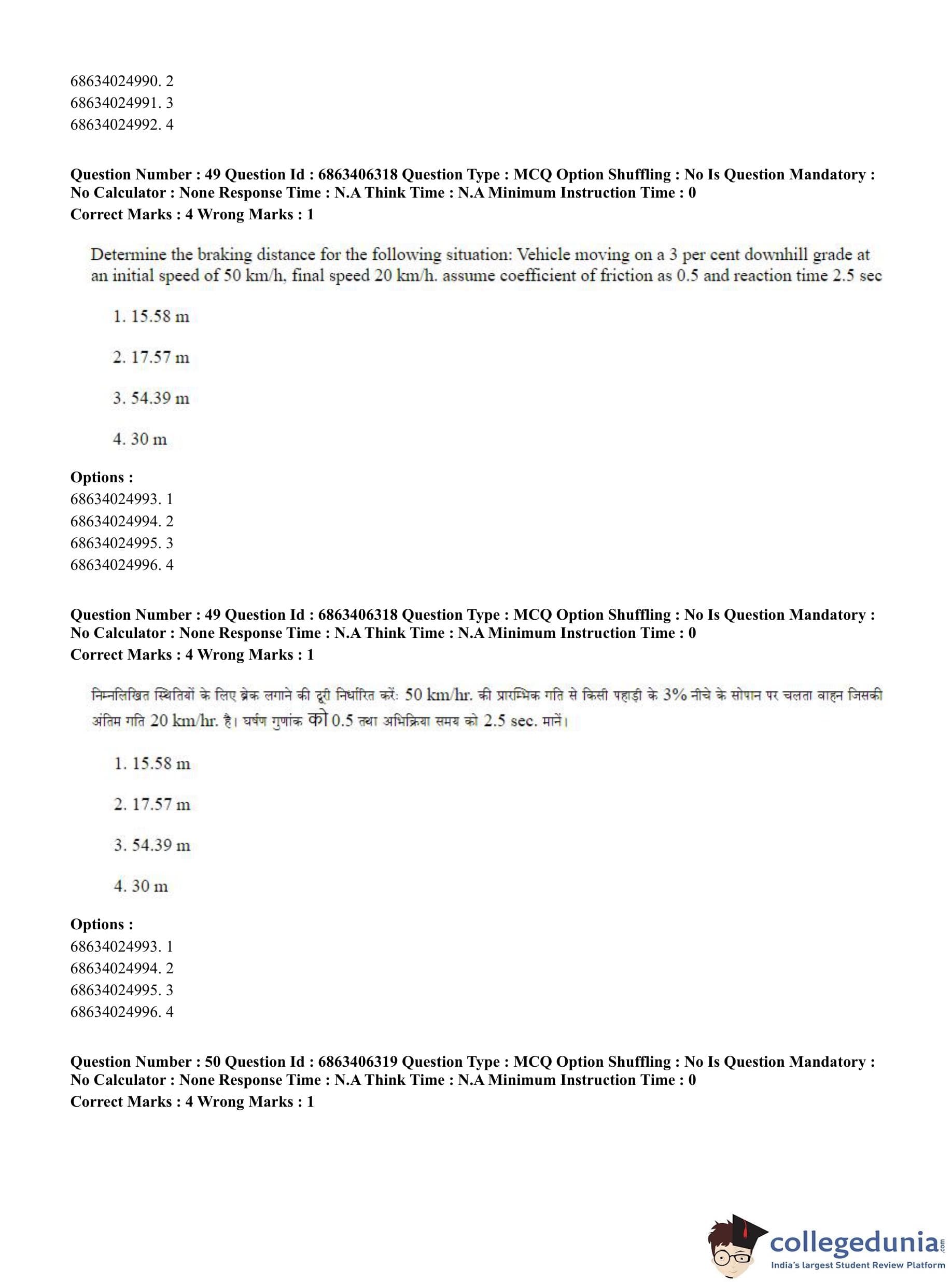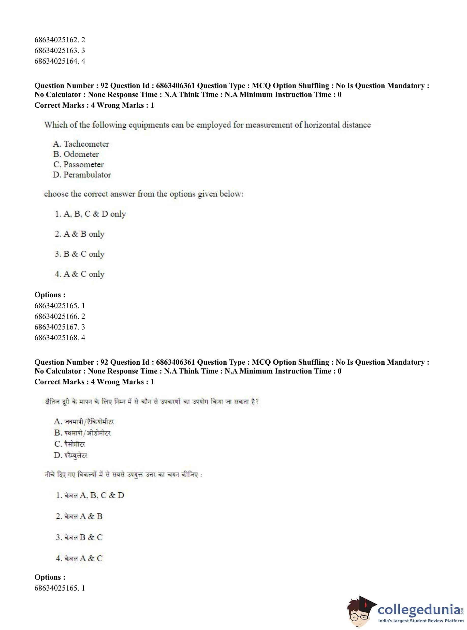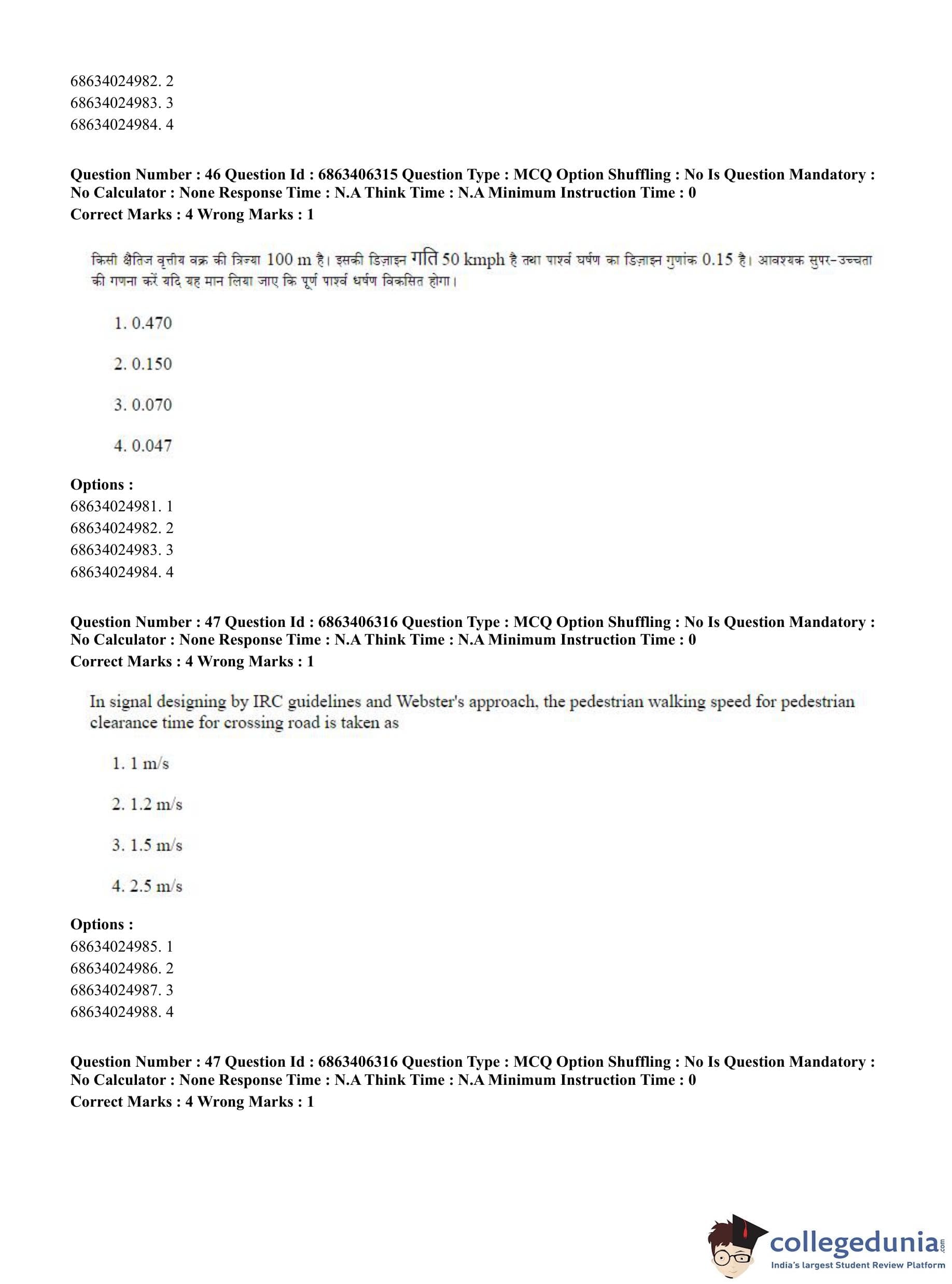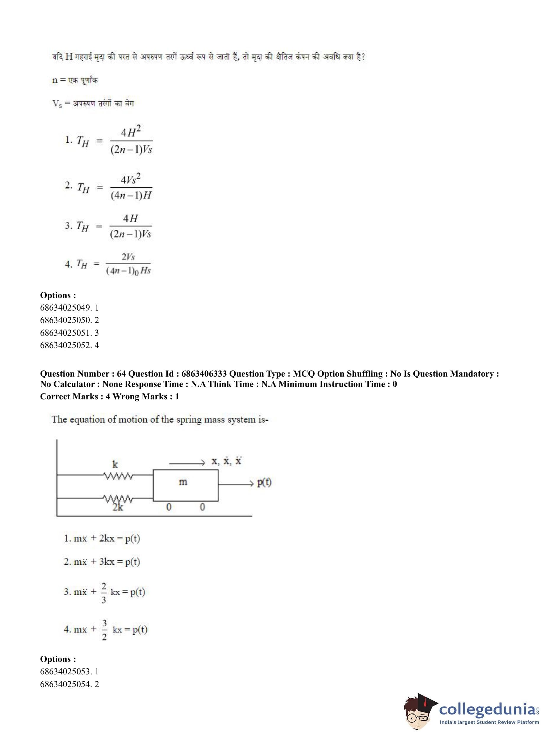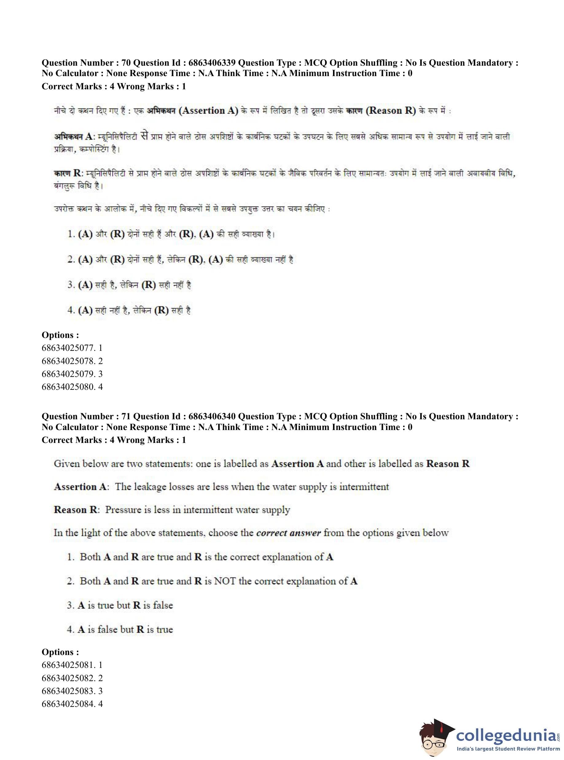 CUET PG 2023 Civil, Structural and Transport Engg Question Paper in Hindi (June 5 - Shift 3)