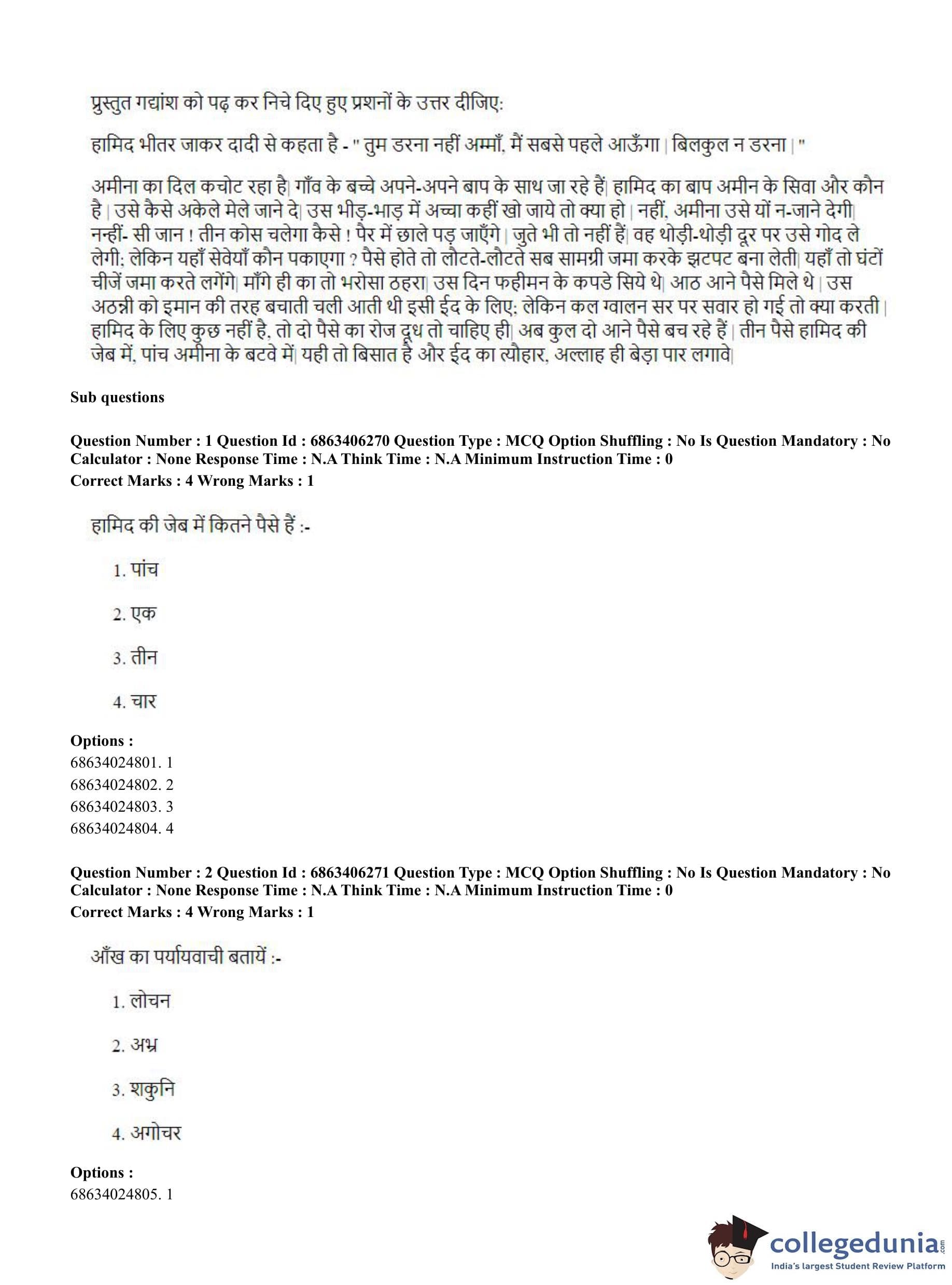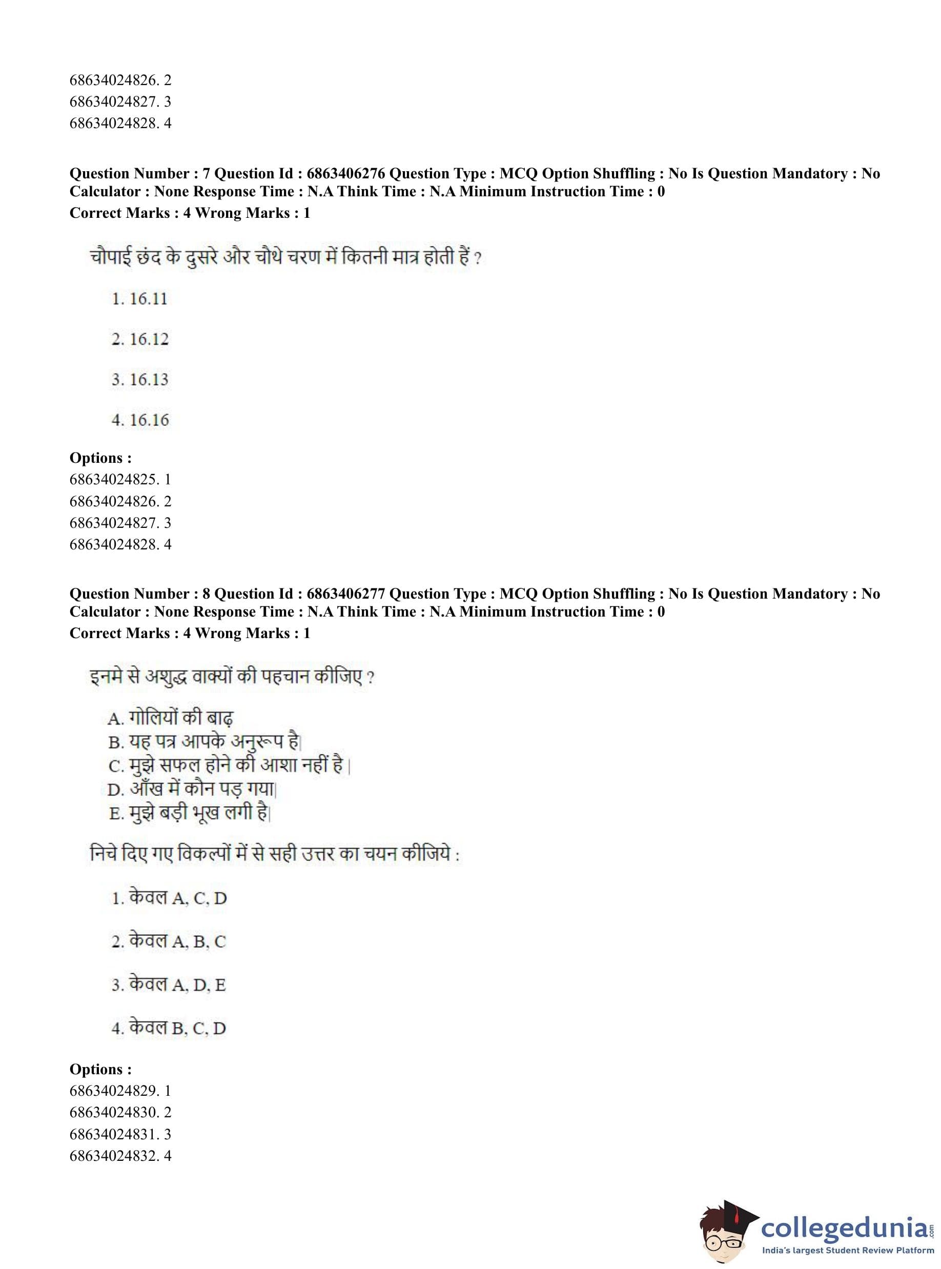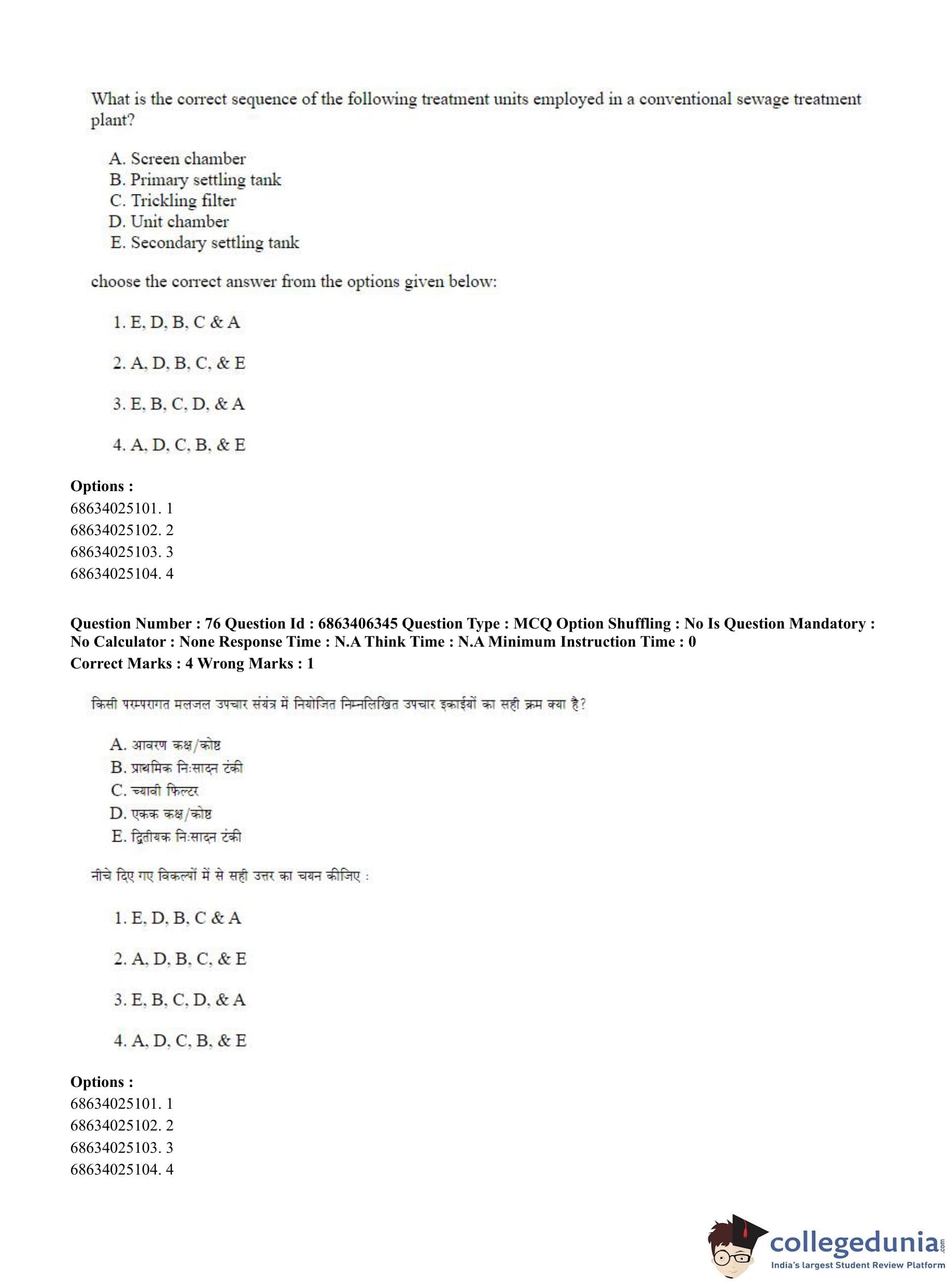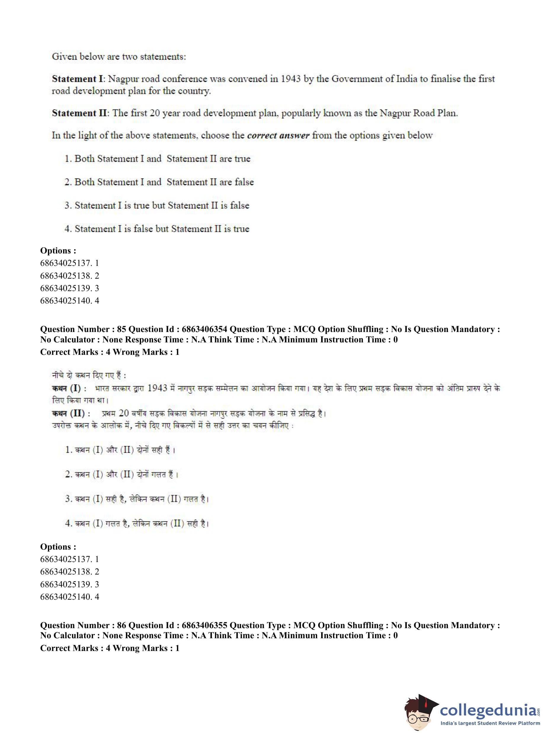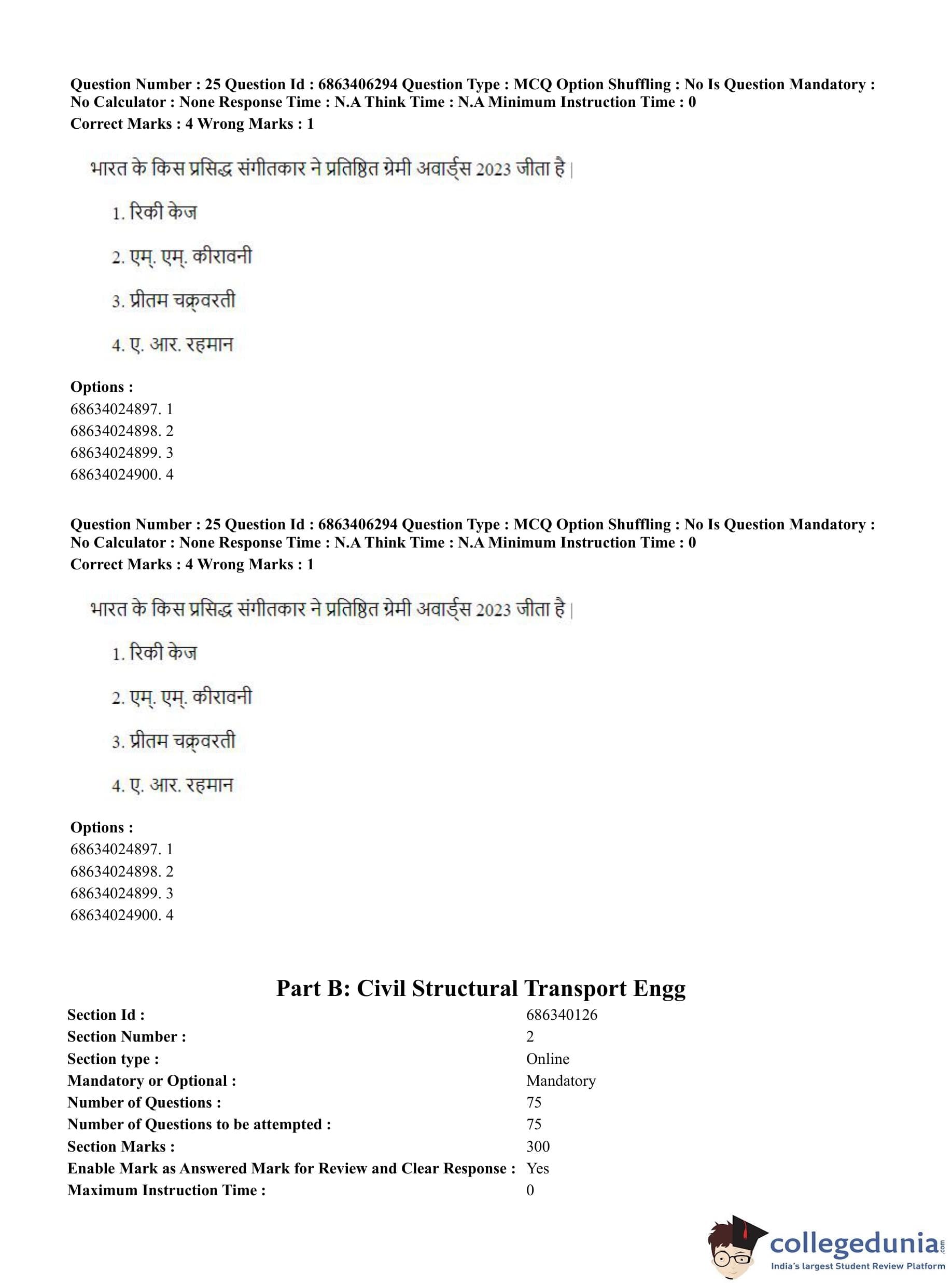 CUET PG 2023 Civil, Structural and Transport Engg Question Paper with Answer Key PDF in Hindi is available for download here. The exam was conducted by National Testing Agency (NTA) on June 5, 2023 in Shift 3. The question paper comprised a total of 100 questions divided into 2 sections.