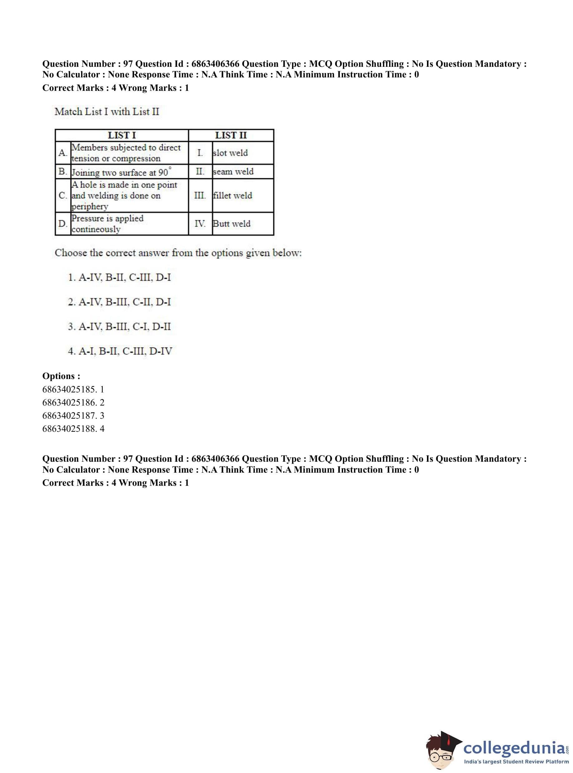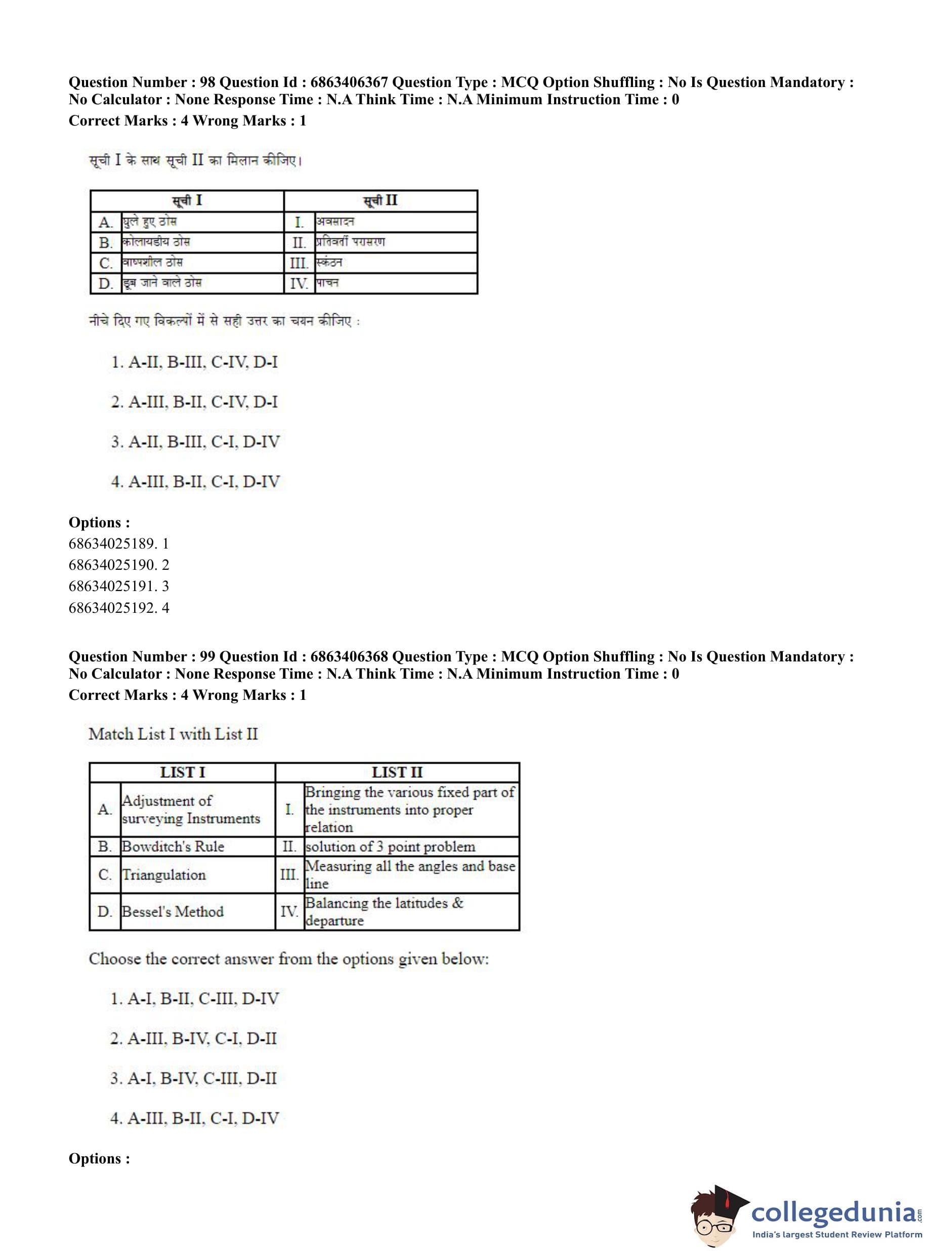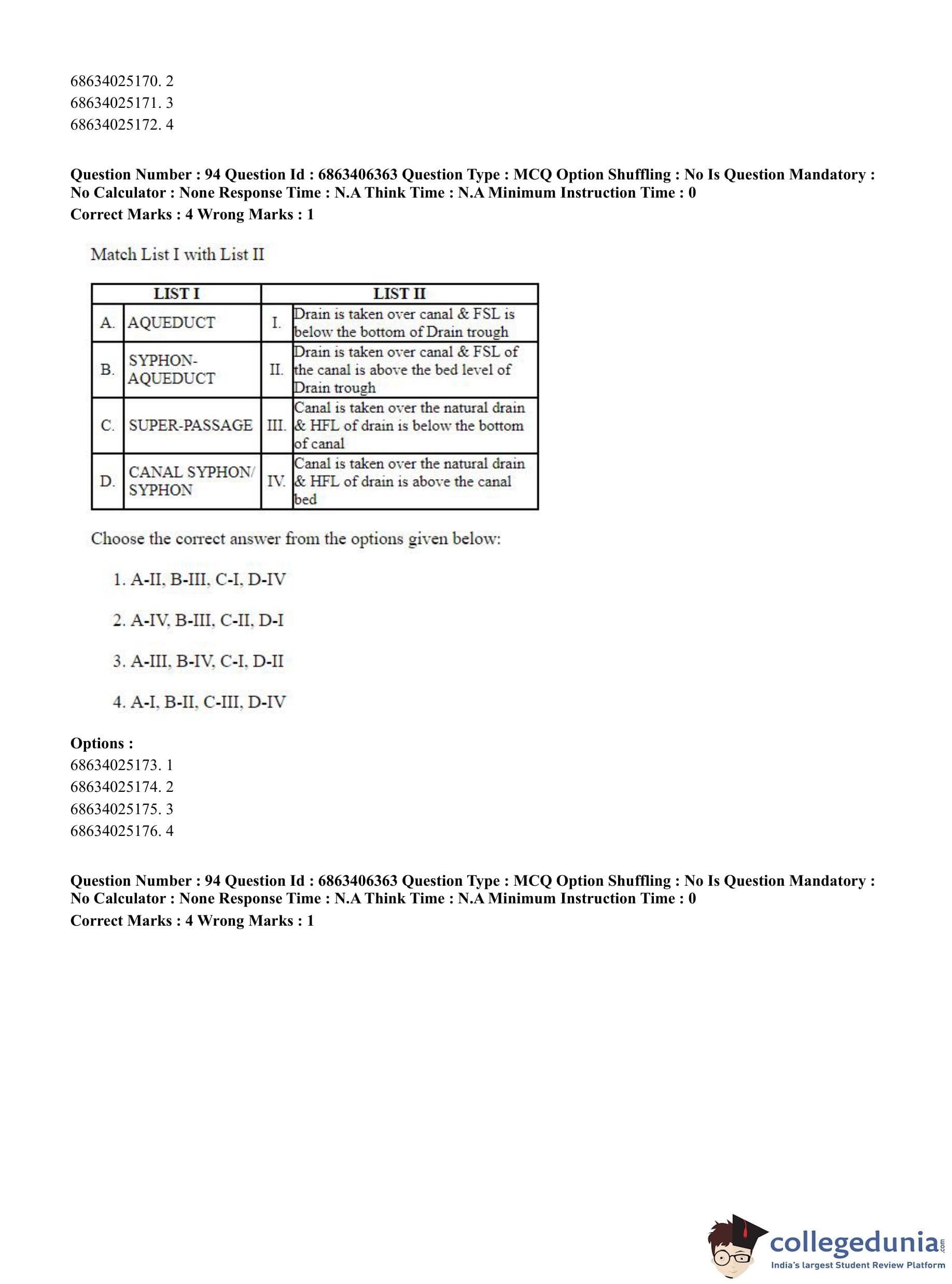| CUET PG Civil, Structural and Transport Engg Question Paper 2023 PDF | CUET PG Civil, Structural and Transport Engg Answer Key 2023 PDF |