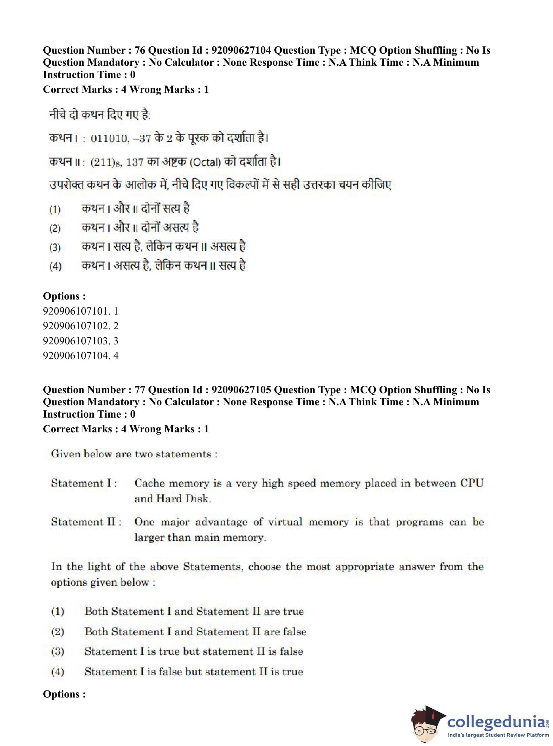 CUET PG 2023 Computer Science and Information Technology Question Paper in English (June 16 - Shift 3)