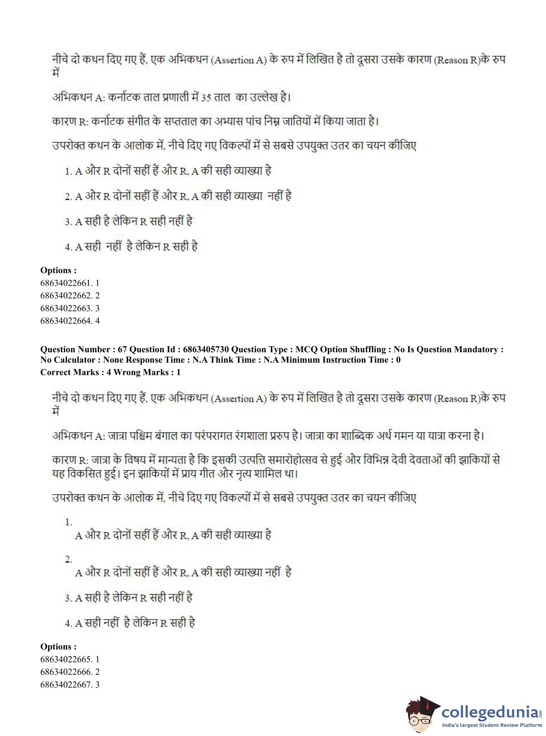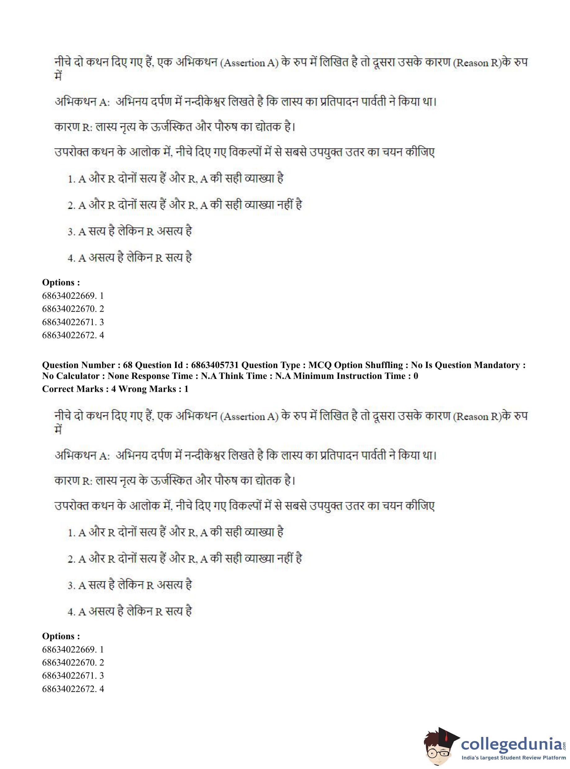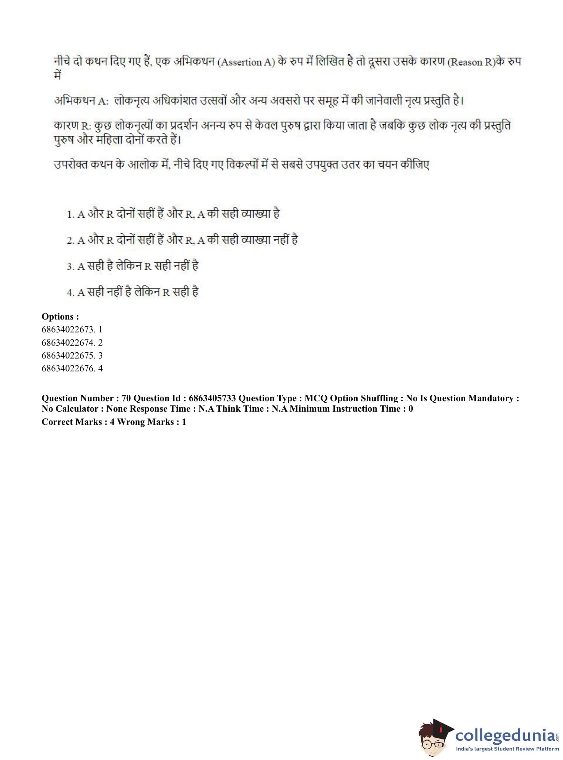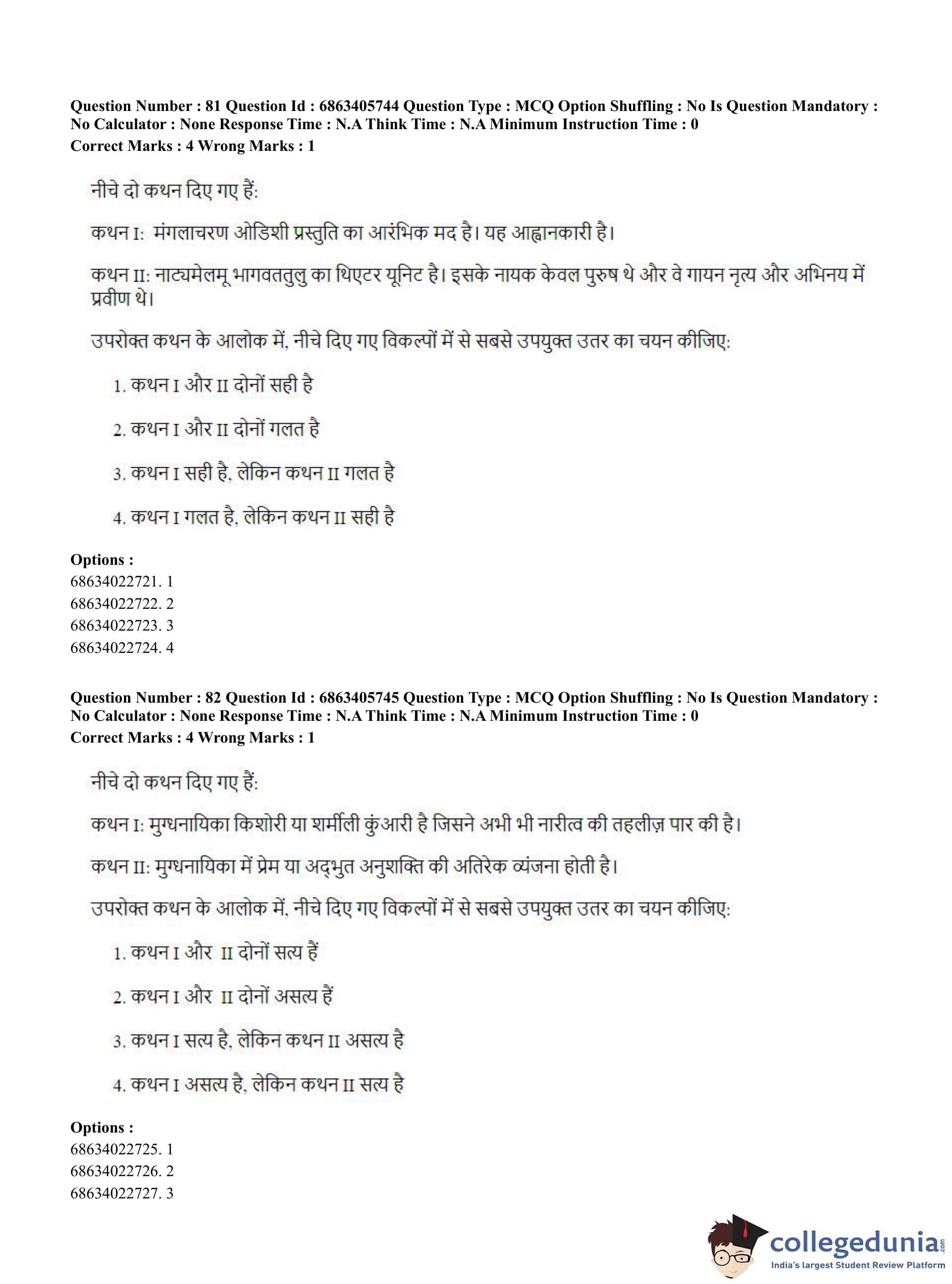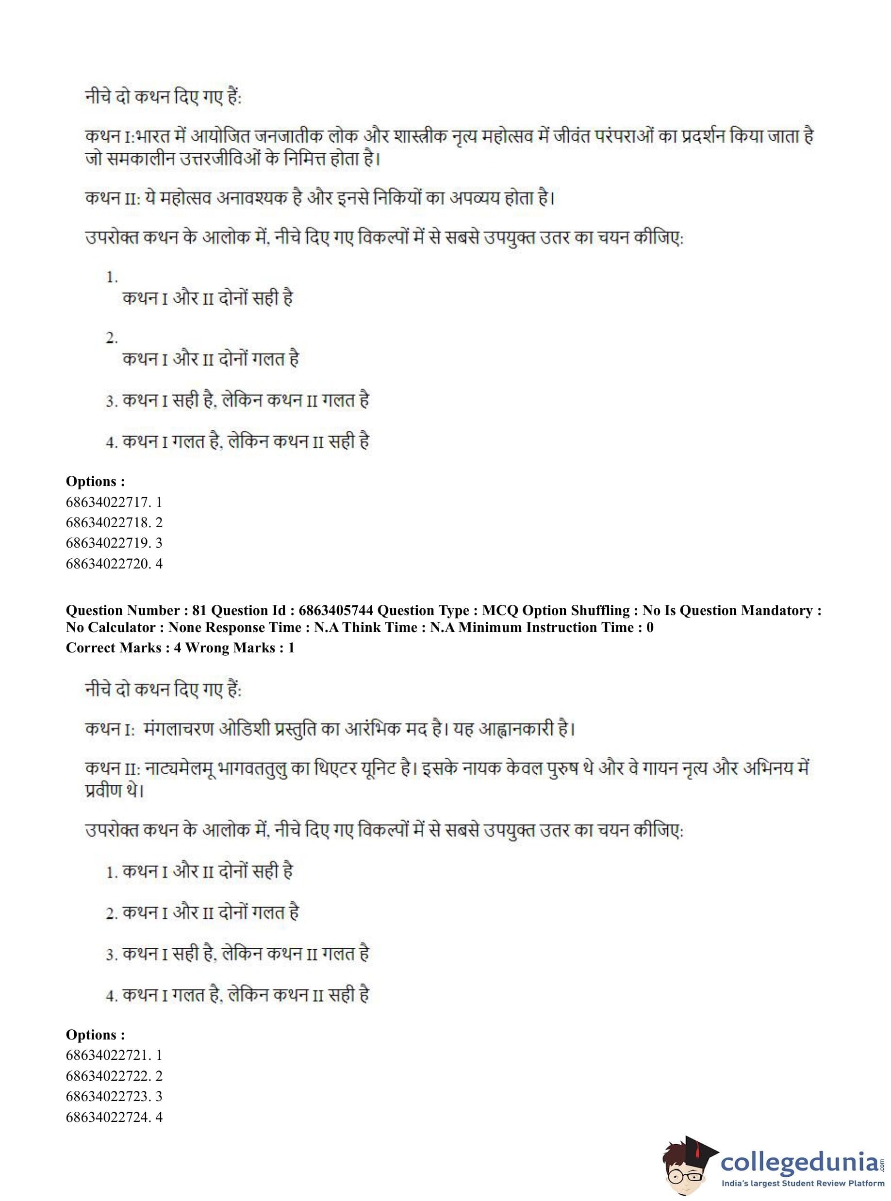 CUET PG 2023 Dance Question Paper in Hindi (June 5 - Shift 3)