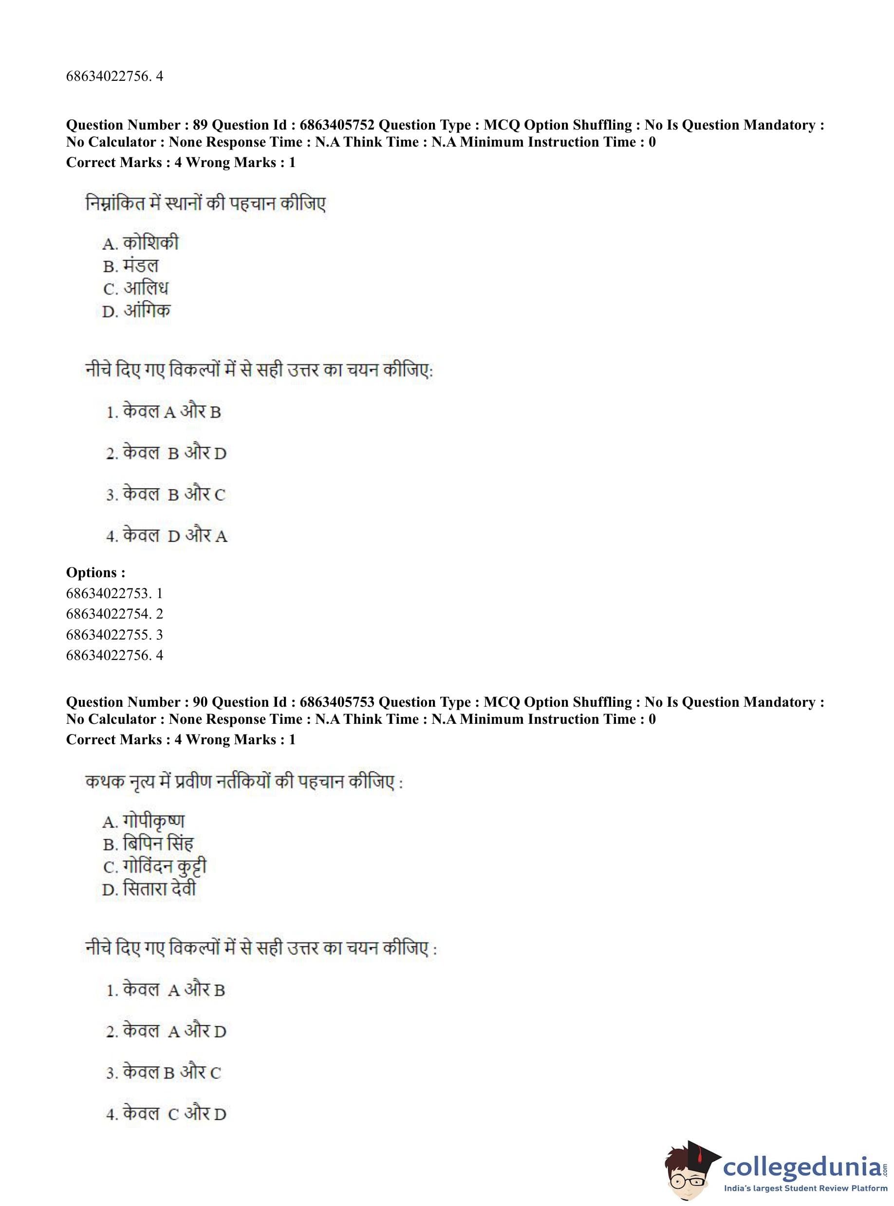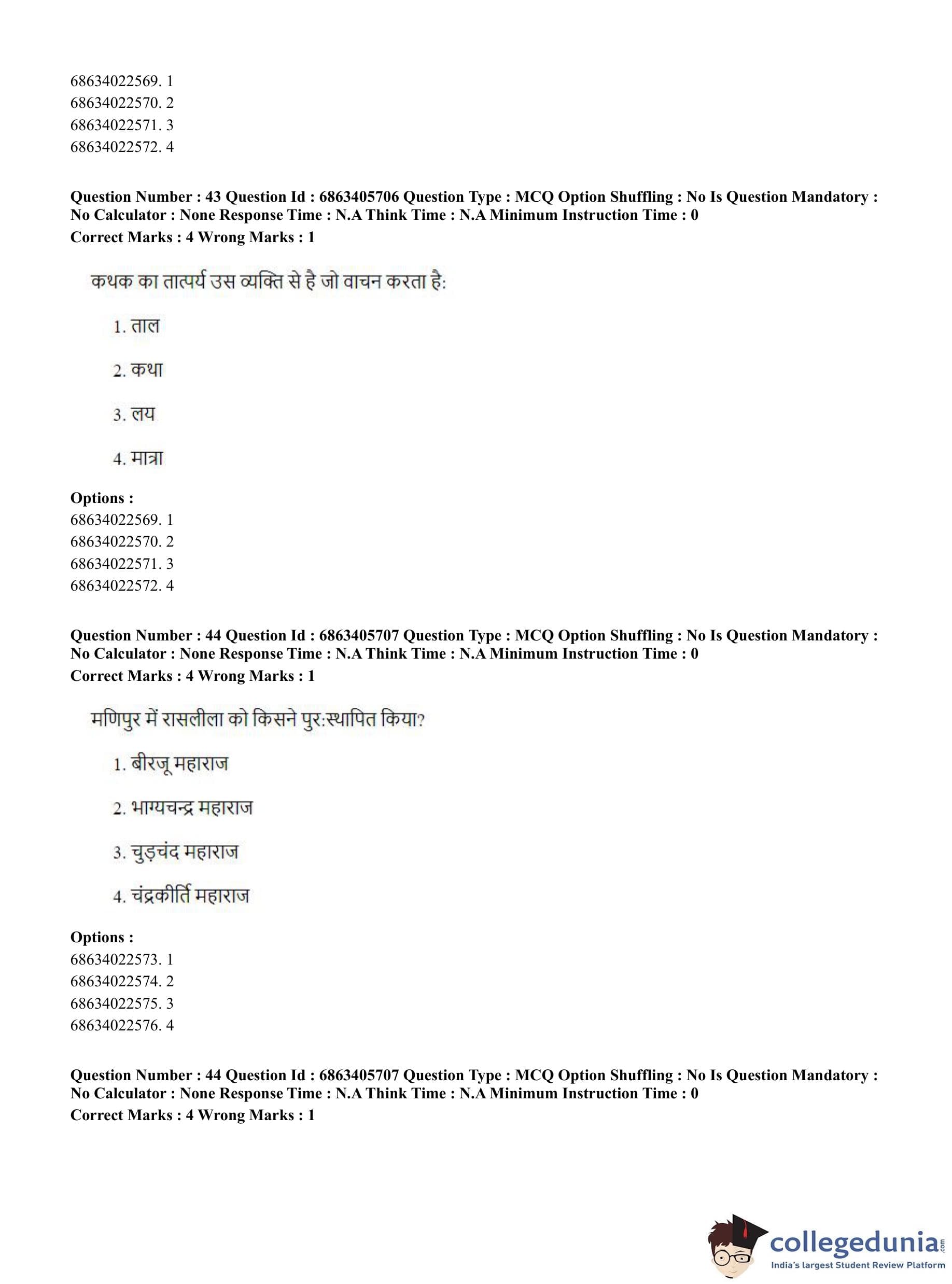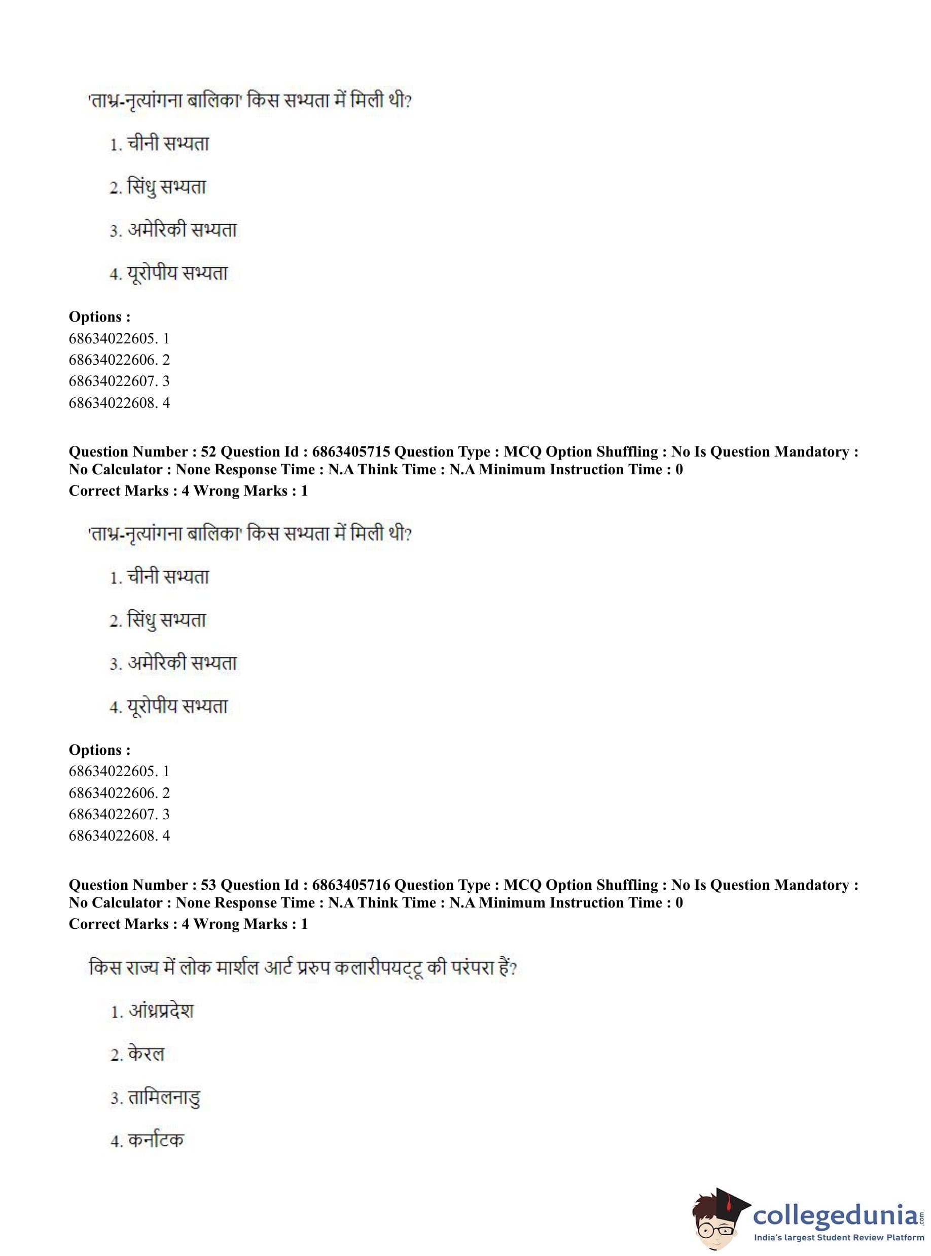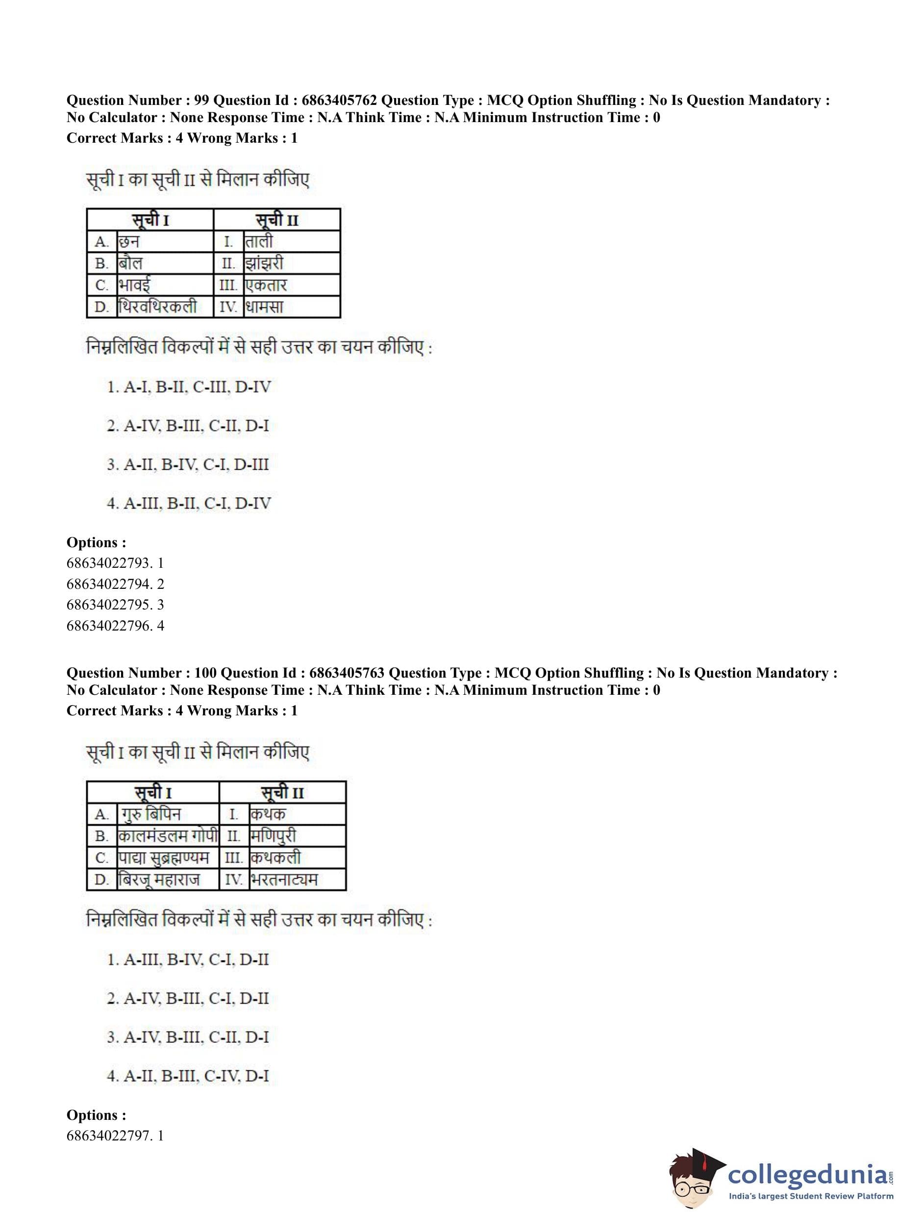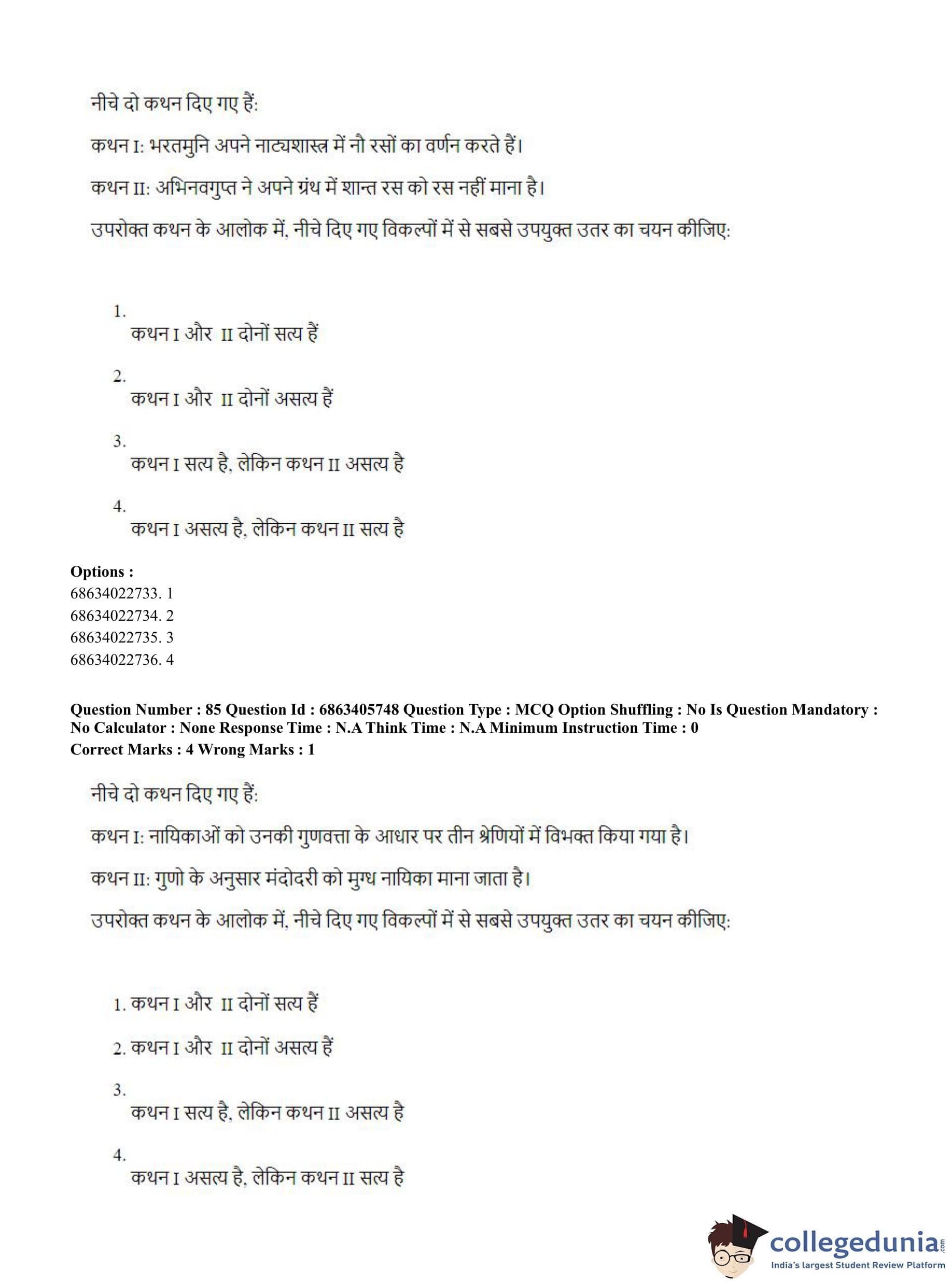 CUET PG 2023 Dance Question Paper in Hindi (June 5 - Shift 3)