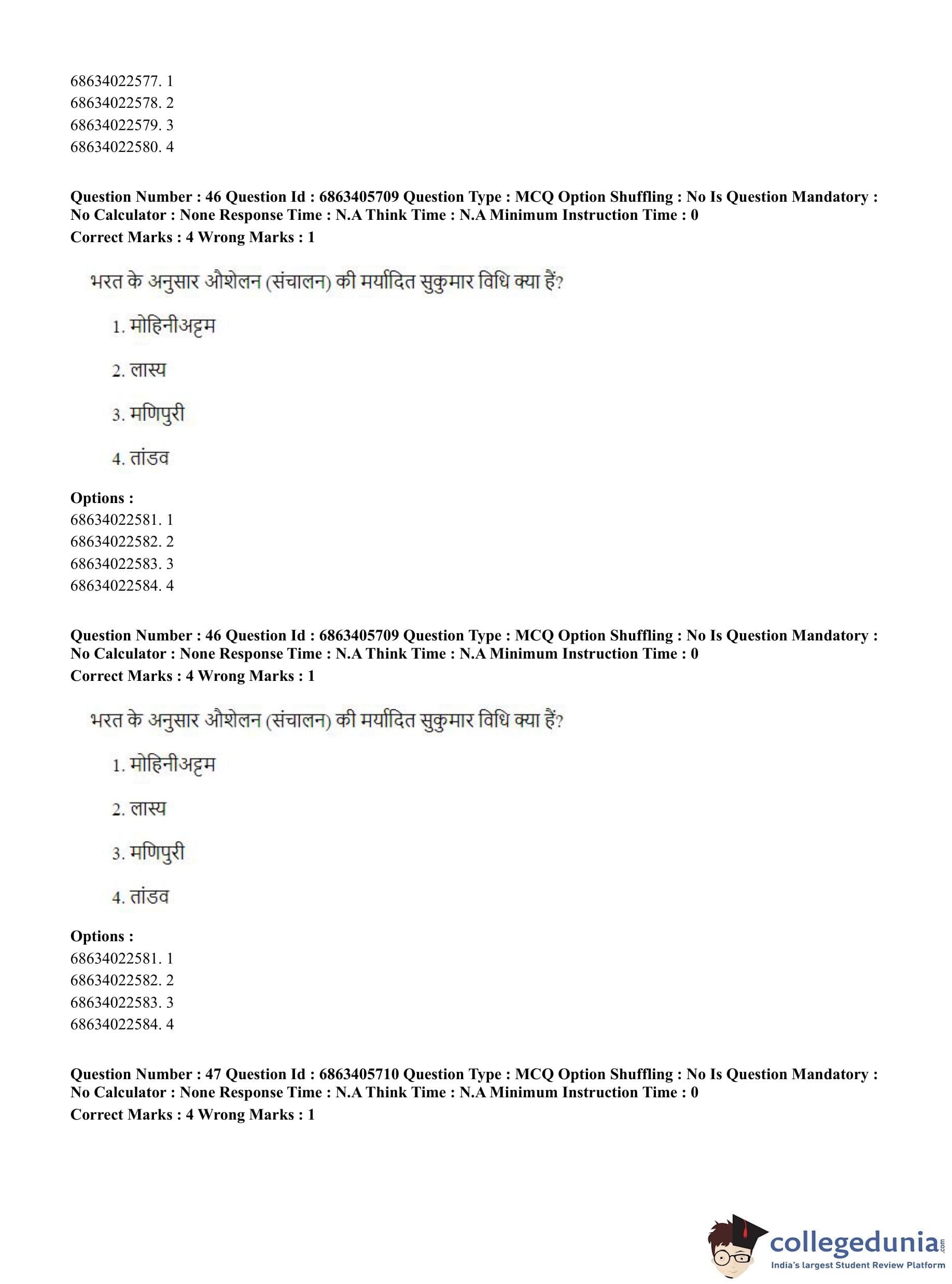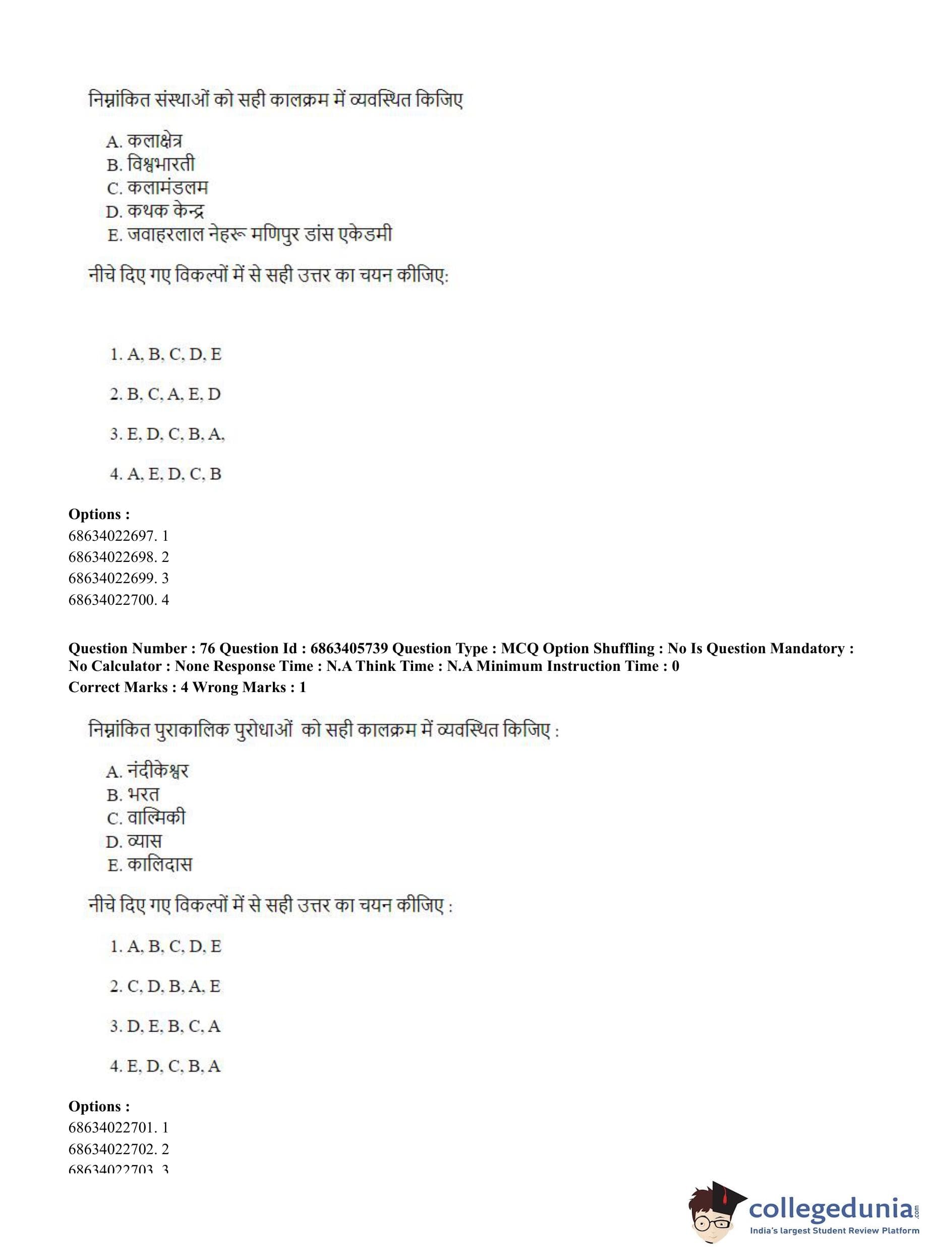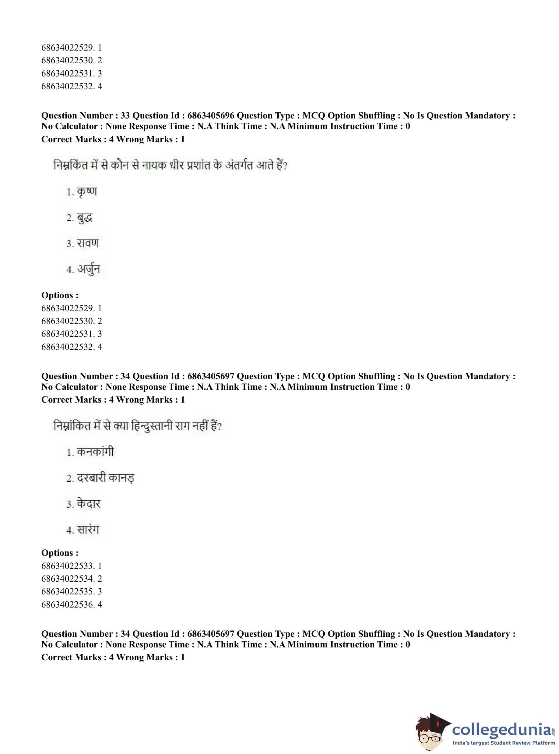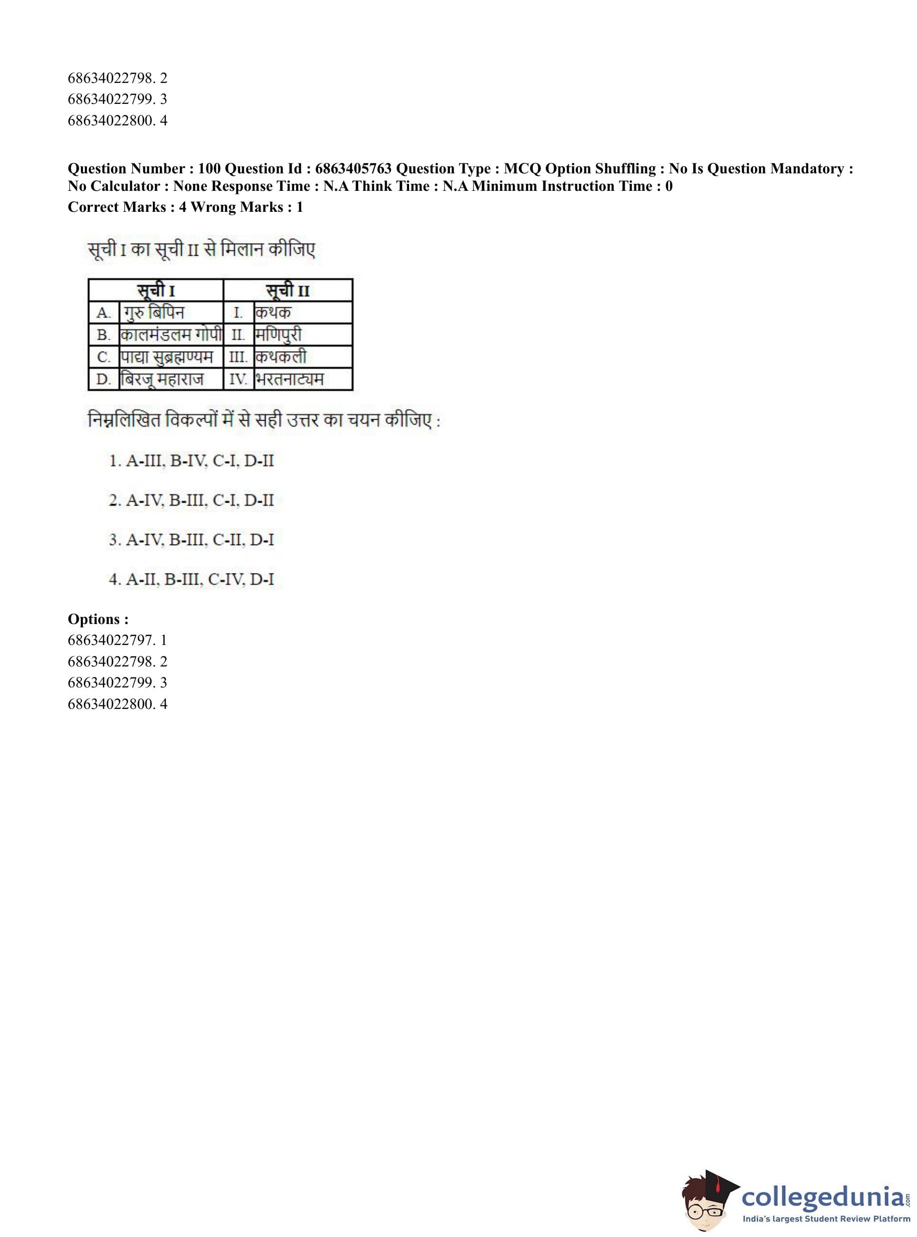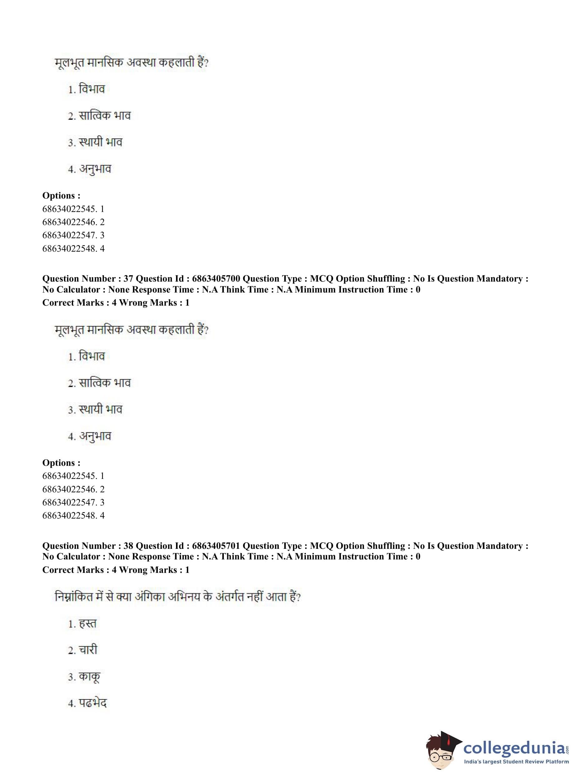 CUET PG 2023 Dance Question Paper in Hindi (June 5 - Shift 3)