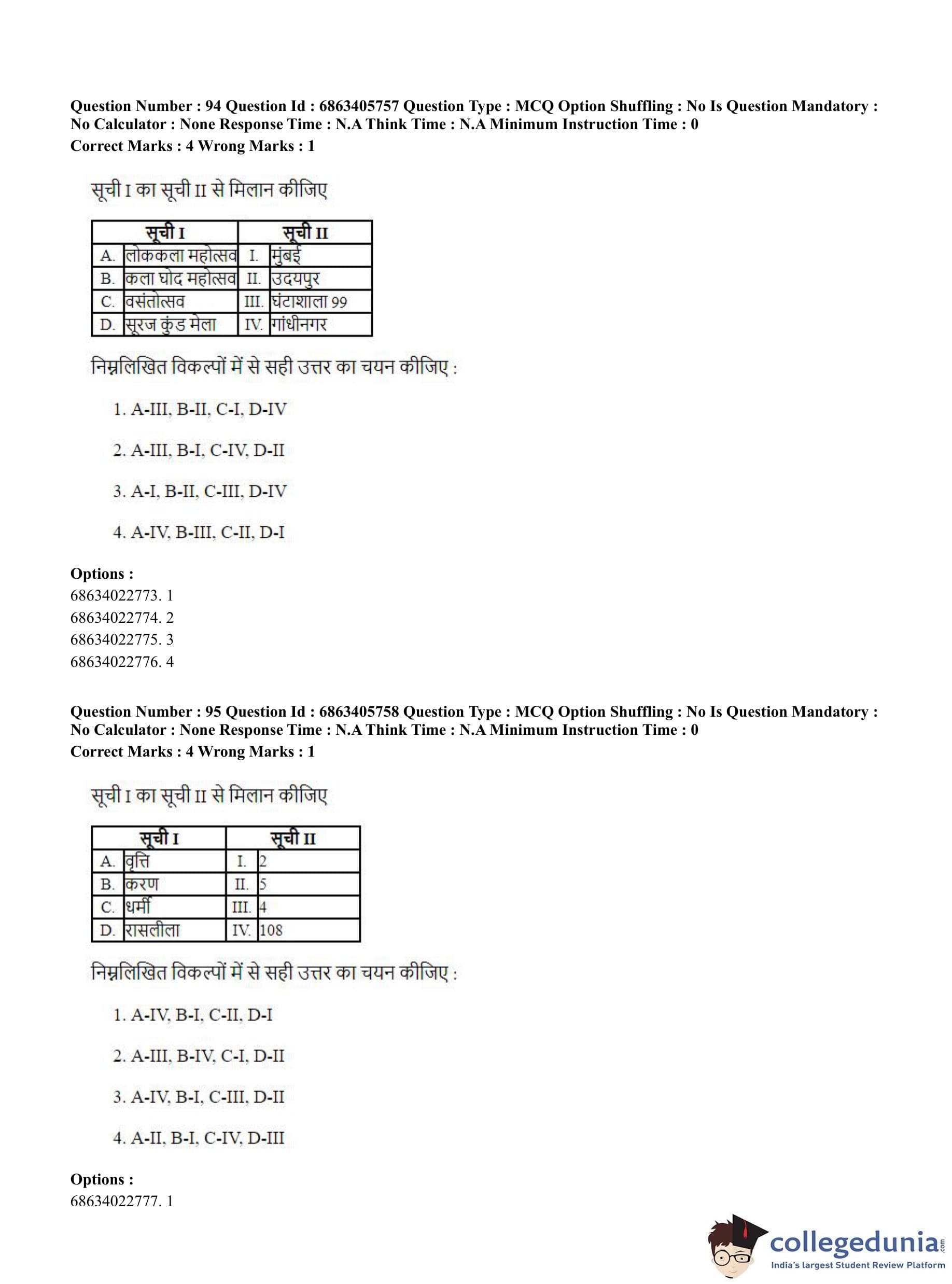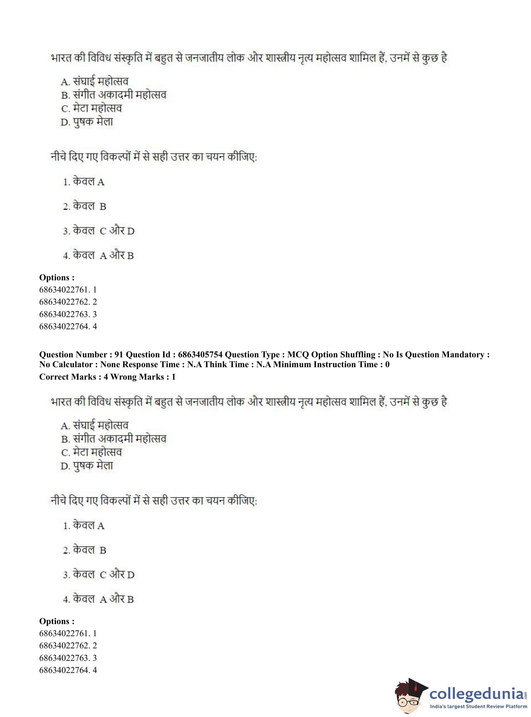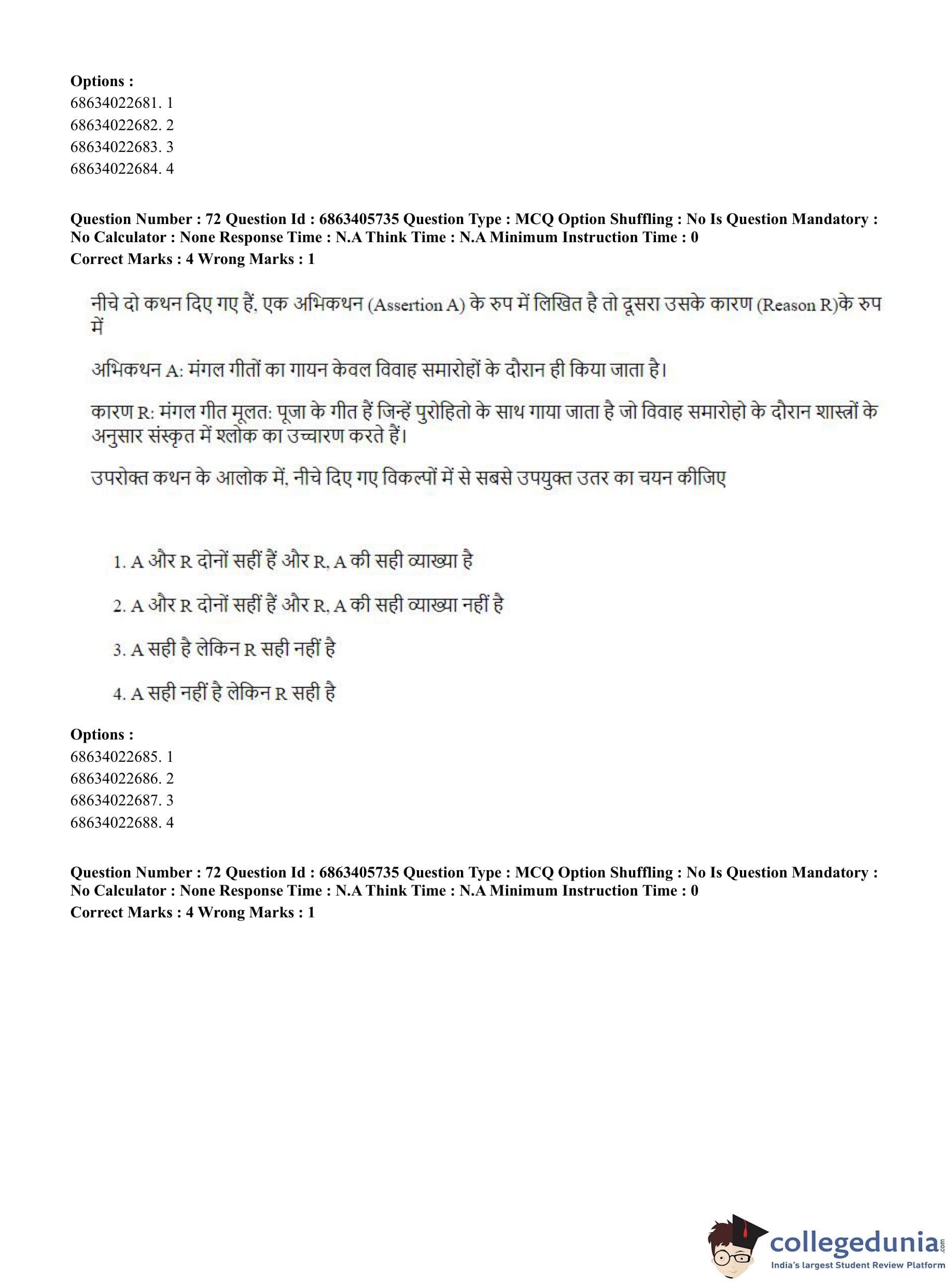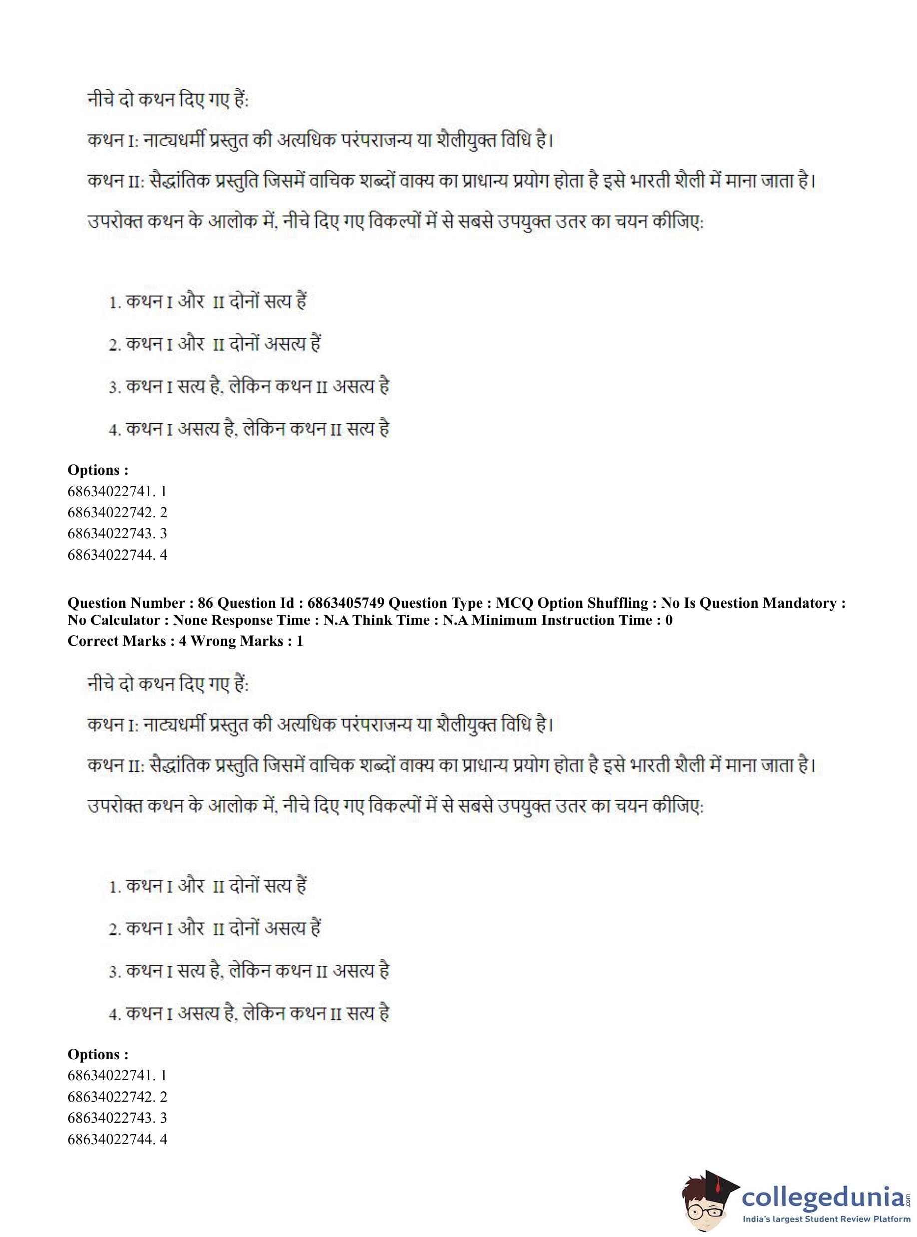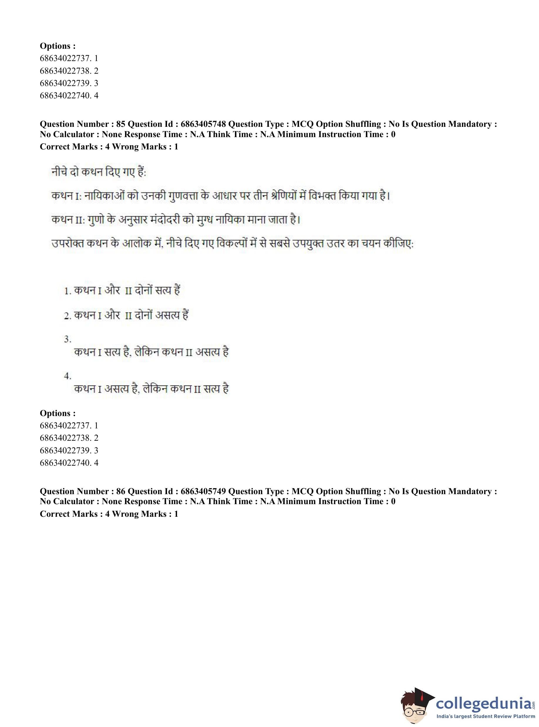 CUET PG 2023 Dance Question Paper in Hindi (June 5 - Shift 3)