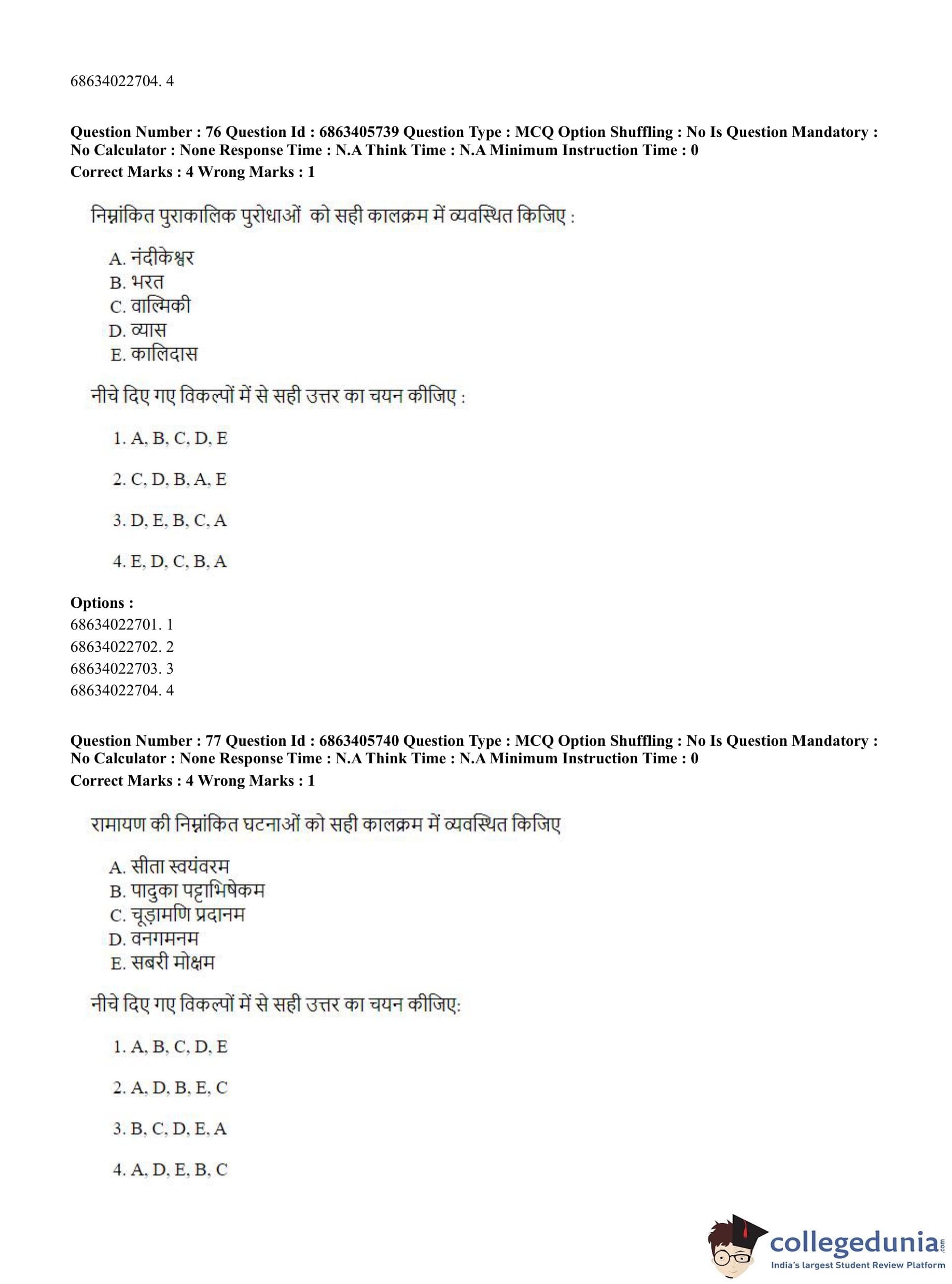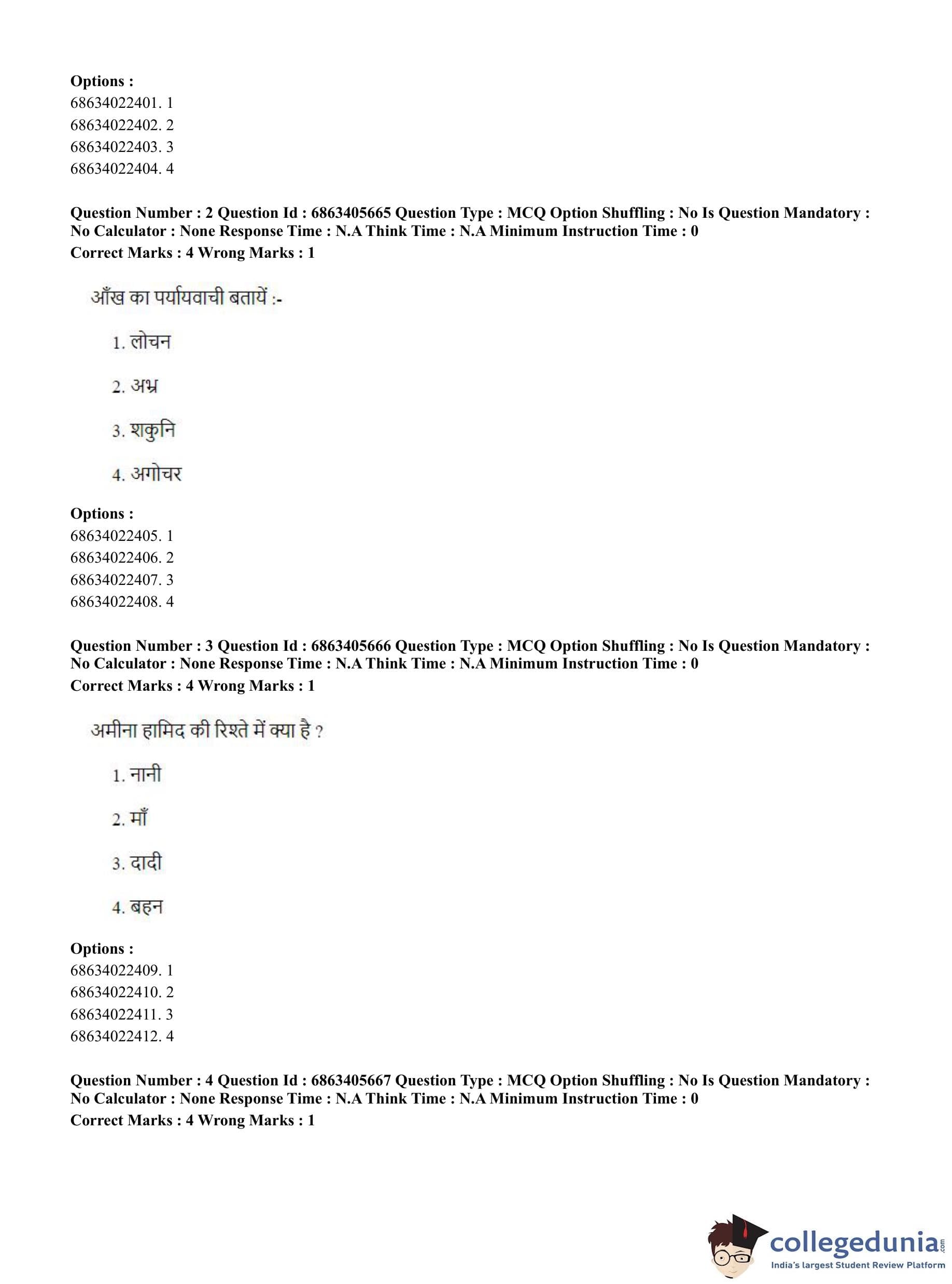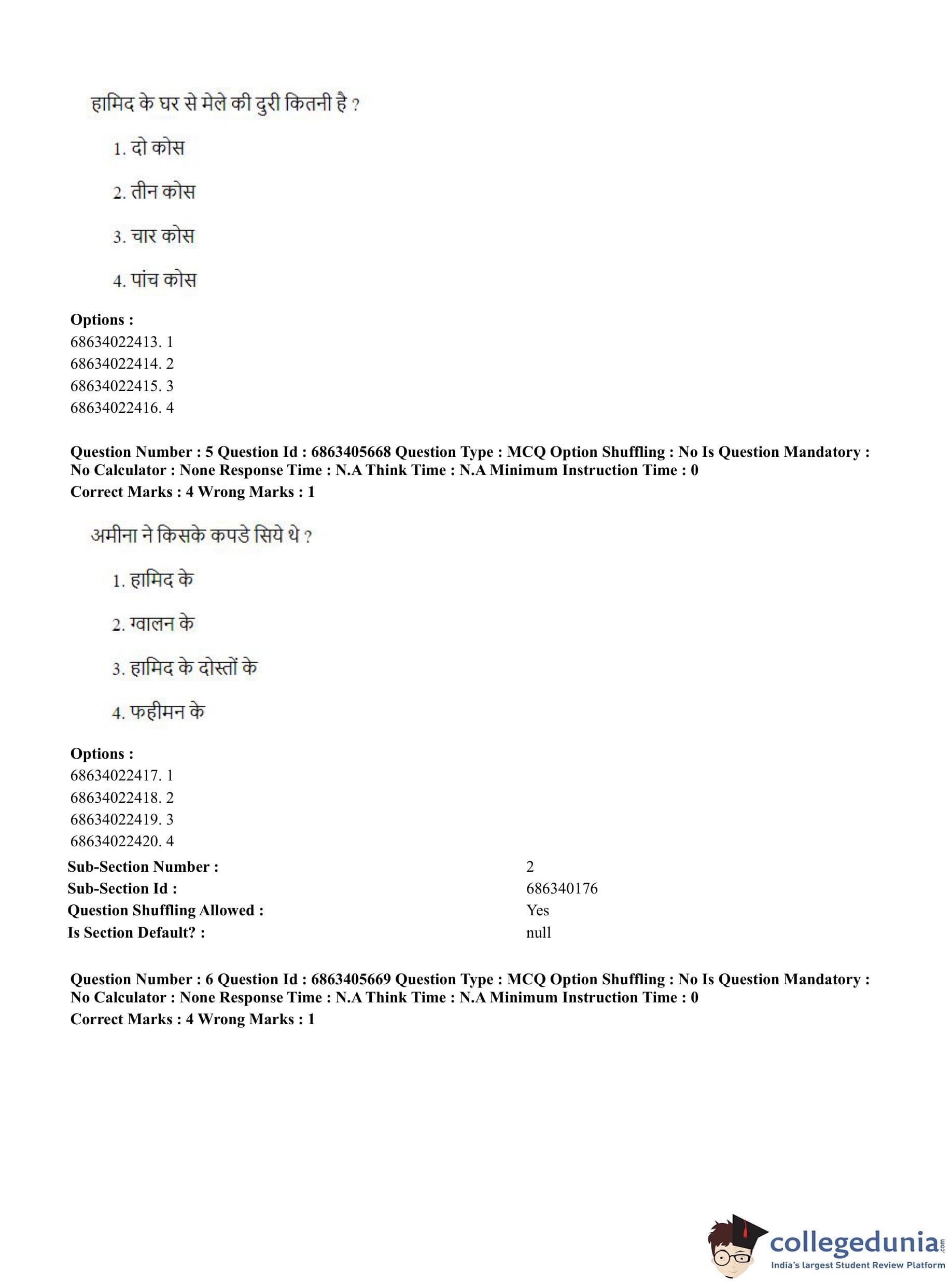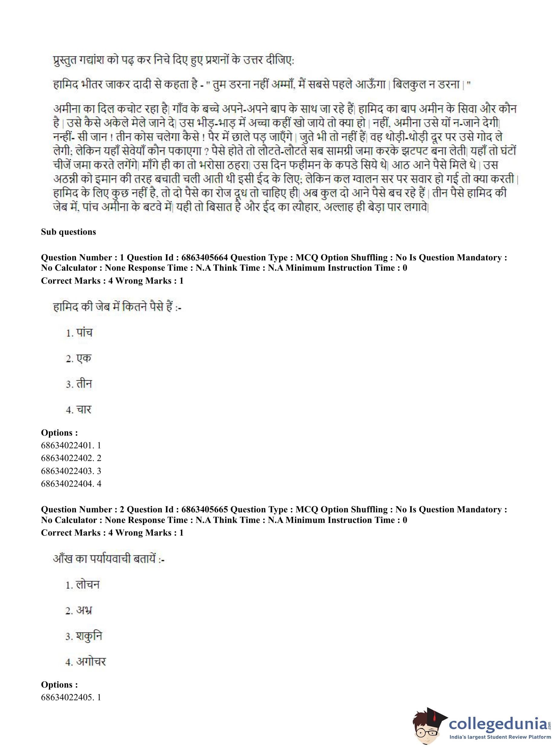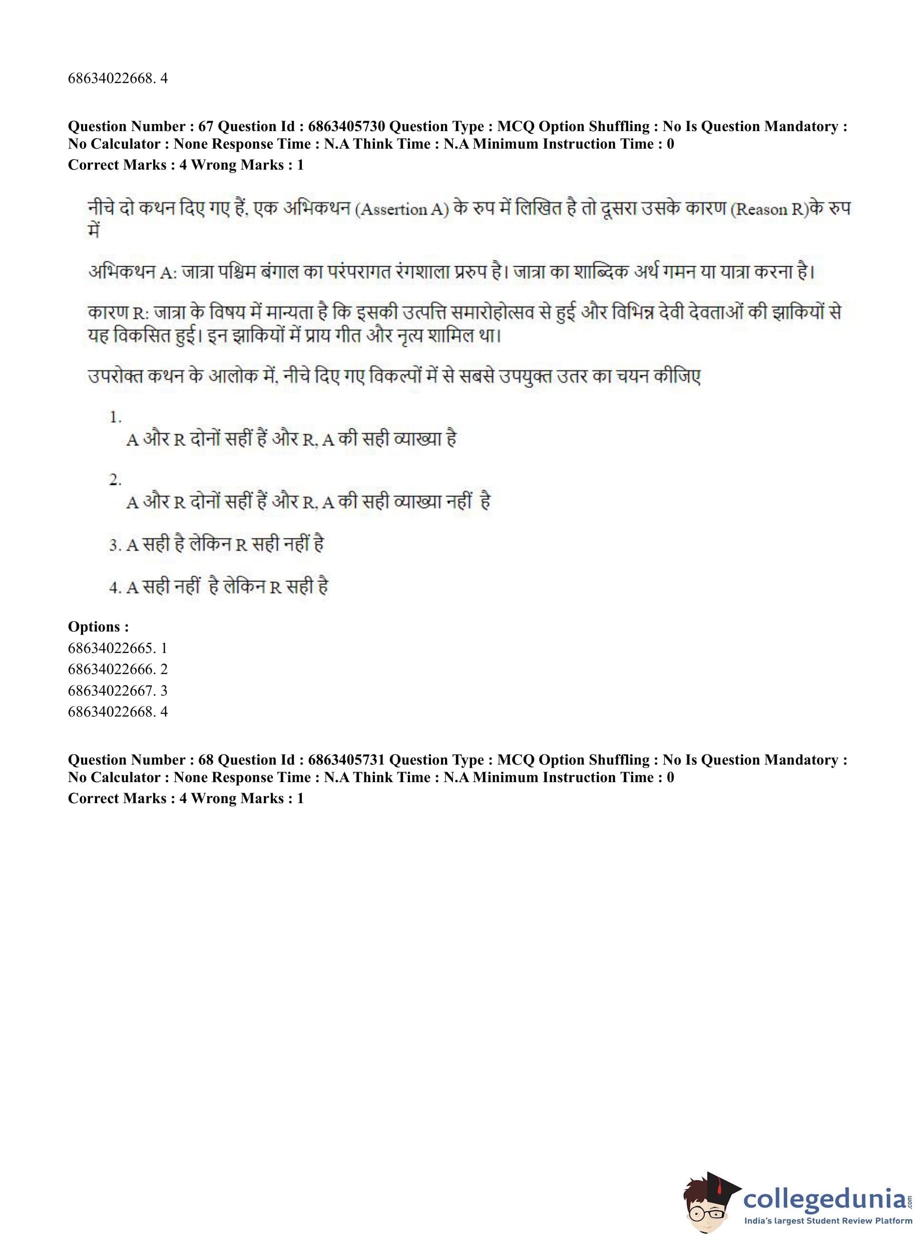 CUET PG 2023 Dance Question Paper in Hindi (June 5 - Shift 3)