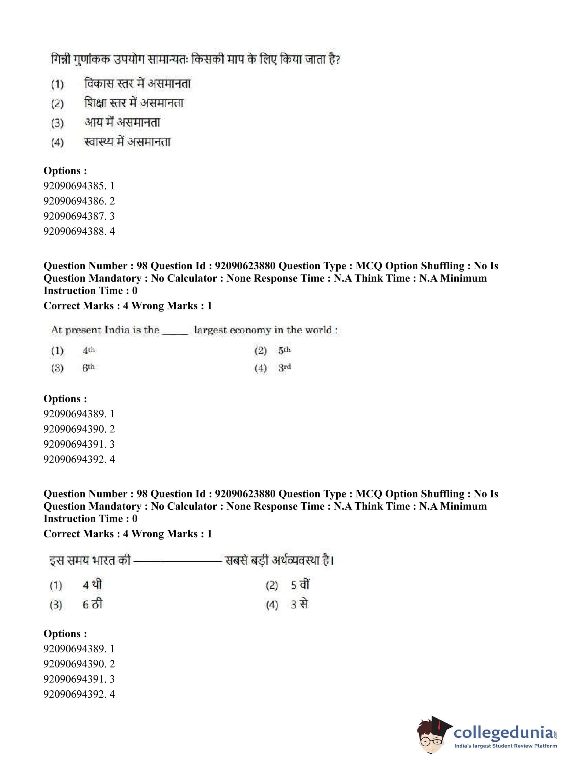 CUET PG 2023 Dev and Labour studies Question Paper in English (June 24 - Shift 2)