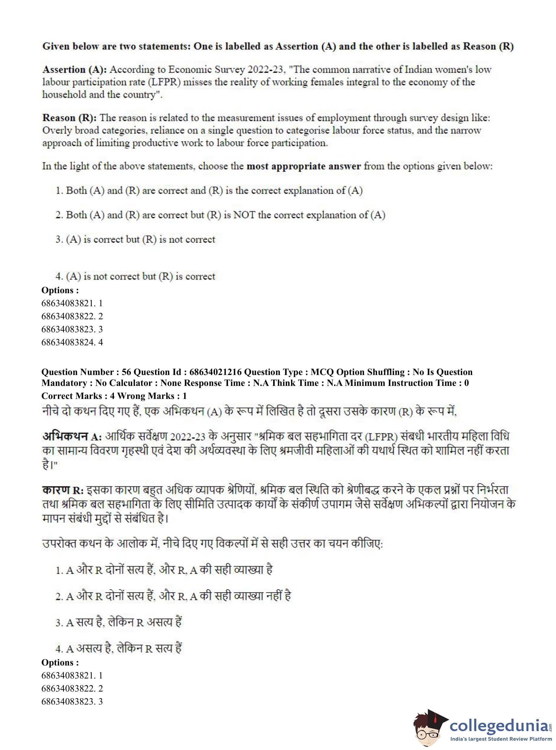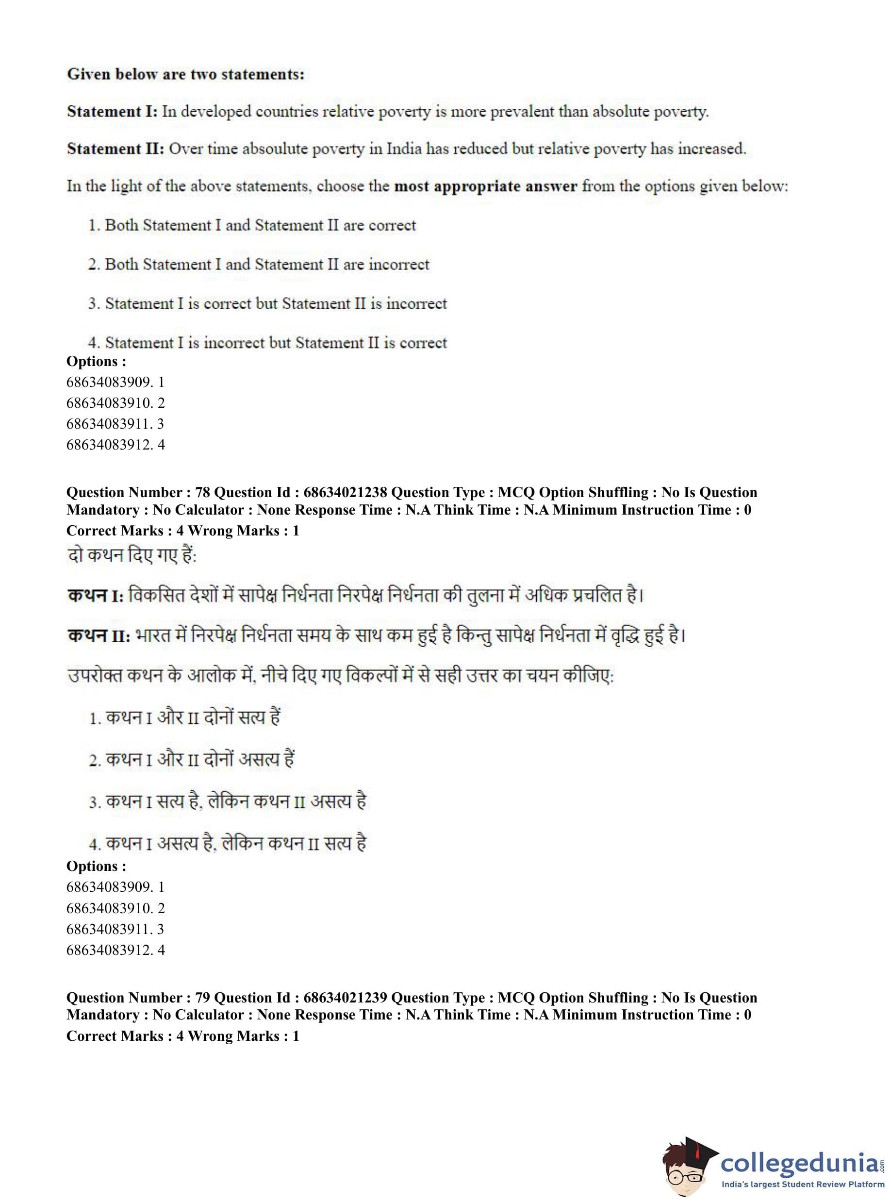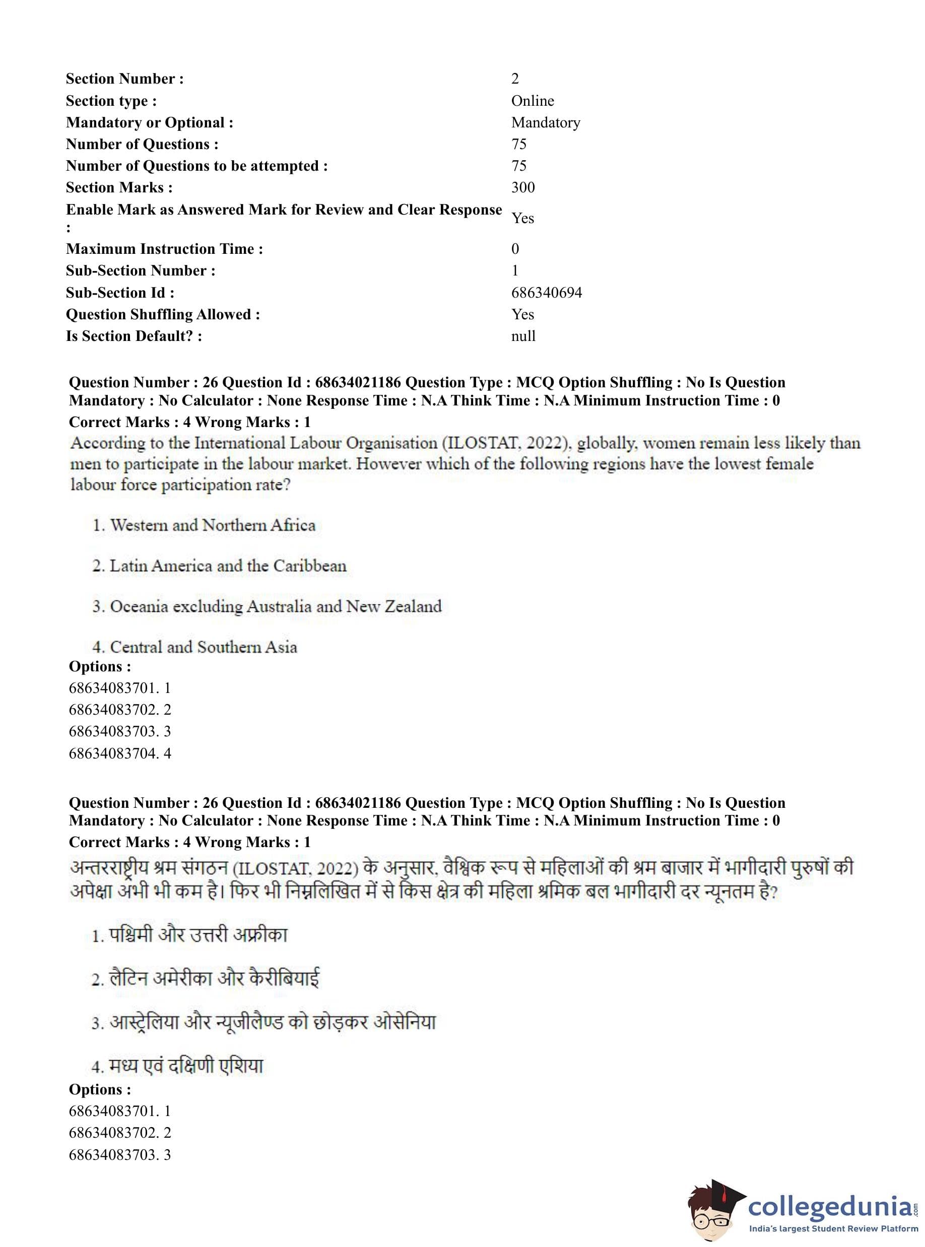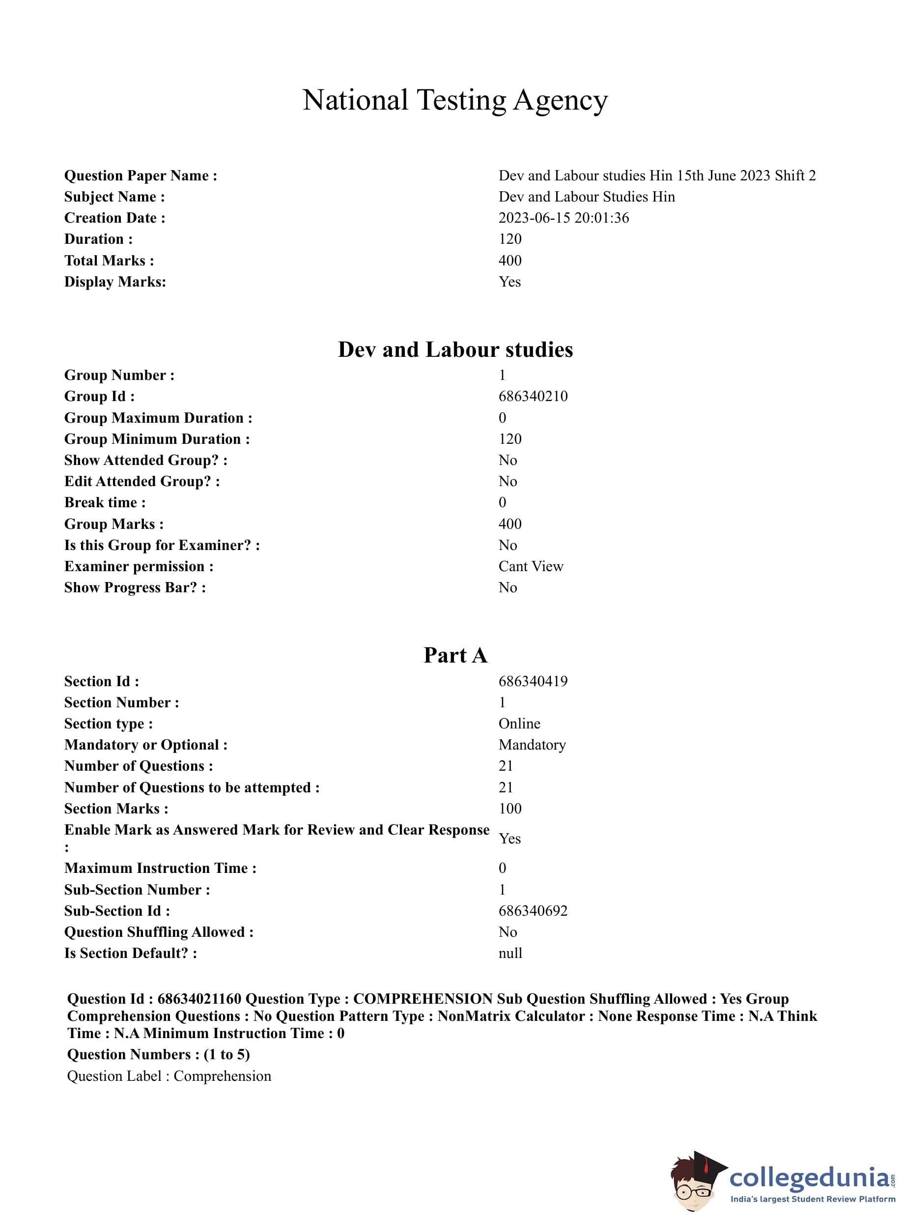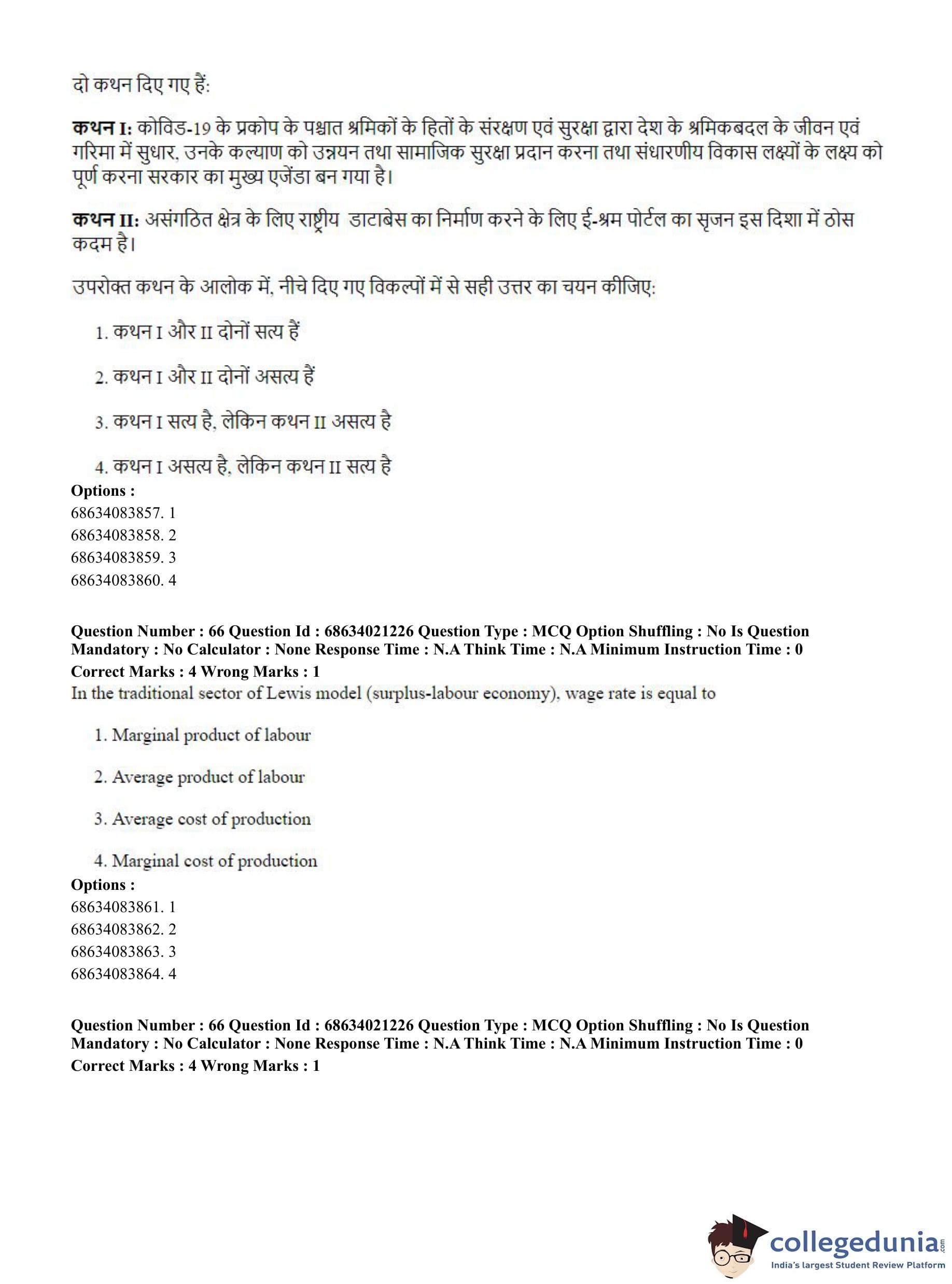 CUET PG 2023 Dev and Labour studies Question Paper in Hindi (June 15 - Shift 2)