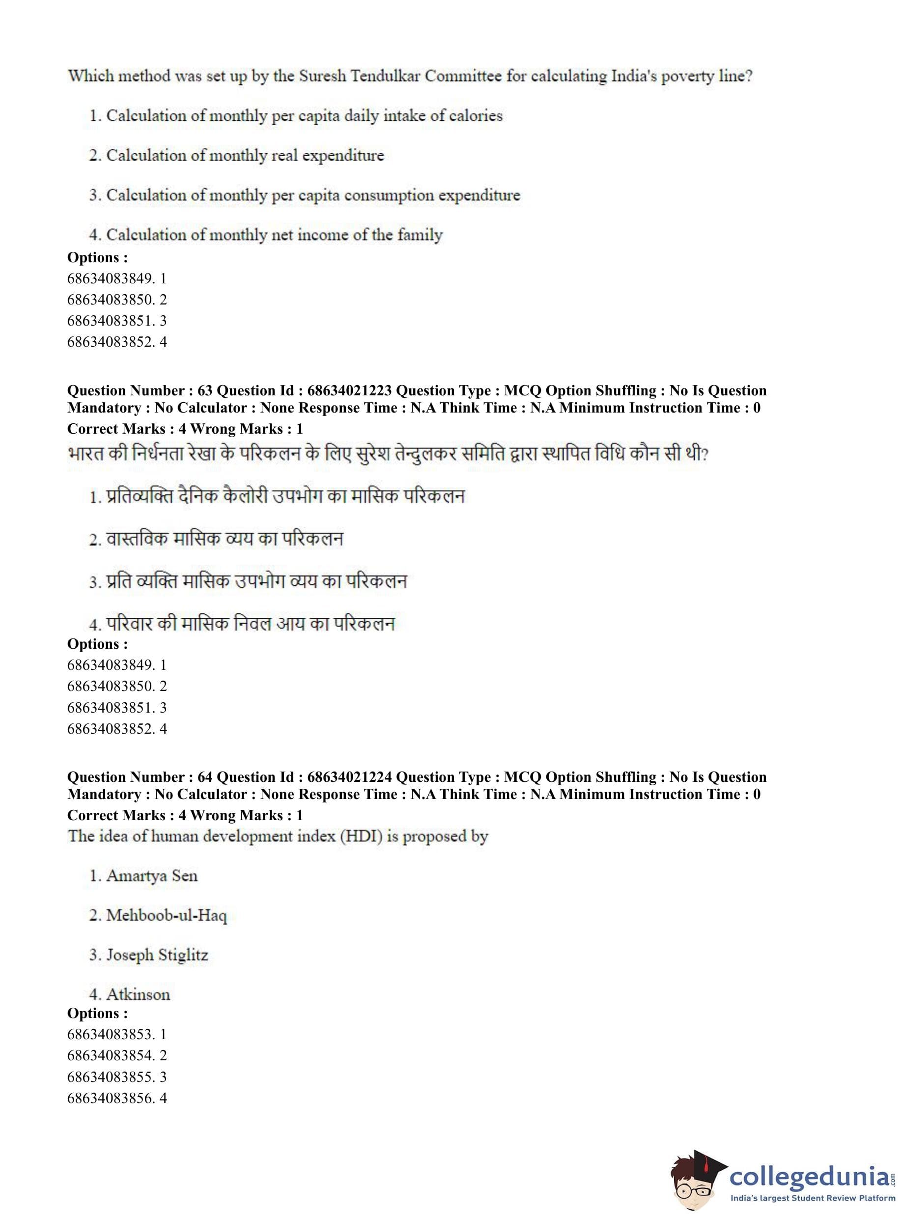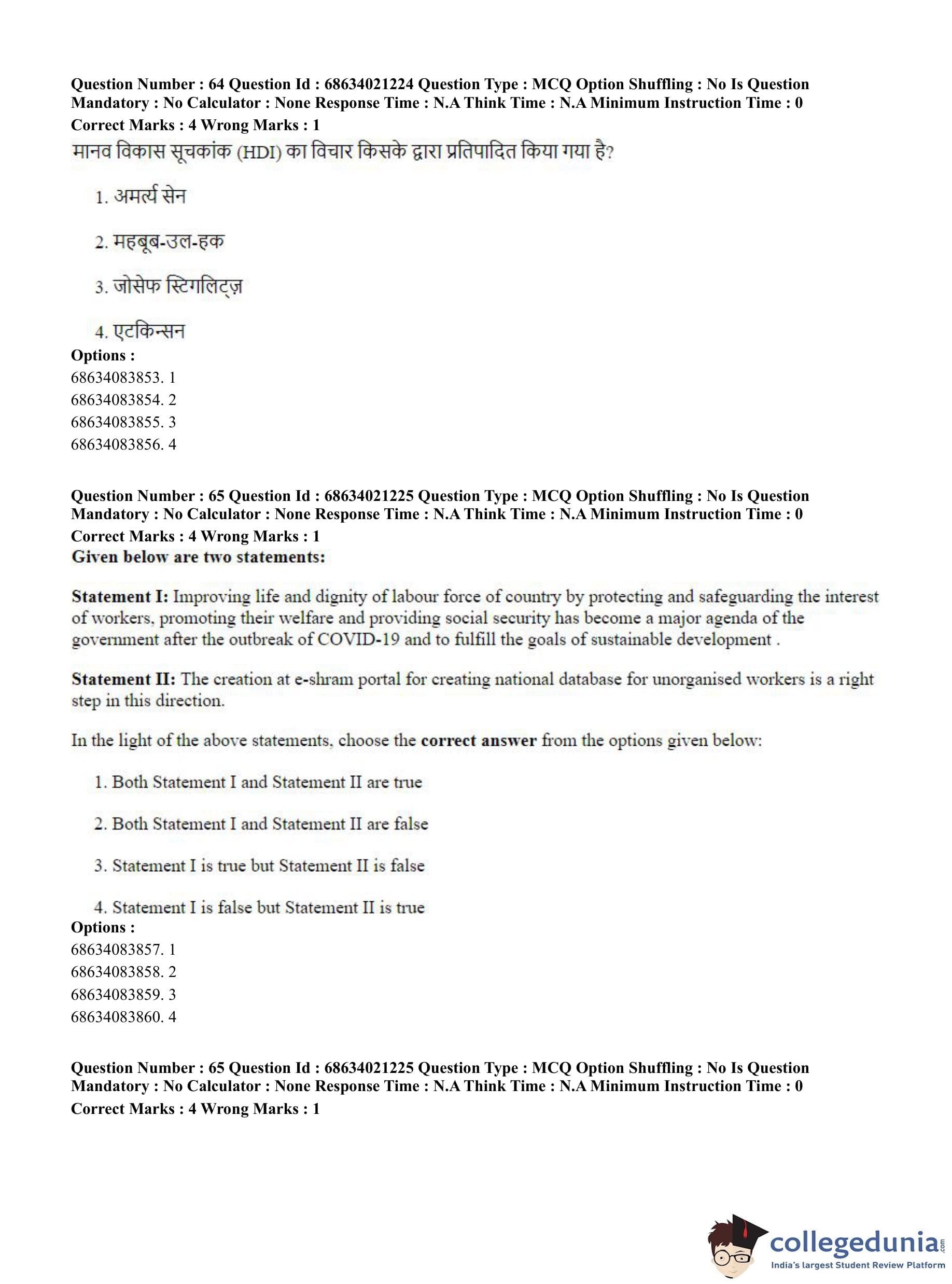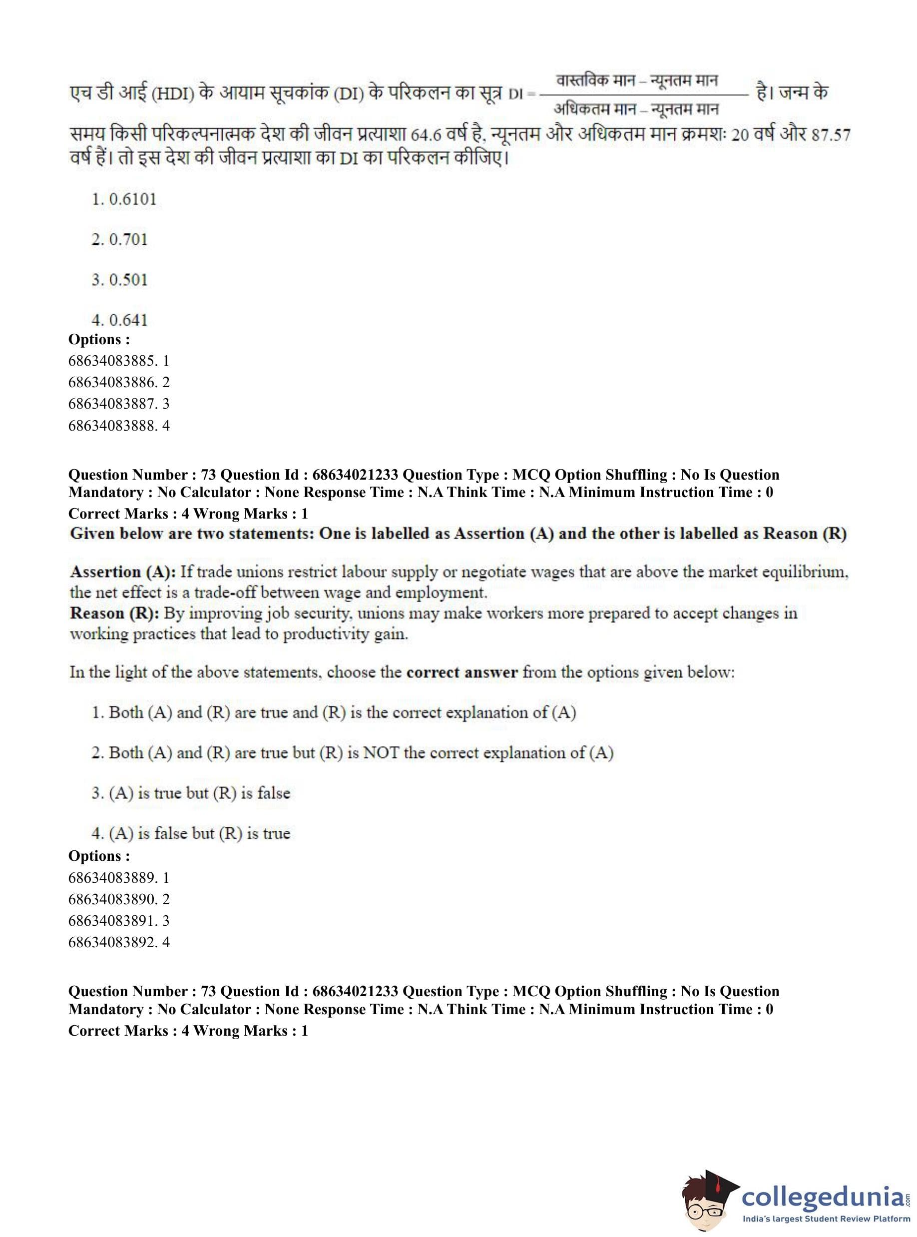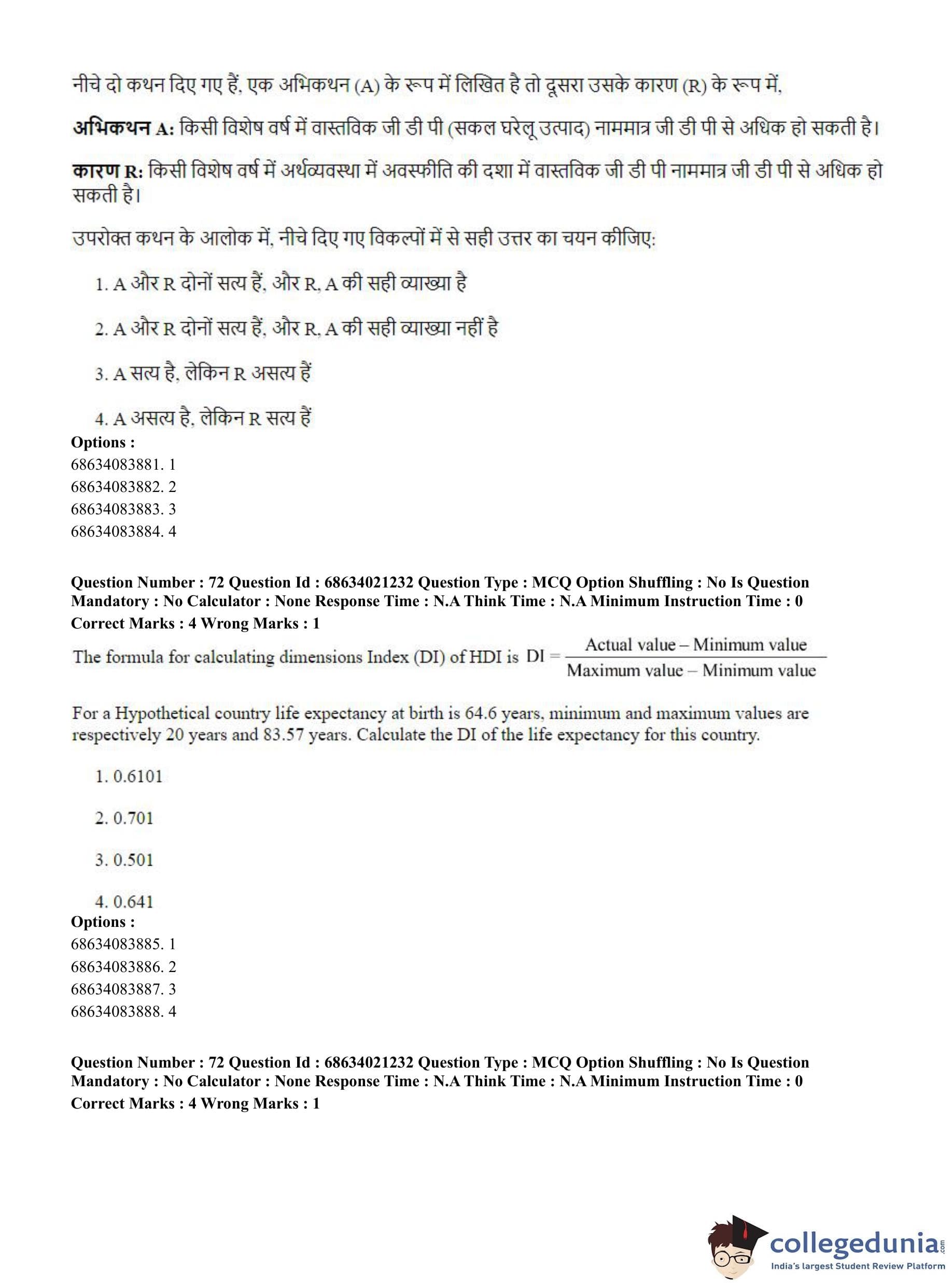 CUET PG 2023 Dev and Labour studies Question Paper in Hindi (June 15 - Shift 2)