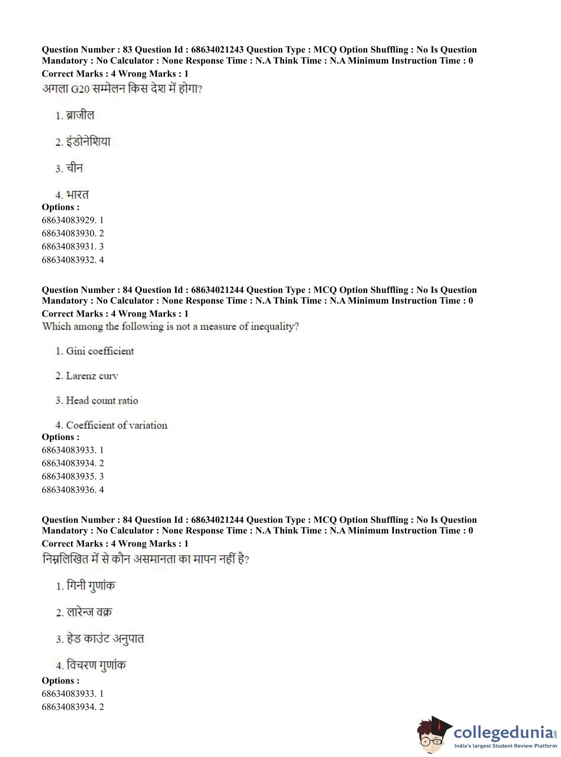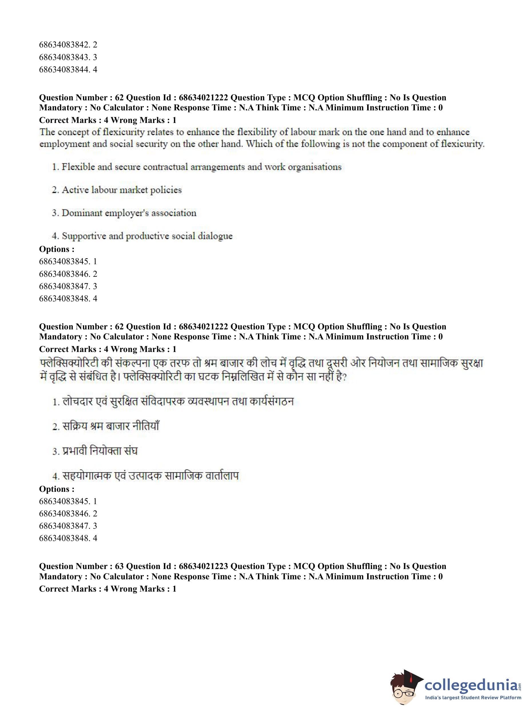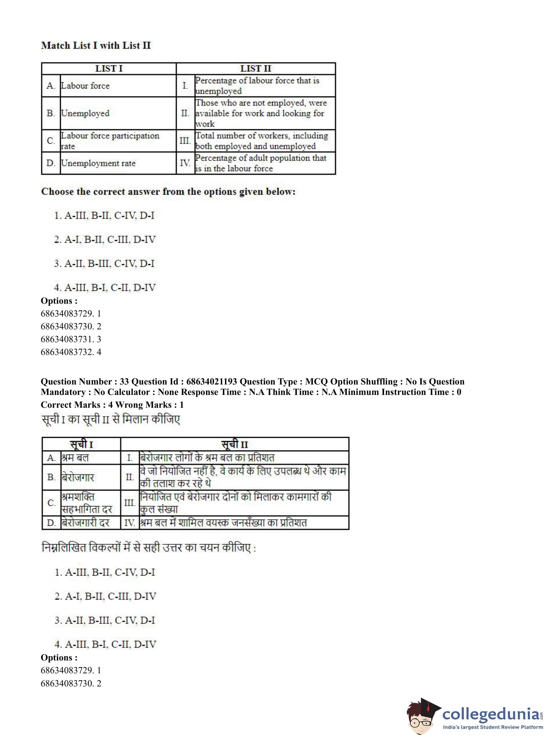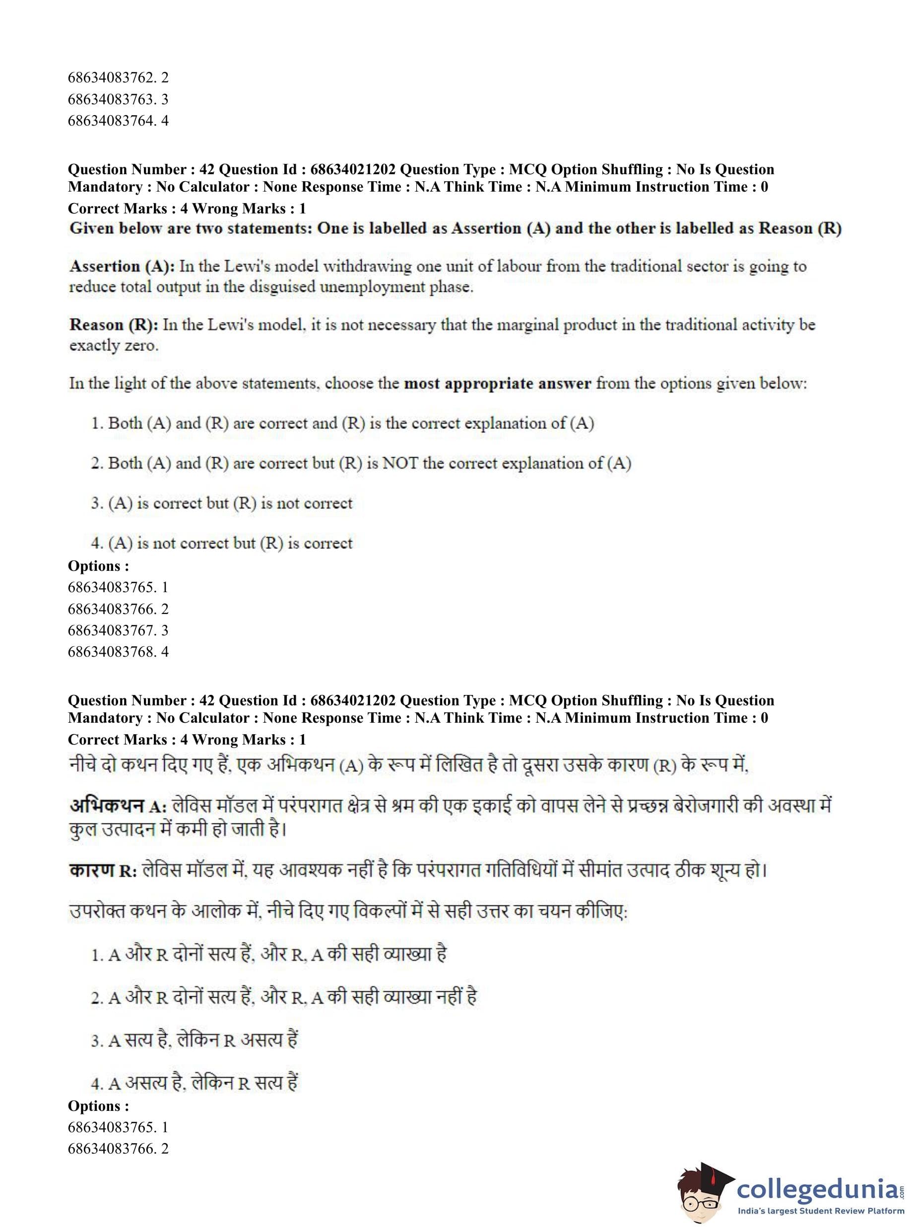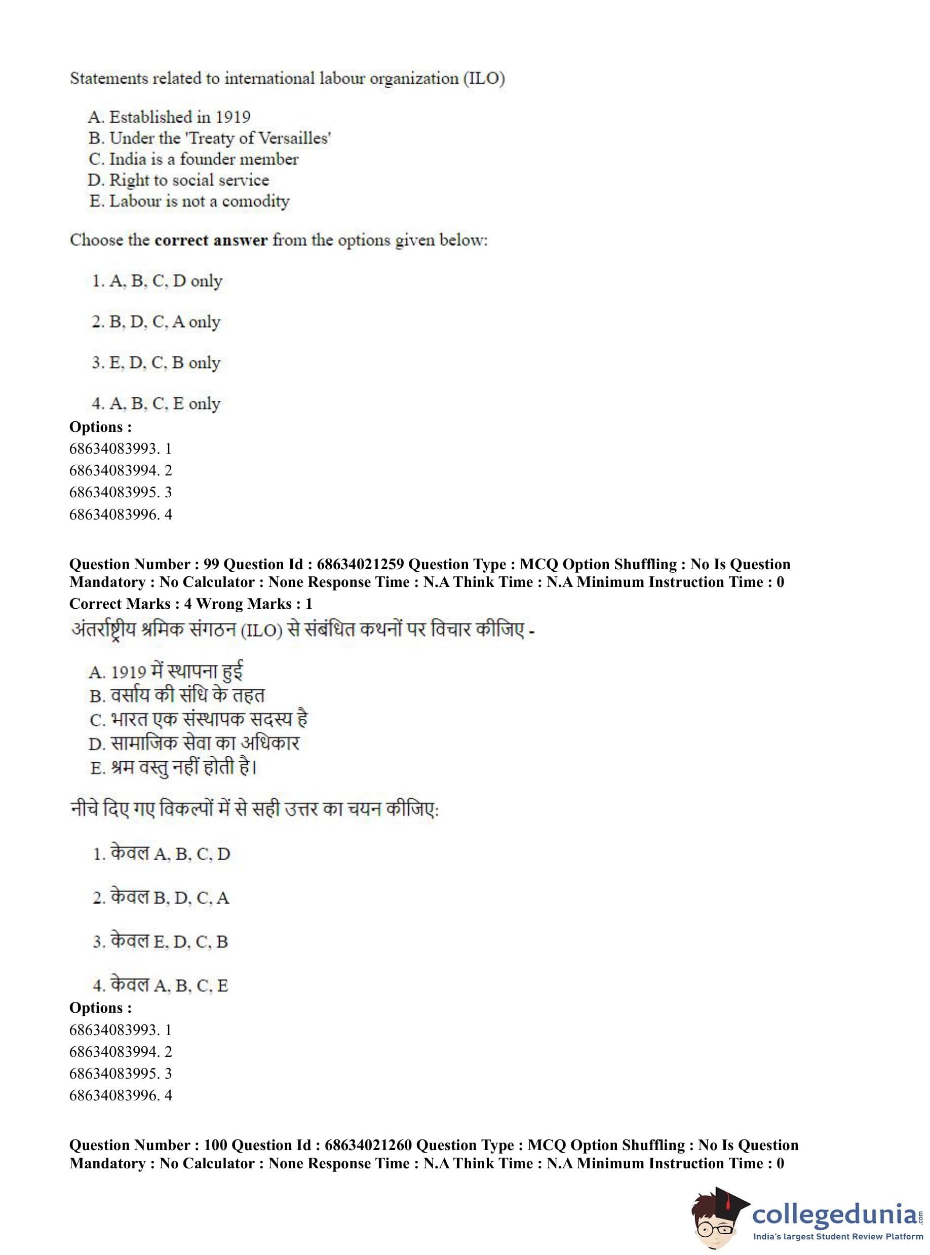 CUET PG 2023 Dev and Labour studies Question Paper in Hindi (June 15 - Shift 2)
