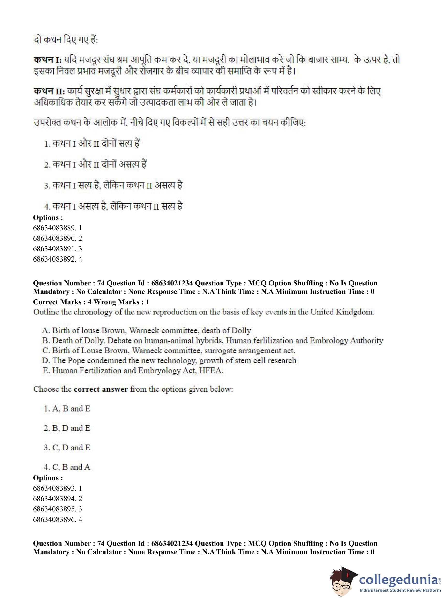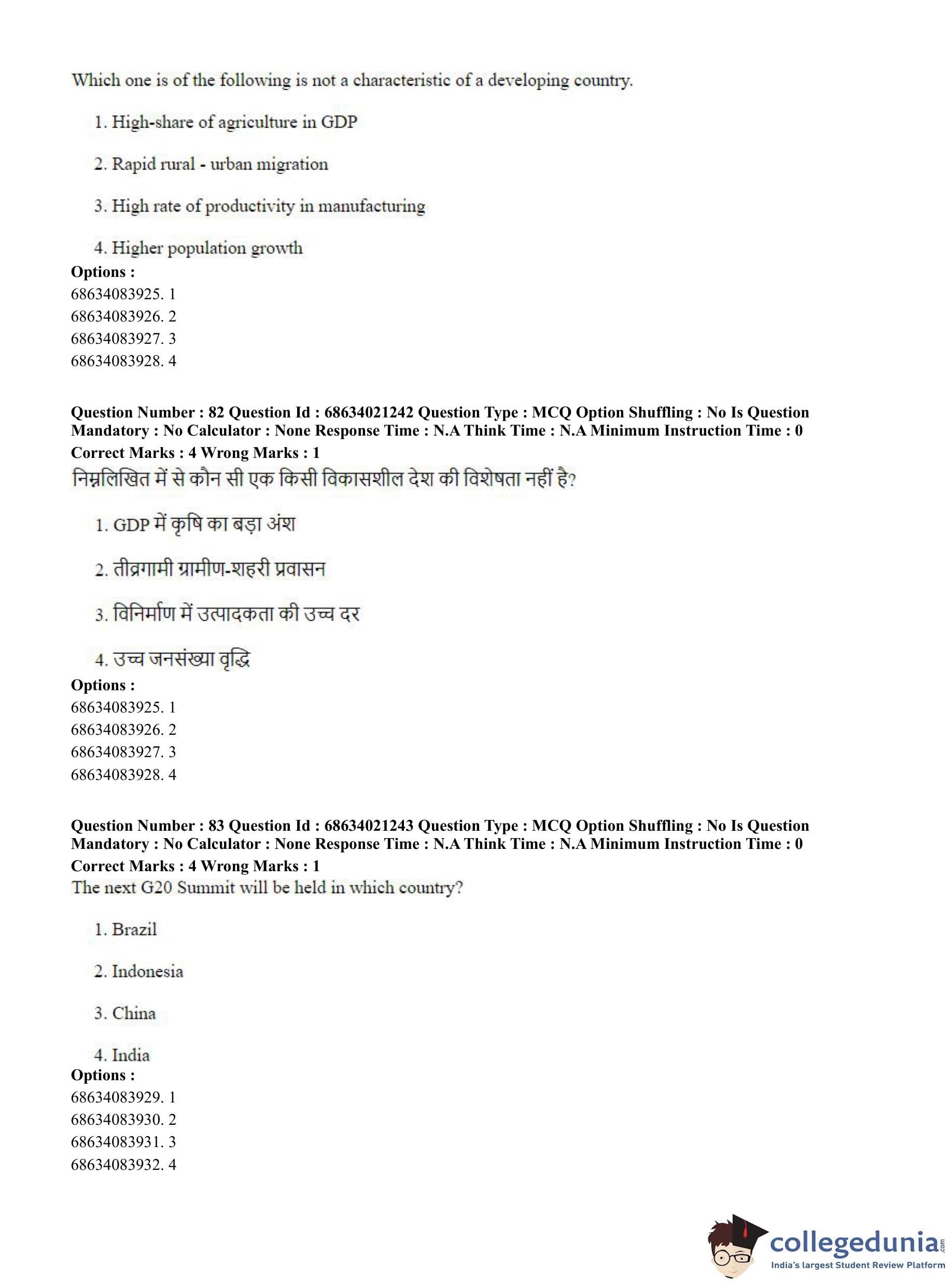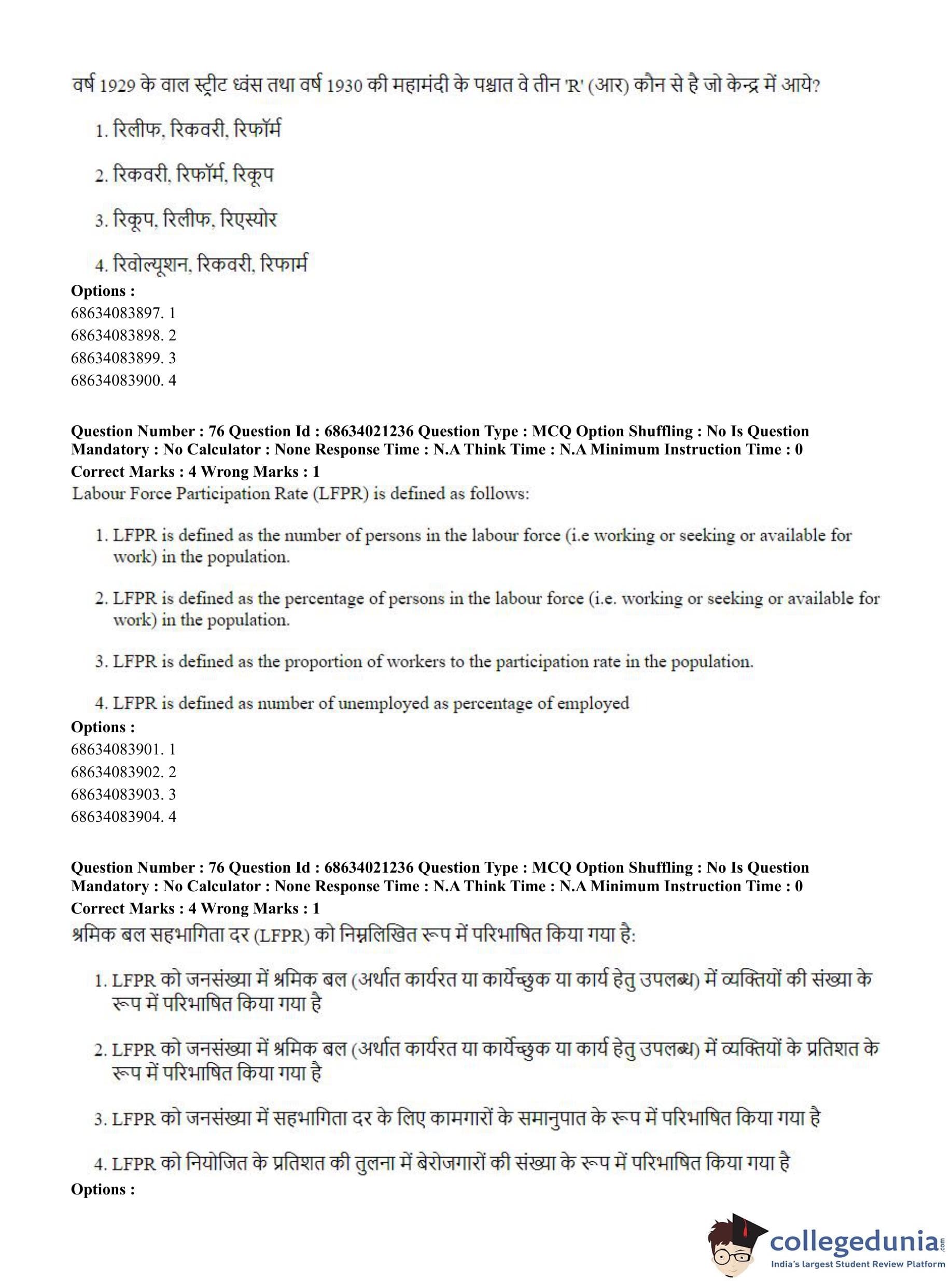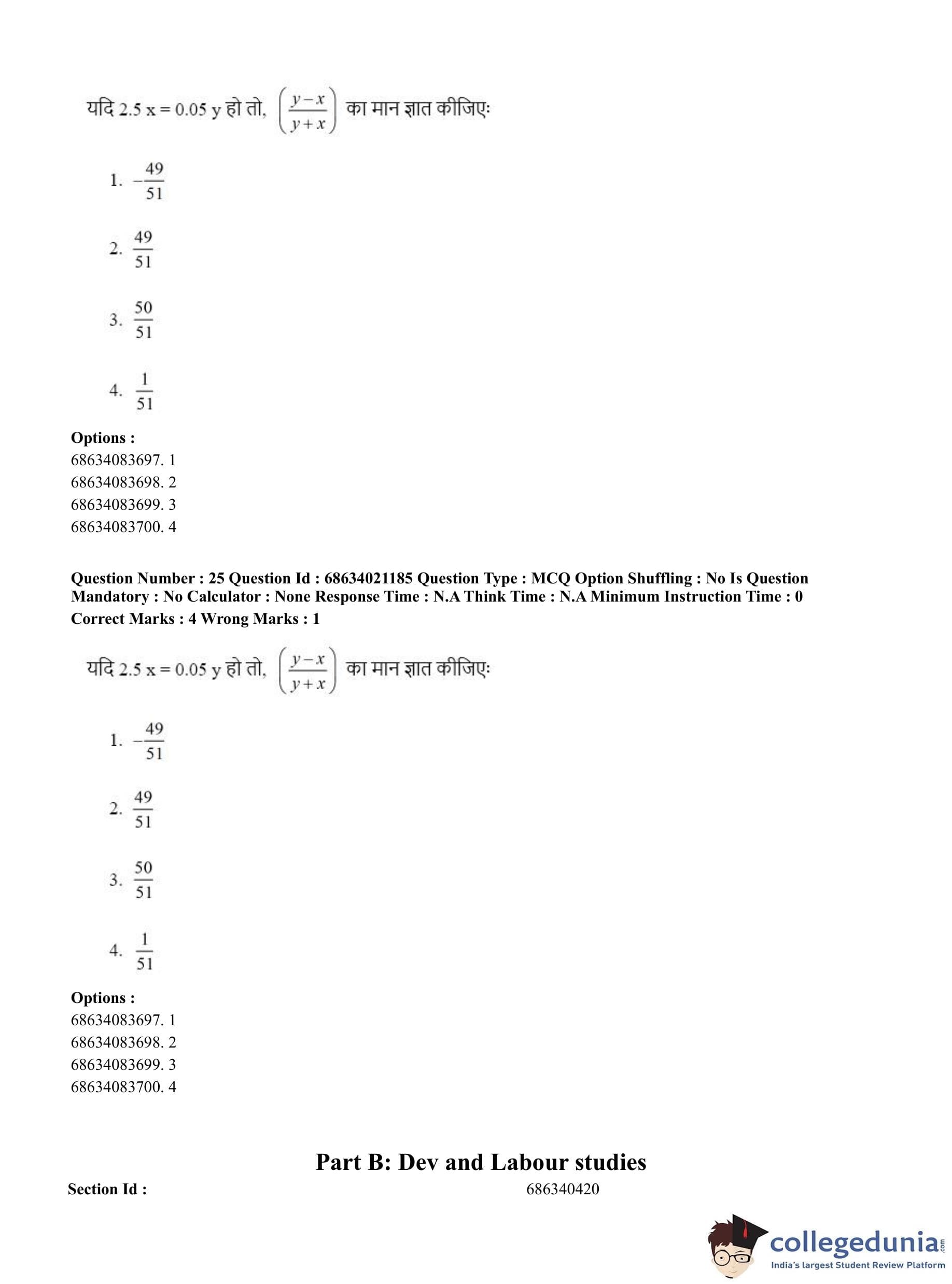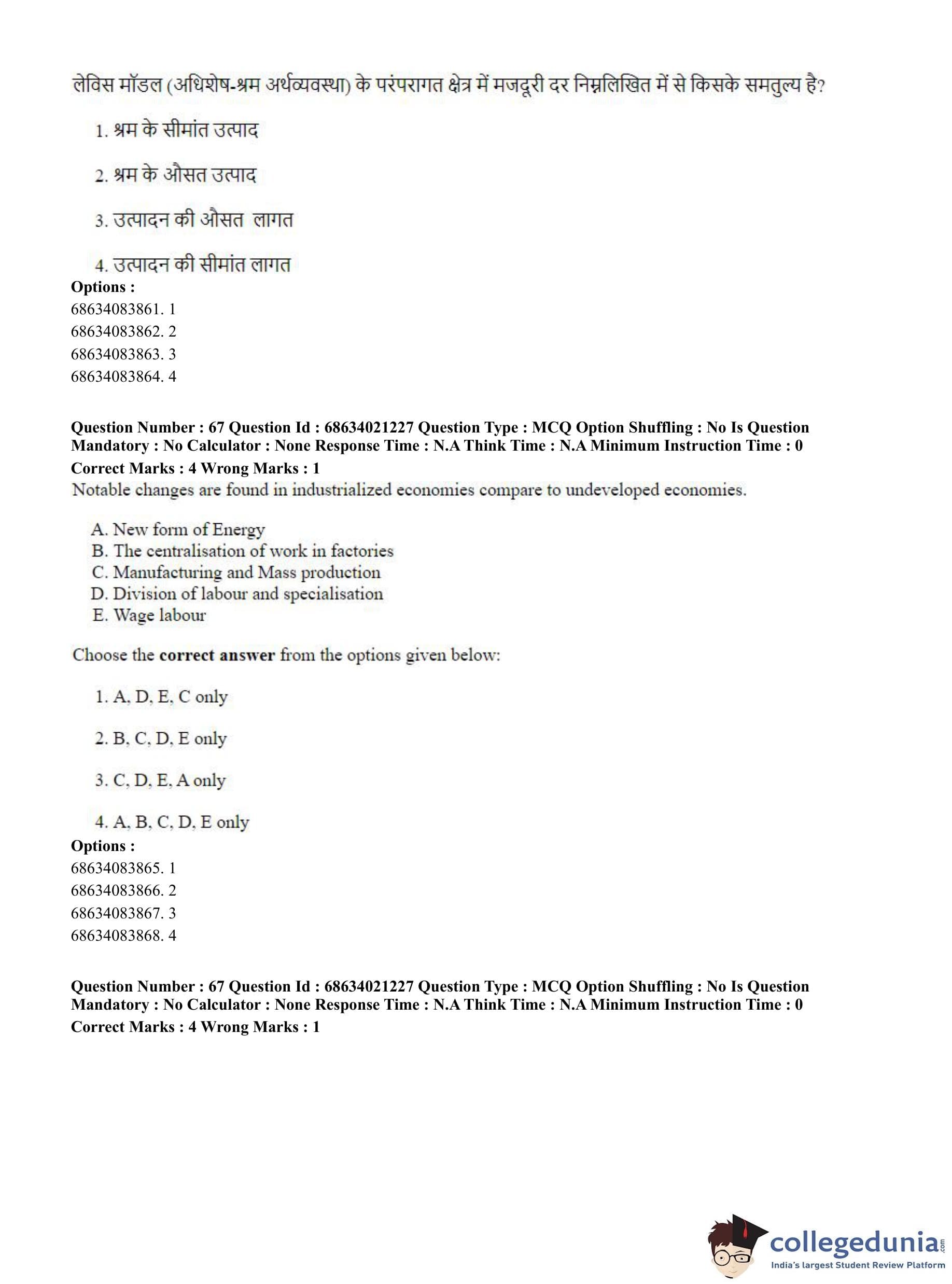CUET PG 2023 Dev and Labour studies Question Paper in Hindi (June 15 - Shift 2)