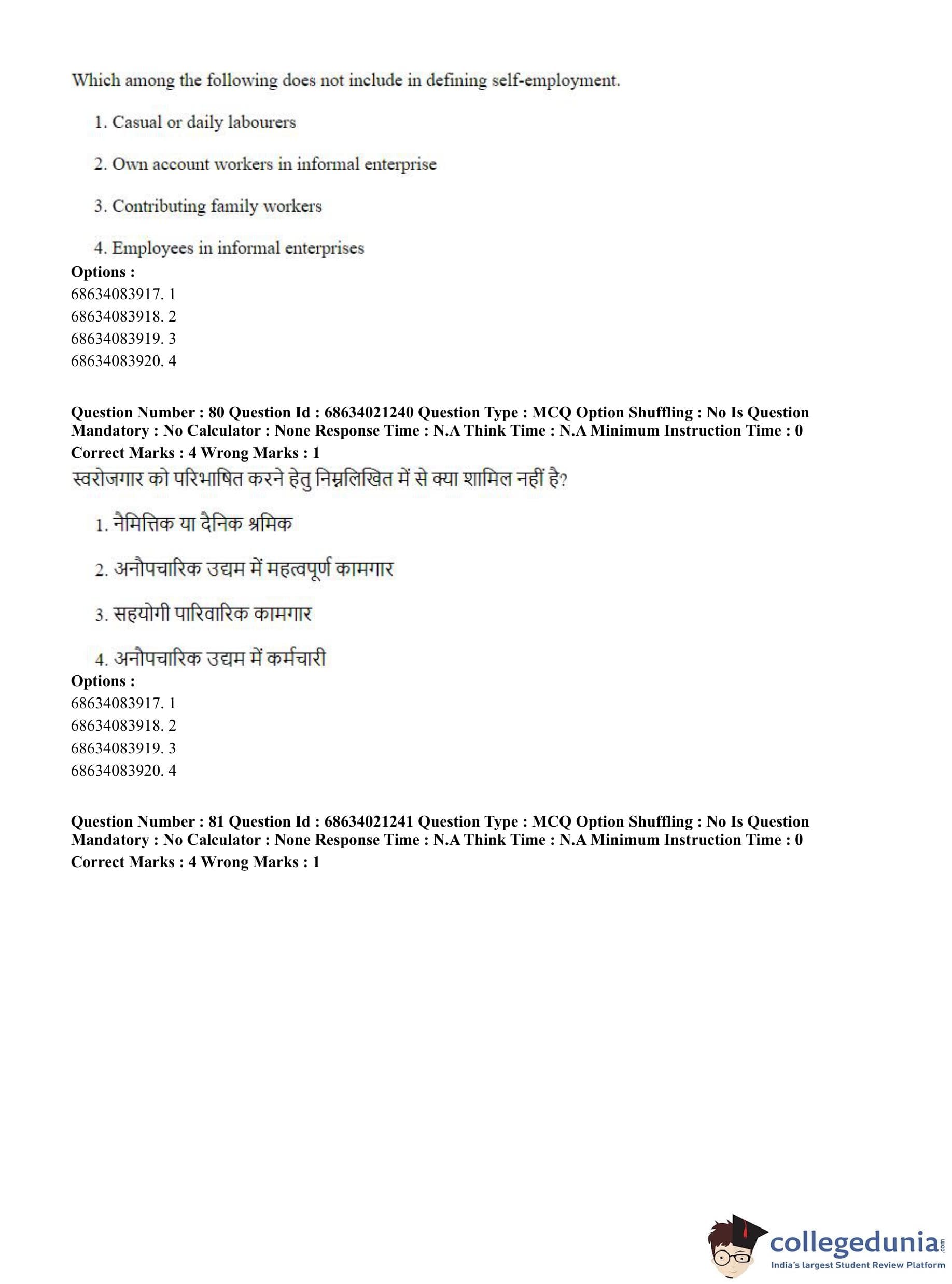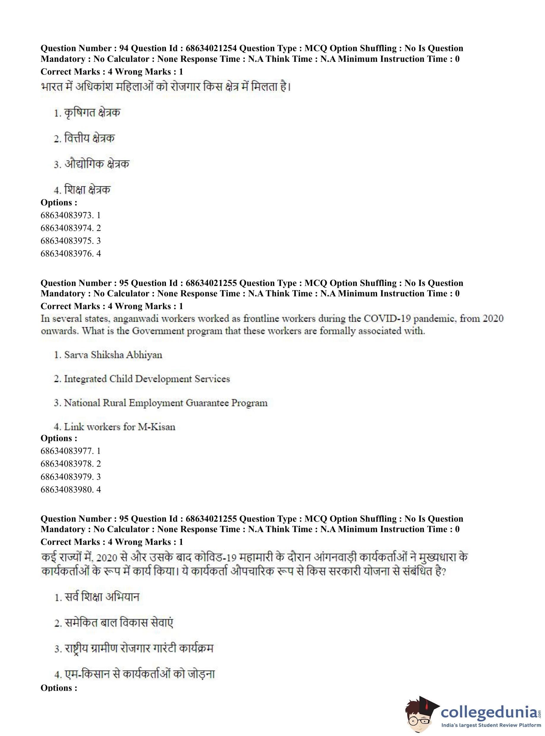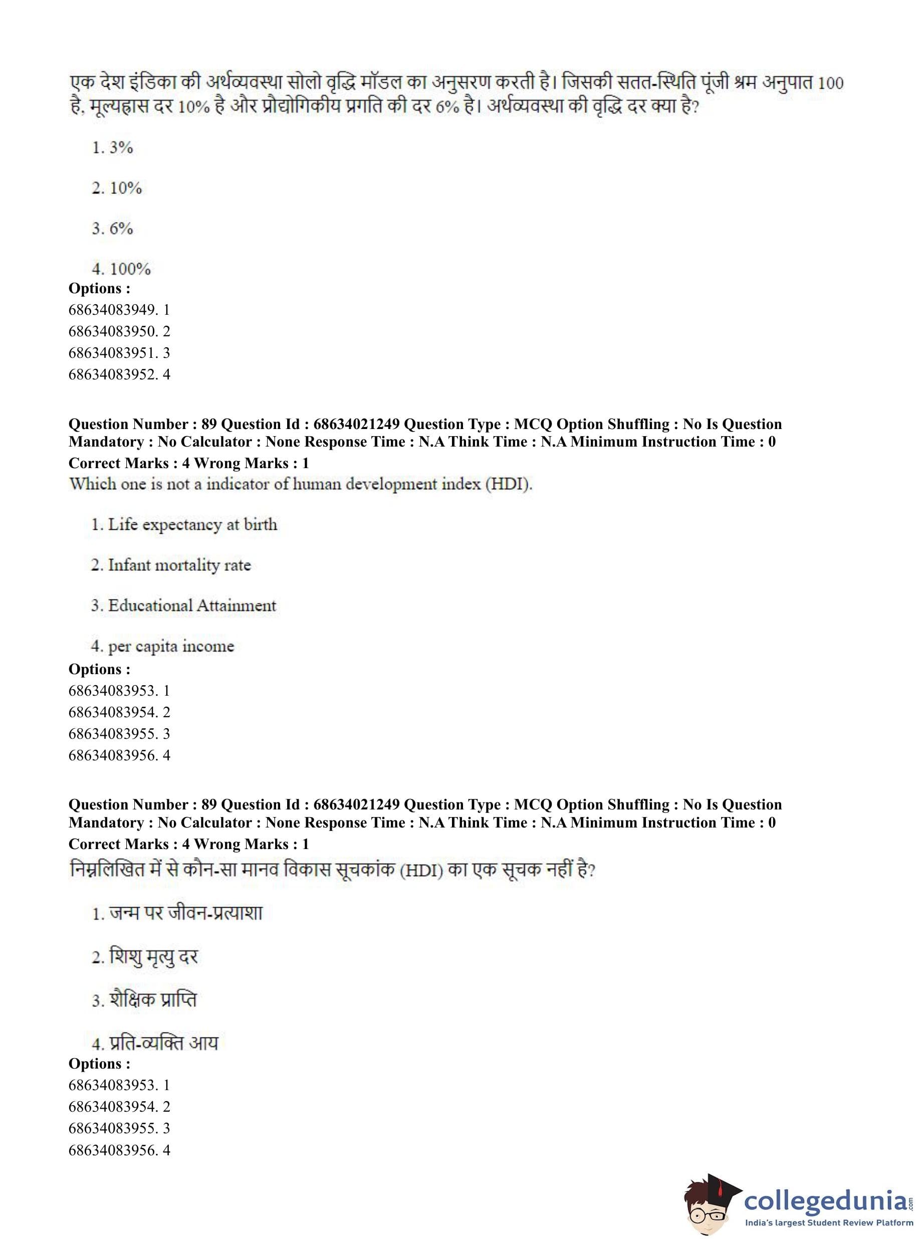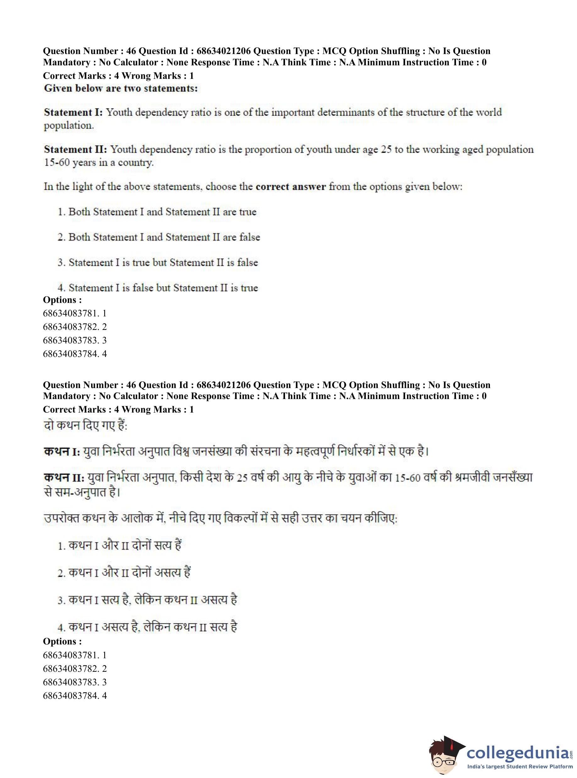 CUET PG 2023 Dev and Labour studies Question Paper in Hindi (June 15 - Shift 2)