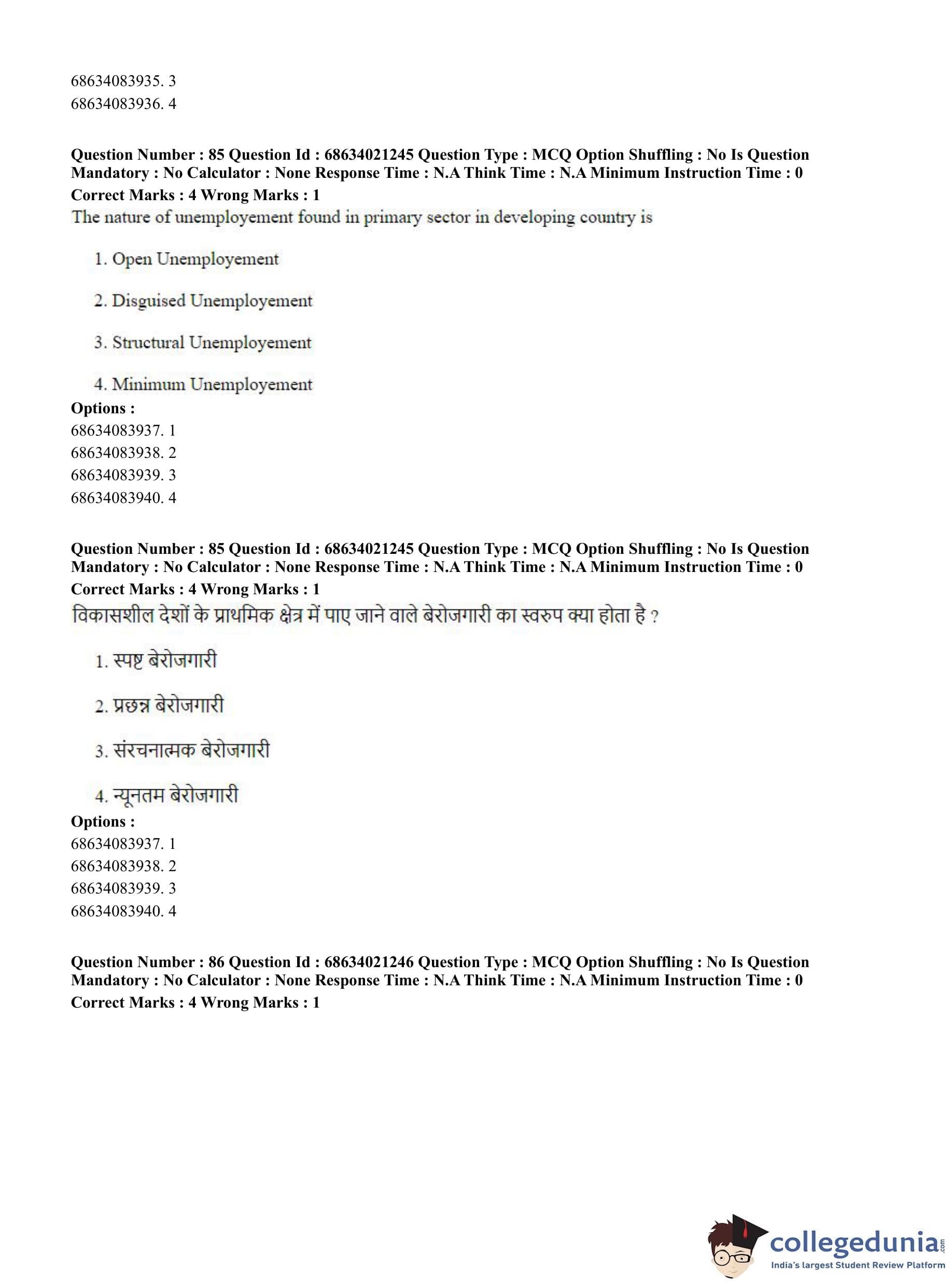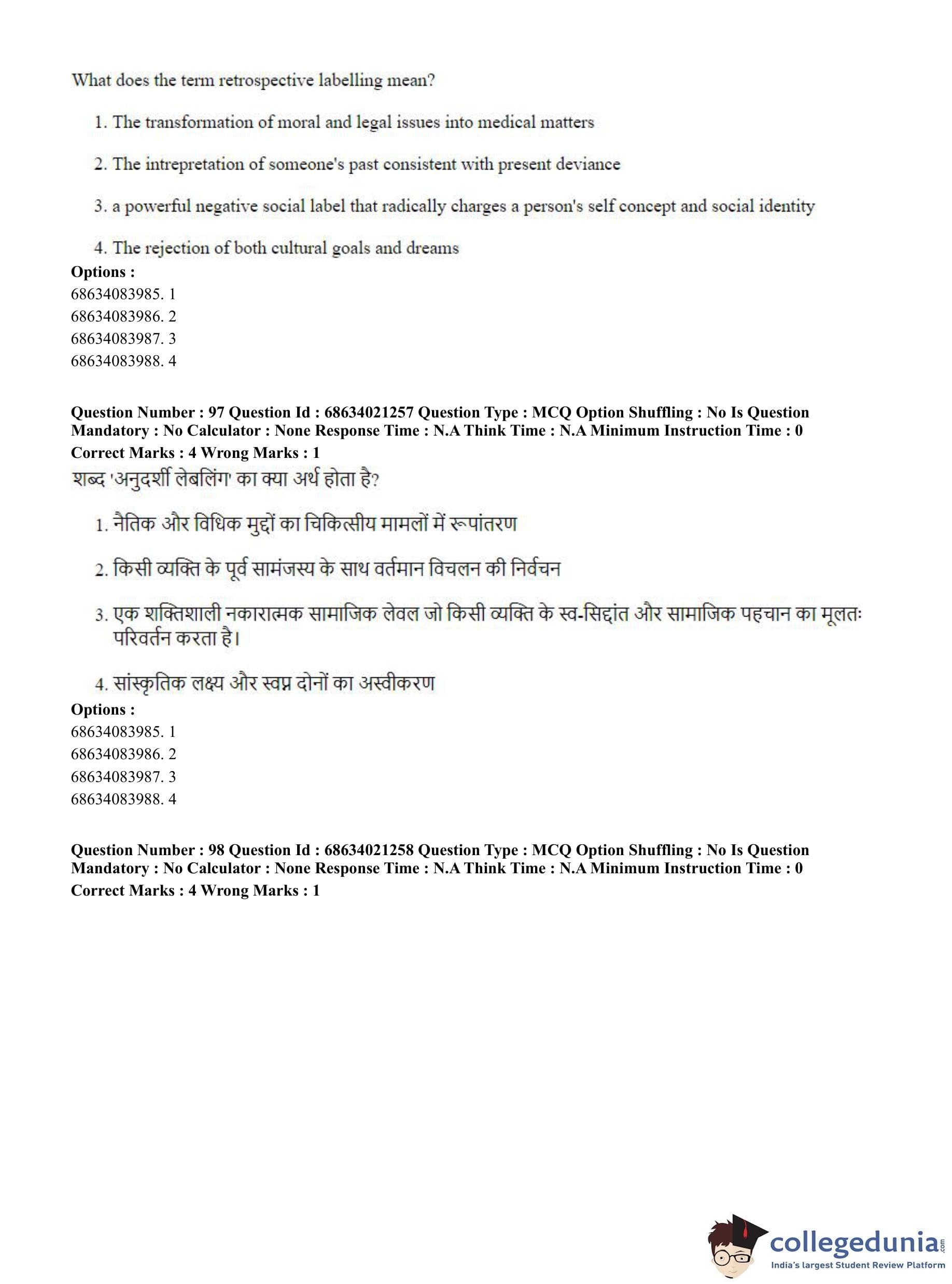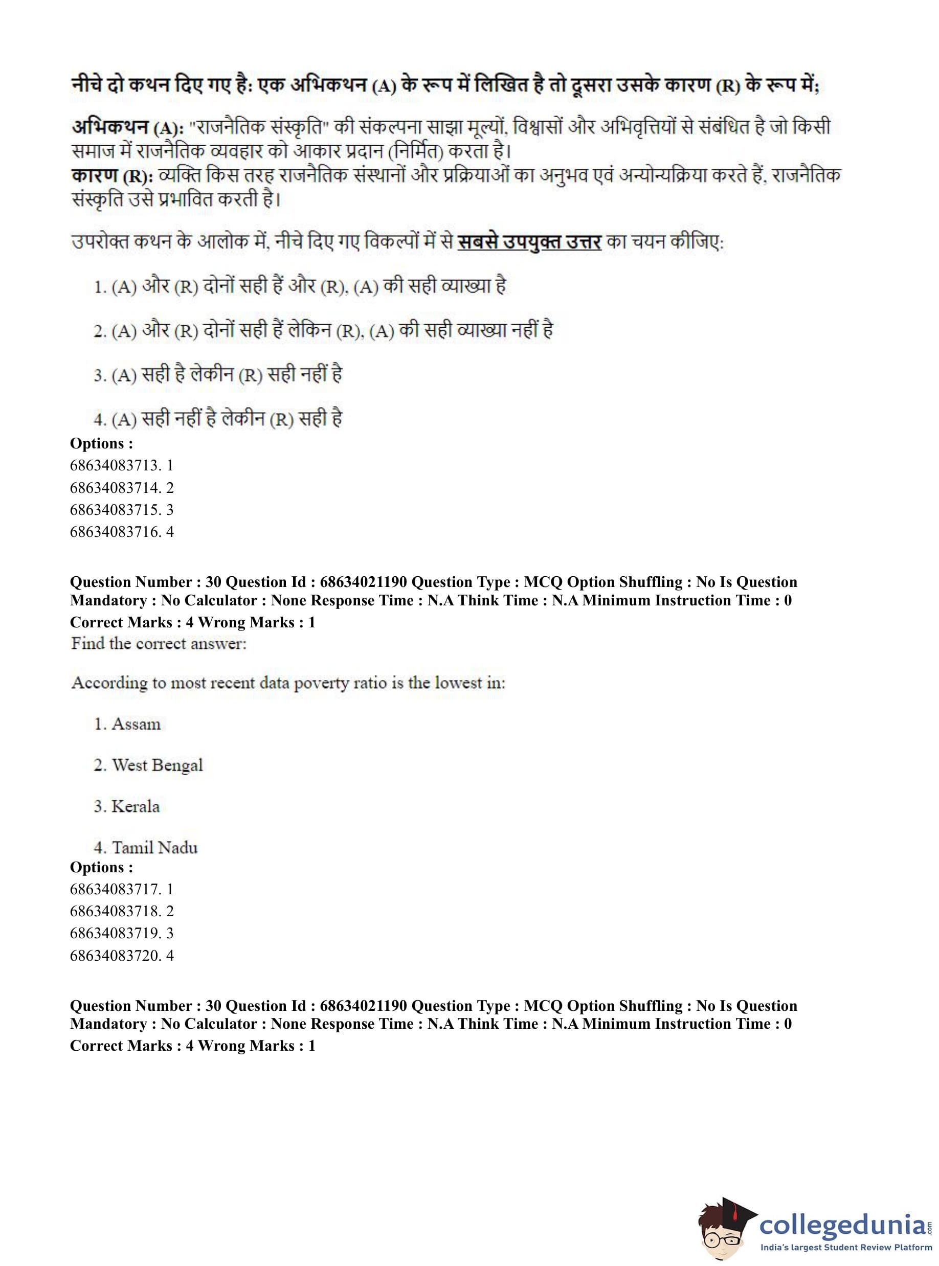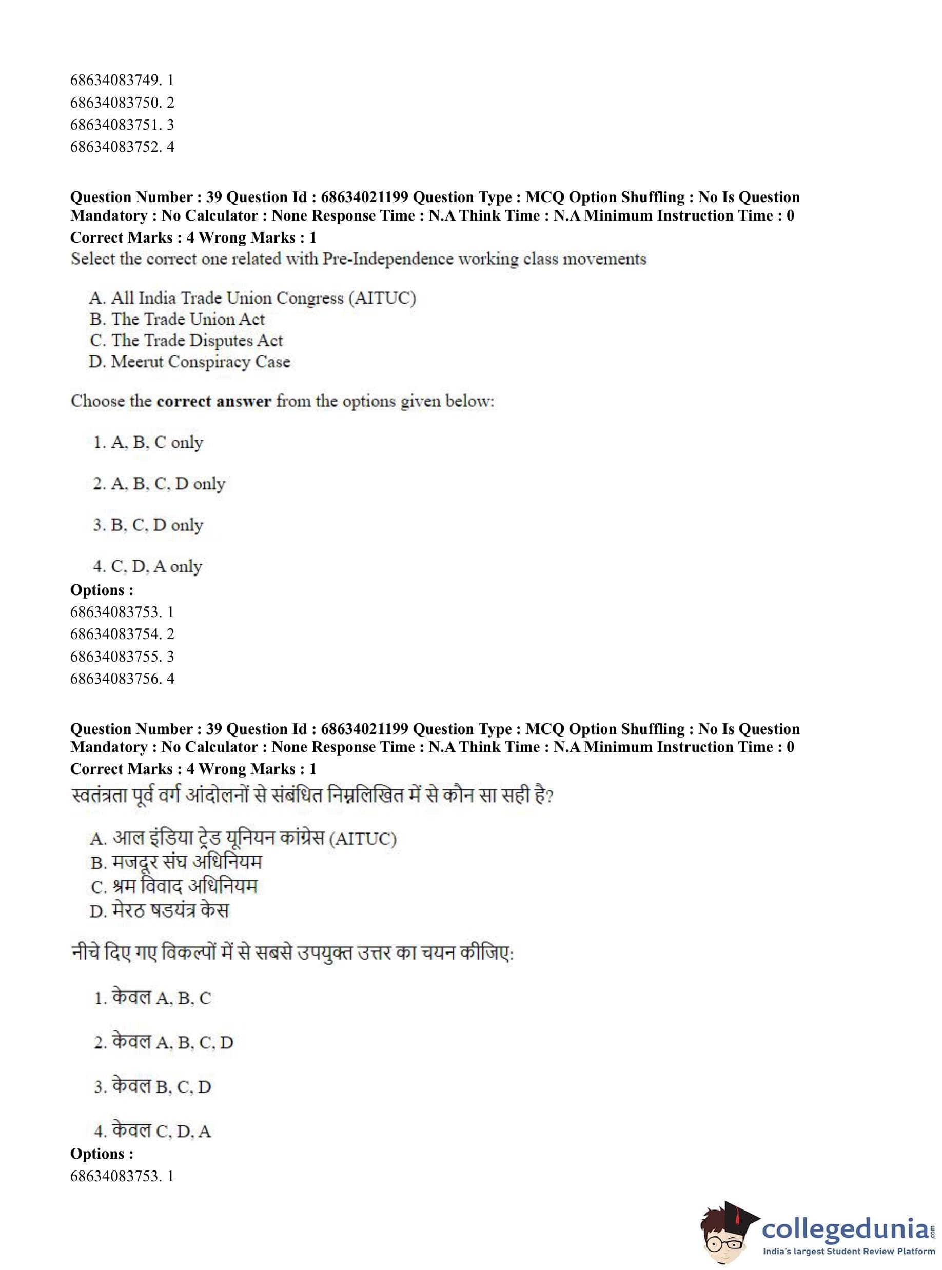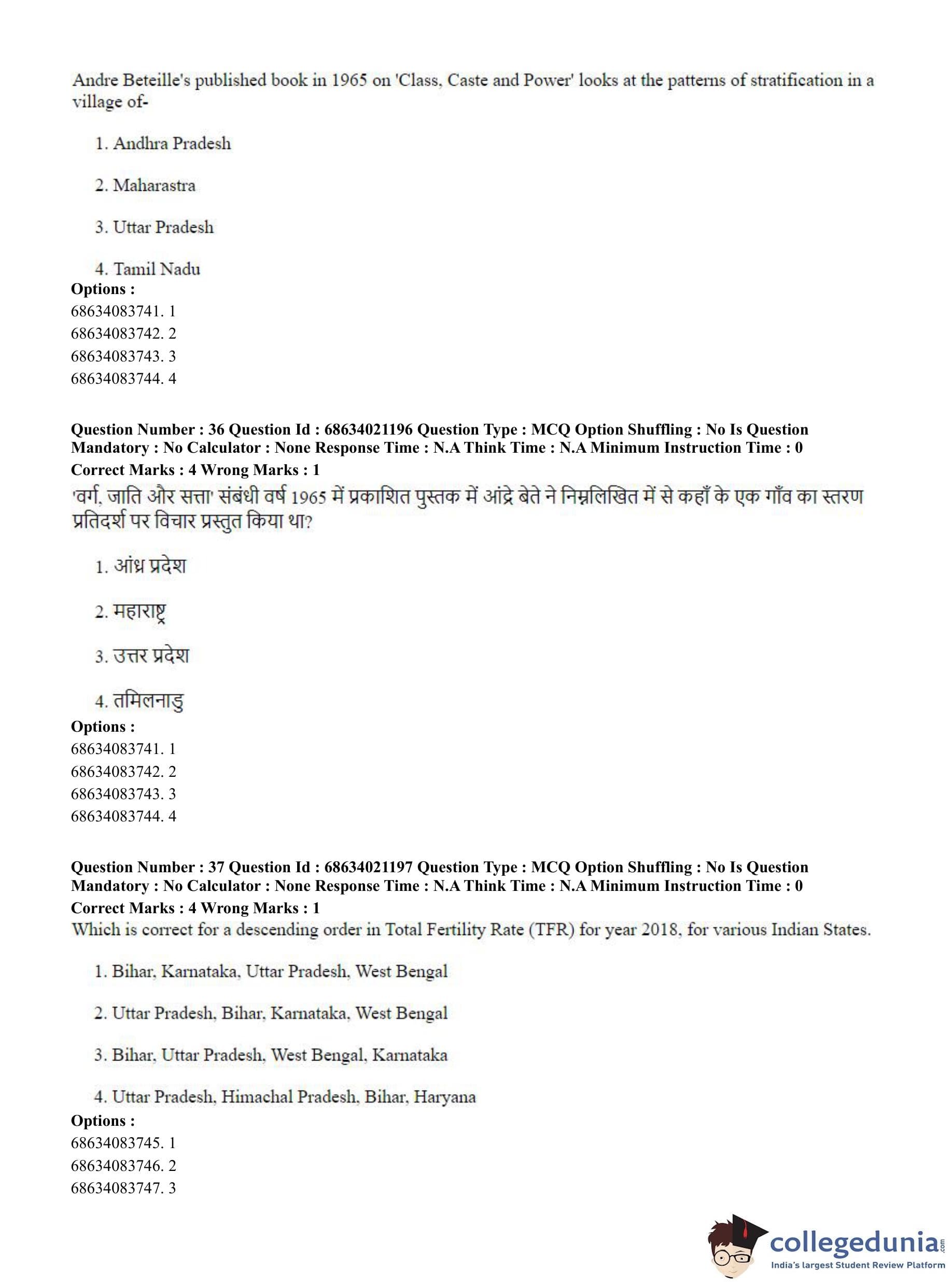 CUET PG 2023 Dev and Labour studies Question Paper in Hindi (June 15 - Shift 2)