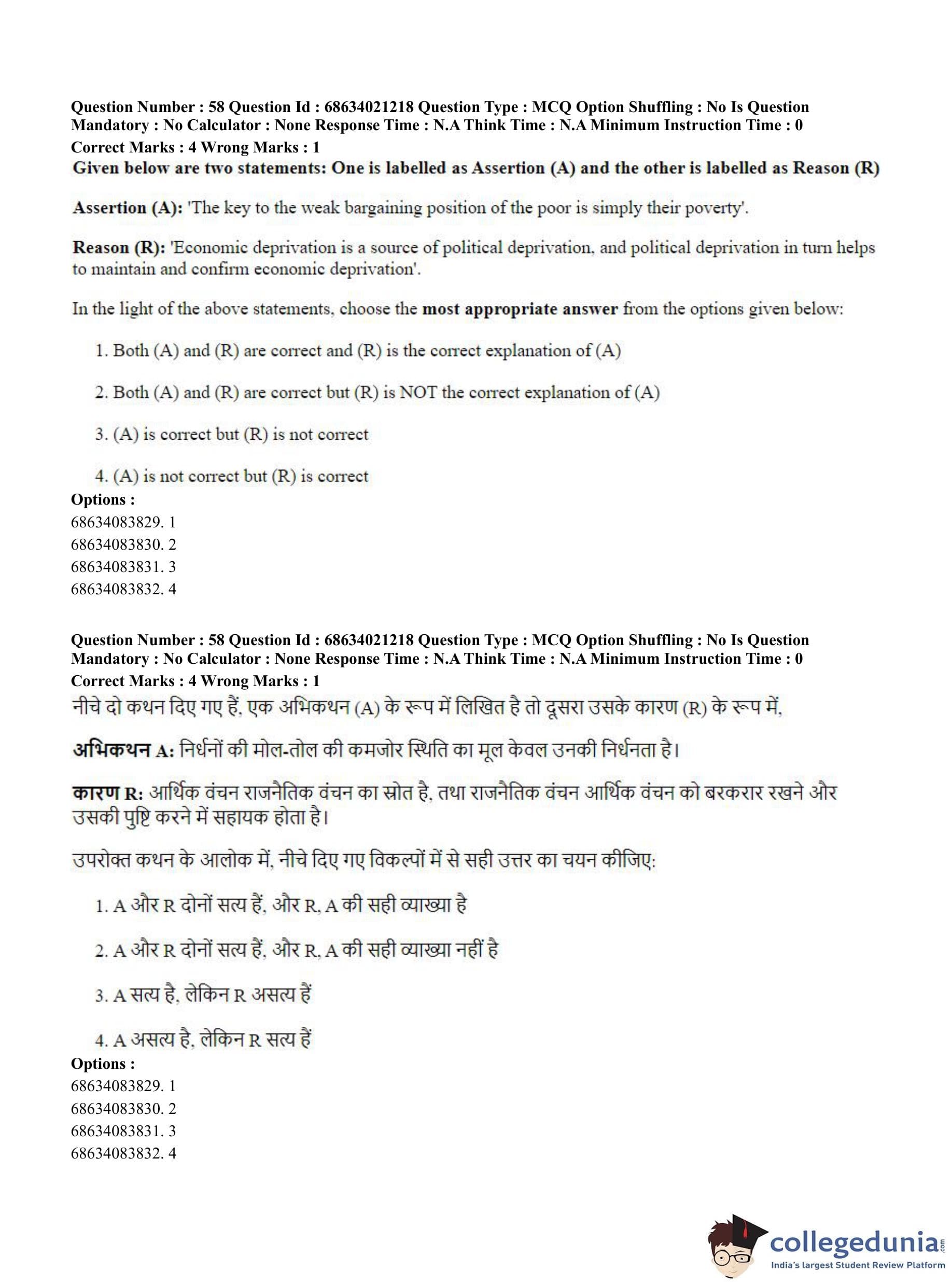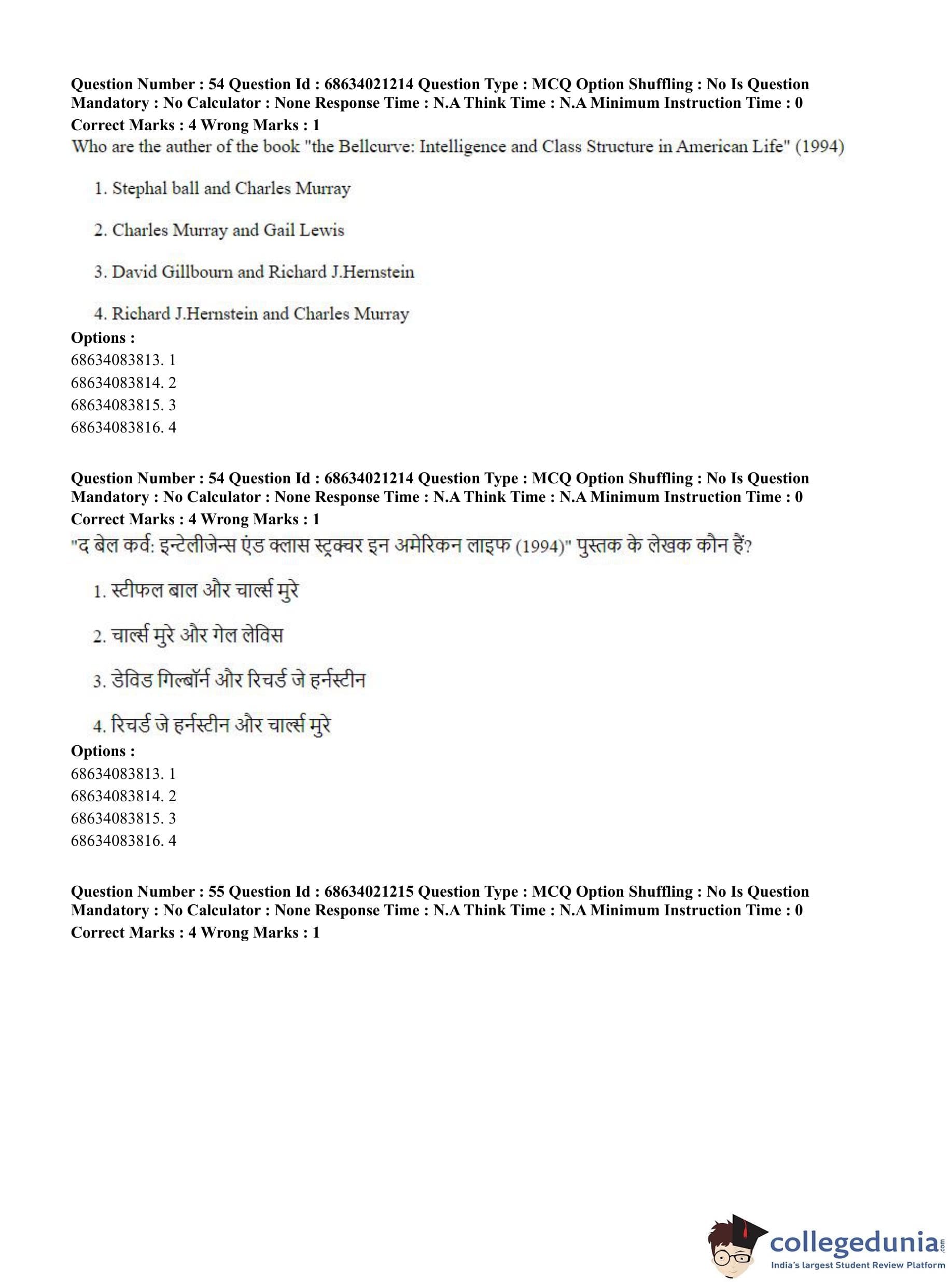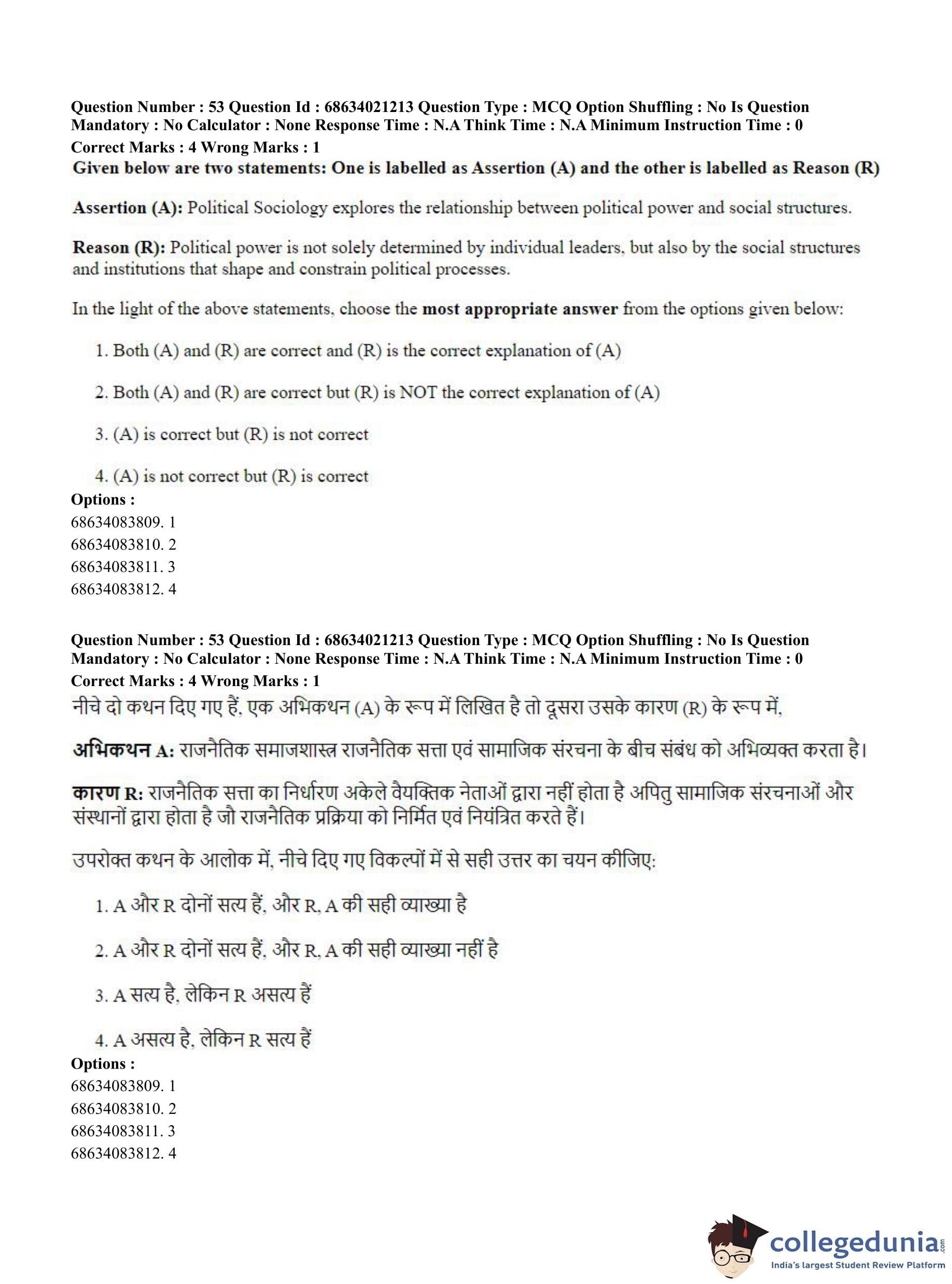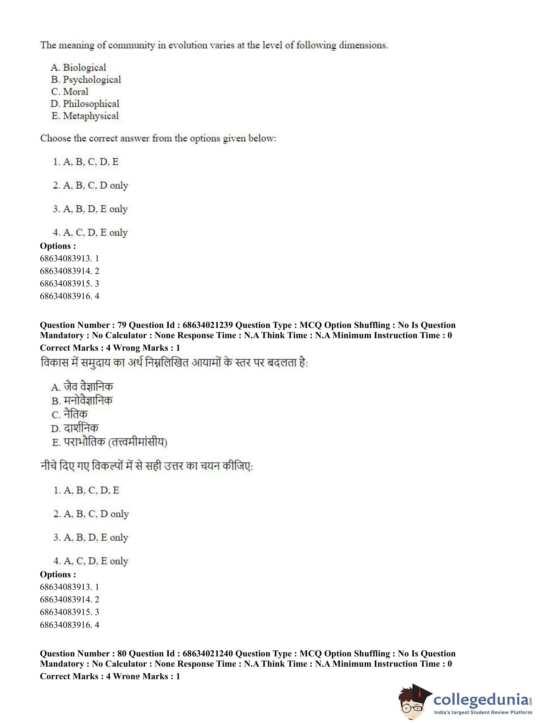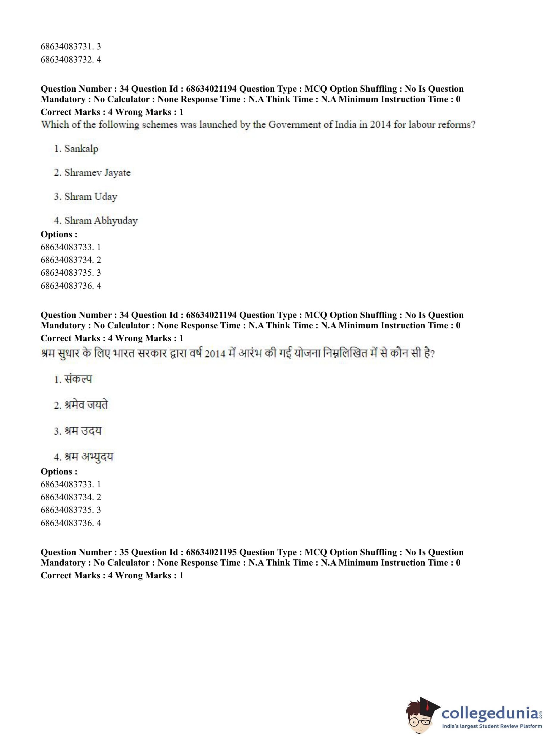 CUET PG 2023 Dev and Labour studies Question Paper in Hindi (June 15 - Shift 2)