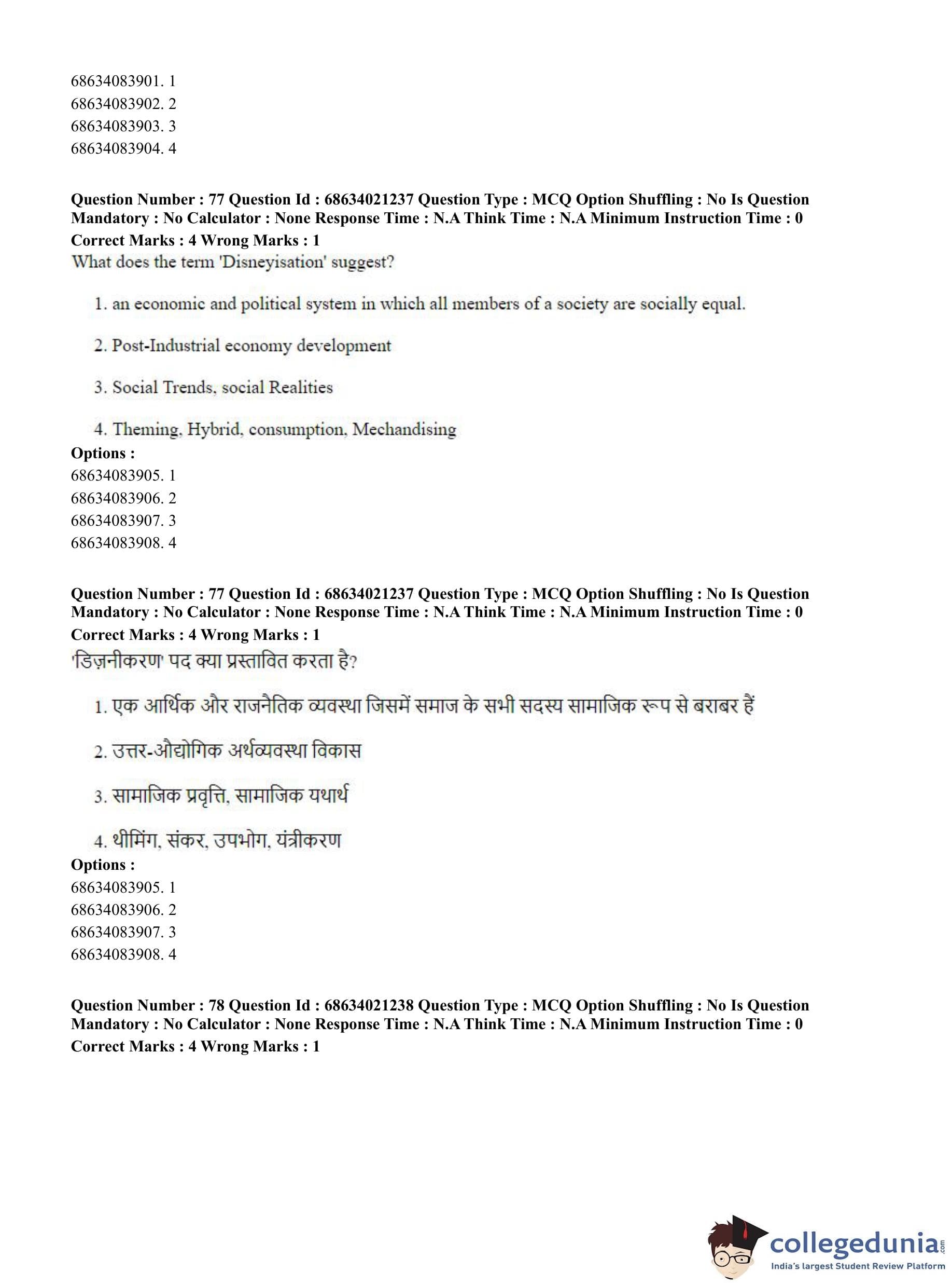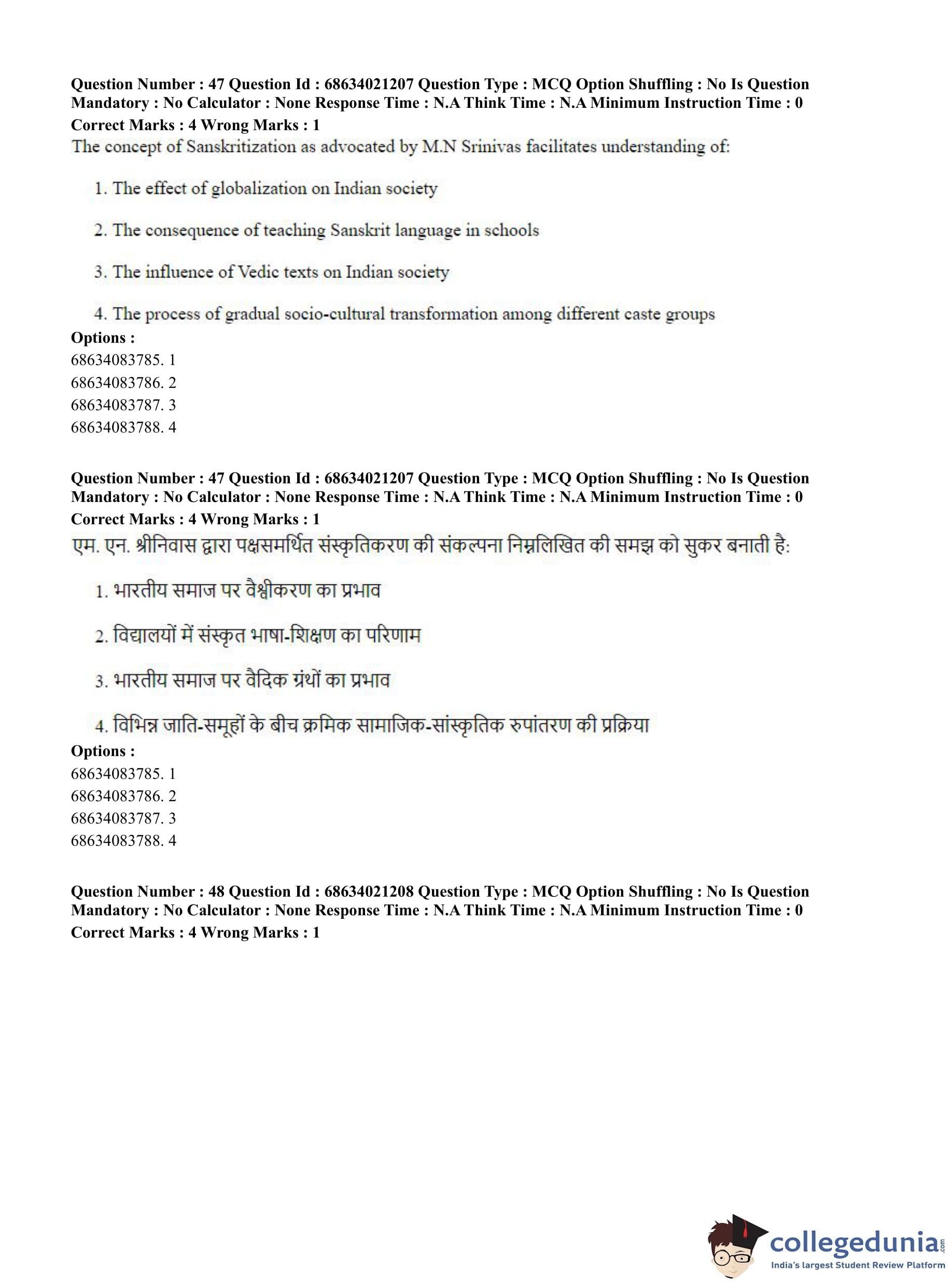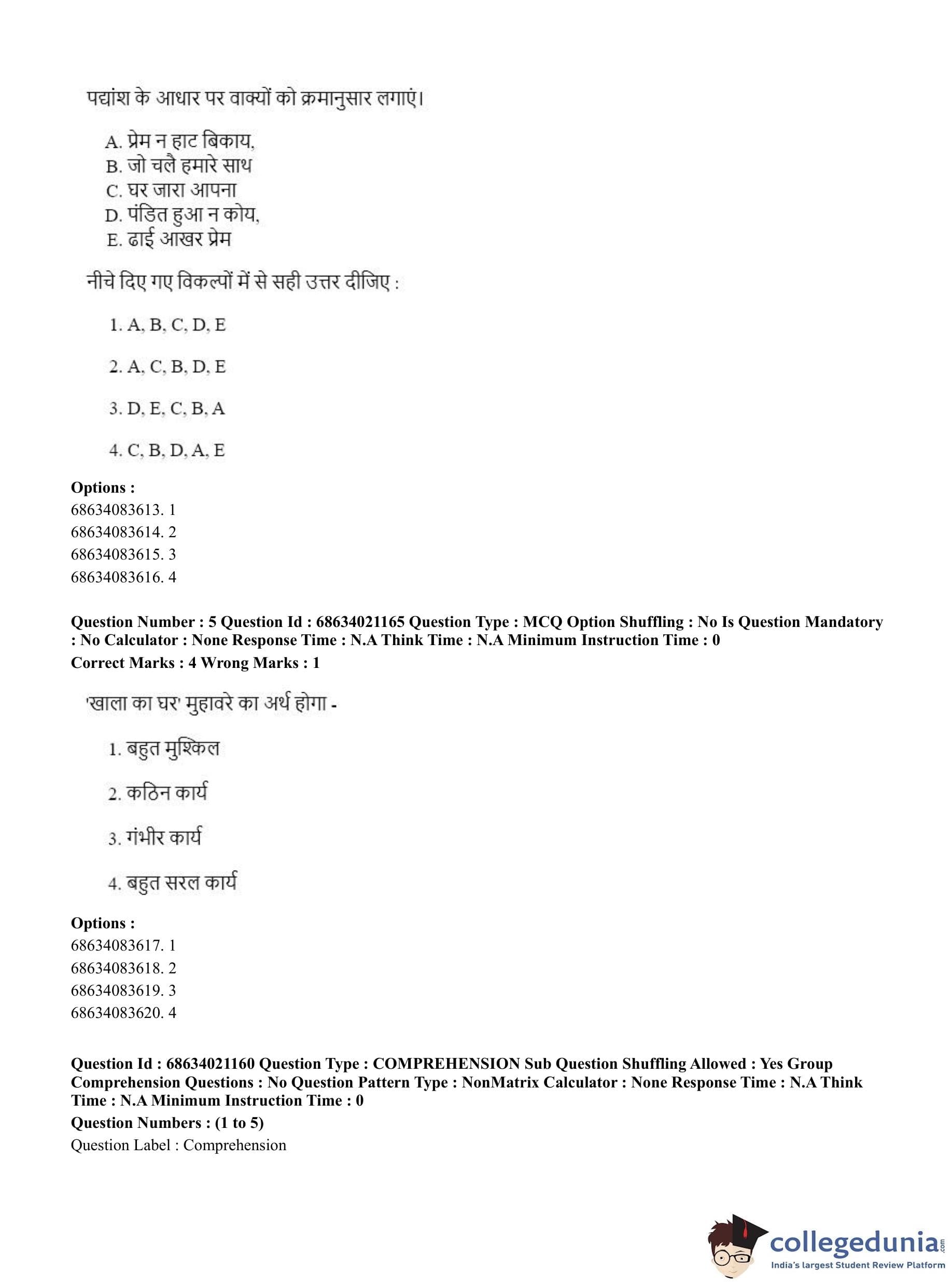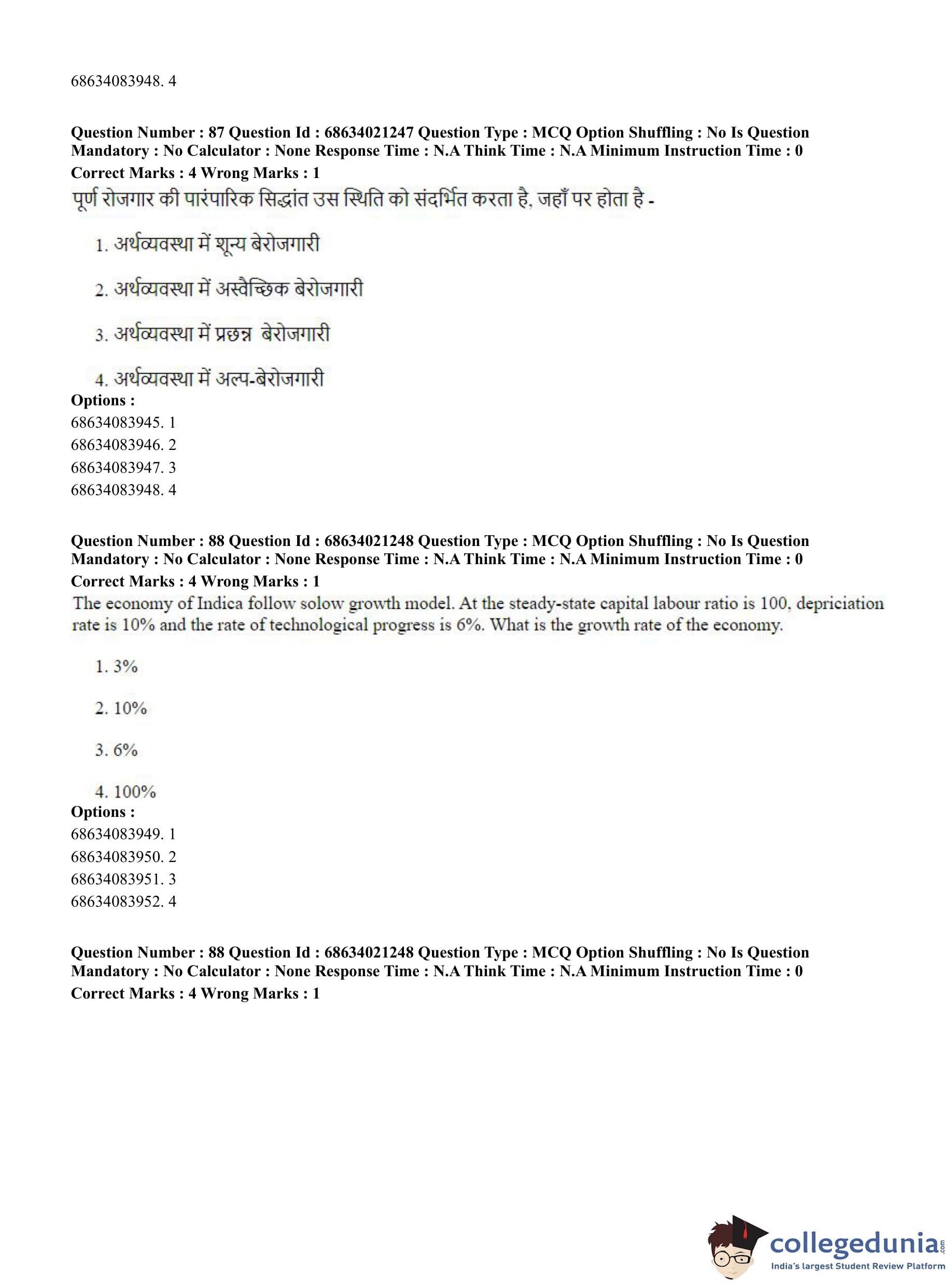 CUET PG 2023 Dev and Labour studies Question Paper in Hindi (June 15 - Shift 2)