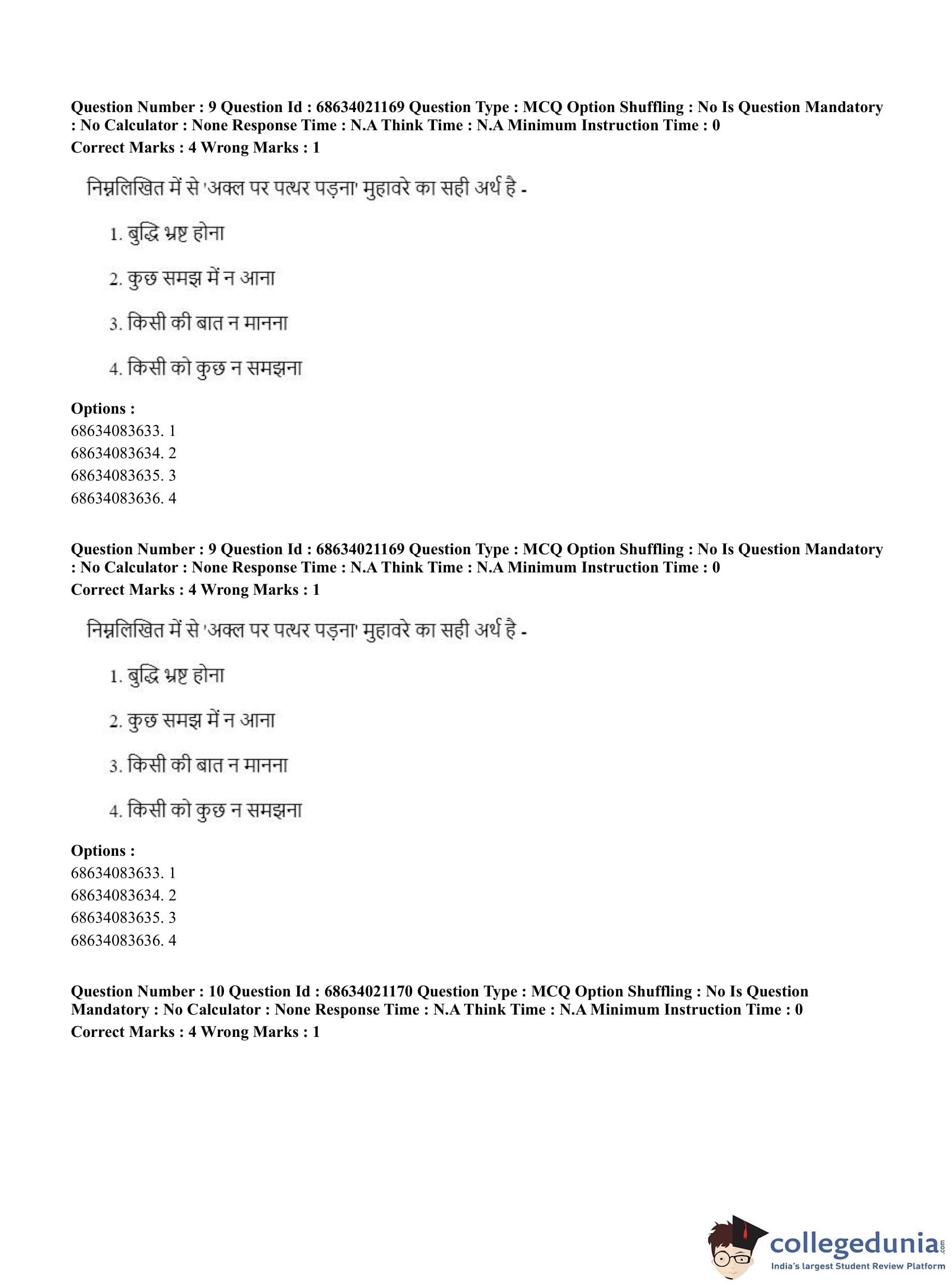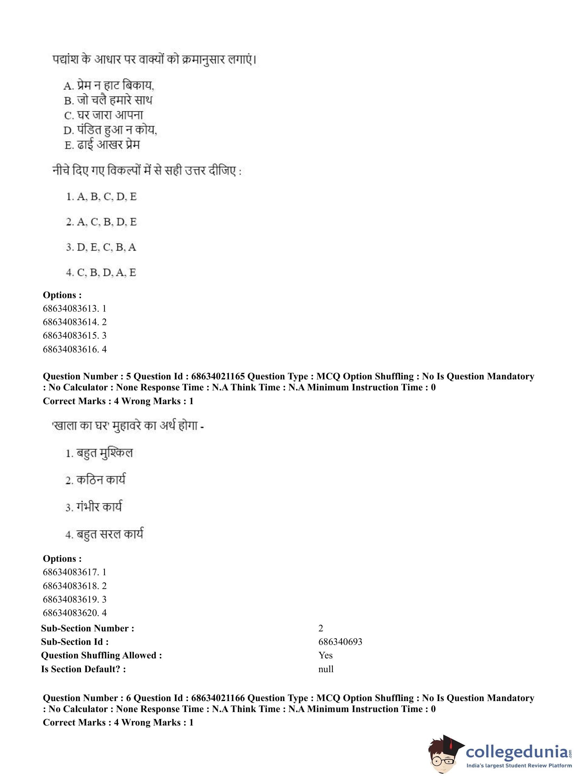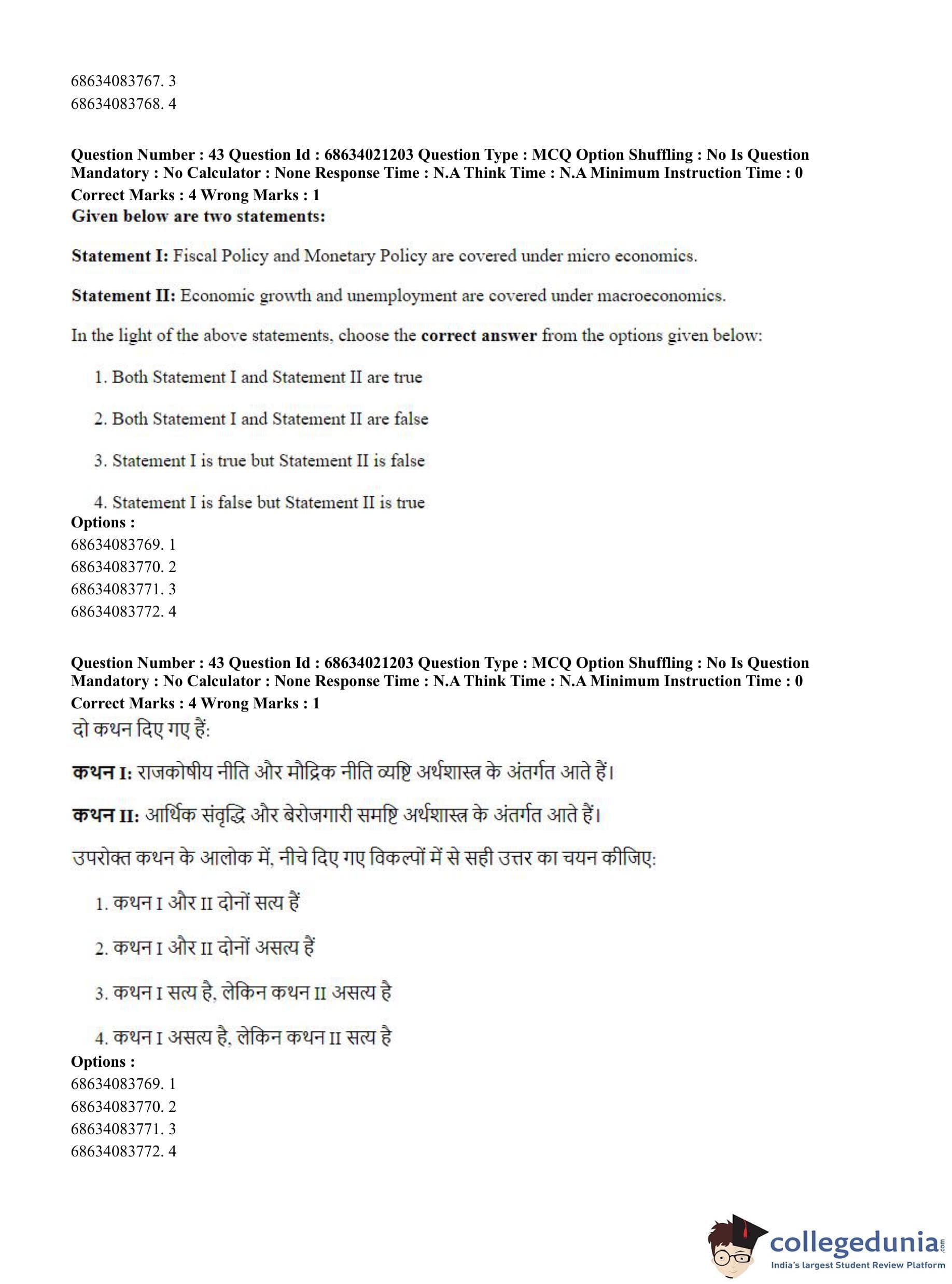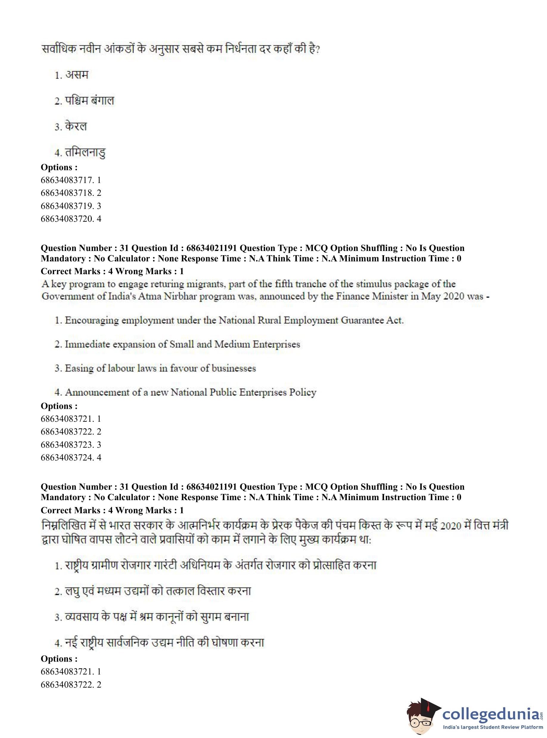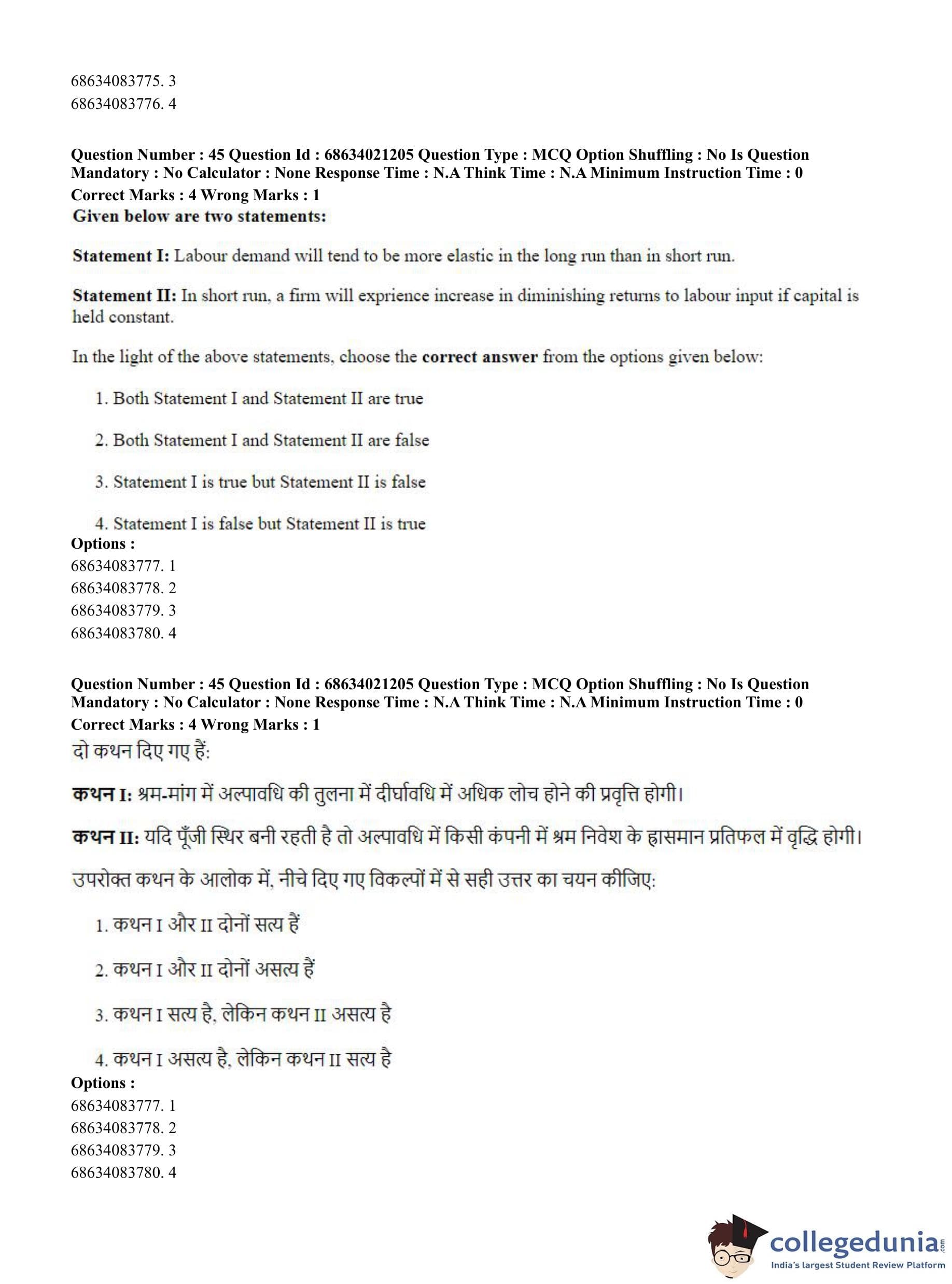 CUET PG 2023 Dev and Labour studies Question Paper in Hindi (June 15 - Shift 2)