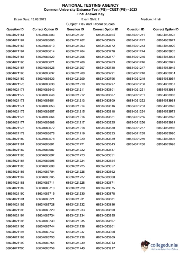 | CUET PG Dev and Labour studies Question Paper 2023 PDF | CUET PG Dev and Labour studies Answer Key 2023 PDF |