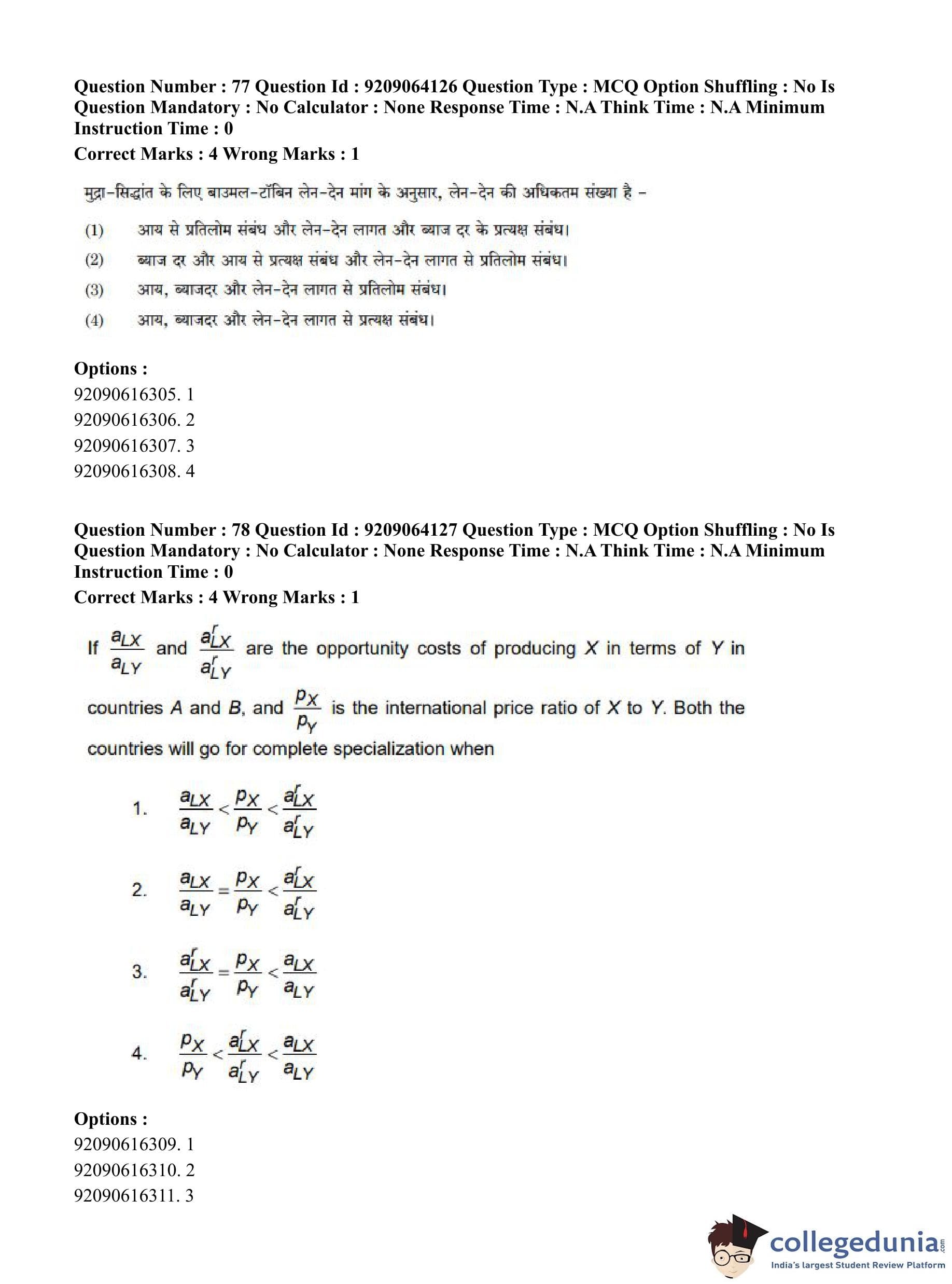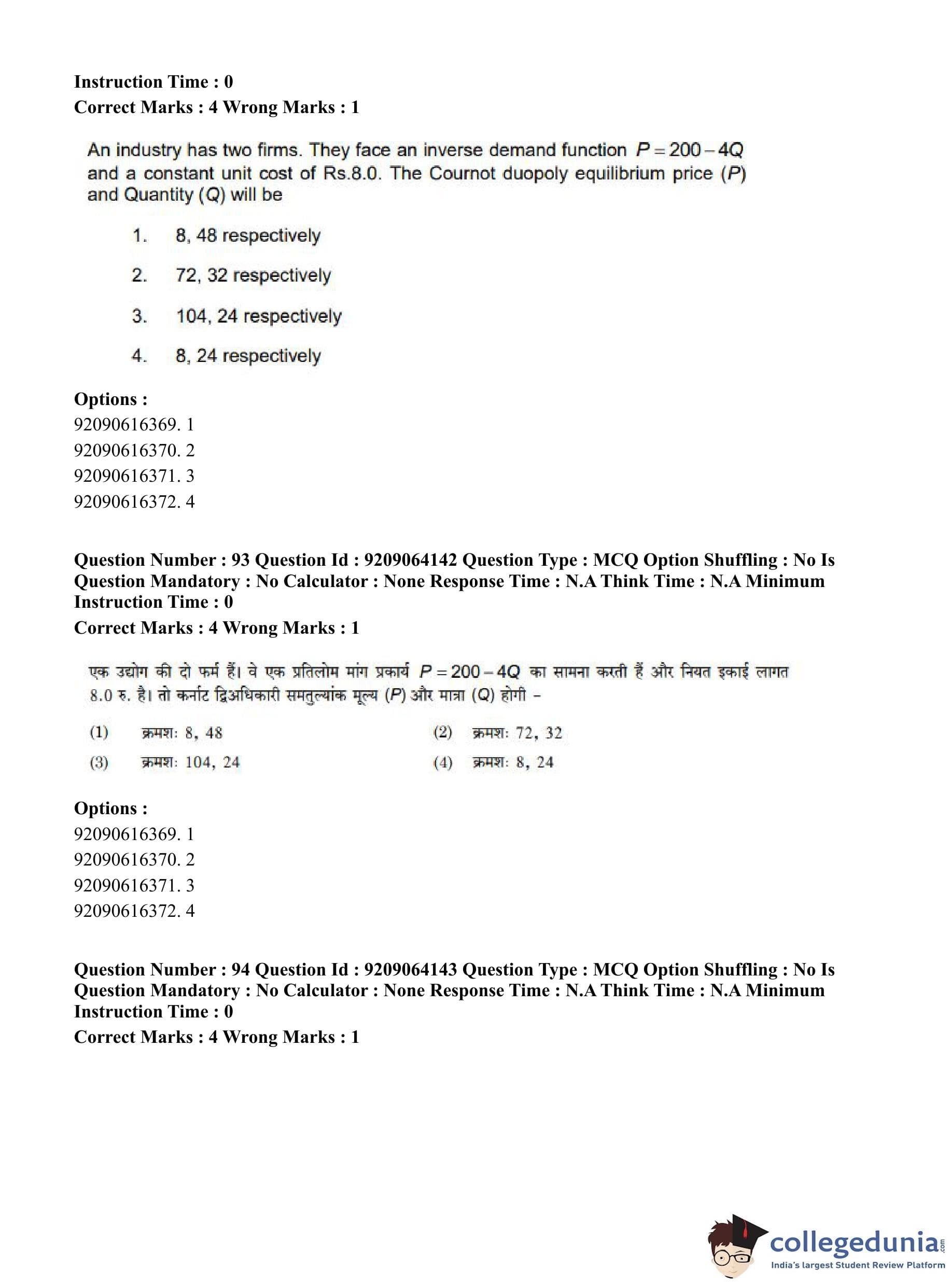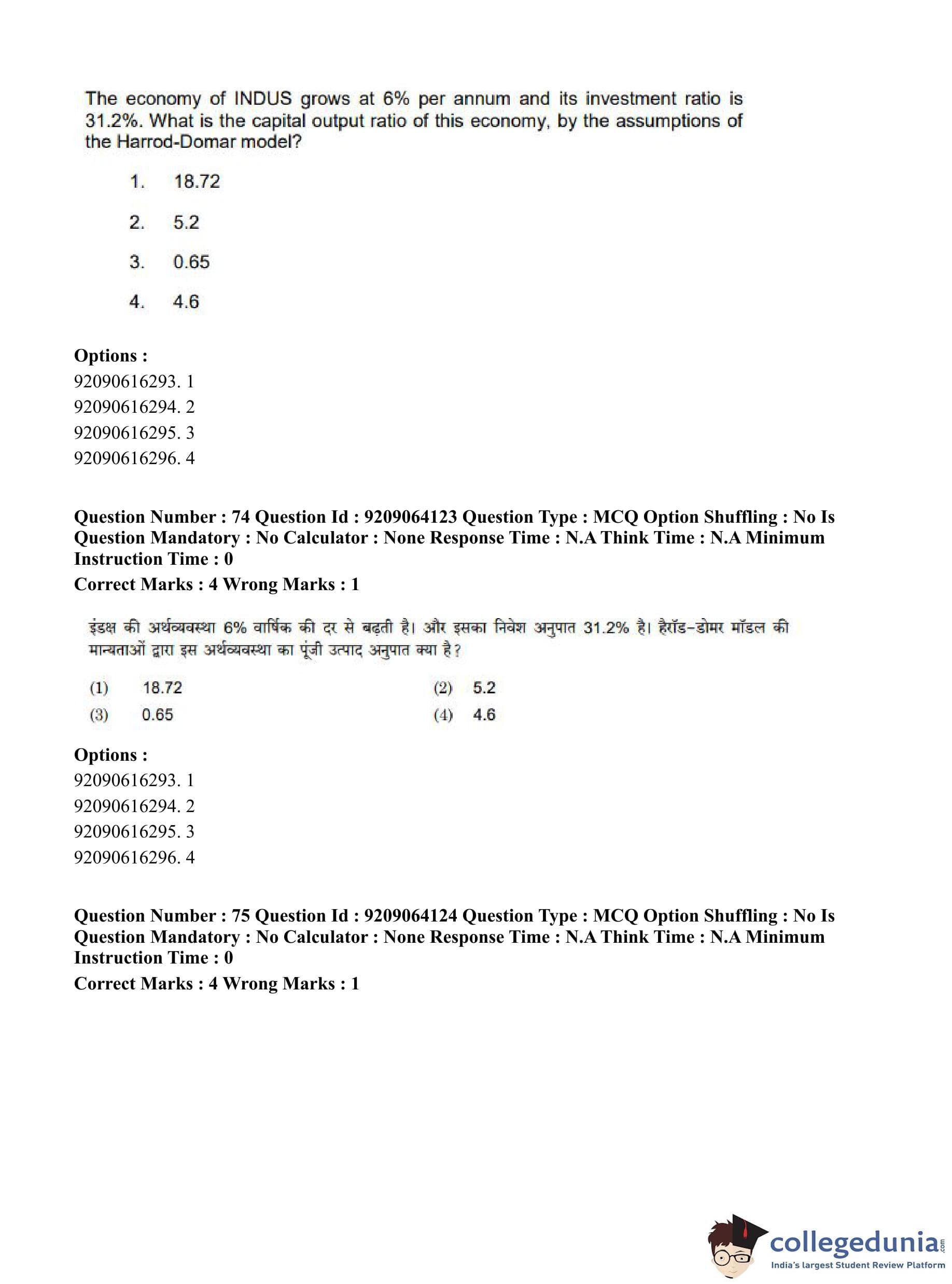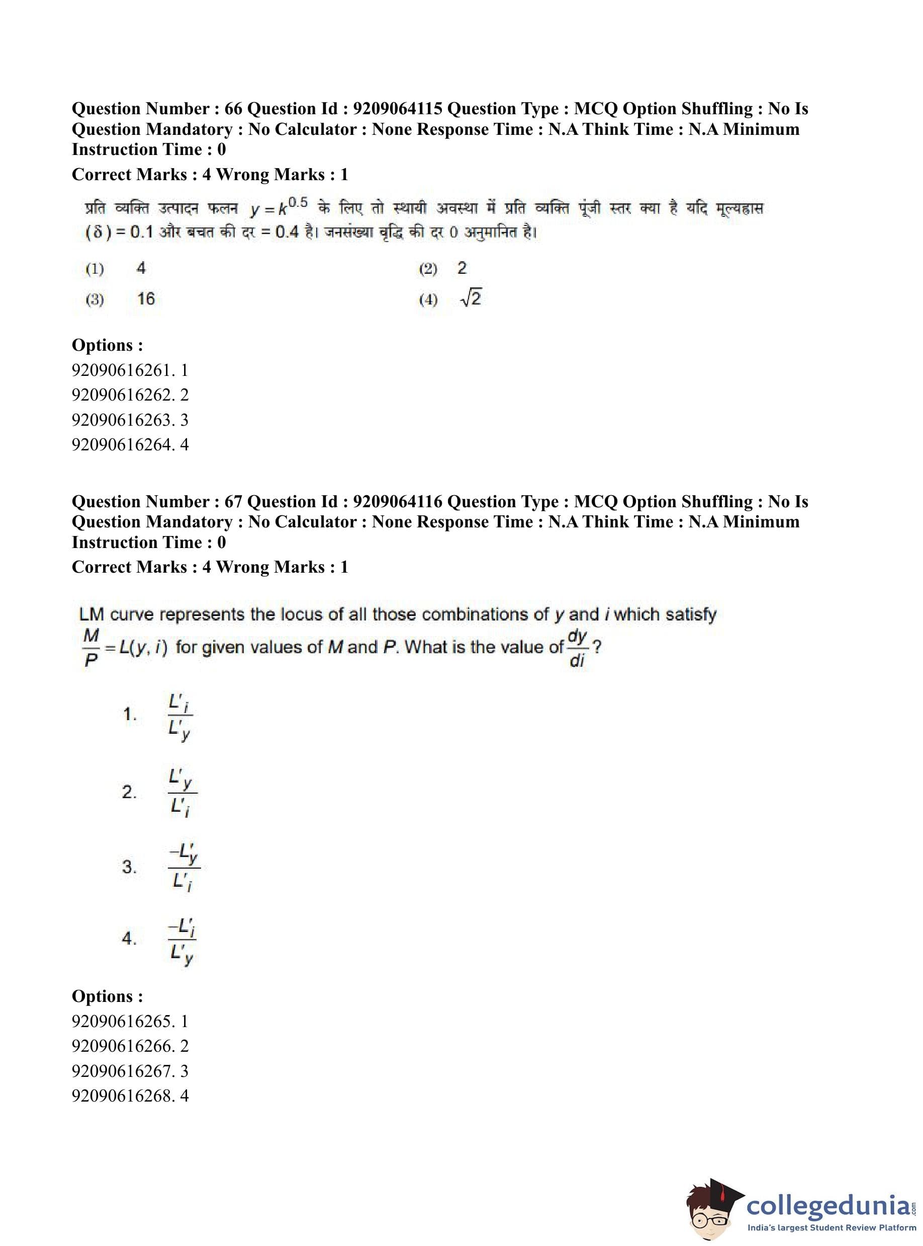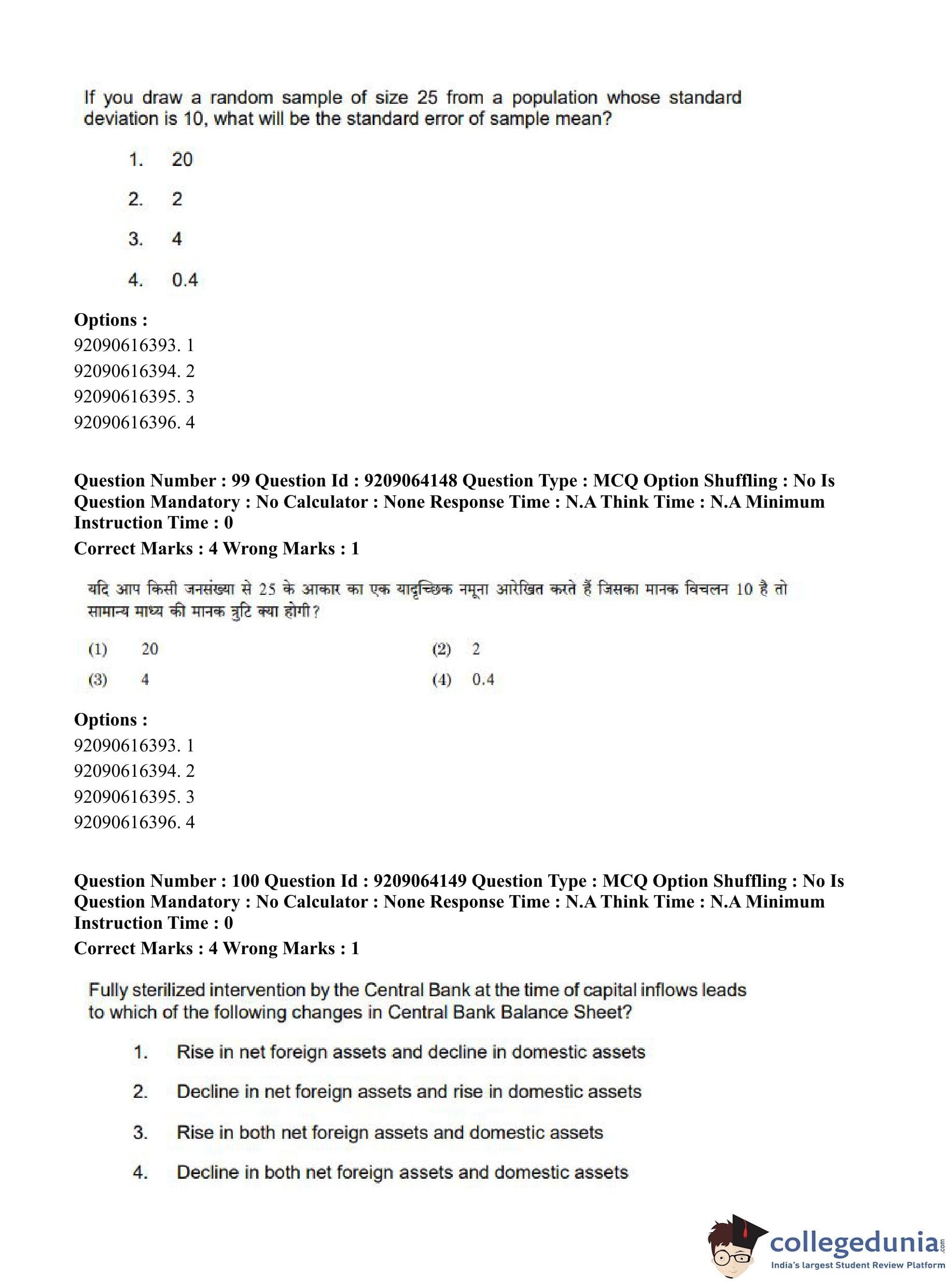 CUET PG 2023 Economics Question Paper in English (June 6 - Shift 1)