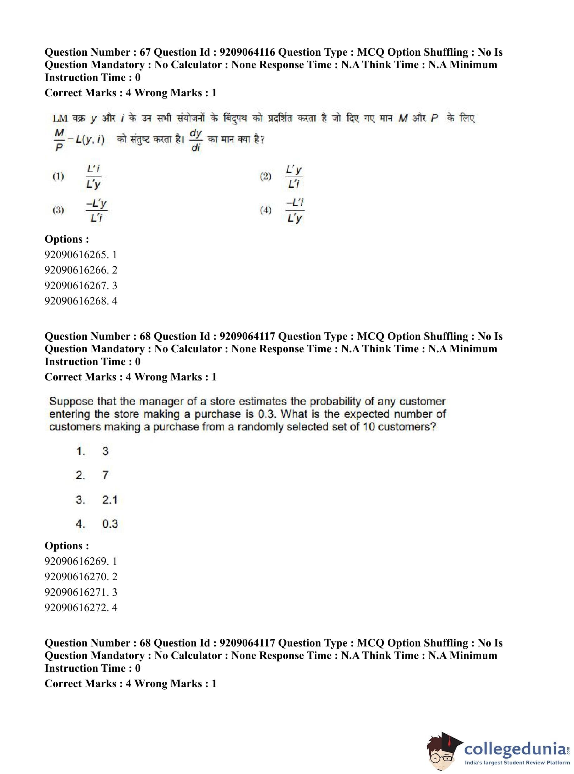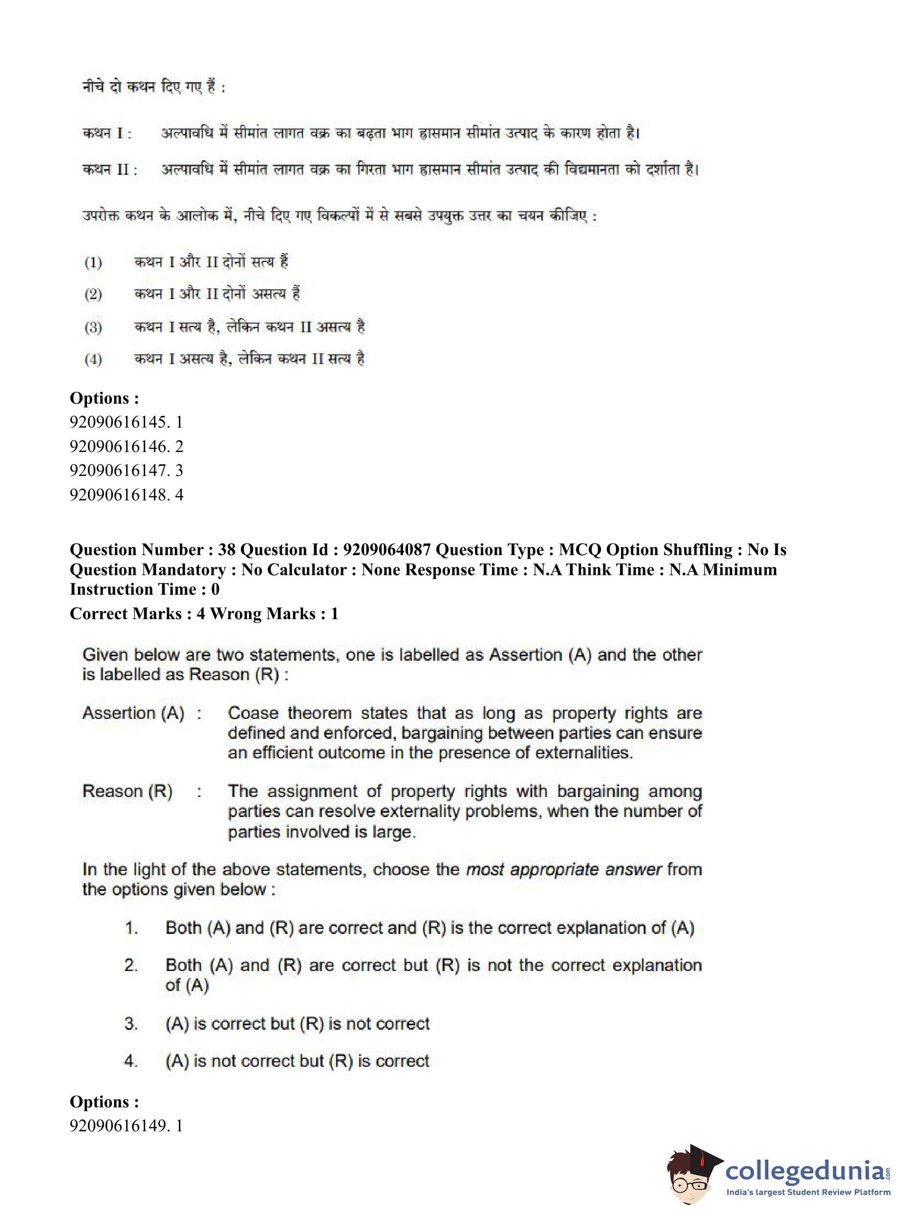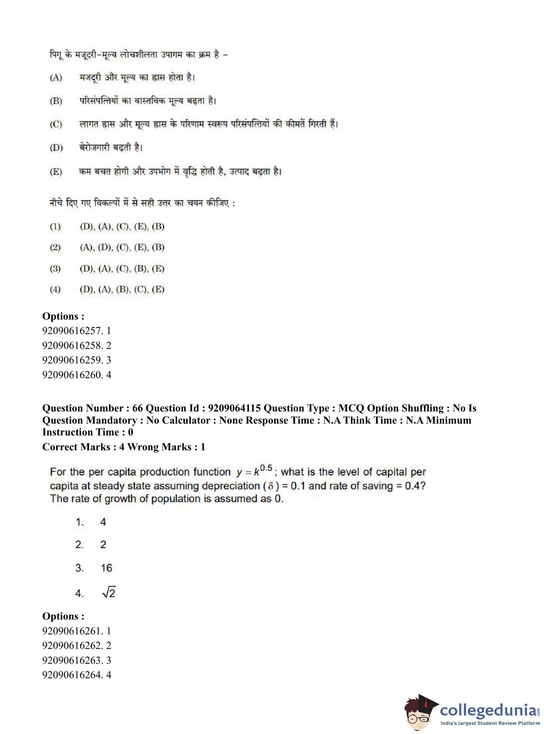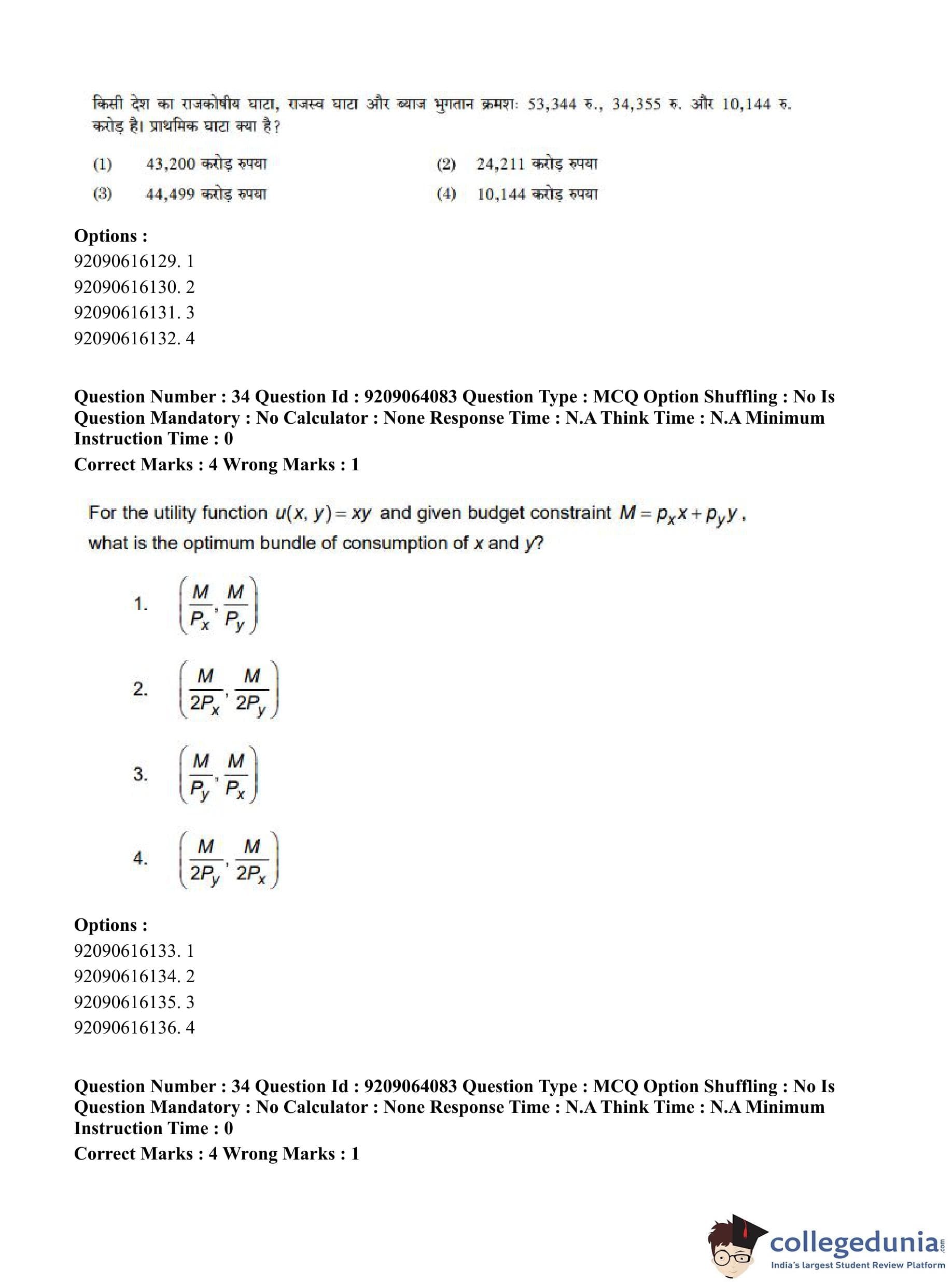 CUET PG 2023 Economics Question Paper in English (June 6 - Shift 1)