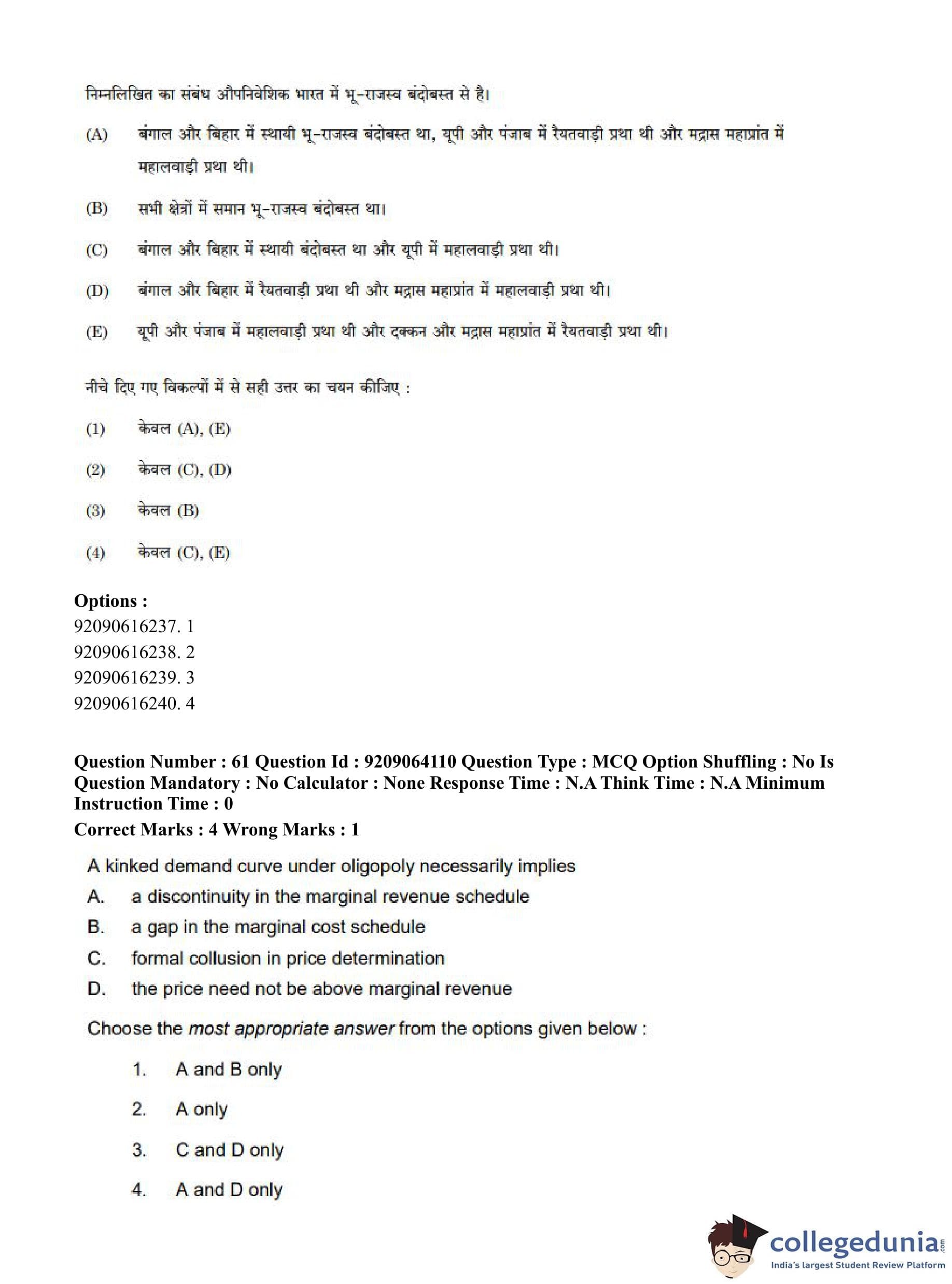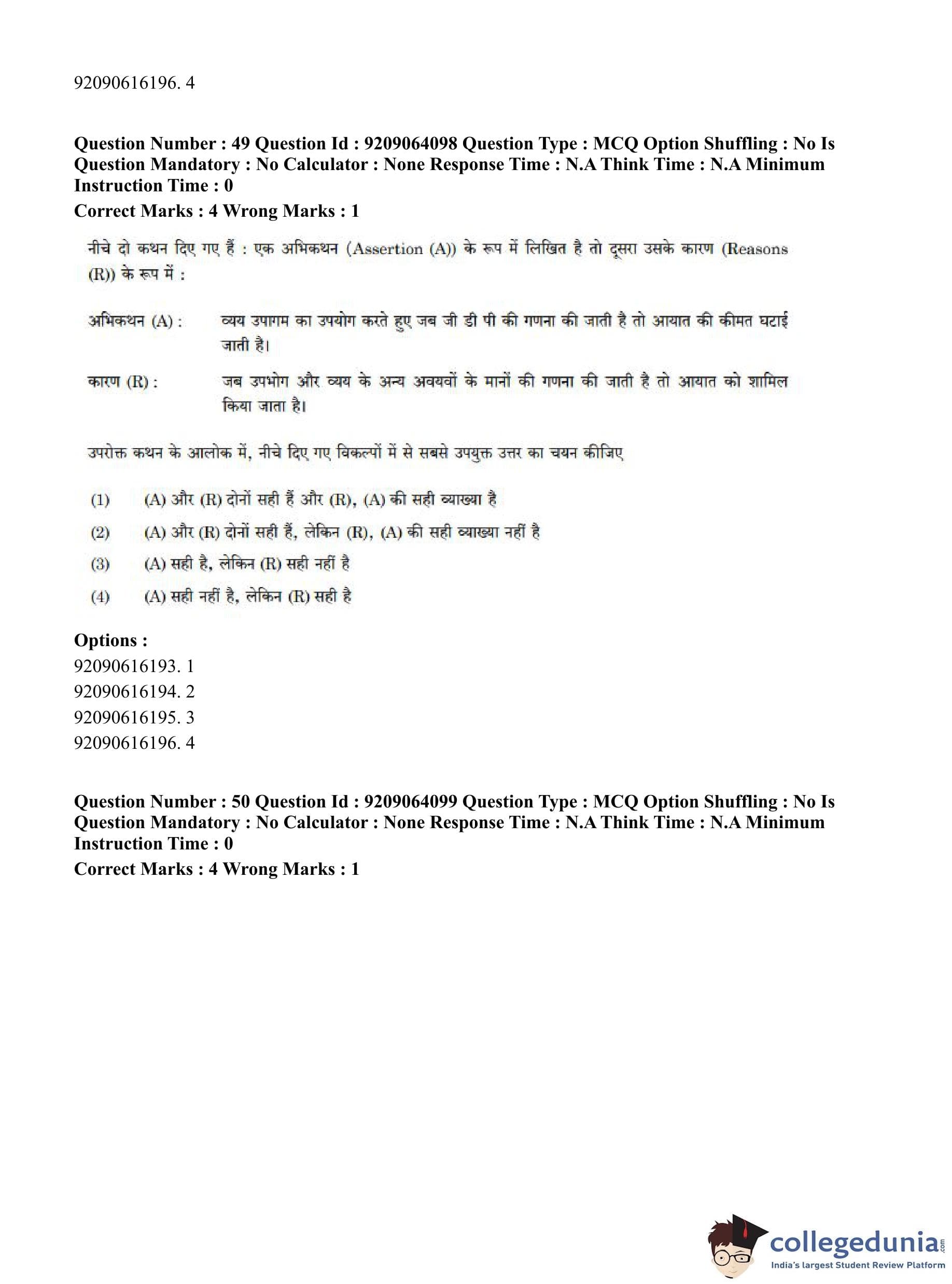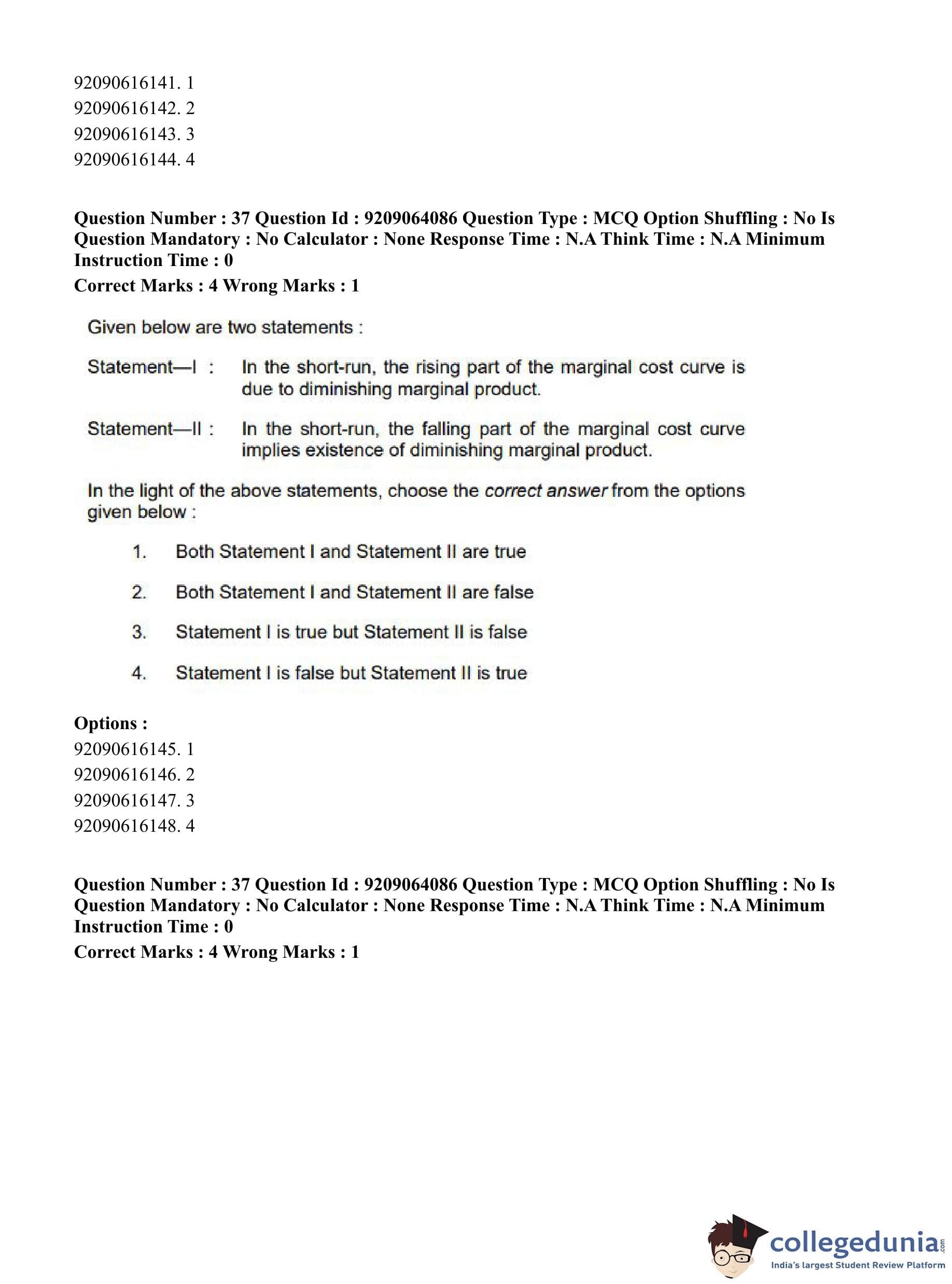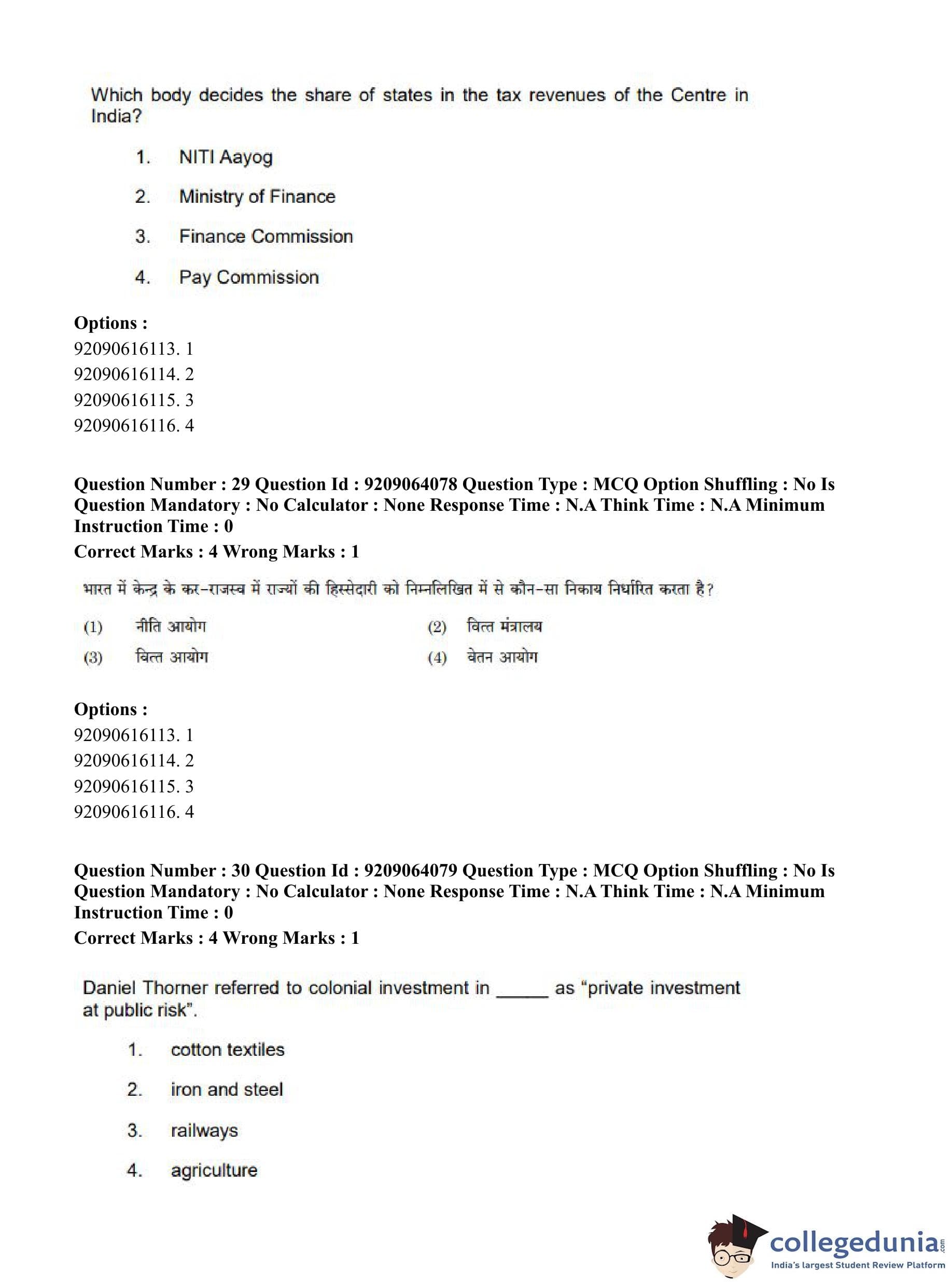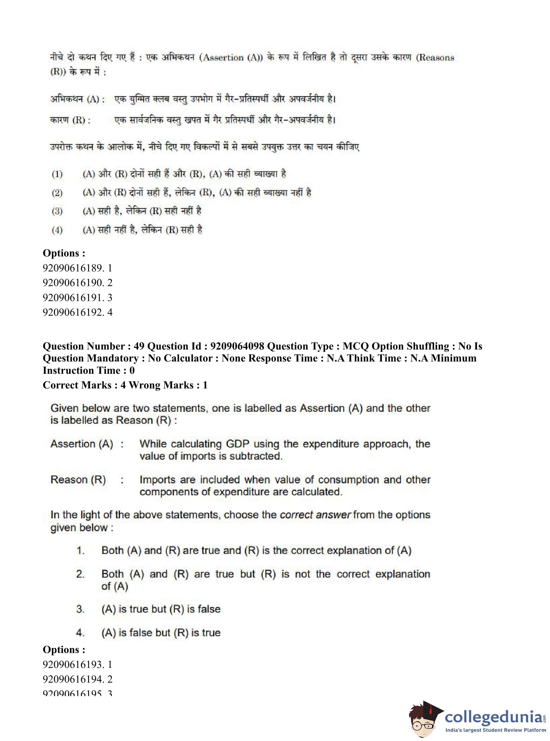 CUET PG 2023 Economics Question Paper in English (June 6 - Shift 1)