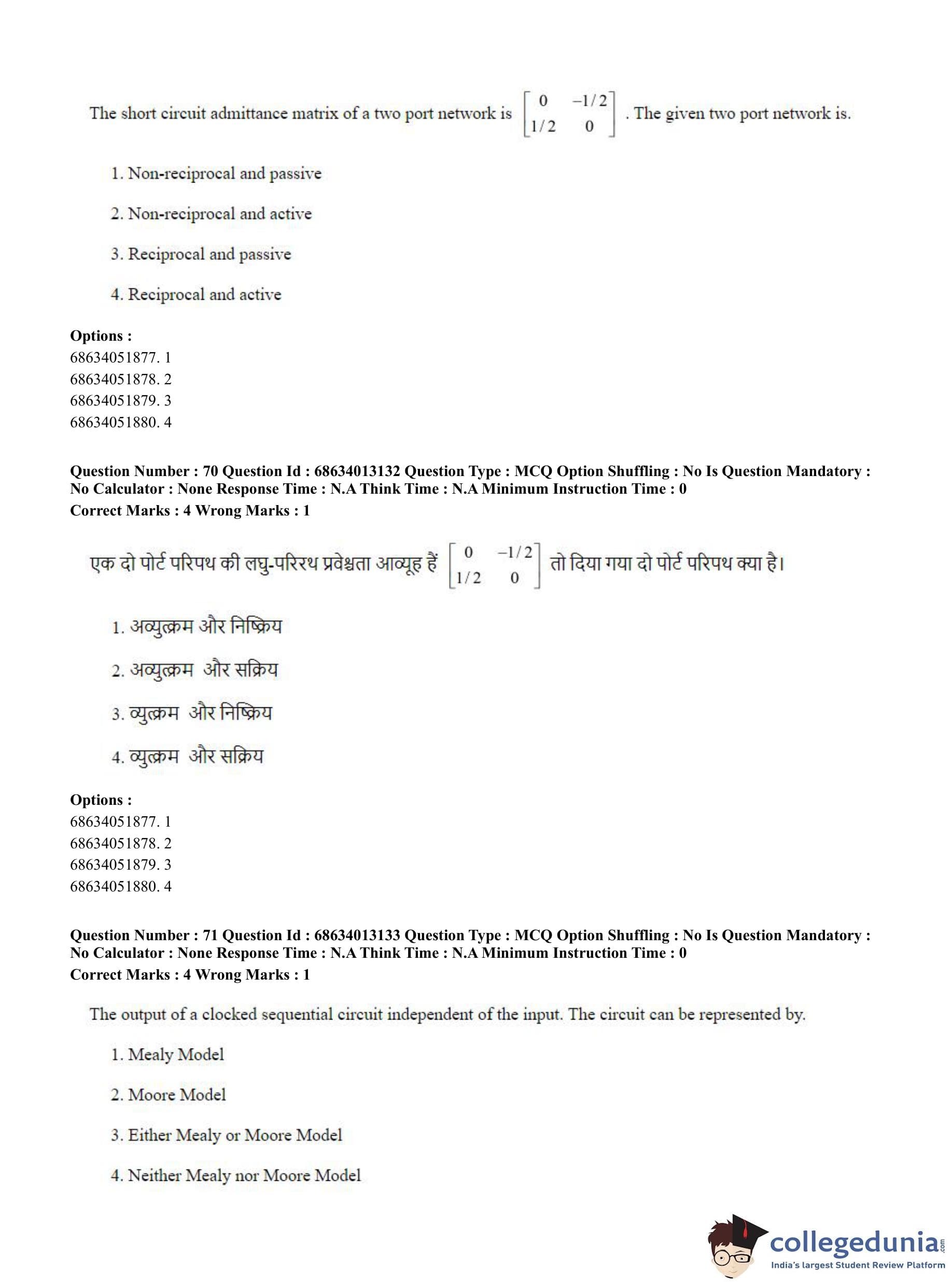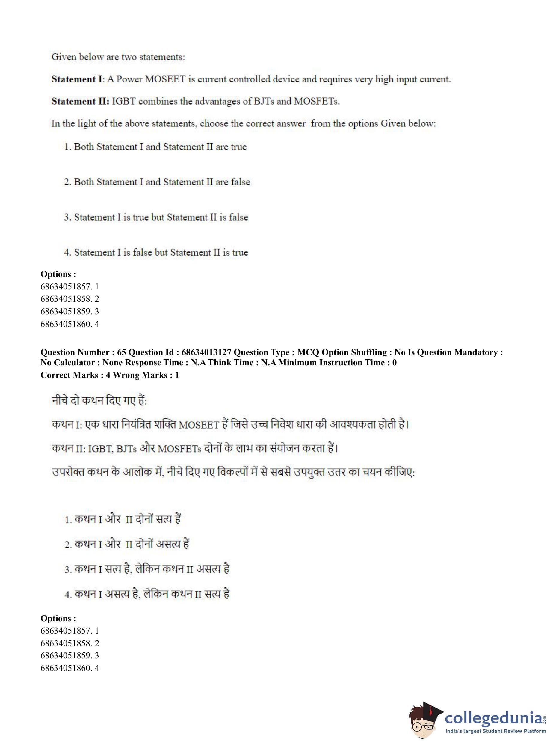 CUET PG 2023 Electrical, Power and Energy Engineering Question Paper in English (June 11 - Shift 2)