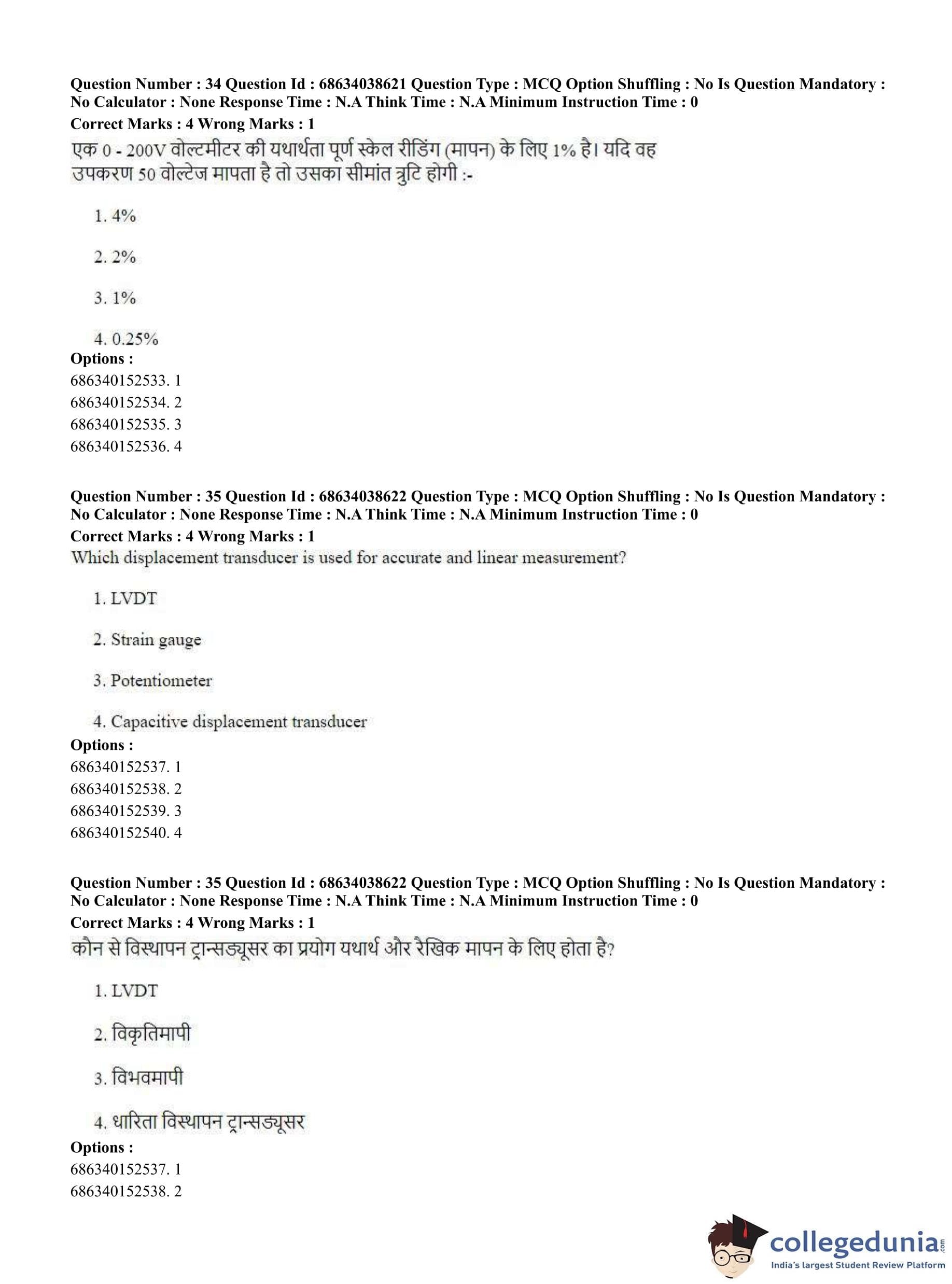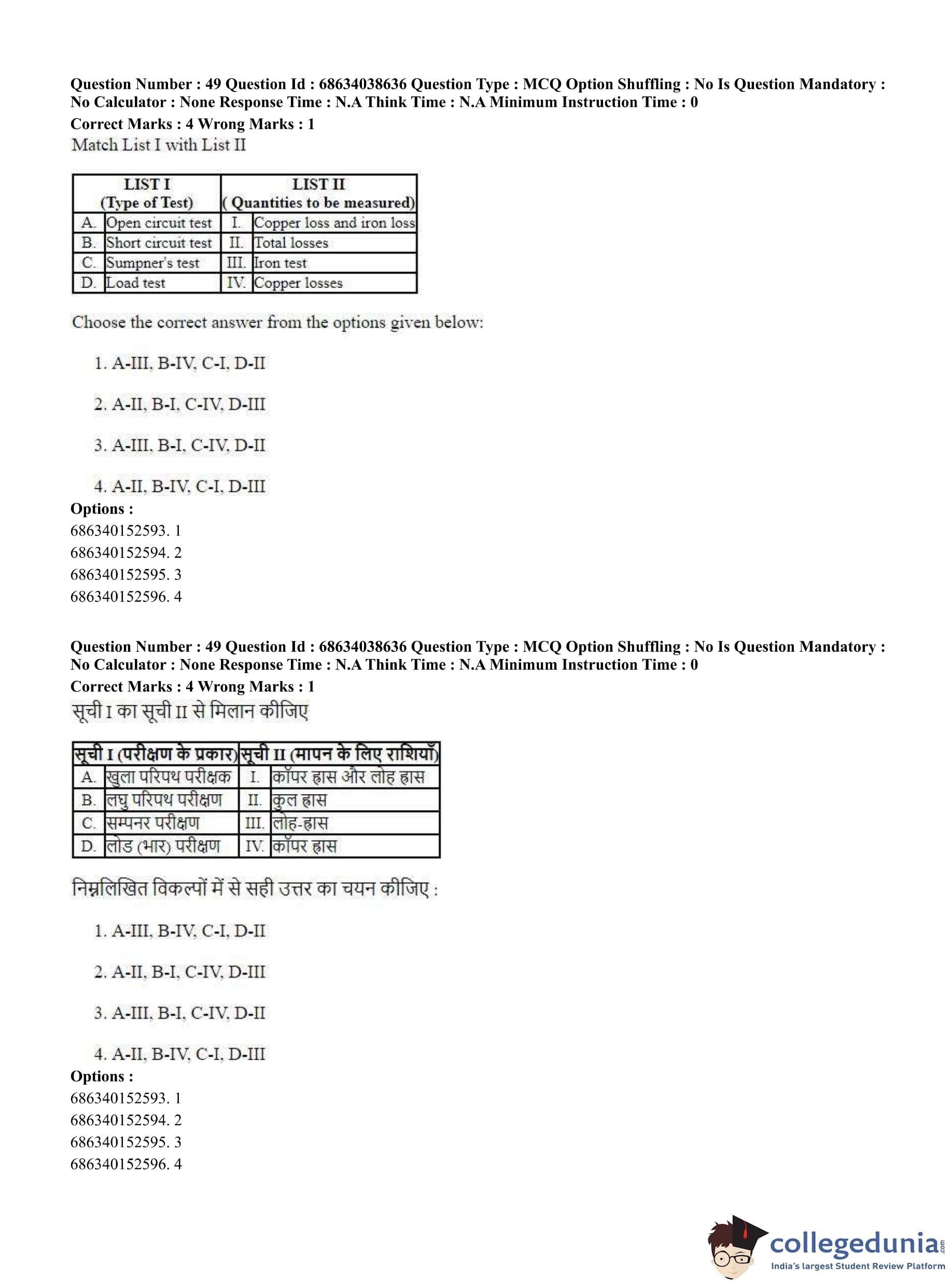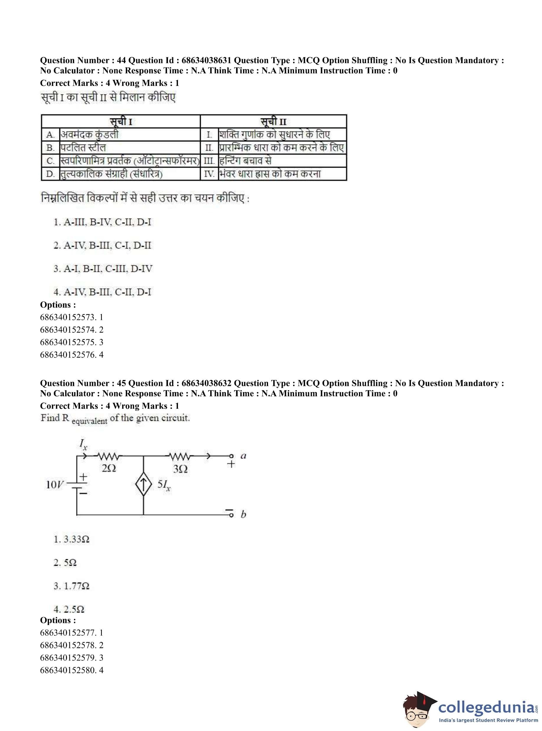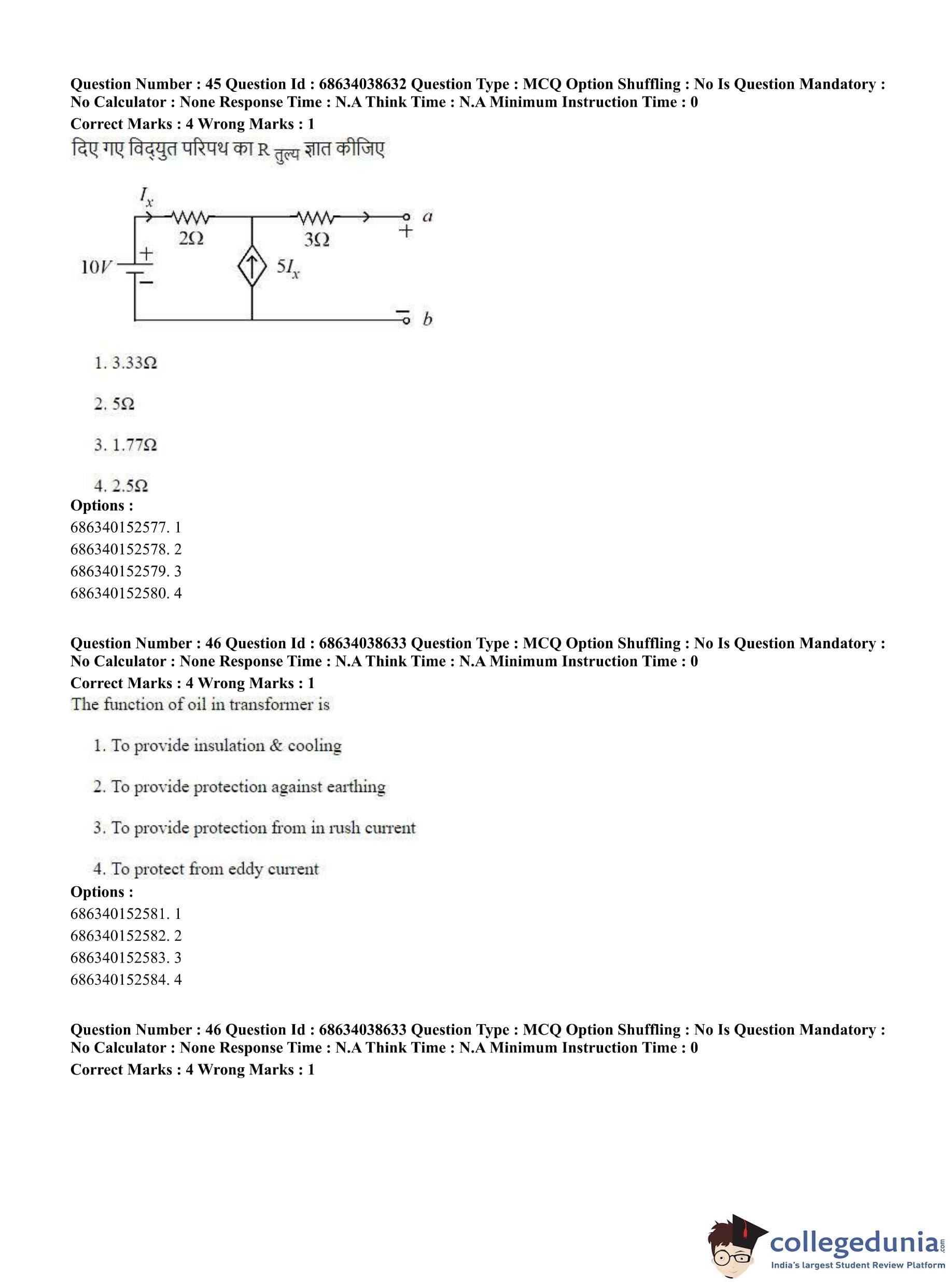 CUET PG 2023 Electrical, Power and Energy Engineering Question Paper in English (June 25 - Shift 2)