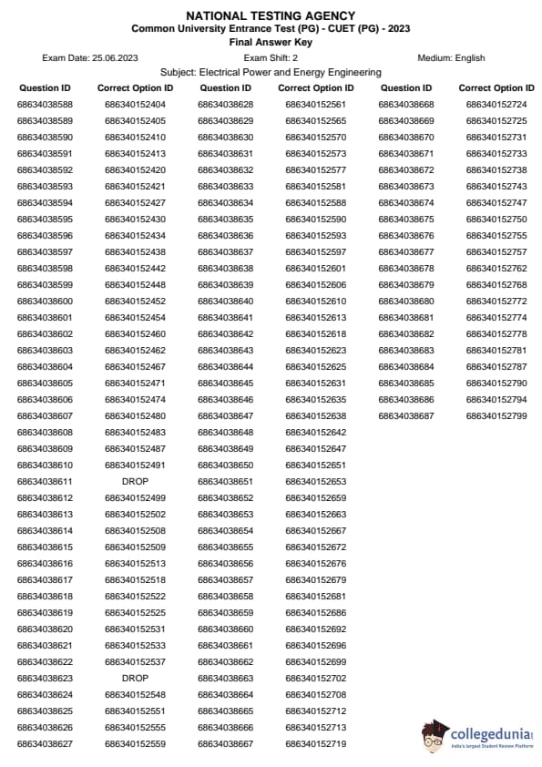 | CUET PG Electrical, Power and Energy Engineering Question Paper 2023 PDF | CUET PG Electrical, Power and Energy Engineering Answer Key 2023 PDF |