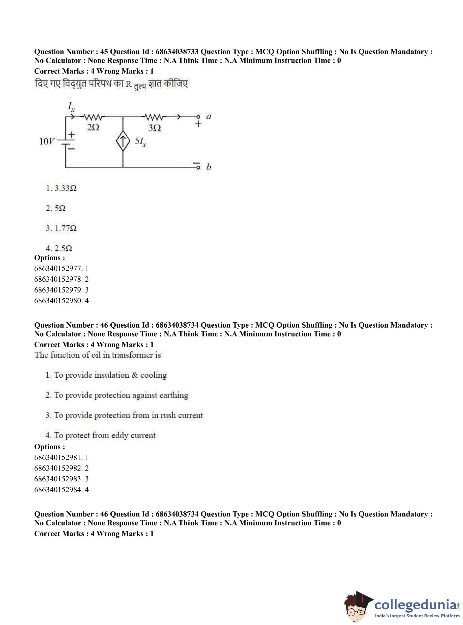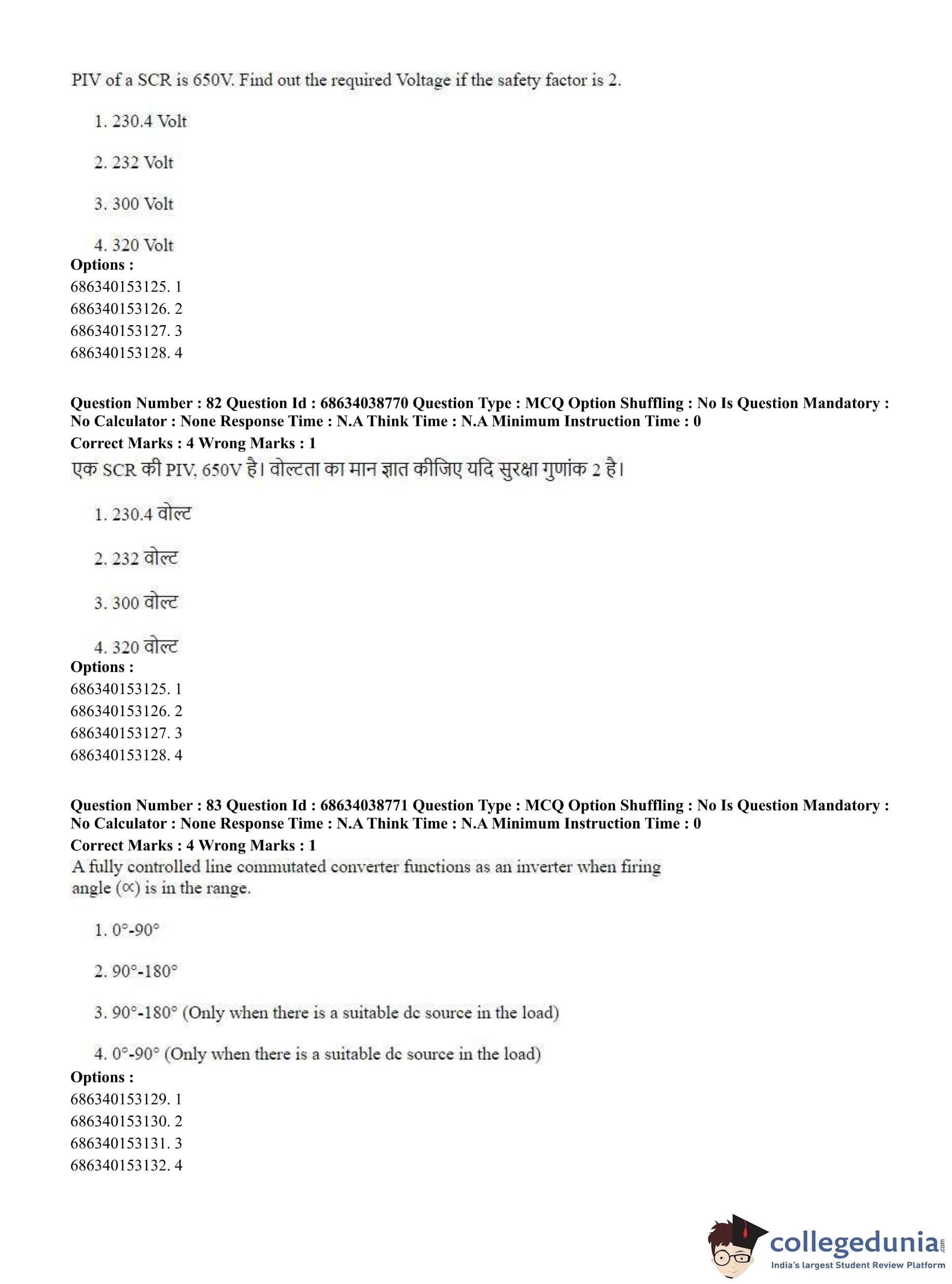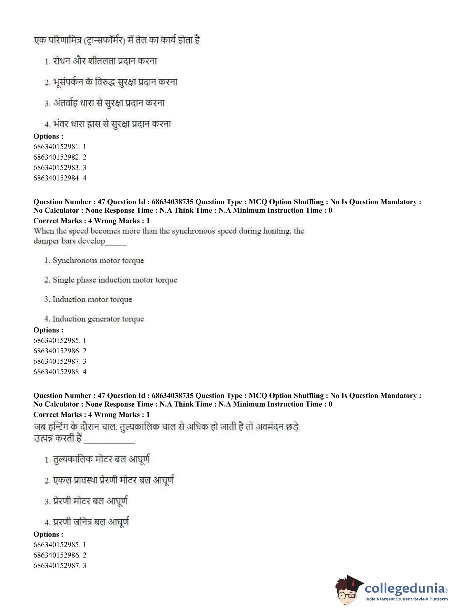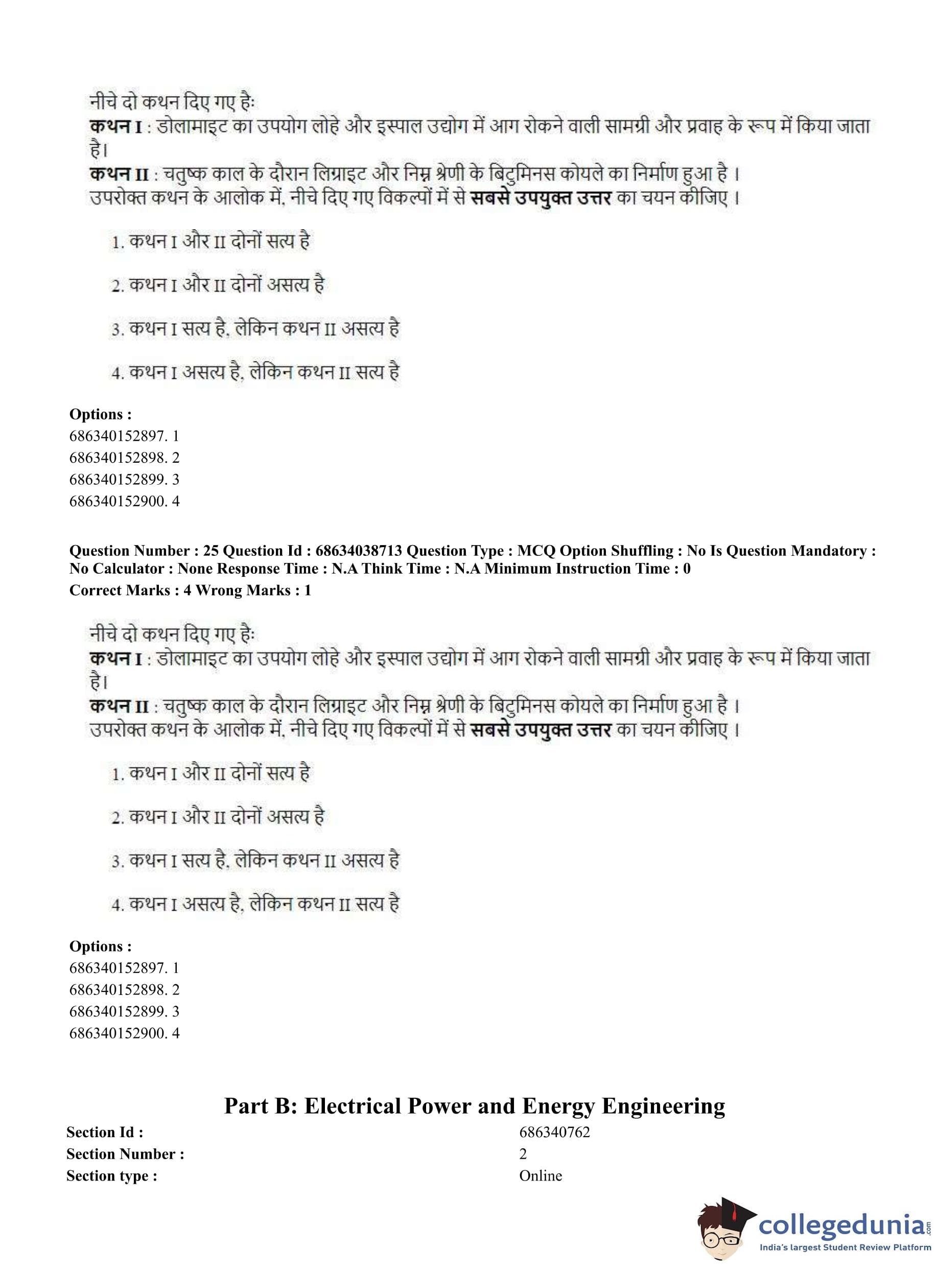 CUET PG 2023 Electrical, Power and Energy Engineering Question Paper in Hindi (June 25 - Shift 2)