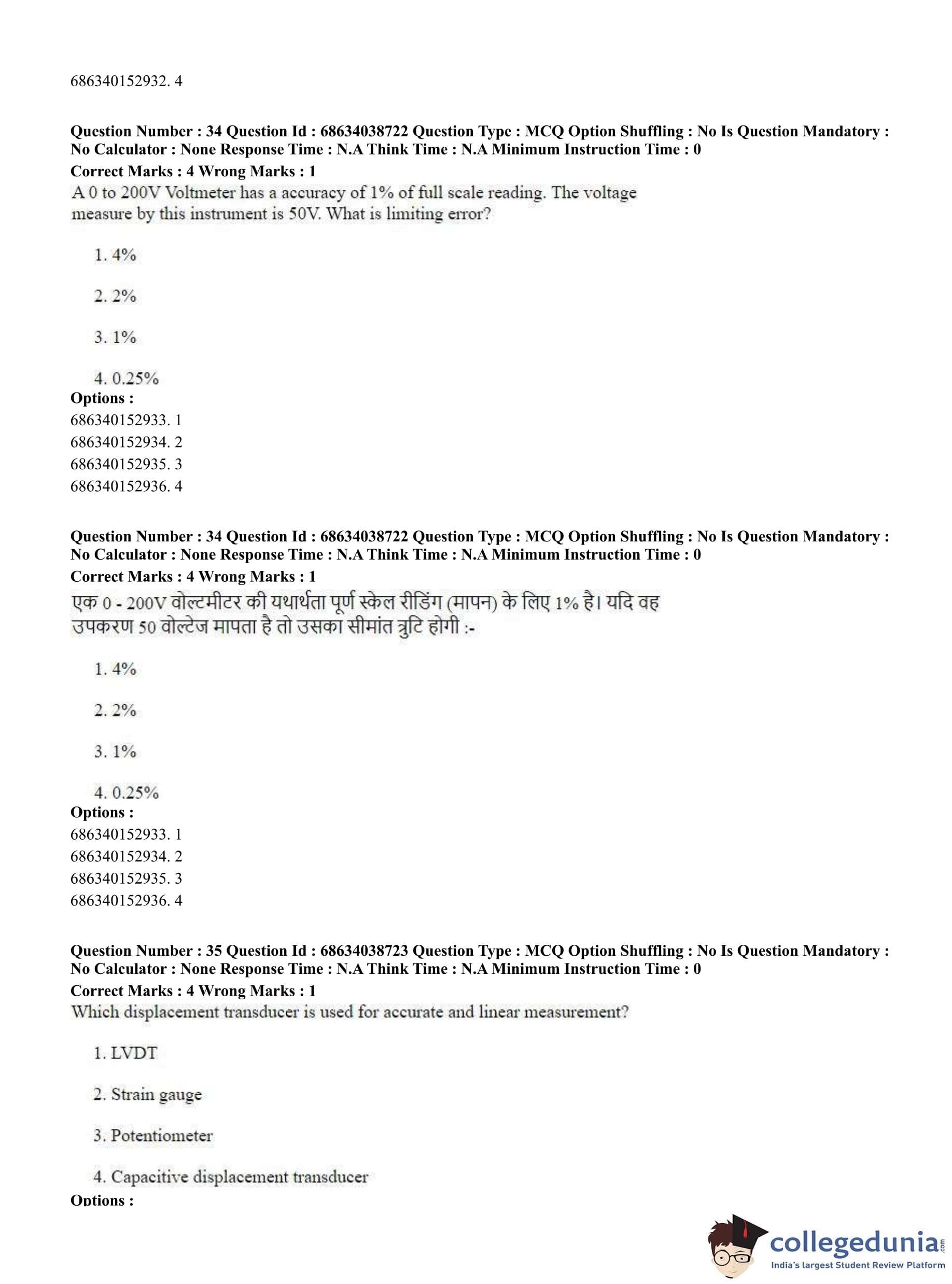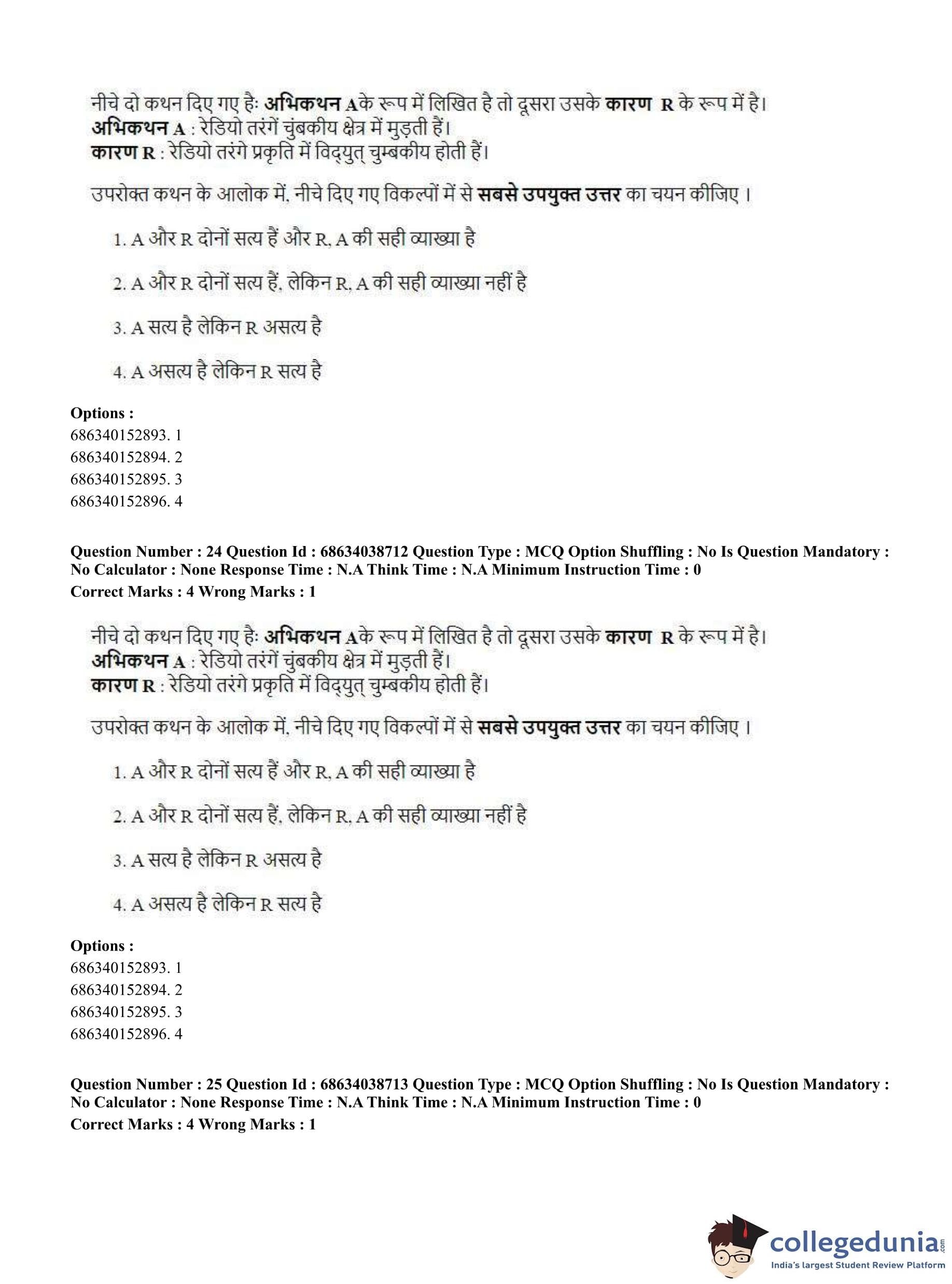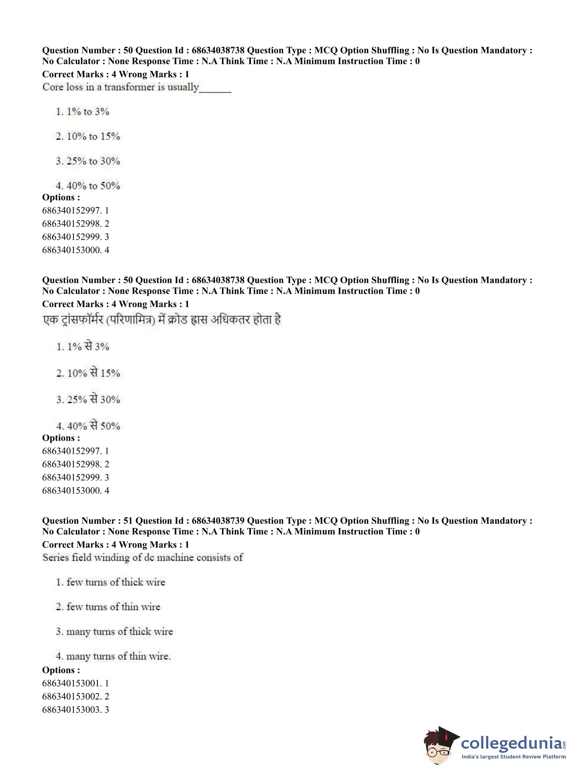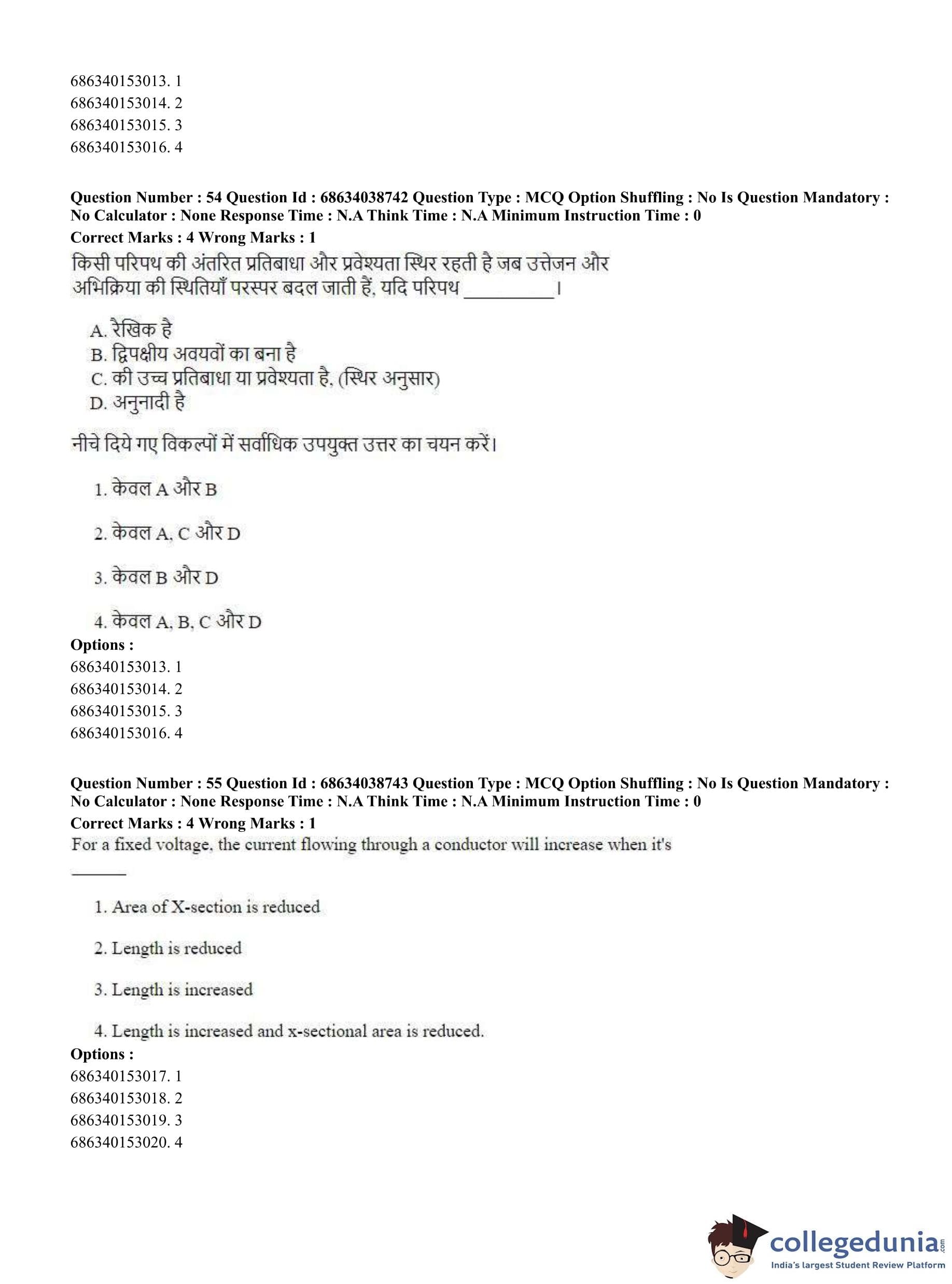 CUET PG 2023 Electrical, Power and Energy Engineering Question Paper in Hindi (June 25 - Shift 2)
