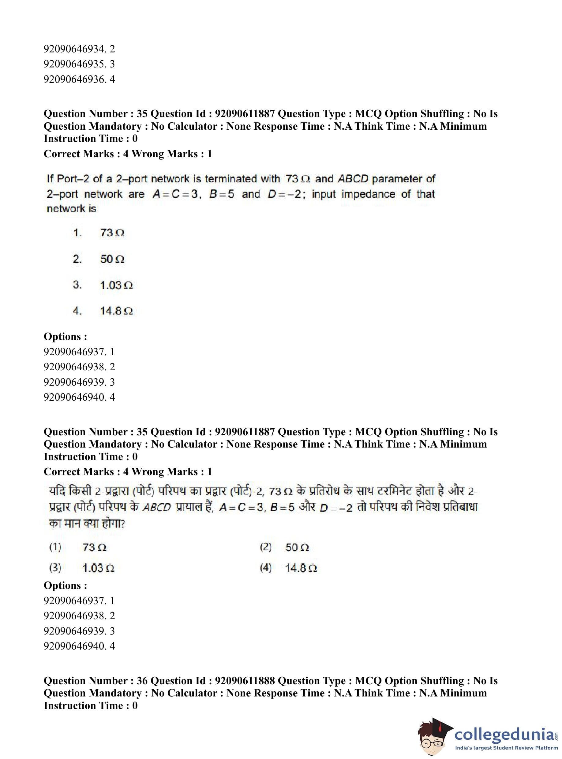 CUET PG 2023 Electronics, Communication and Information Engineering Question Paper in Hindi (June 10 - Shift 2)