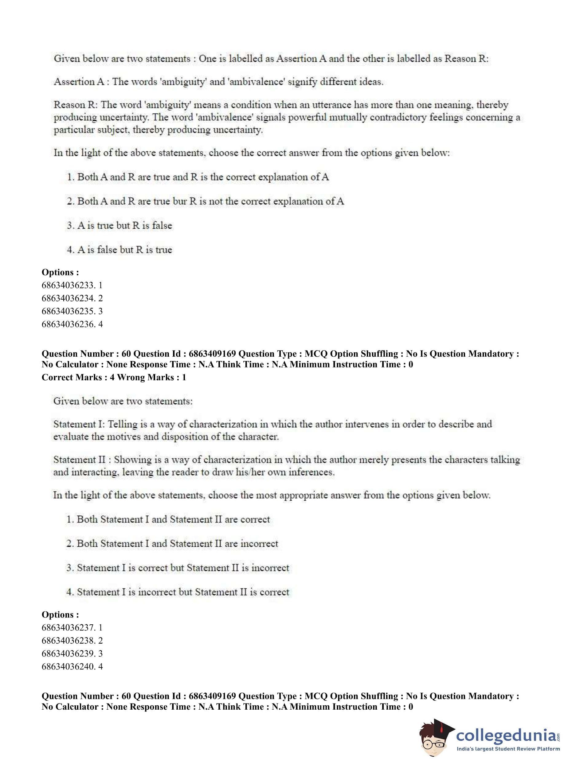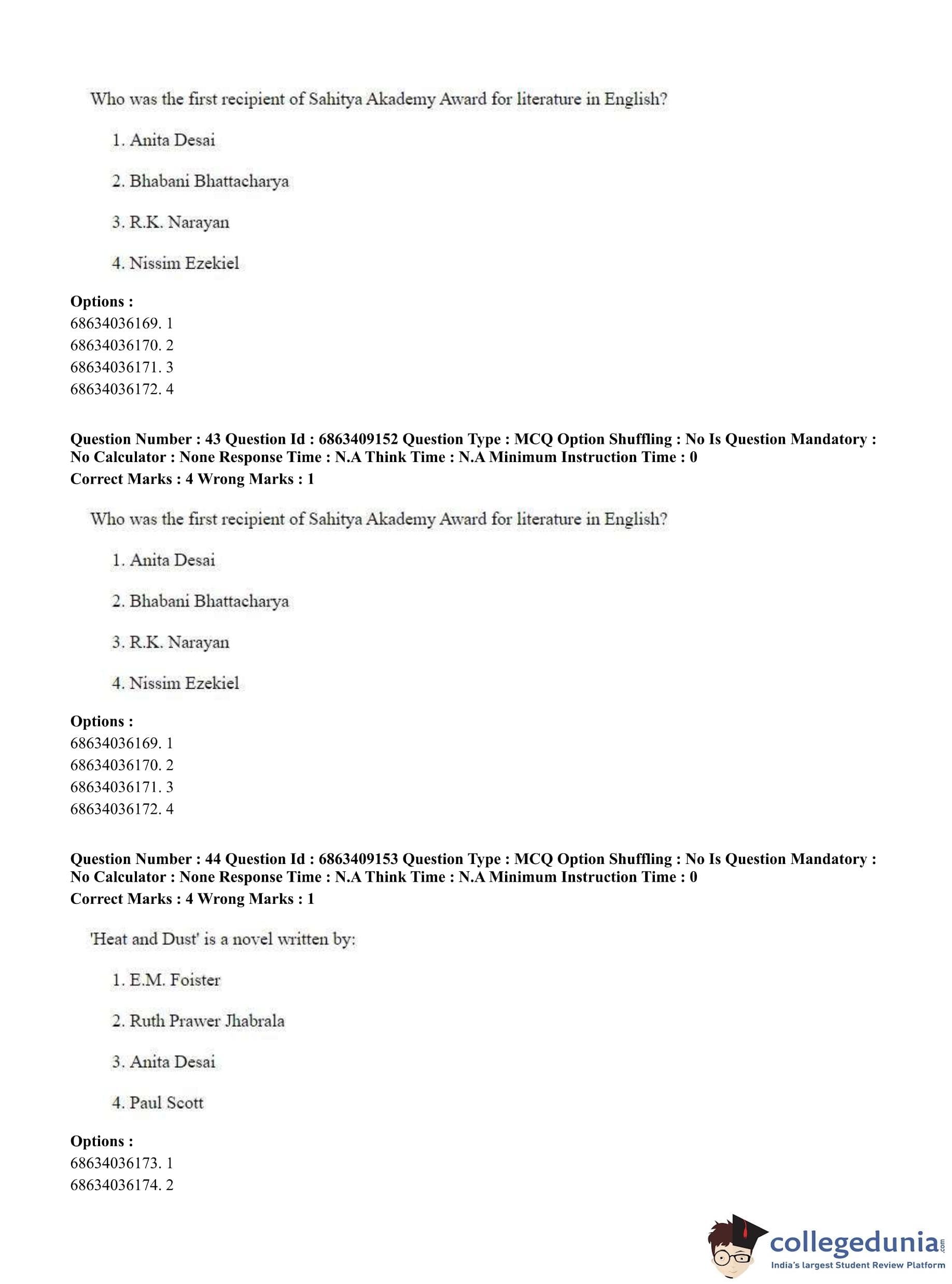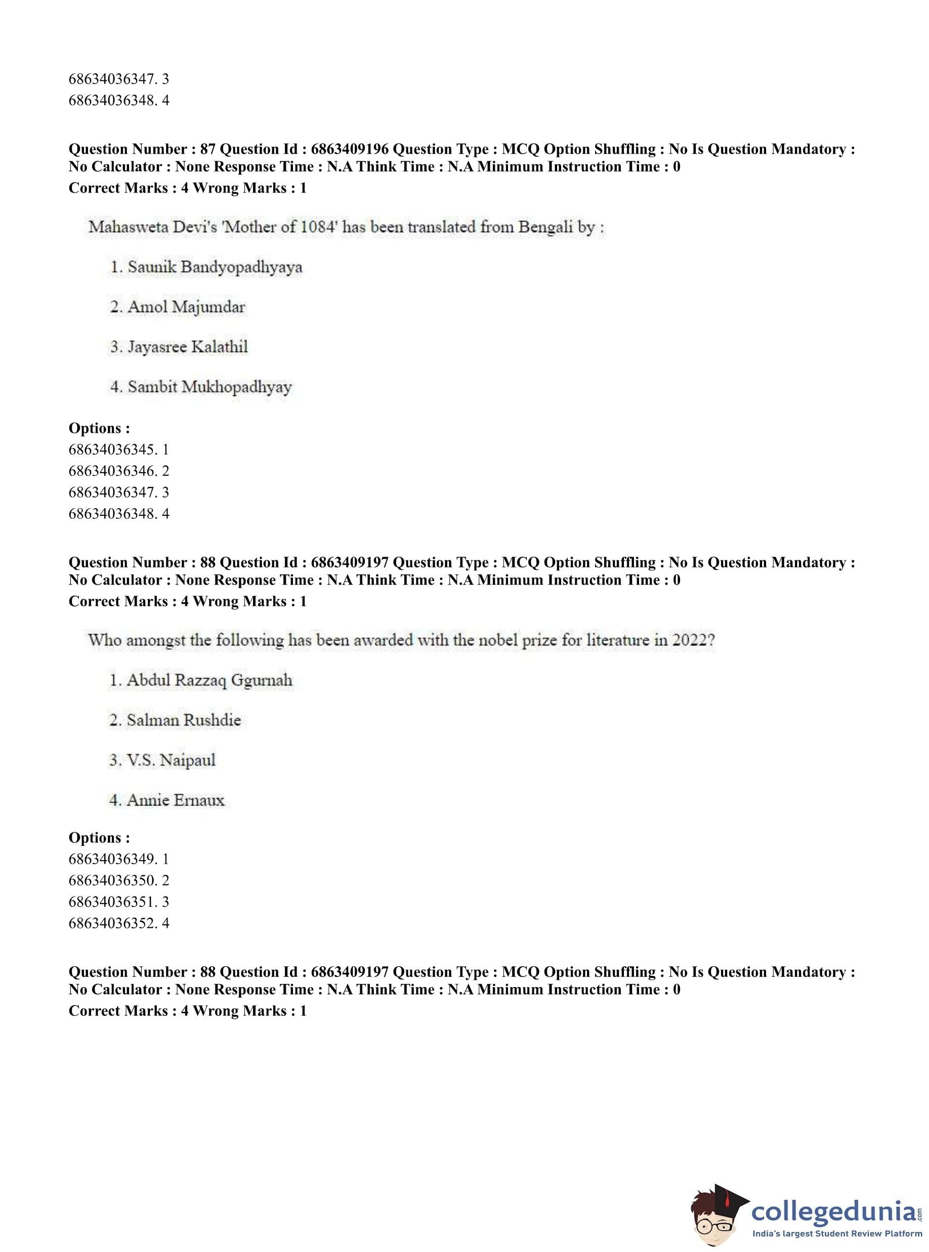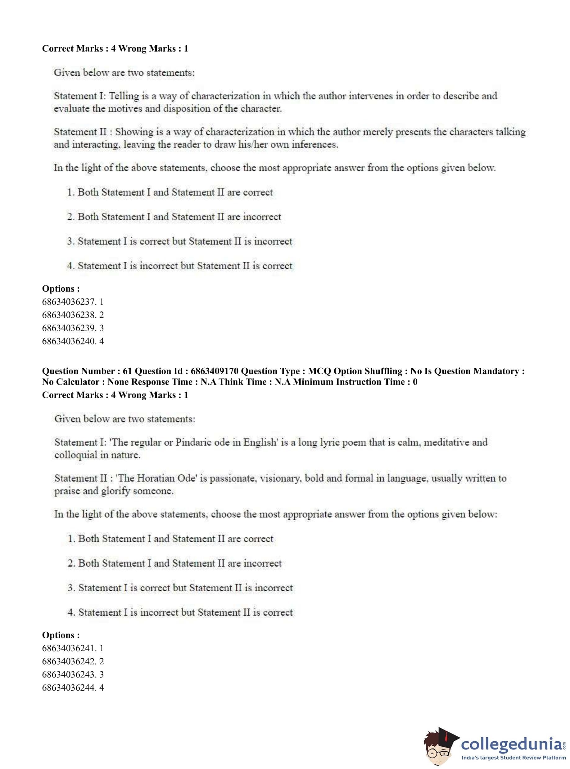 CUET PG 2023 English Question Paper with Answer Key PDF is available for download here. The exam was conducted by National Testing Agency (NTA) on June 7, 2023 in Shift 3. The question paper comprised a total of 100 questions divided into 2 sections.