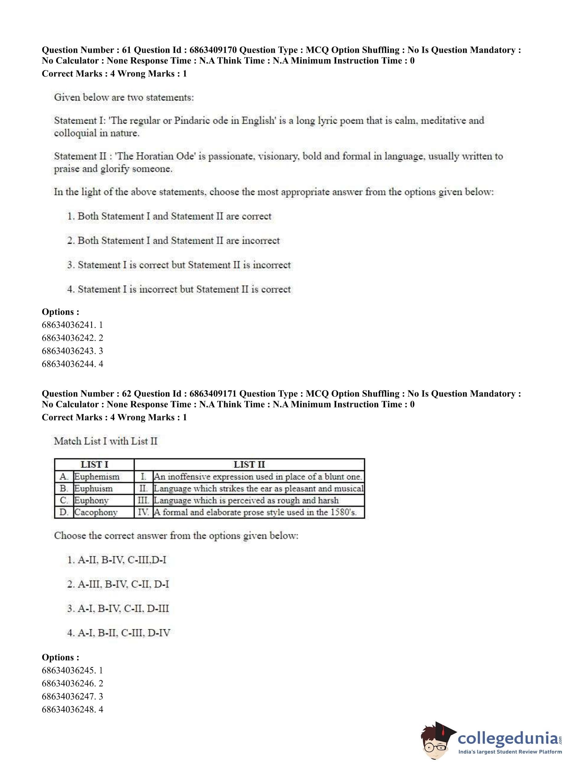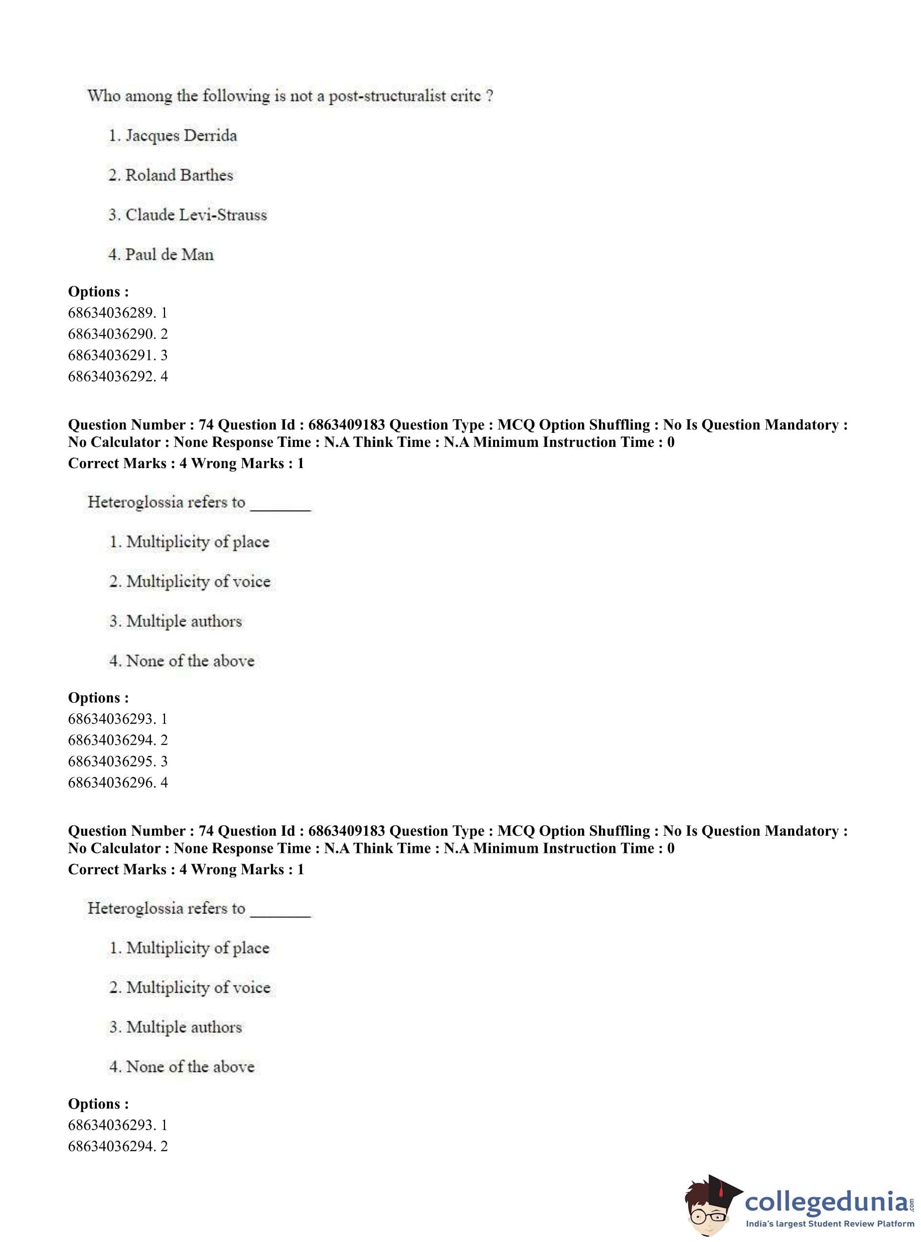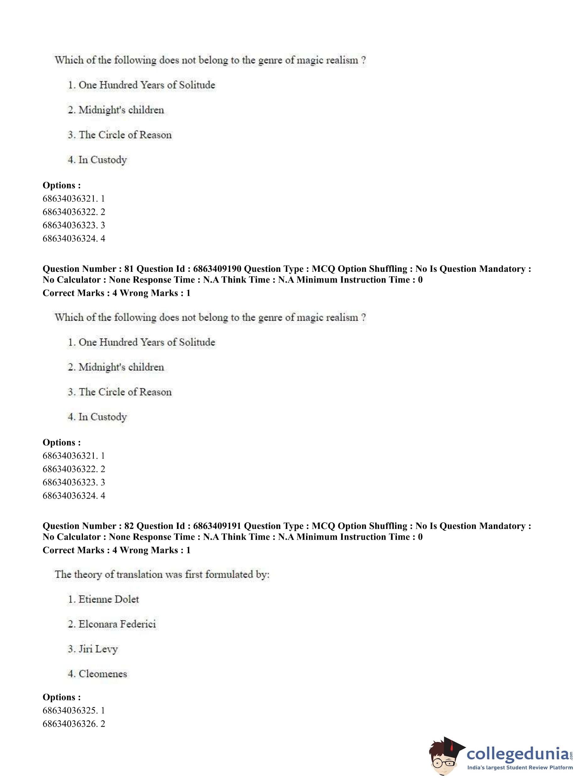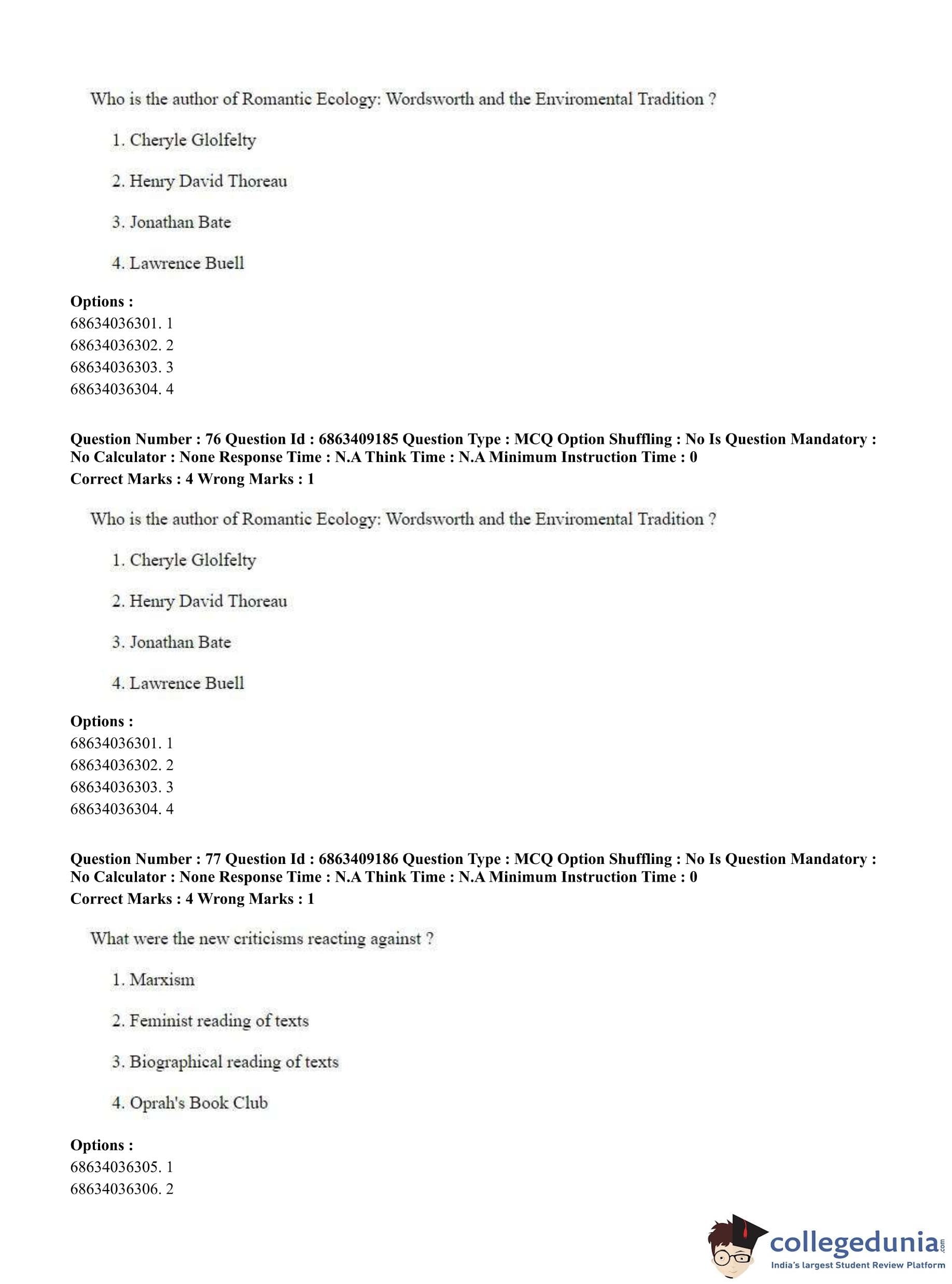 CUET PG 2023 English Question Paper with Answer Key PDF is available for download here. The exam was conducted by National Testing Agency (NTA) on June 7, 2023 in Shift 3. The question paper comprised a total of 100 questions divided into 2 sections.