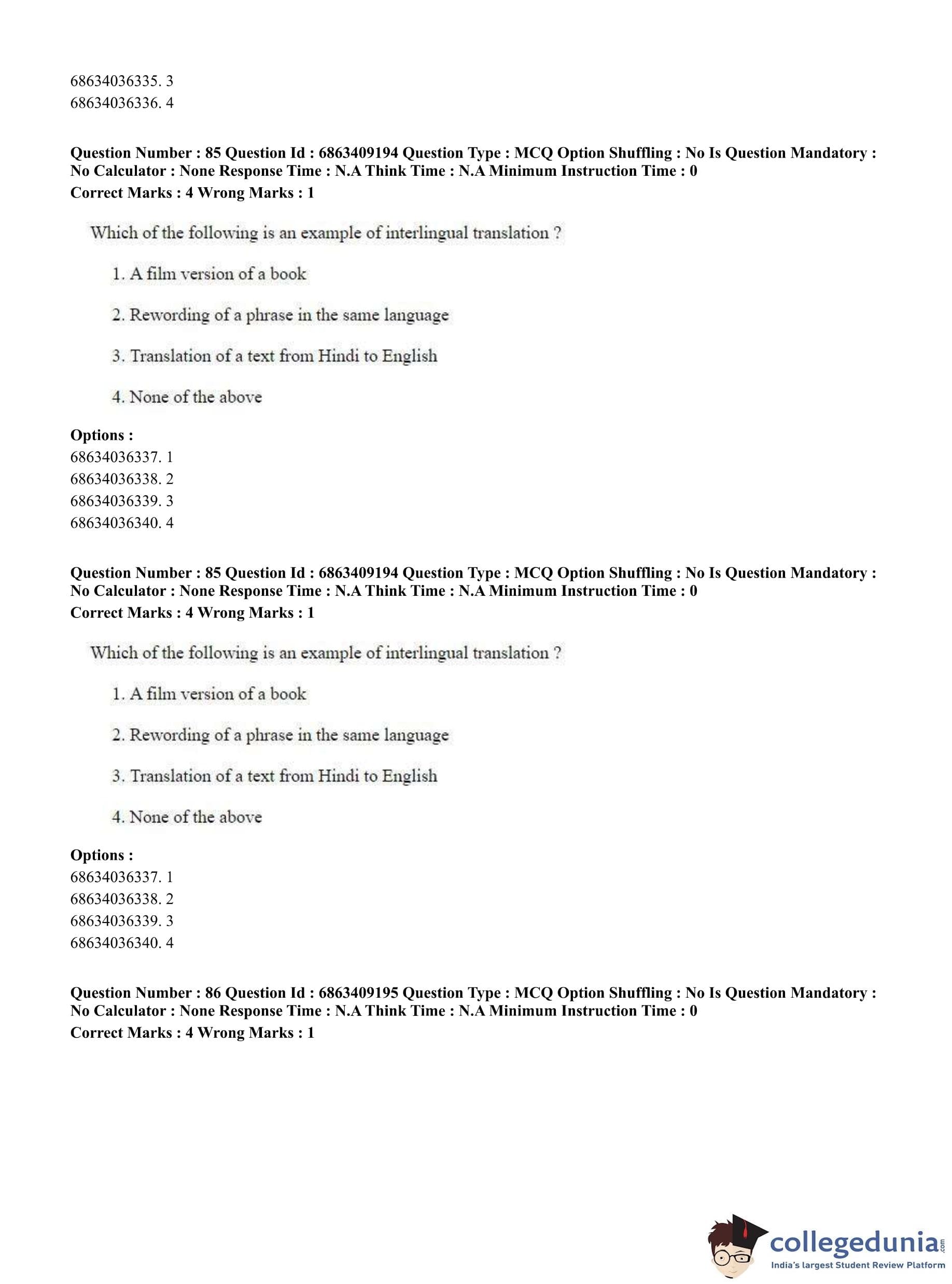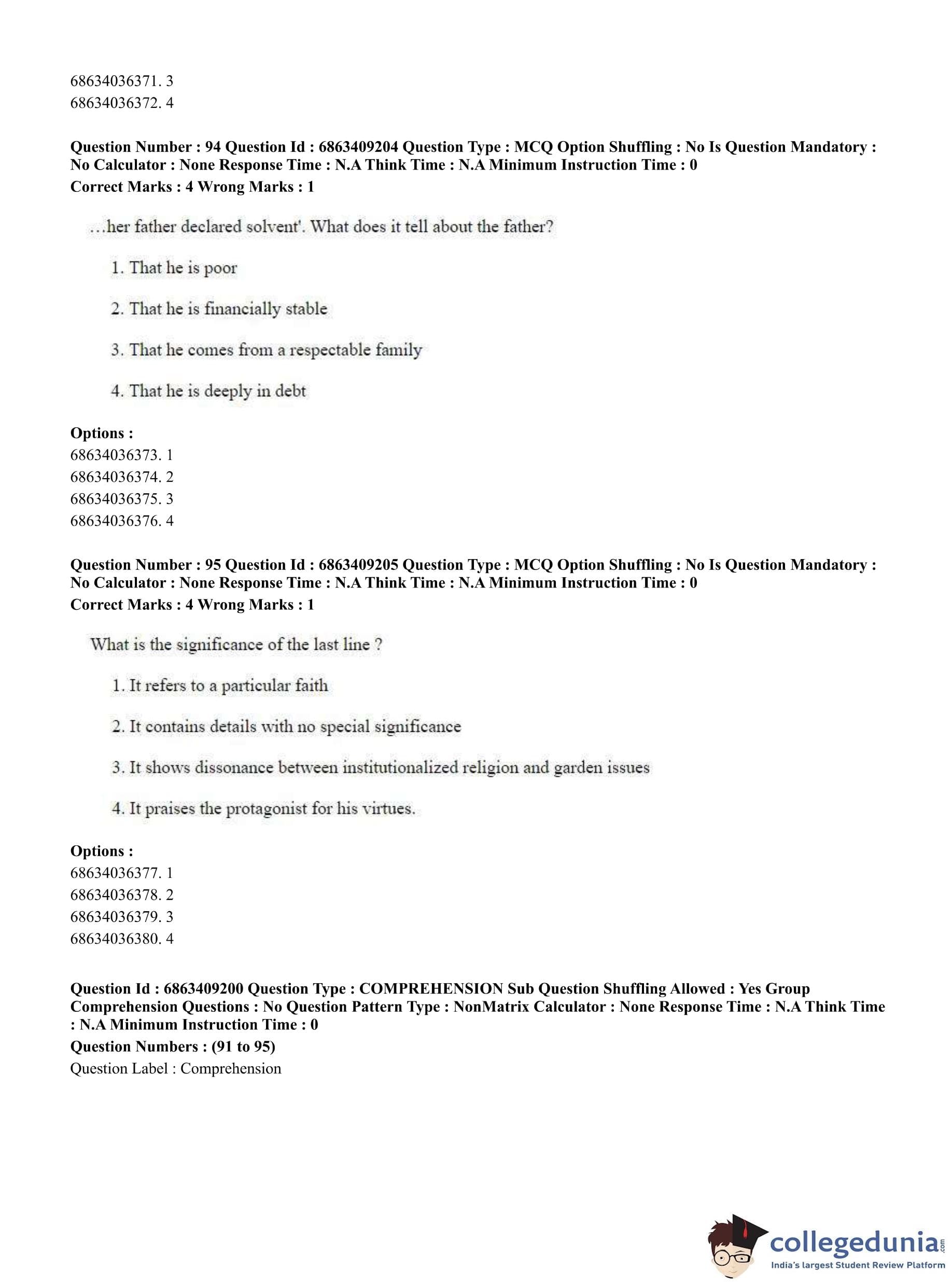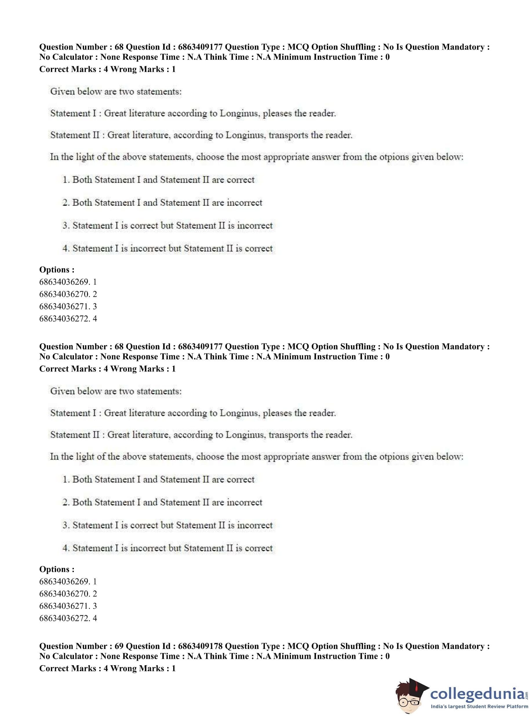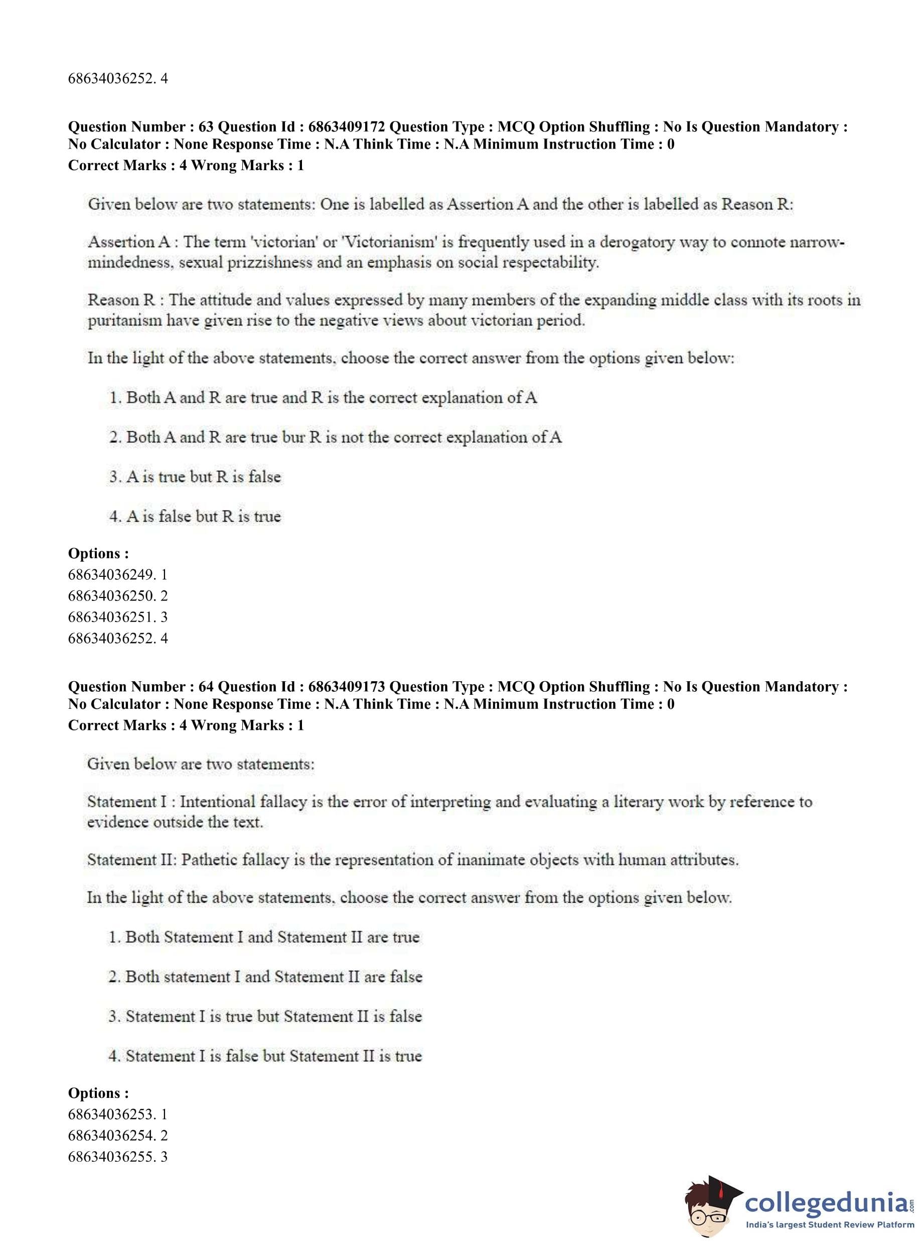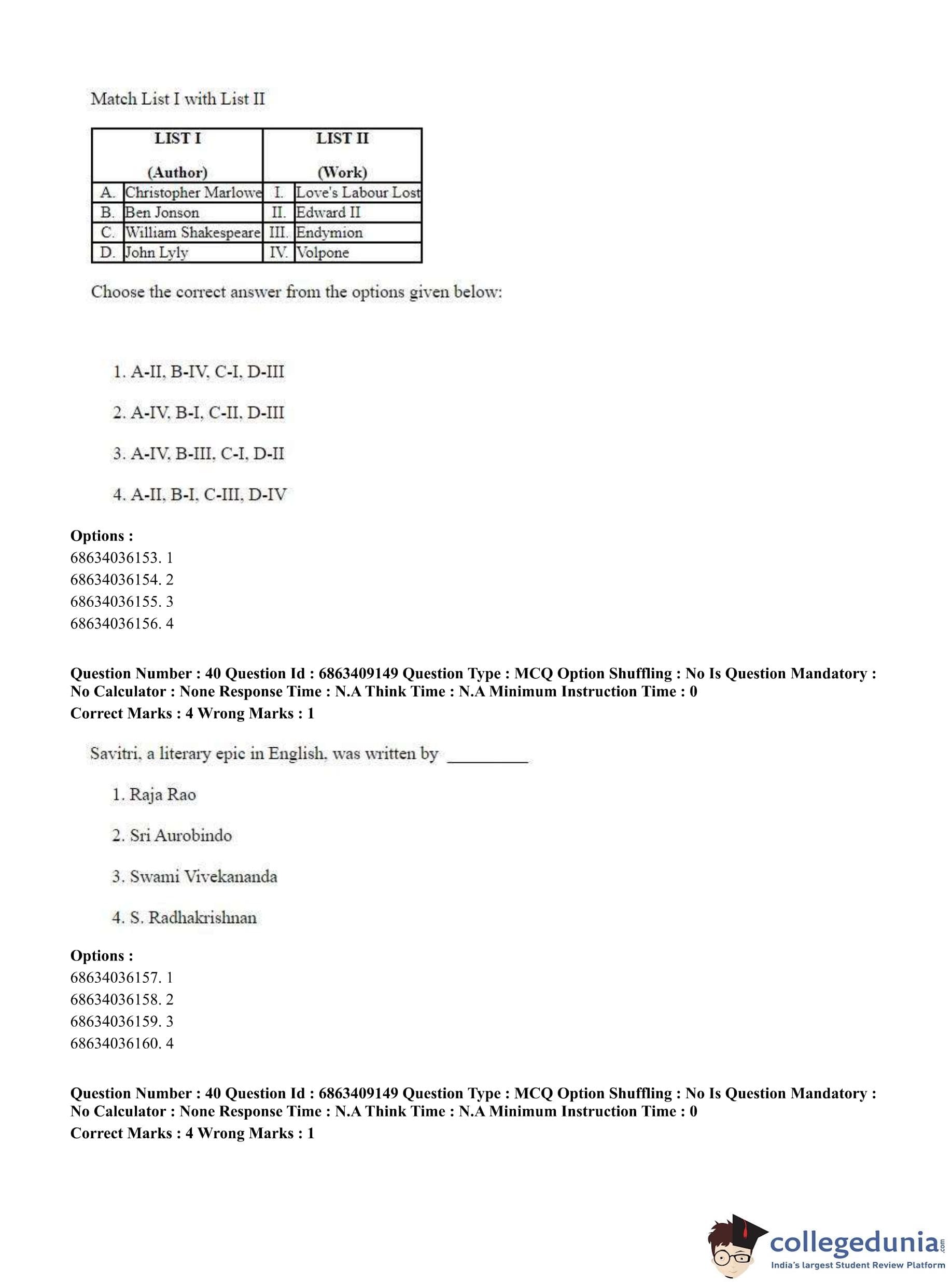CUET PG 2023 English Question Paper with Answer Key PDF is available for download here. The exam was conducted by National Testing Agency (NTA) on June 7, 2023 in Shift 3. The question paper comprised a total of 100 questions divided into 2 sections.