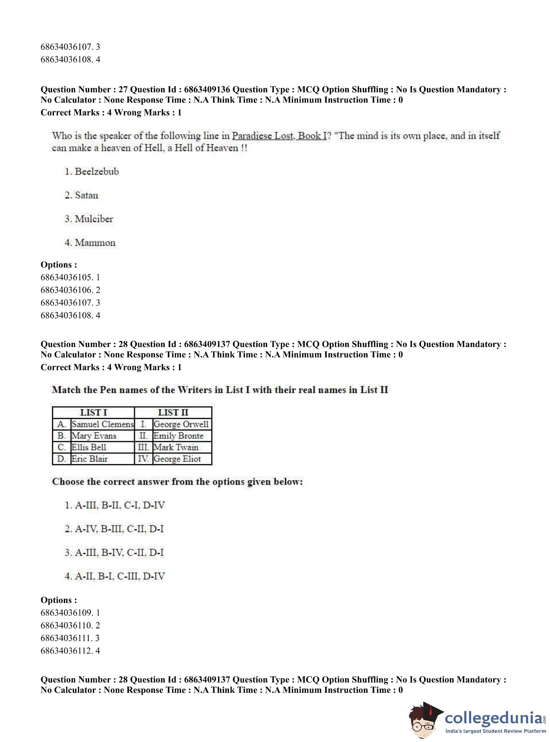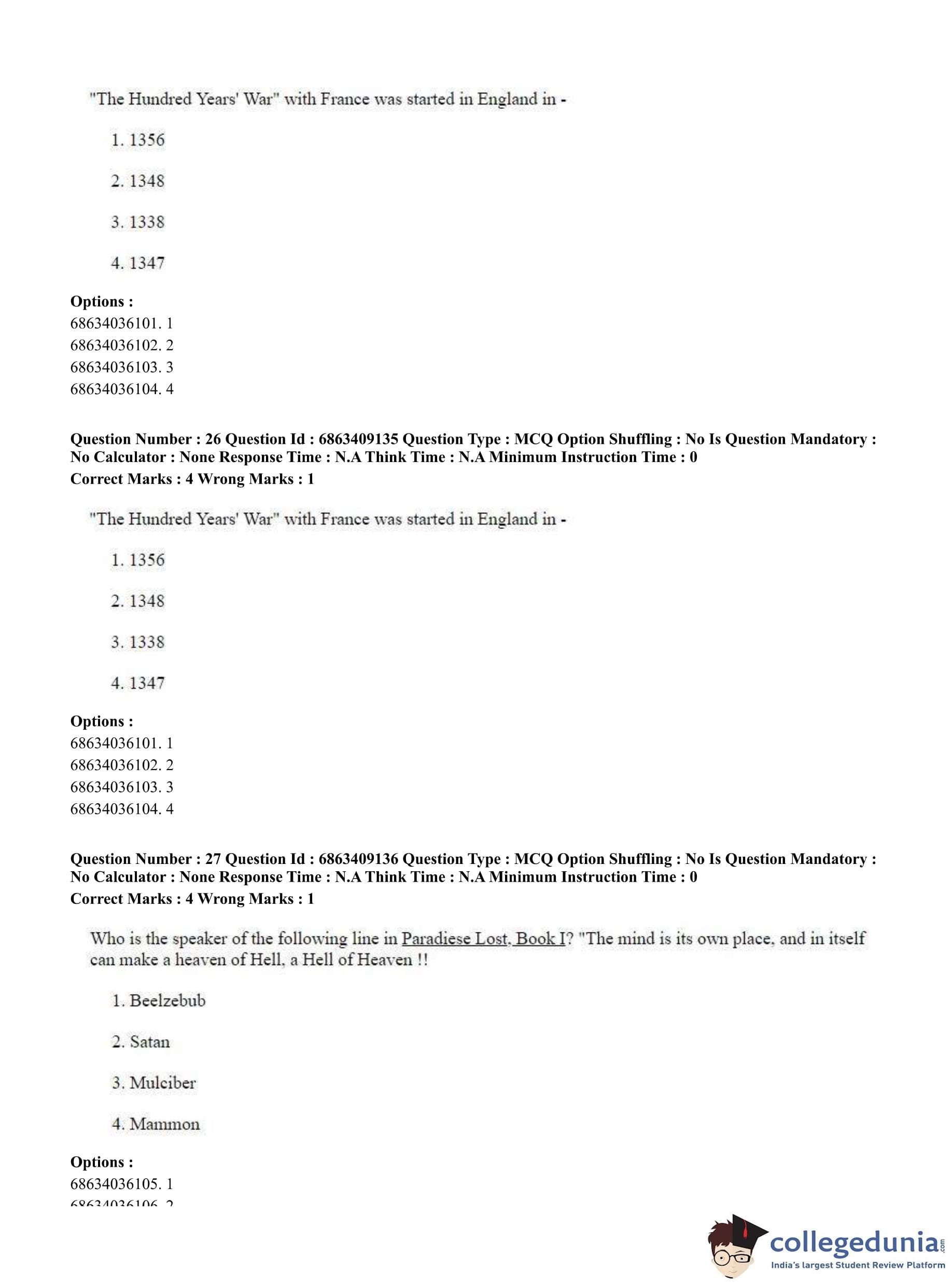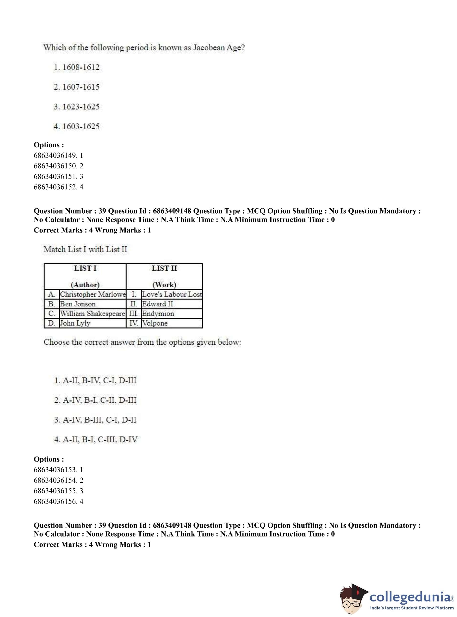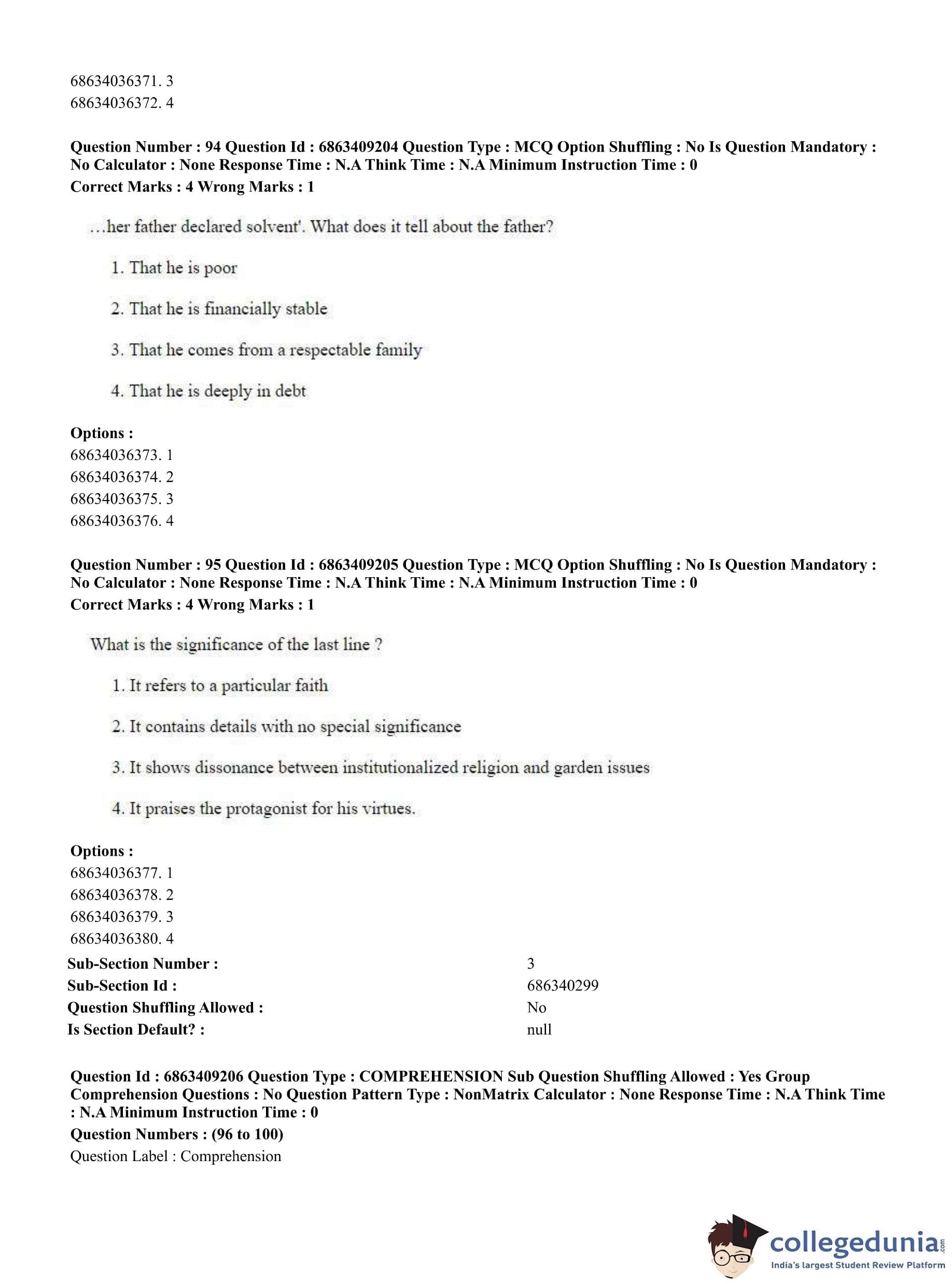 CUET PG 2023 English Question Paper with Answer Key PDF is available for download here. The exam was conducted by National Testing Agency (NTA) on June 7, 2023 in Shift 3. The question paper comprised a total of 100 questions divided into 2 sections.