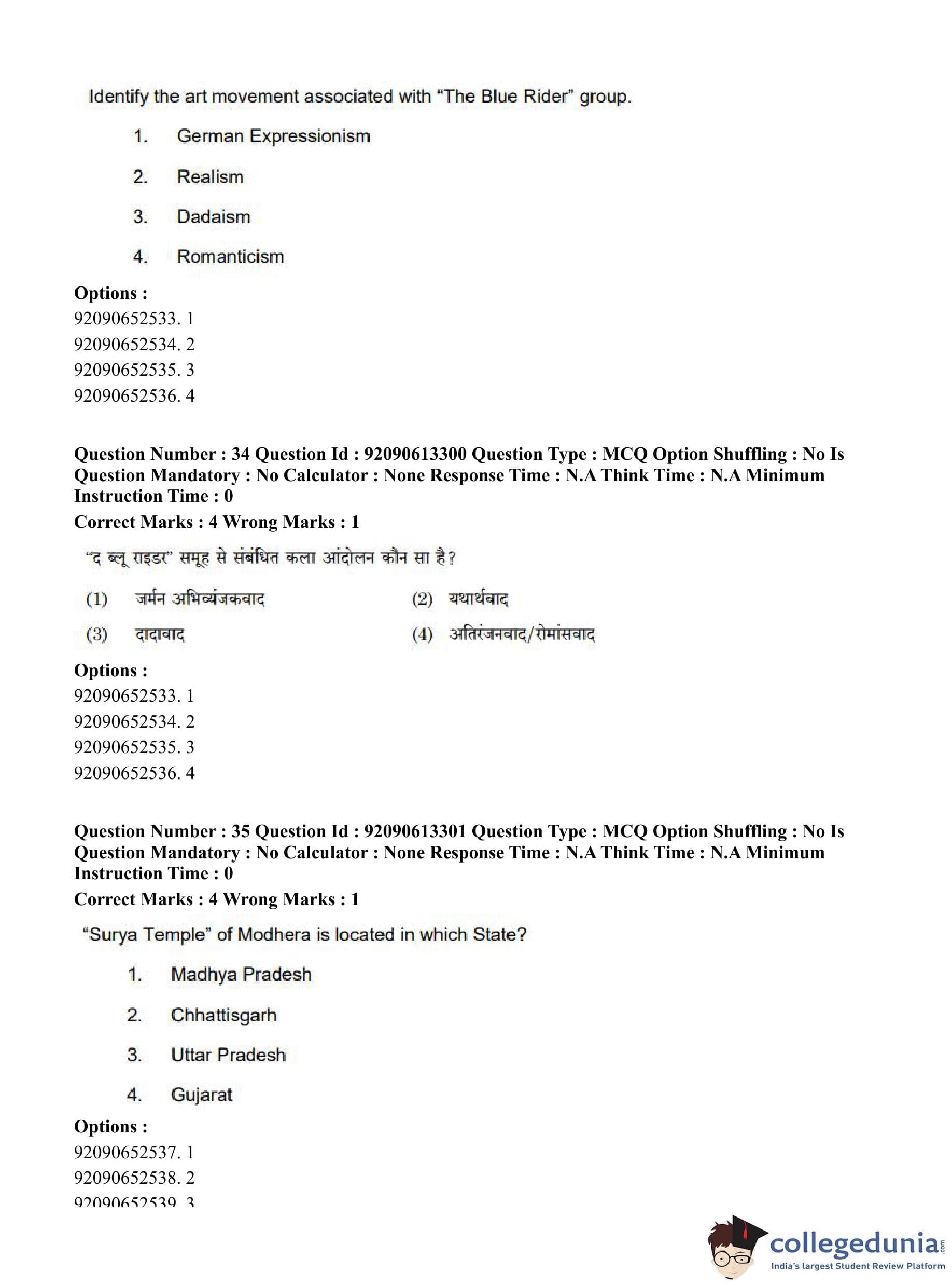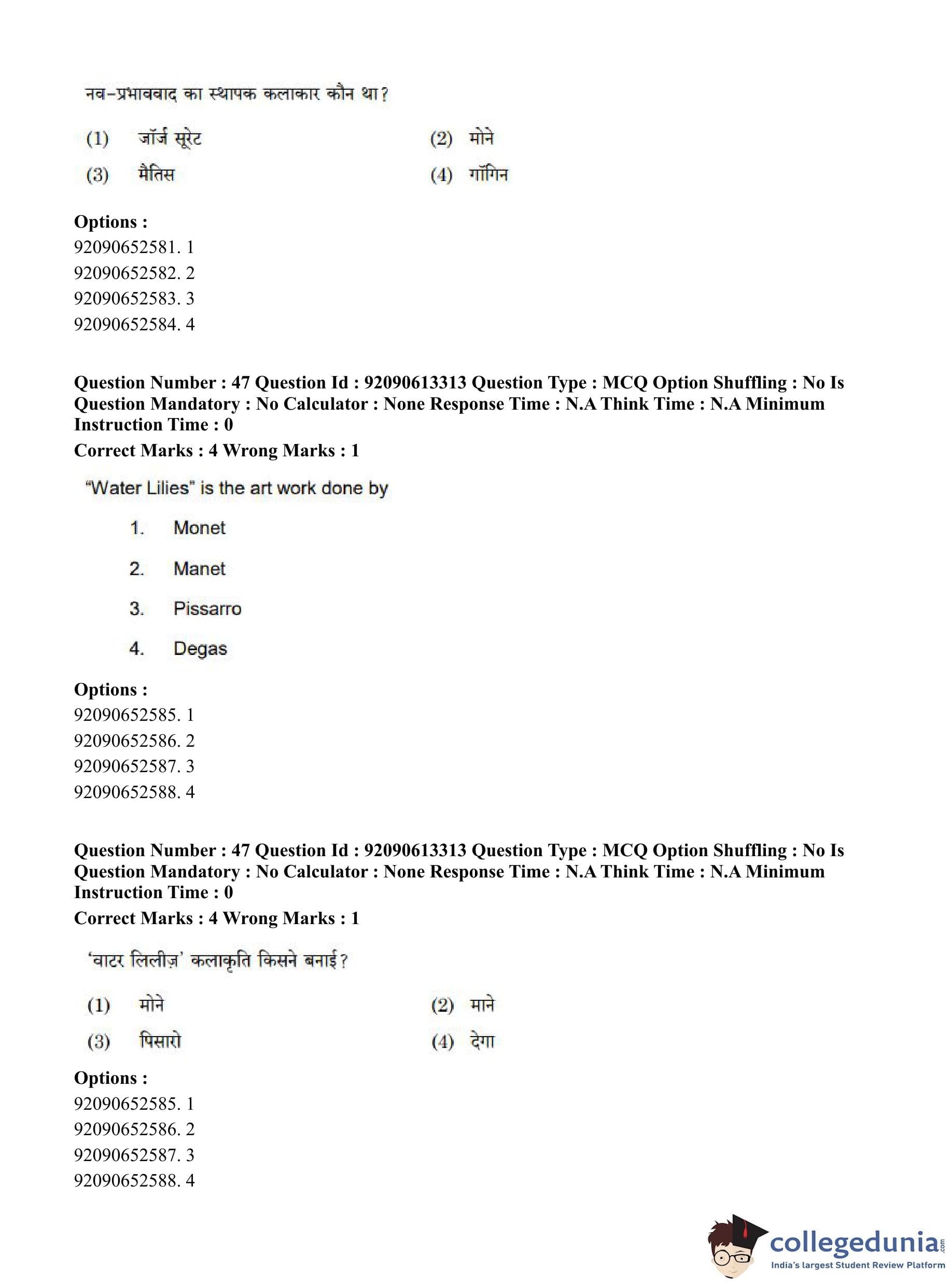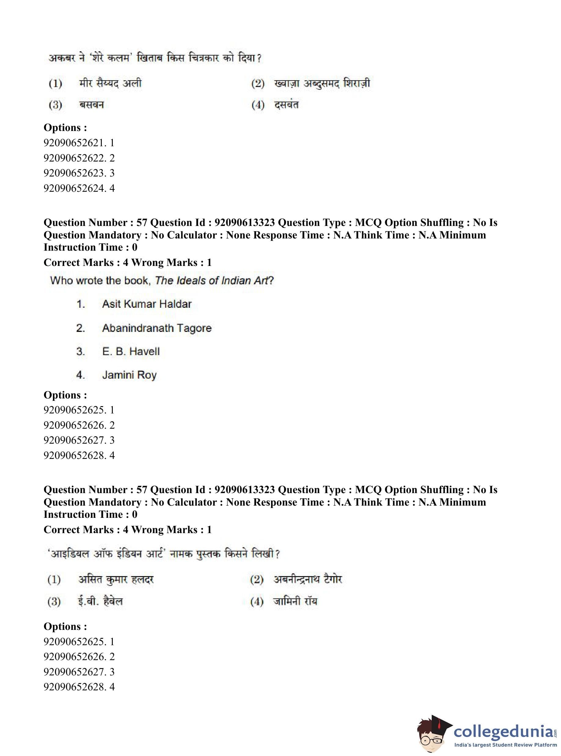 CUET PG 2023 Fine Arts Question Paper in English (June 12 - Shift 1)