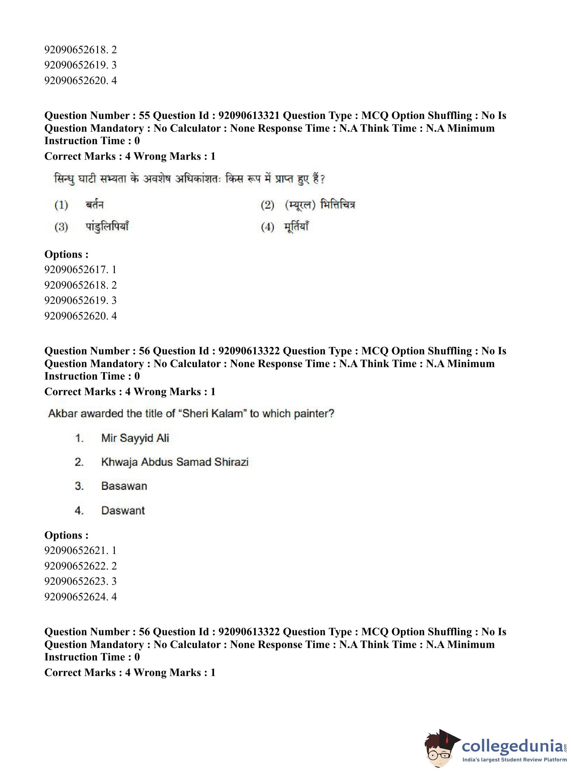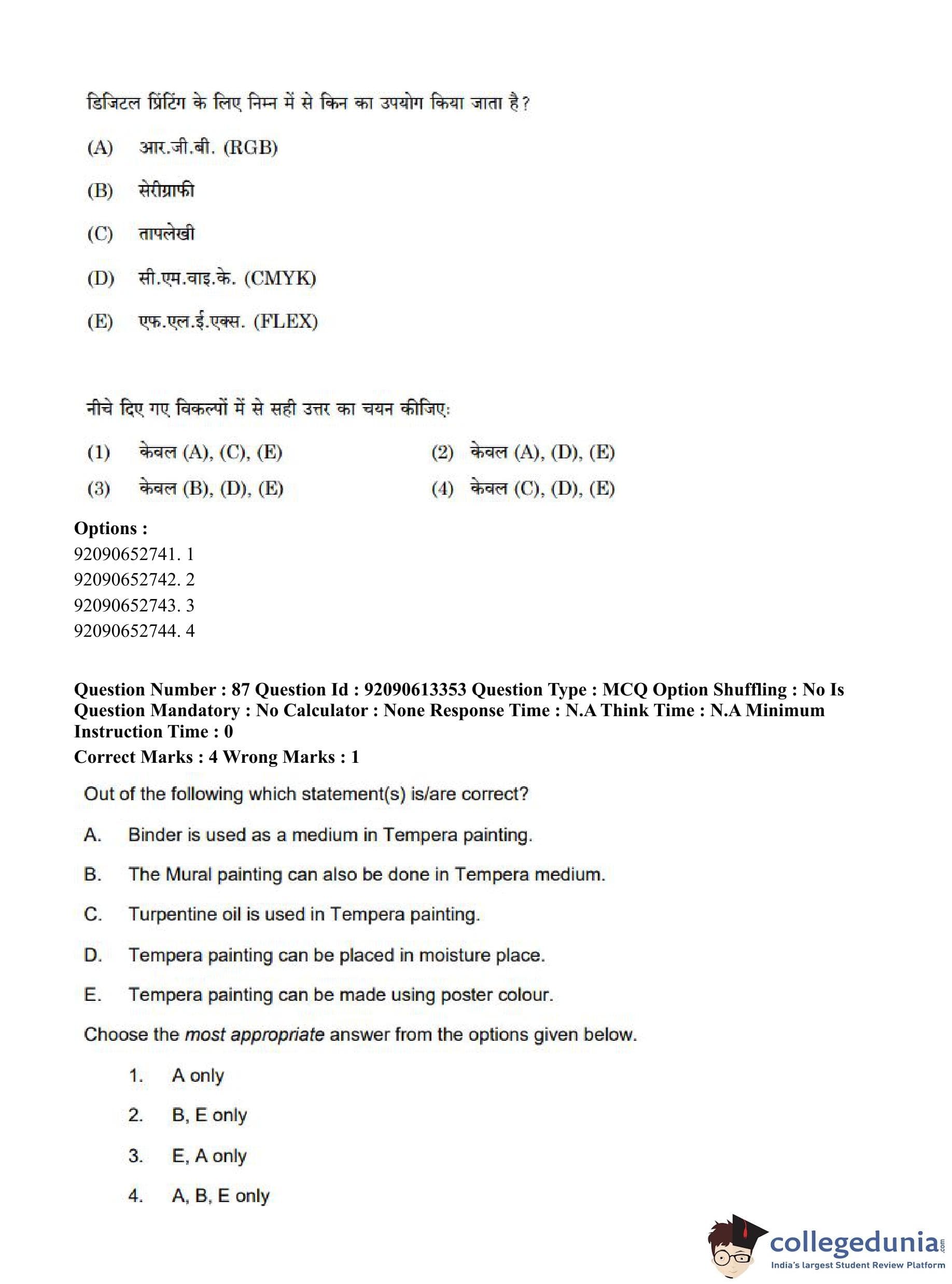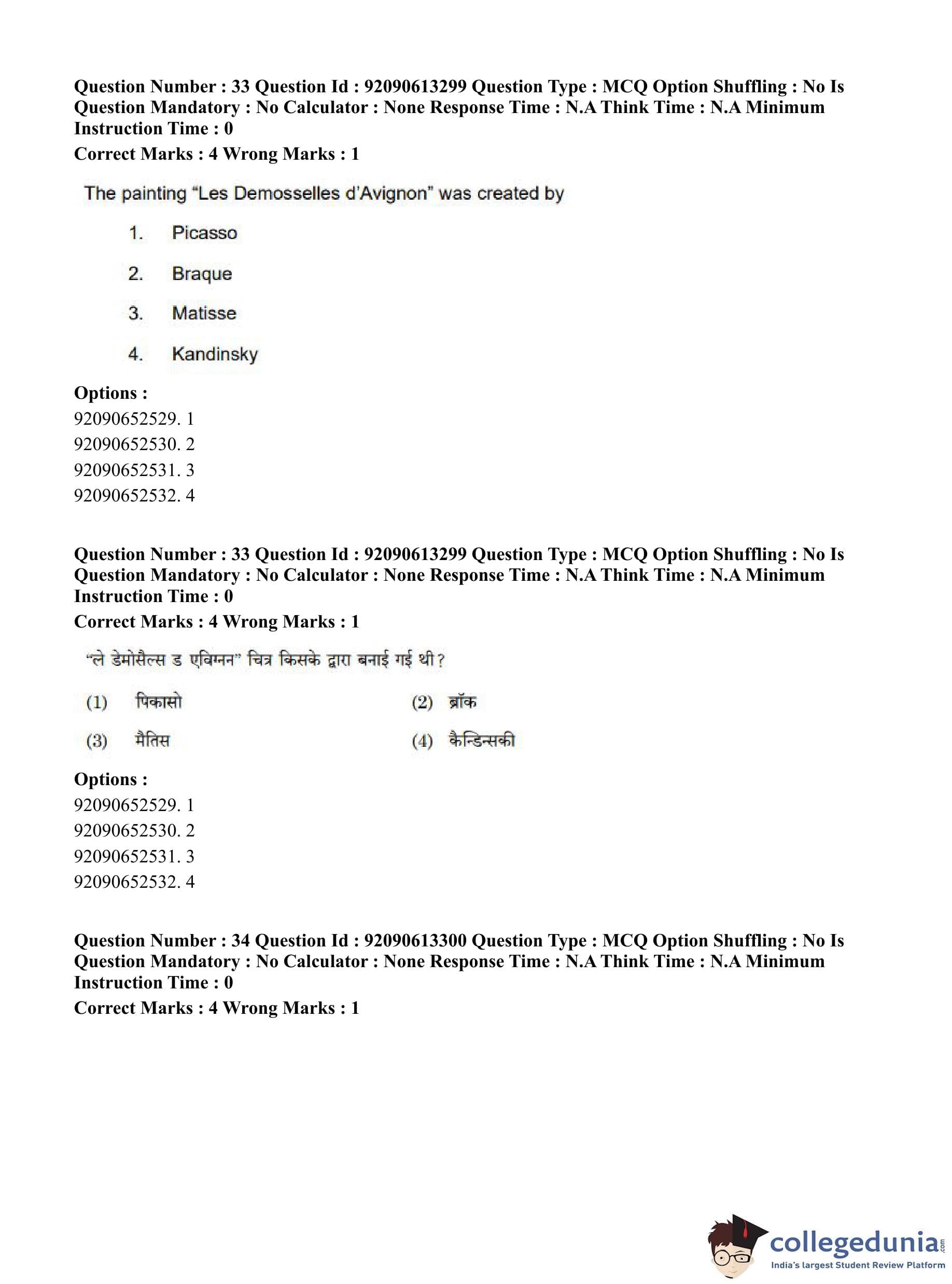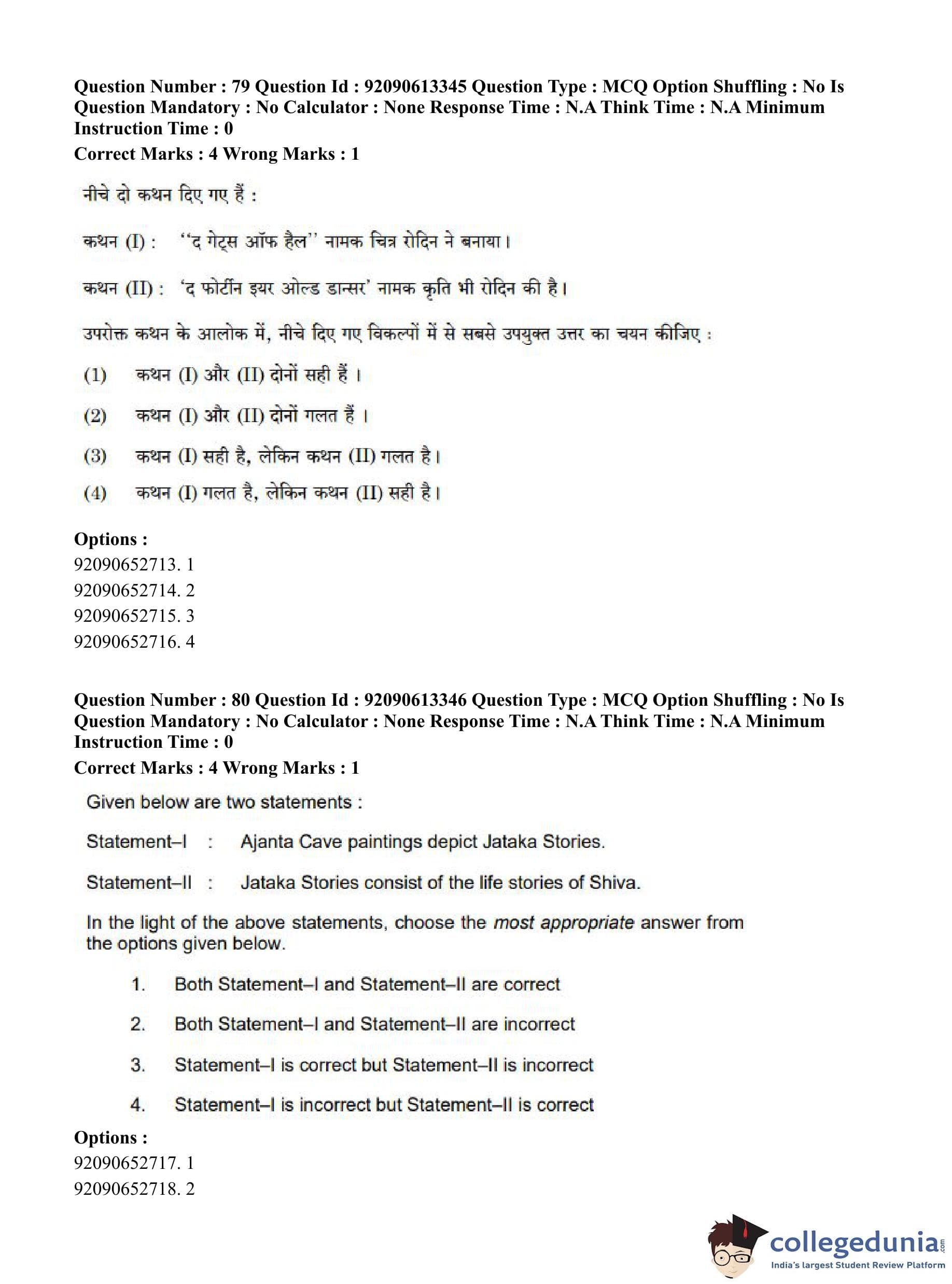 CUET PG 2023 Fine Arts Question Paper in English (June 12 - Shift 1)