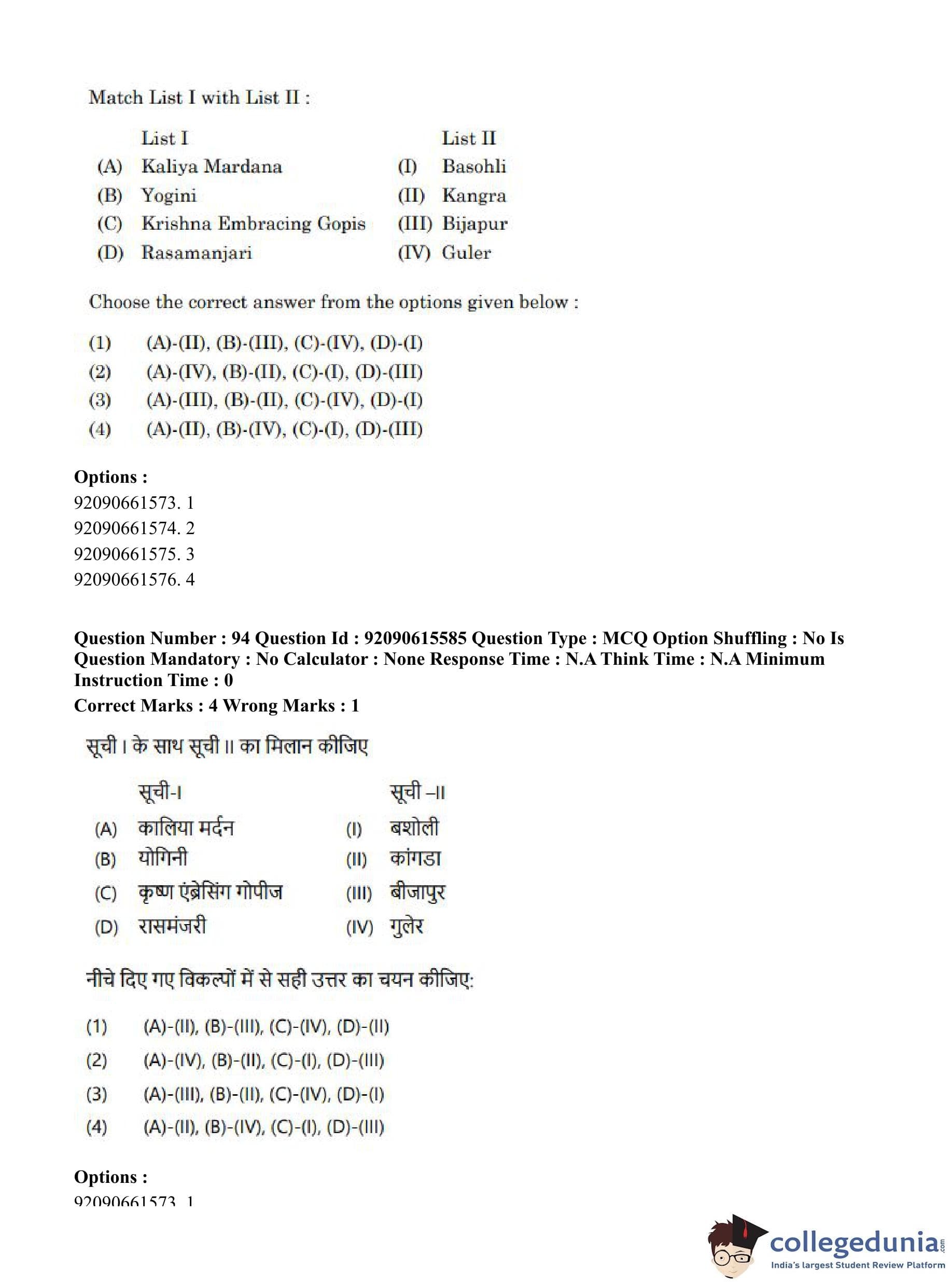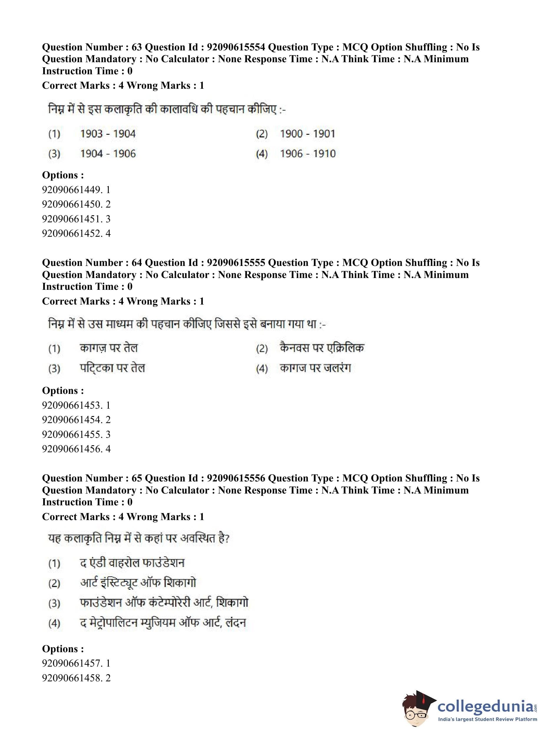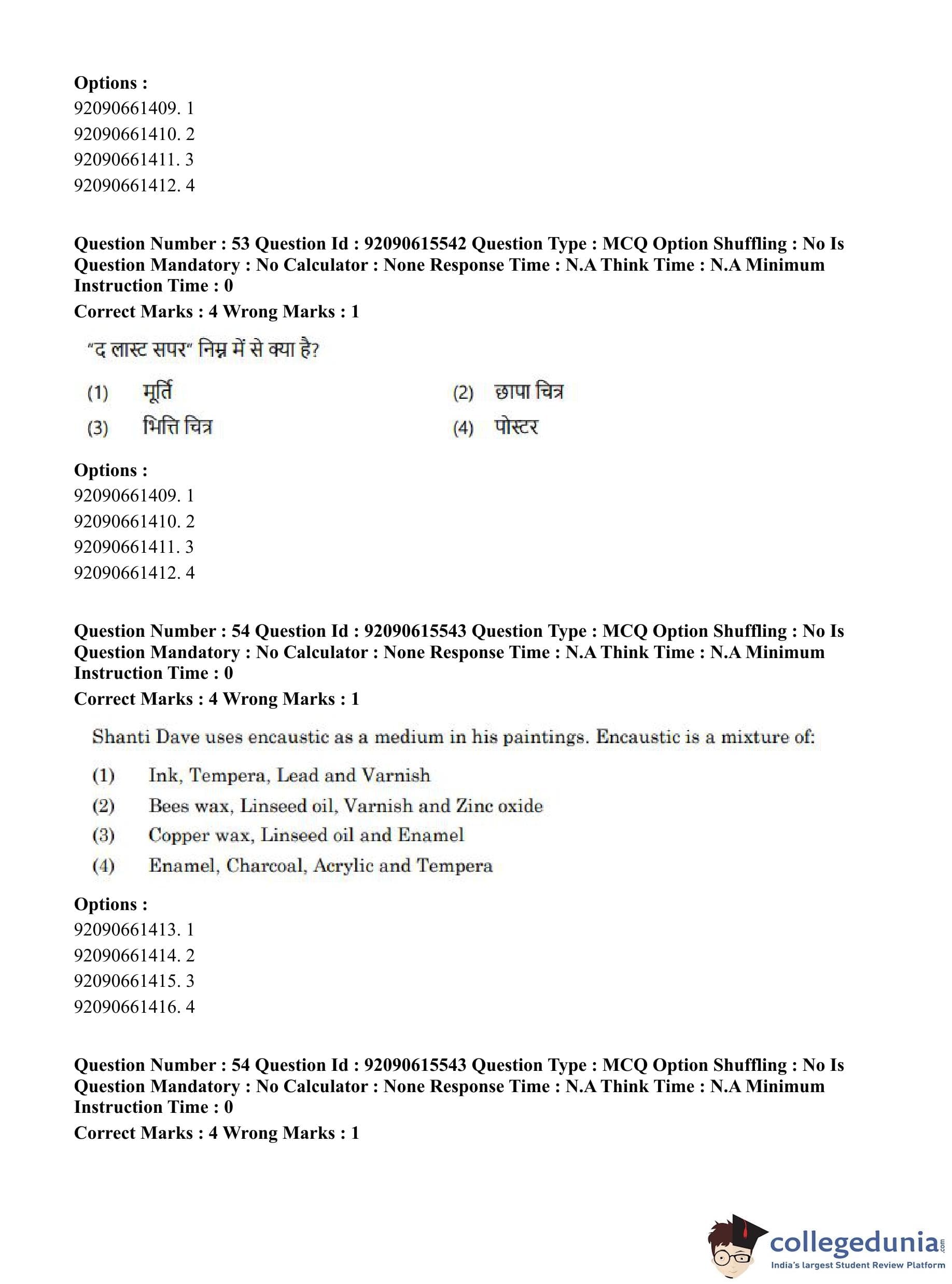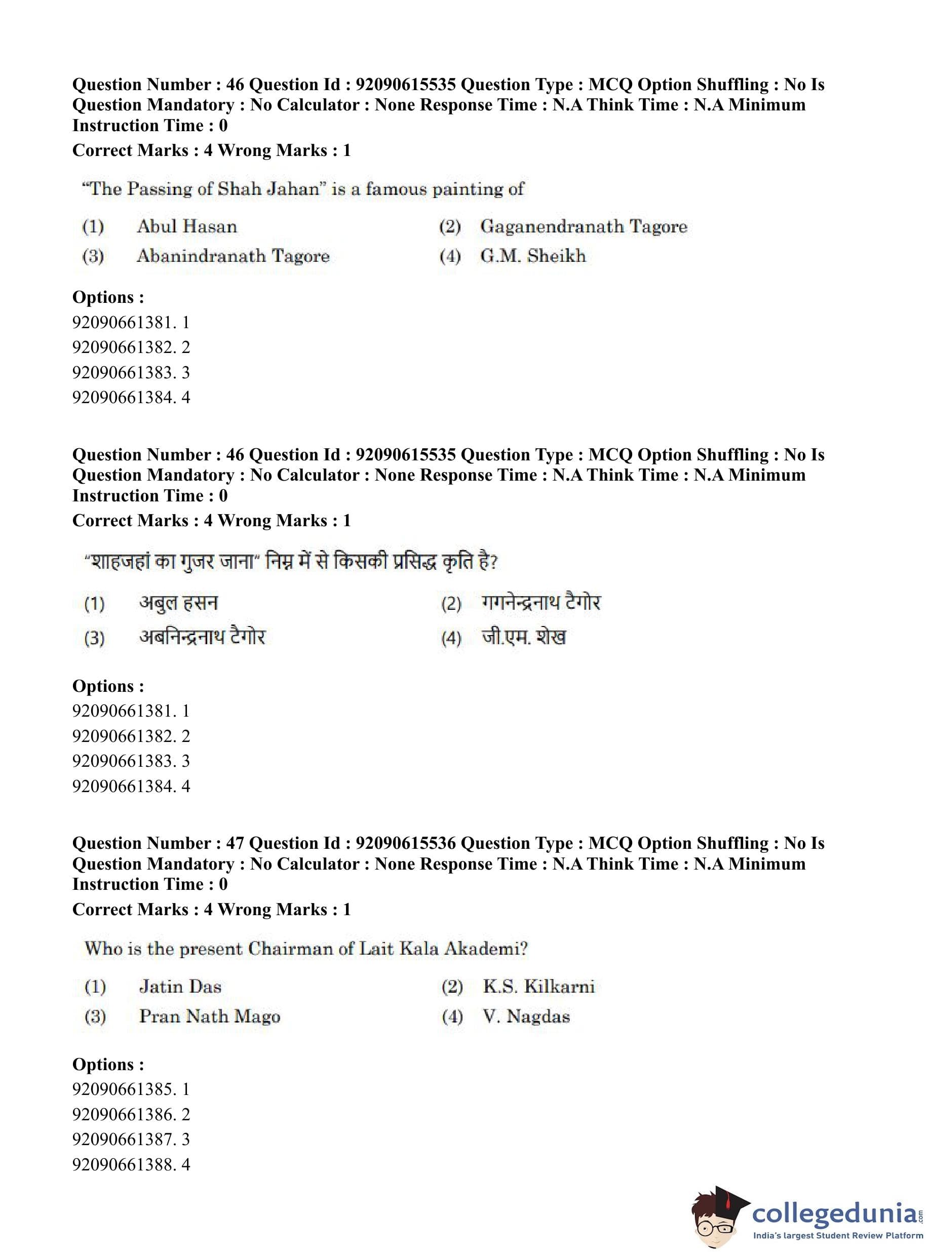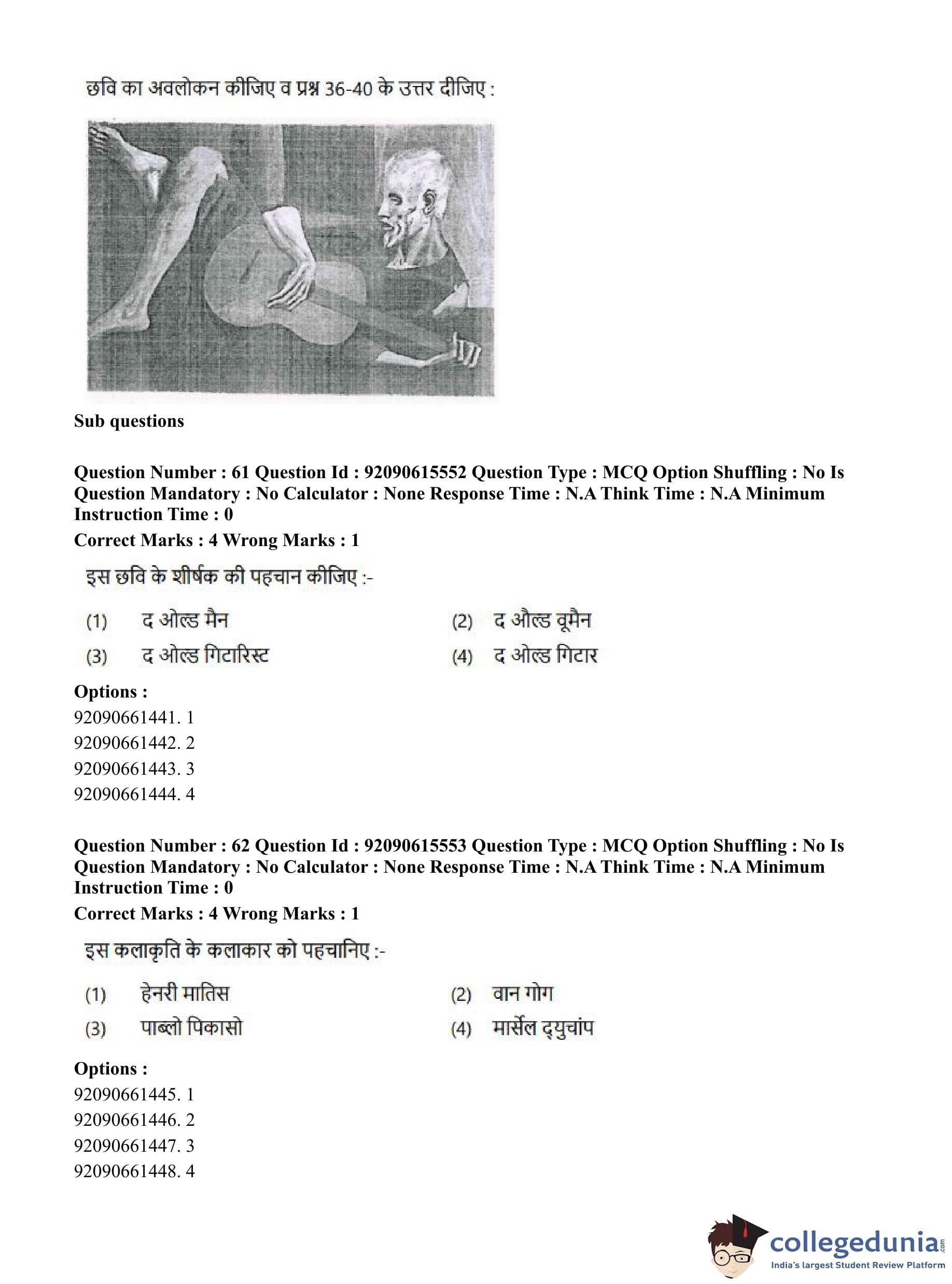 CUET PG 2023 Fine Arts Question Paper in Hindi (June 12 - Shift 3)