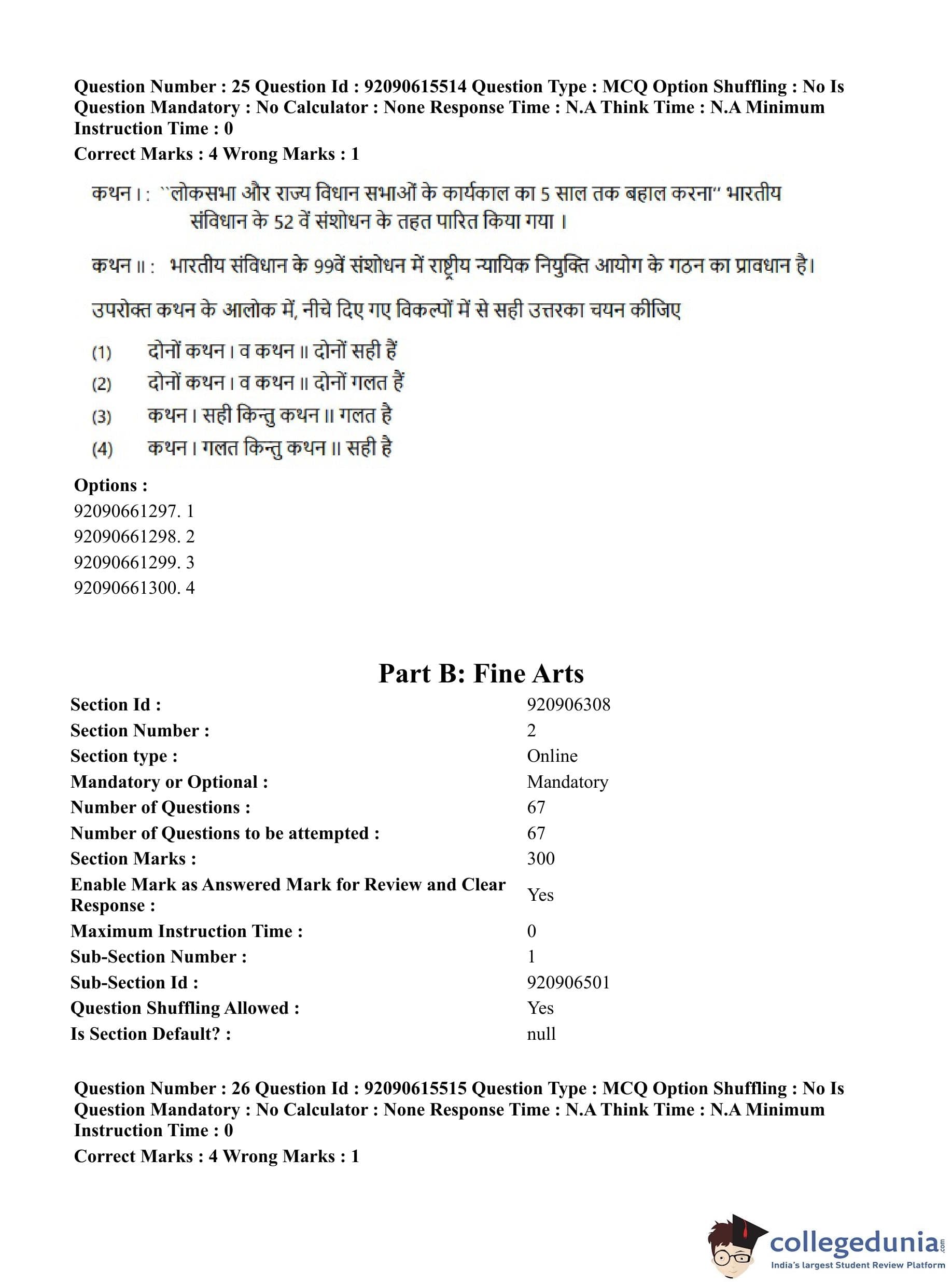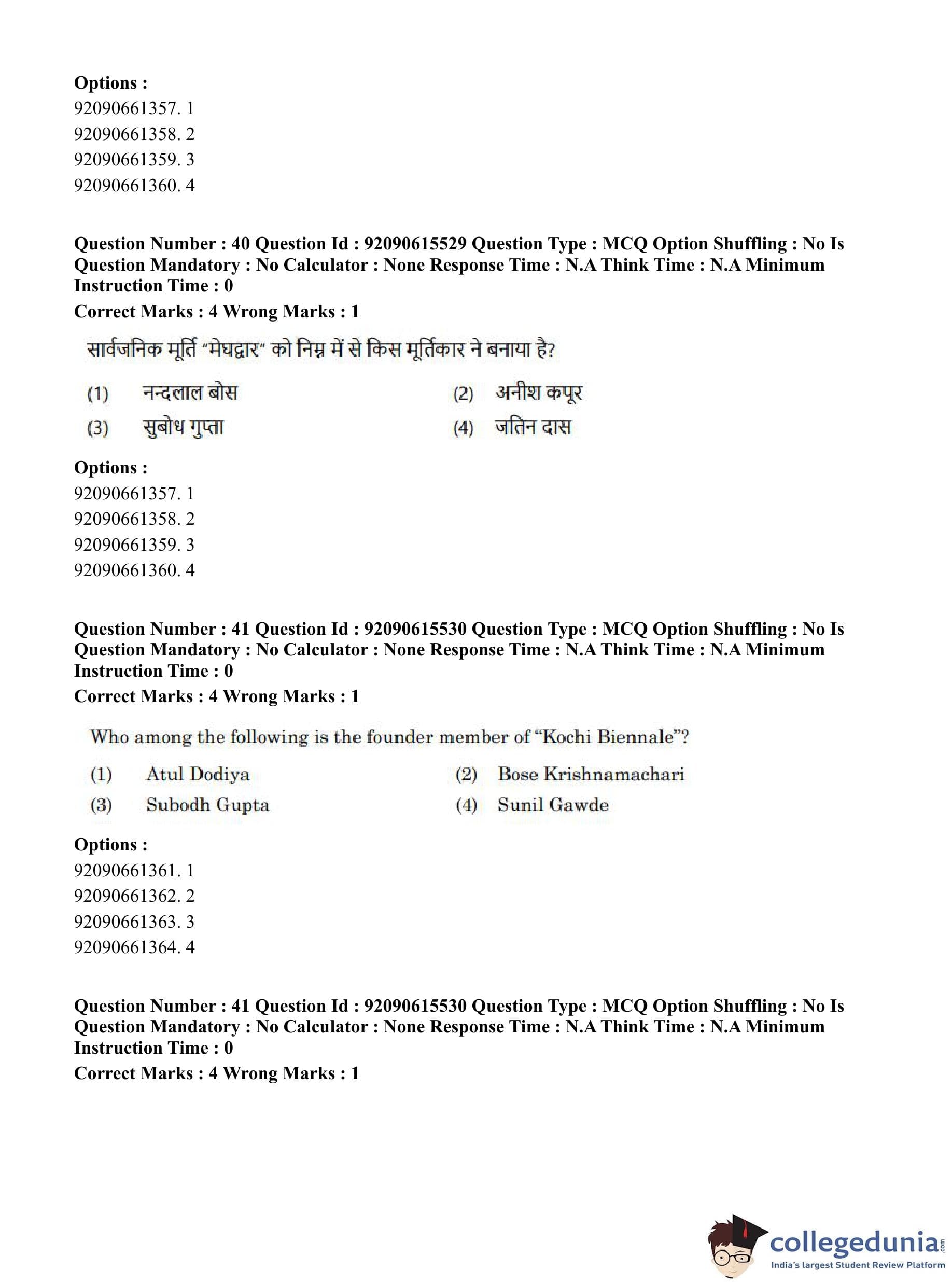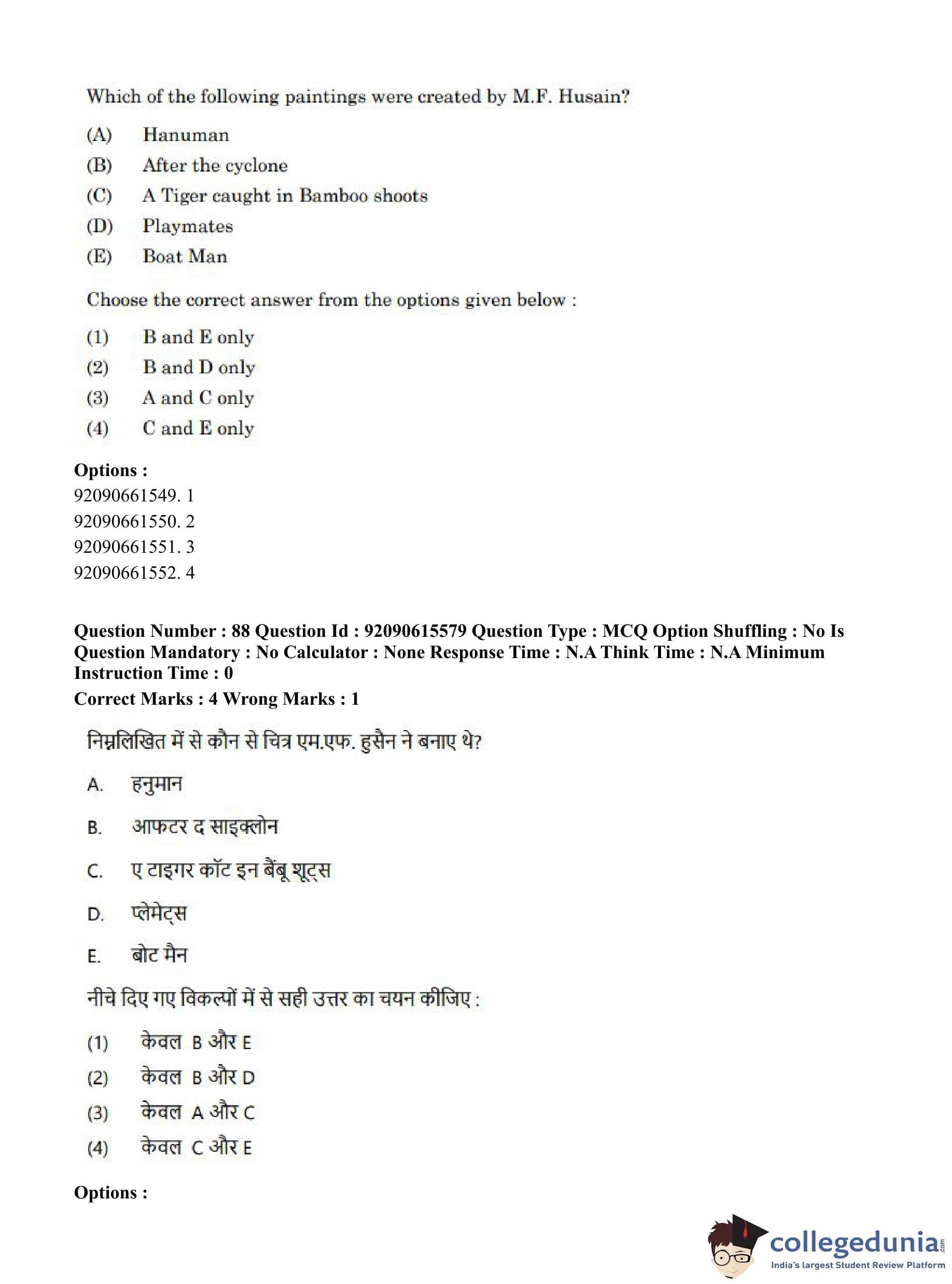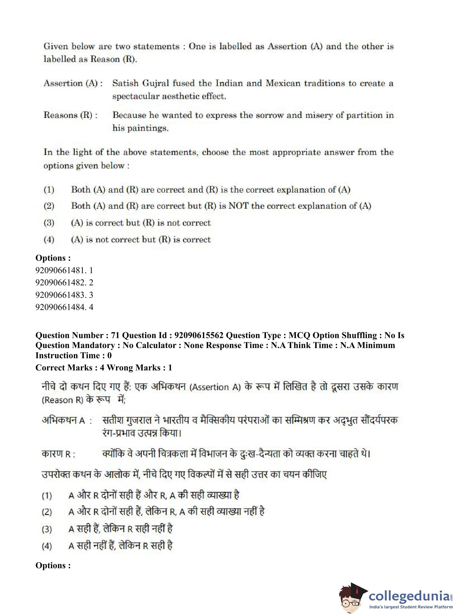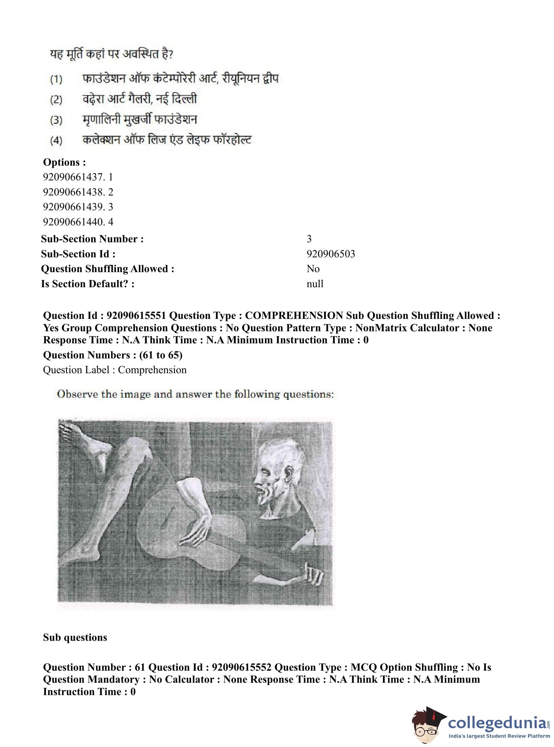 CUET PG 2023 Fine Arts Question Paper in Hindi (June 12 - Shift 3)