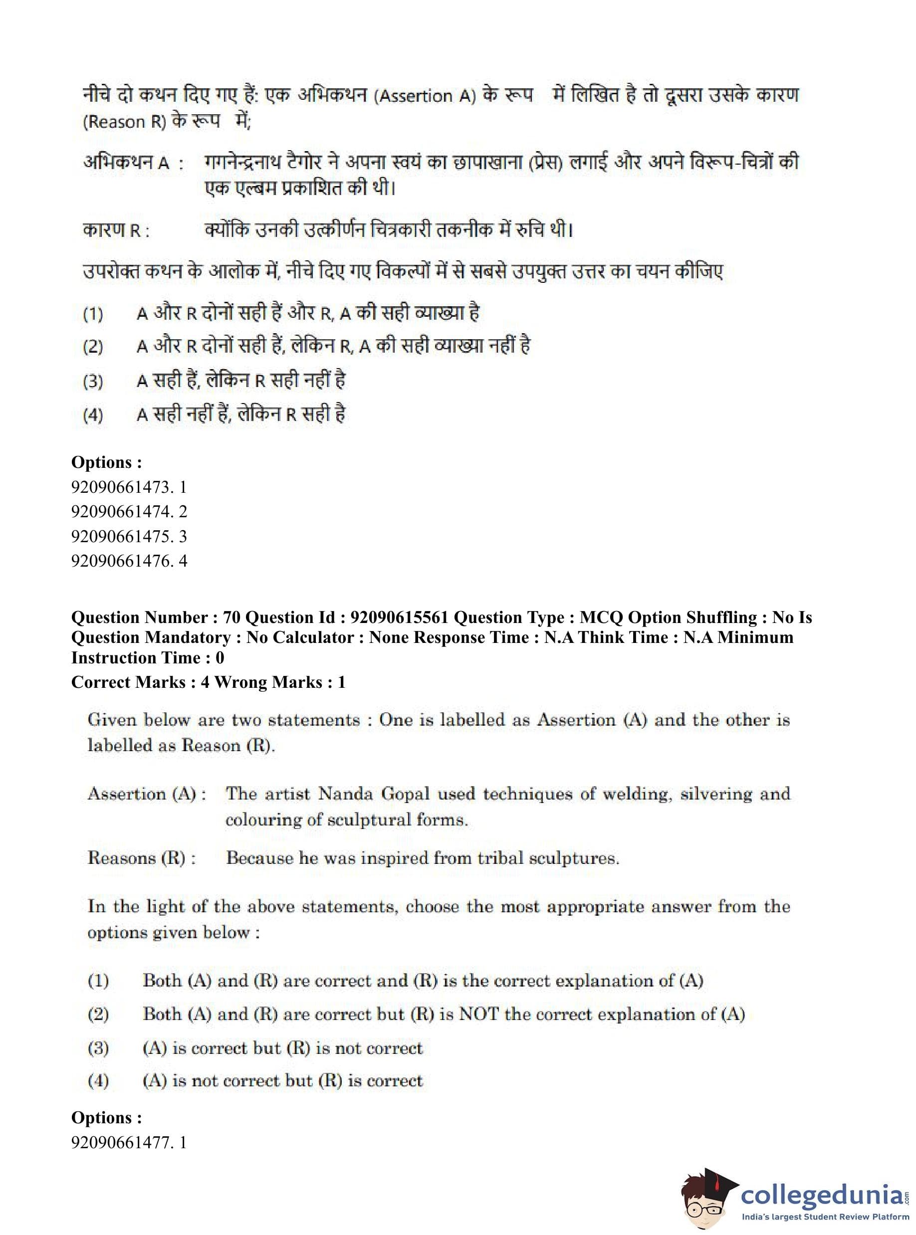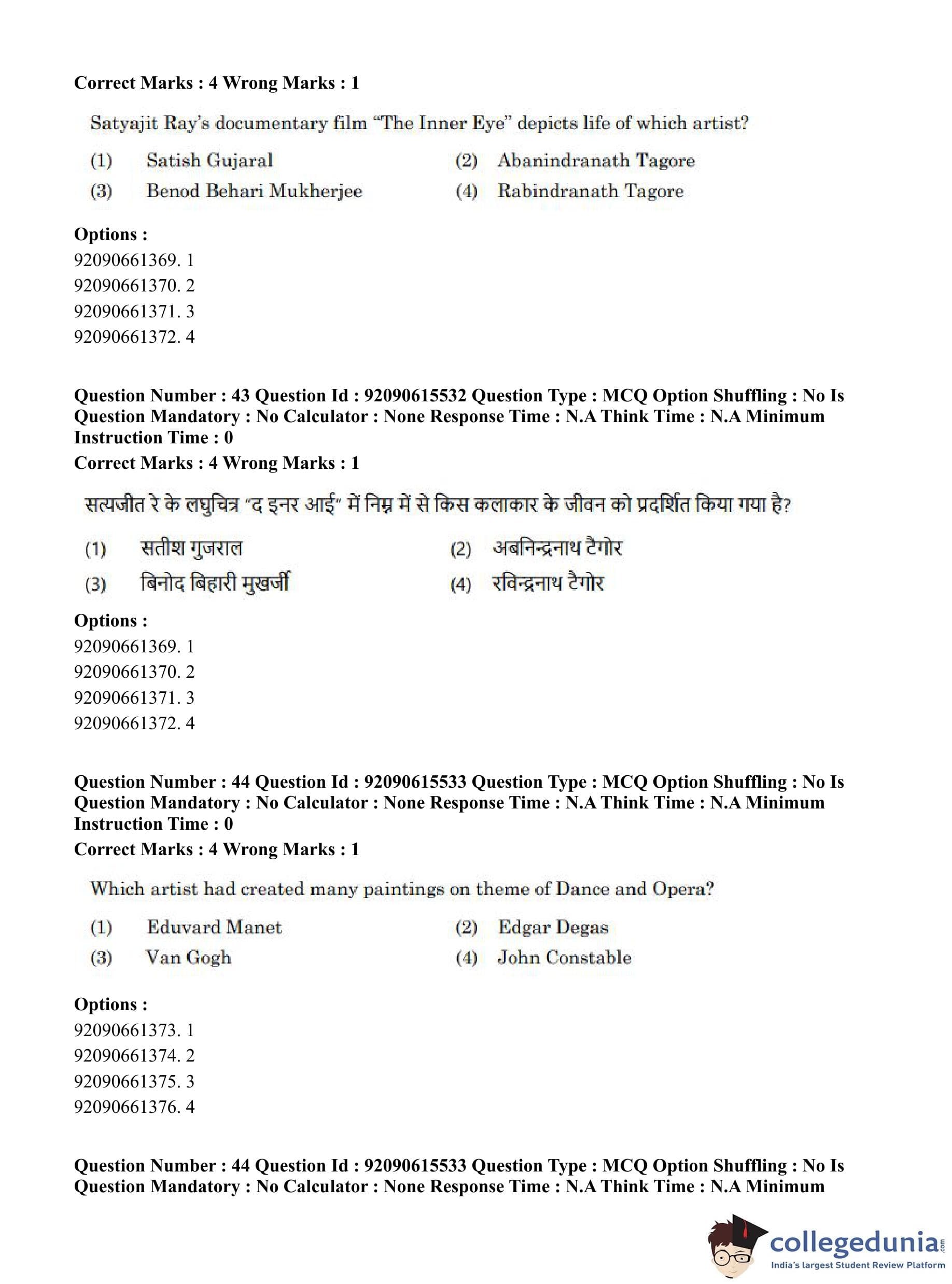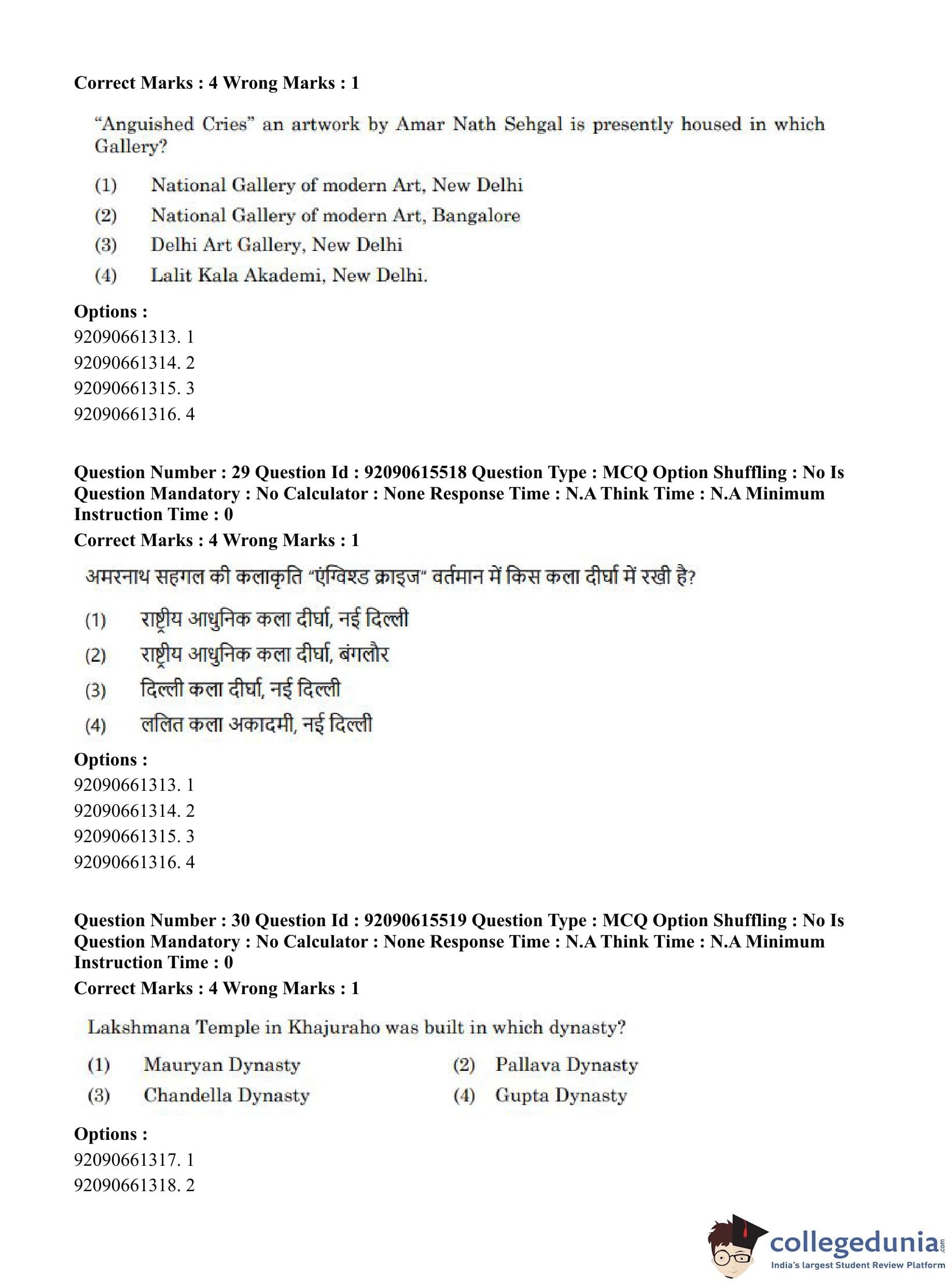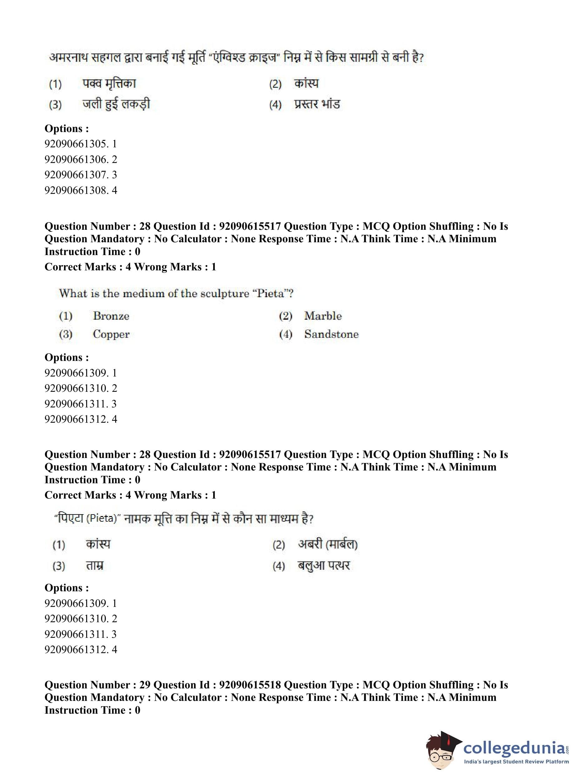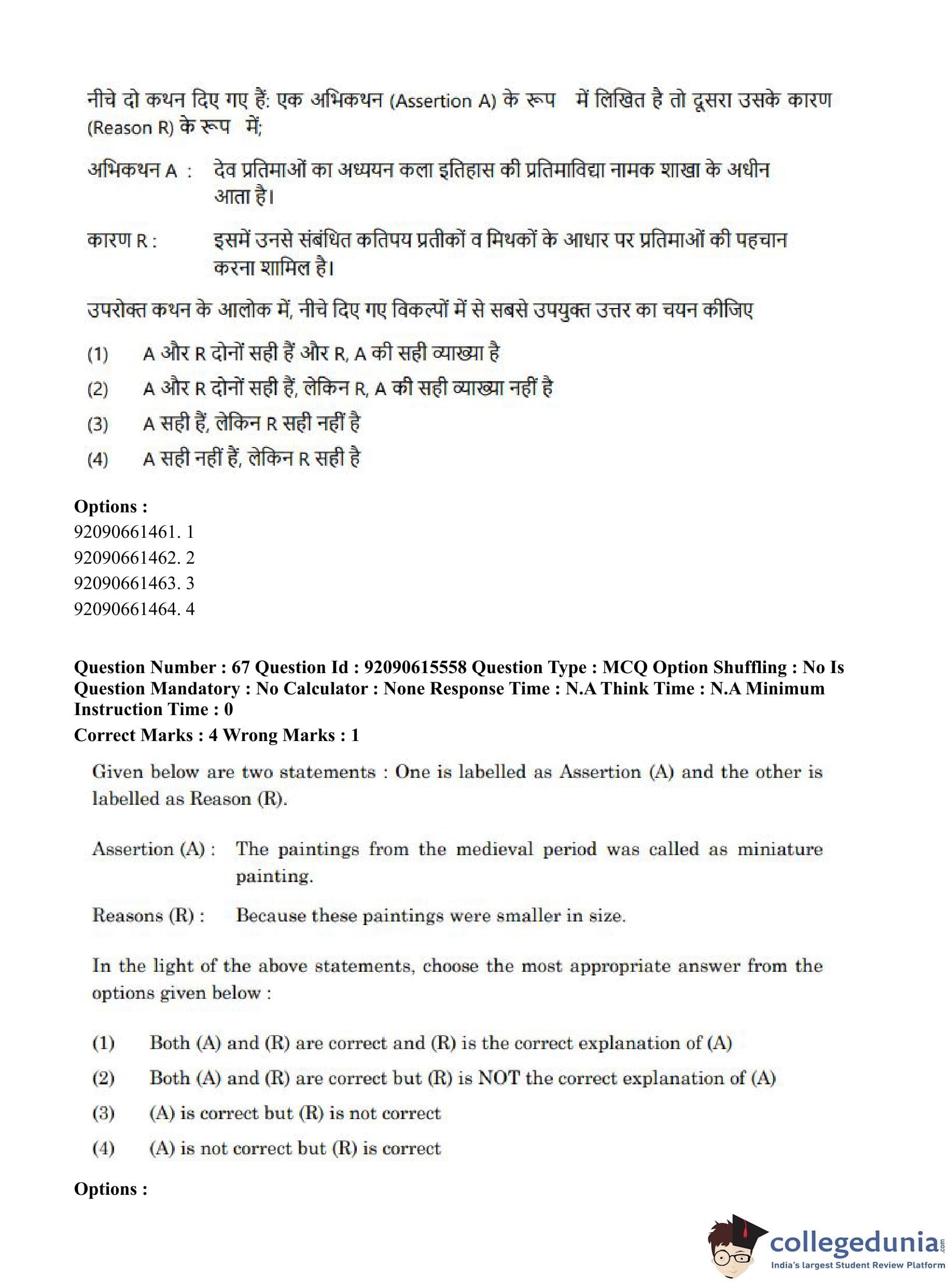 CUET PG 2023 Fine Arts Question Paper in Hindi (June 12 - Shift 3)