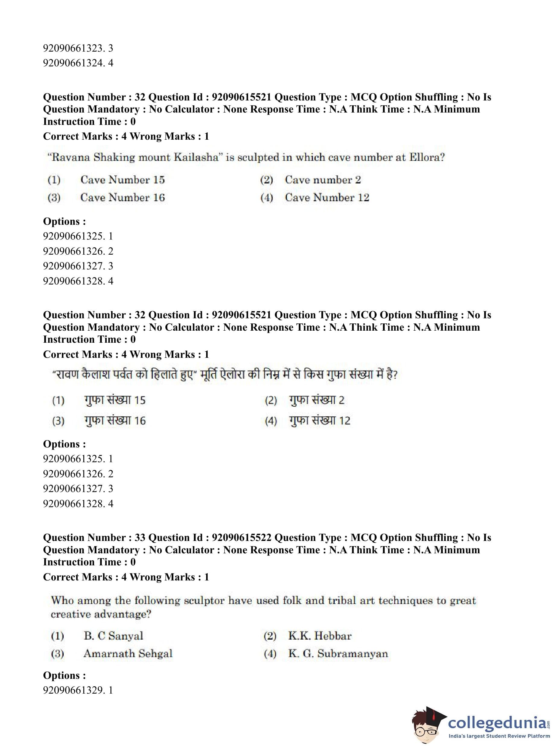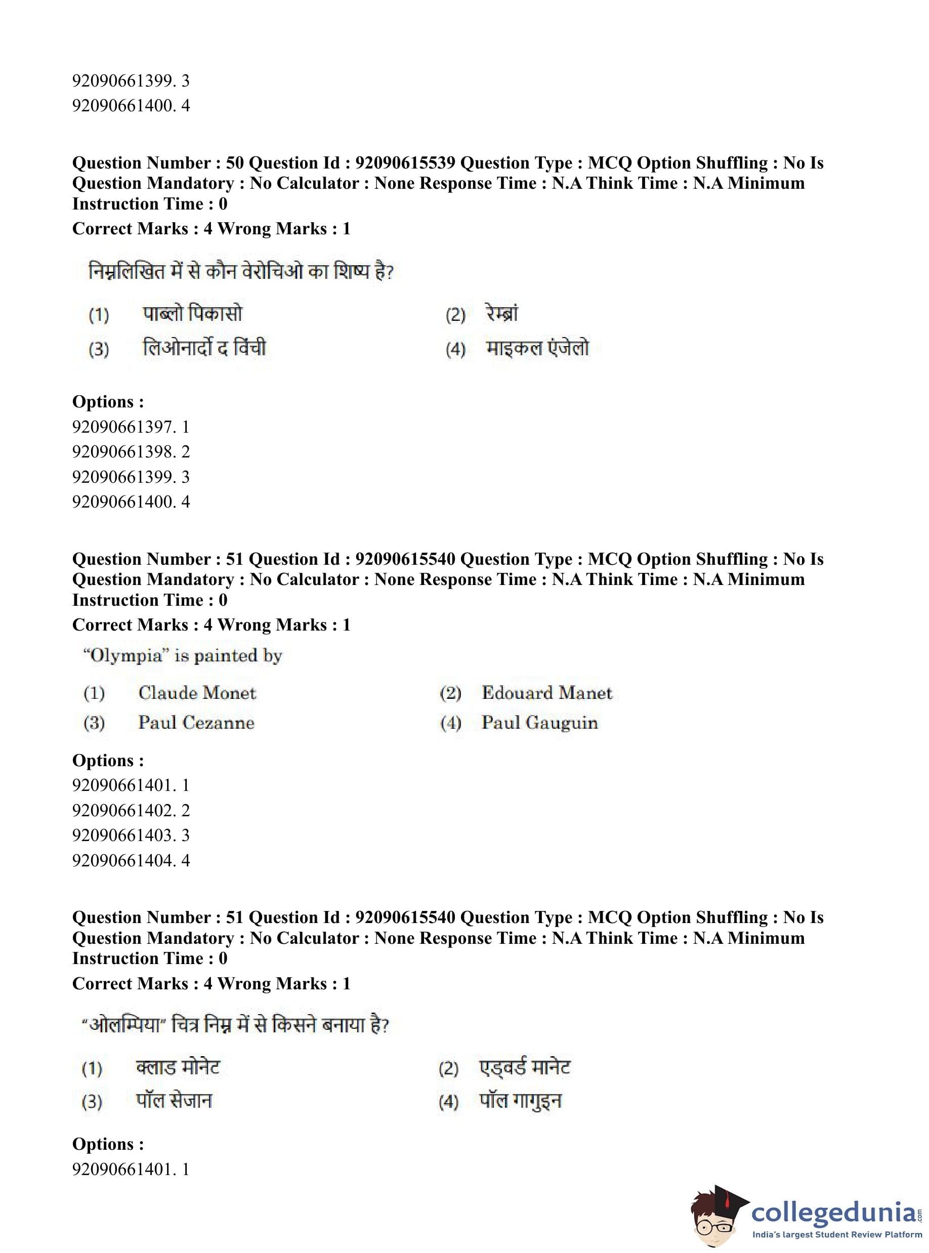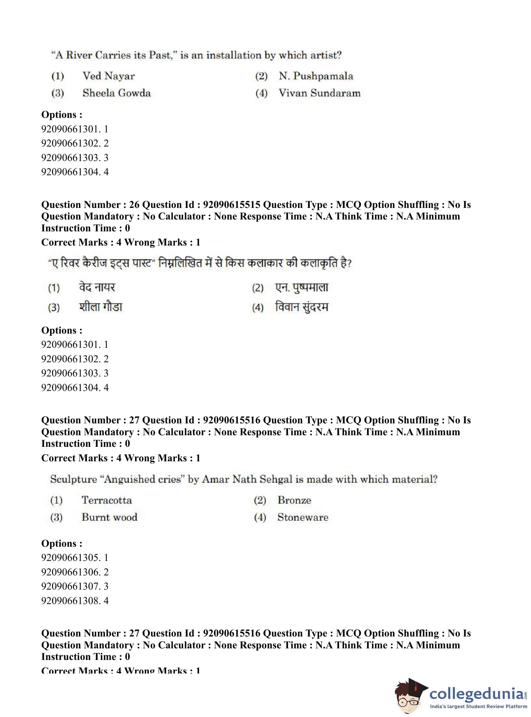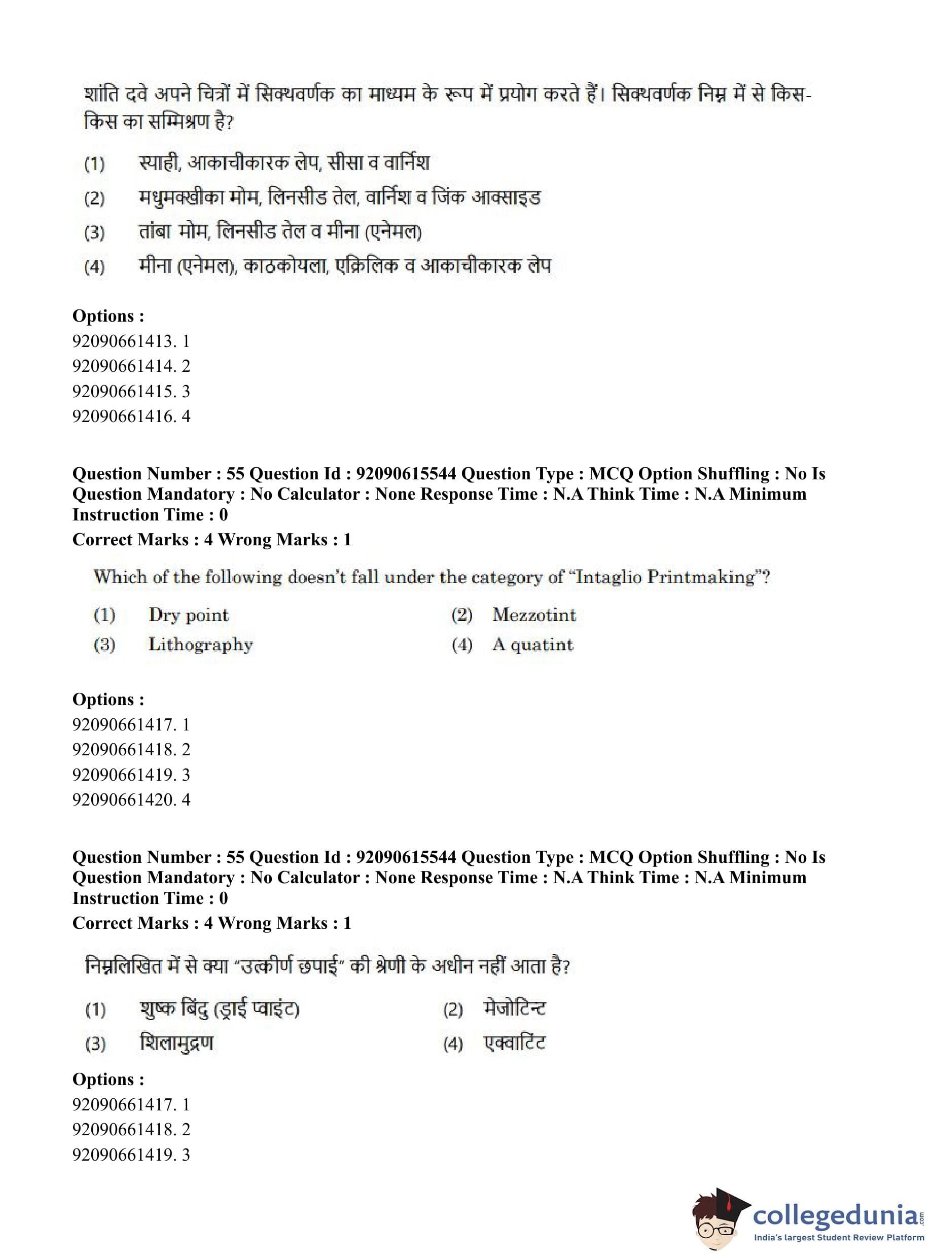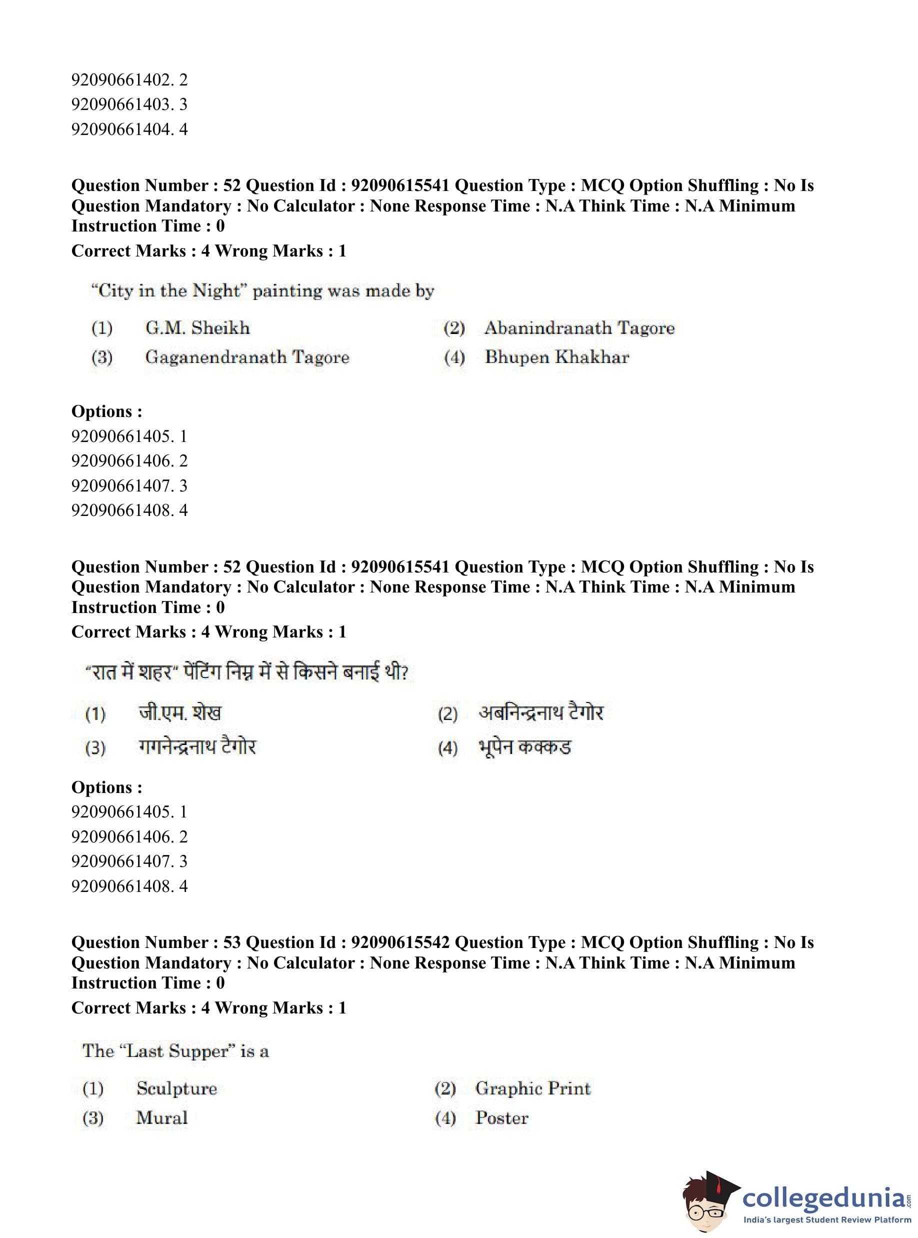 CUET PG 2023 Fine Arts Question Paper in Hindi (June 12 - Shift 3)