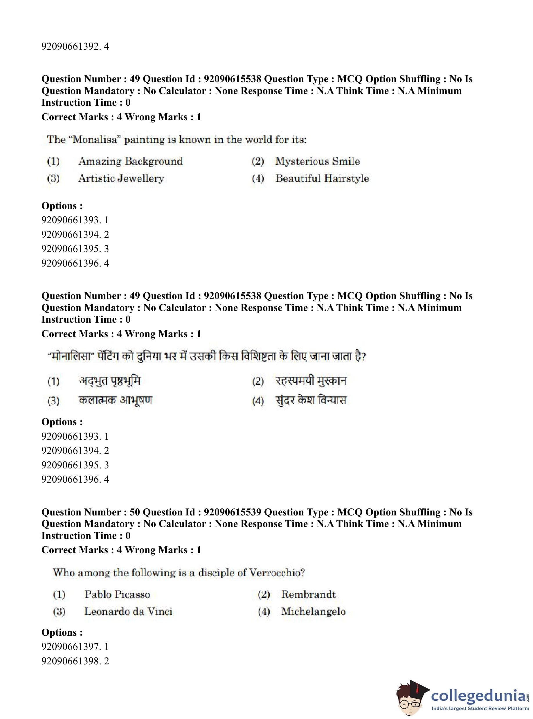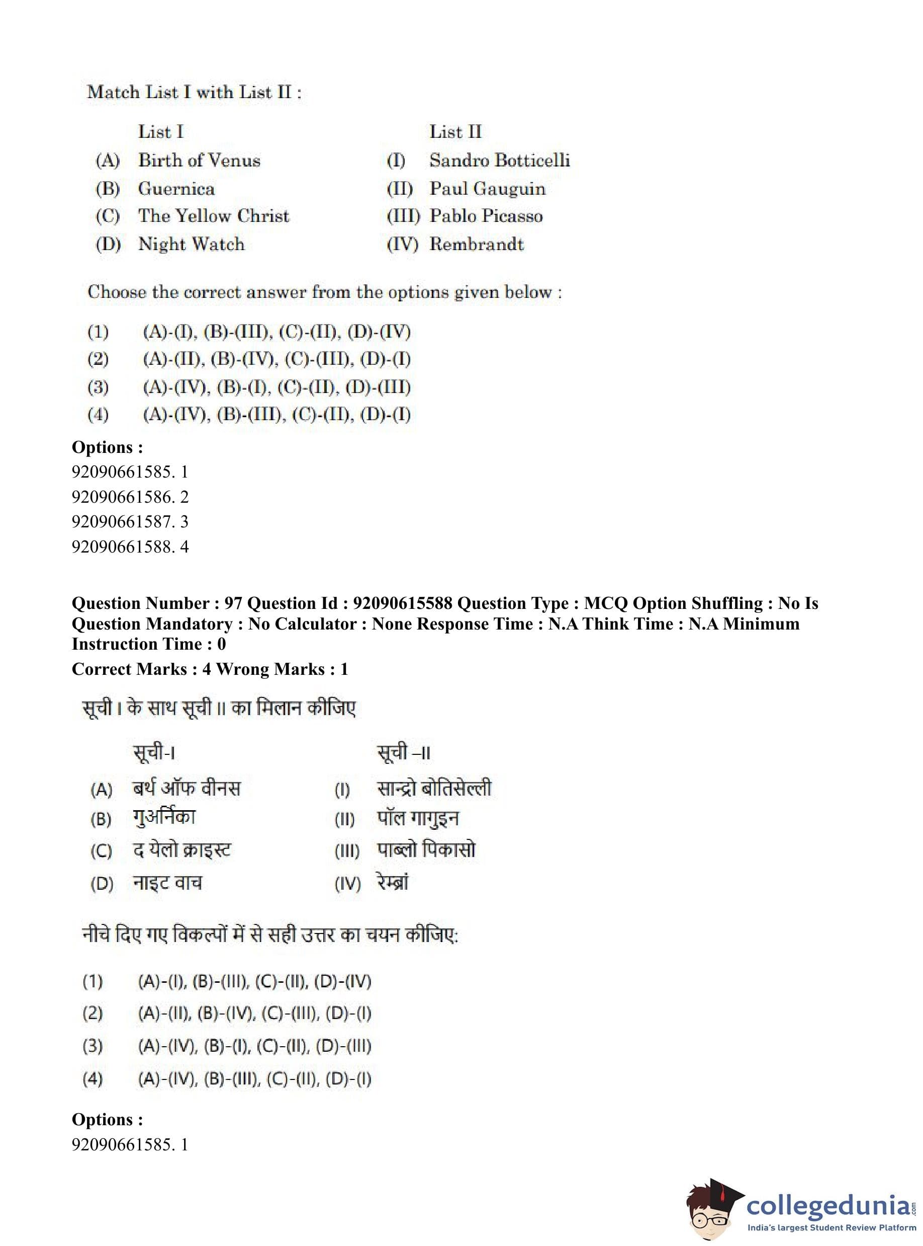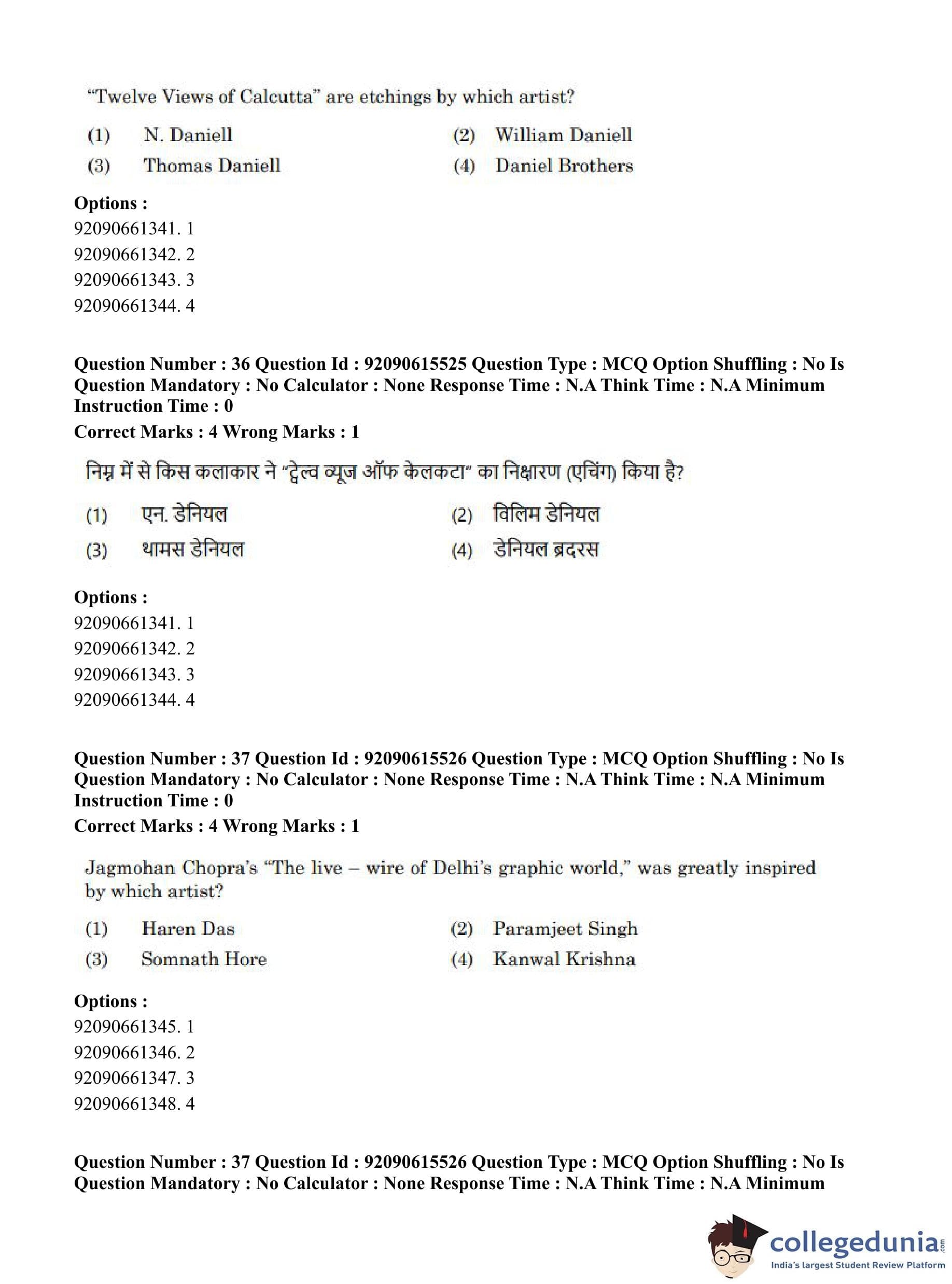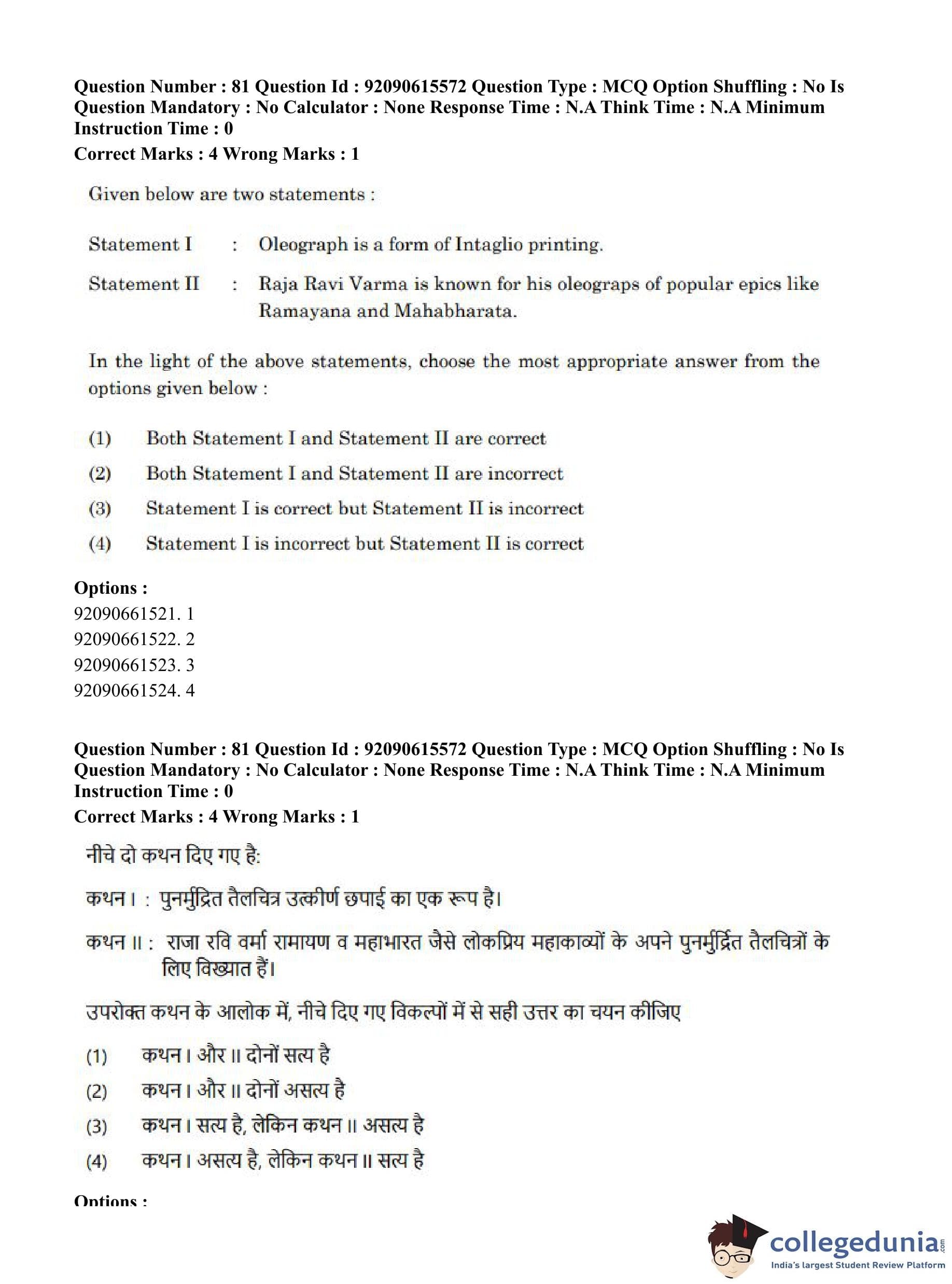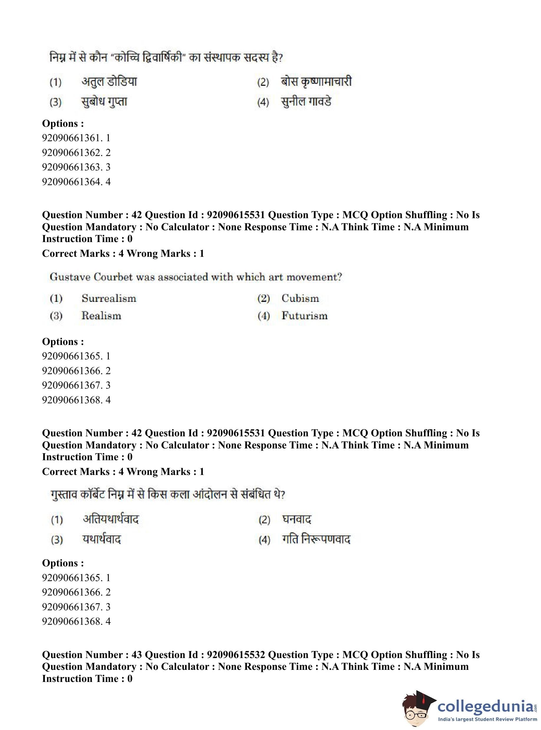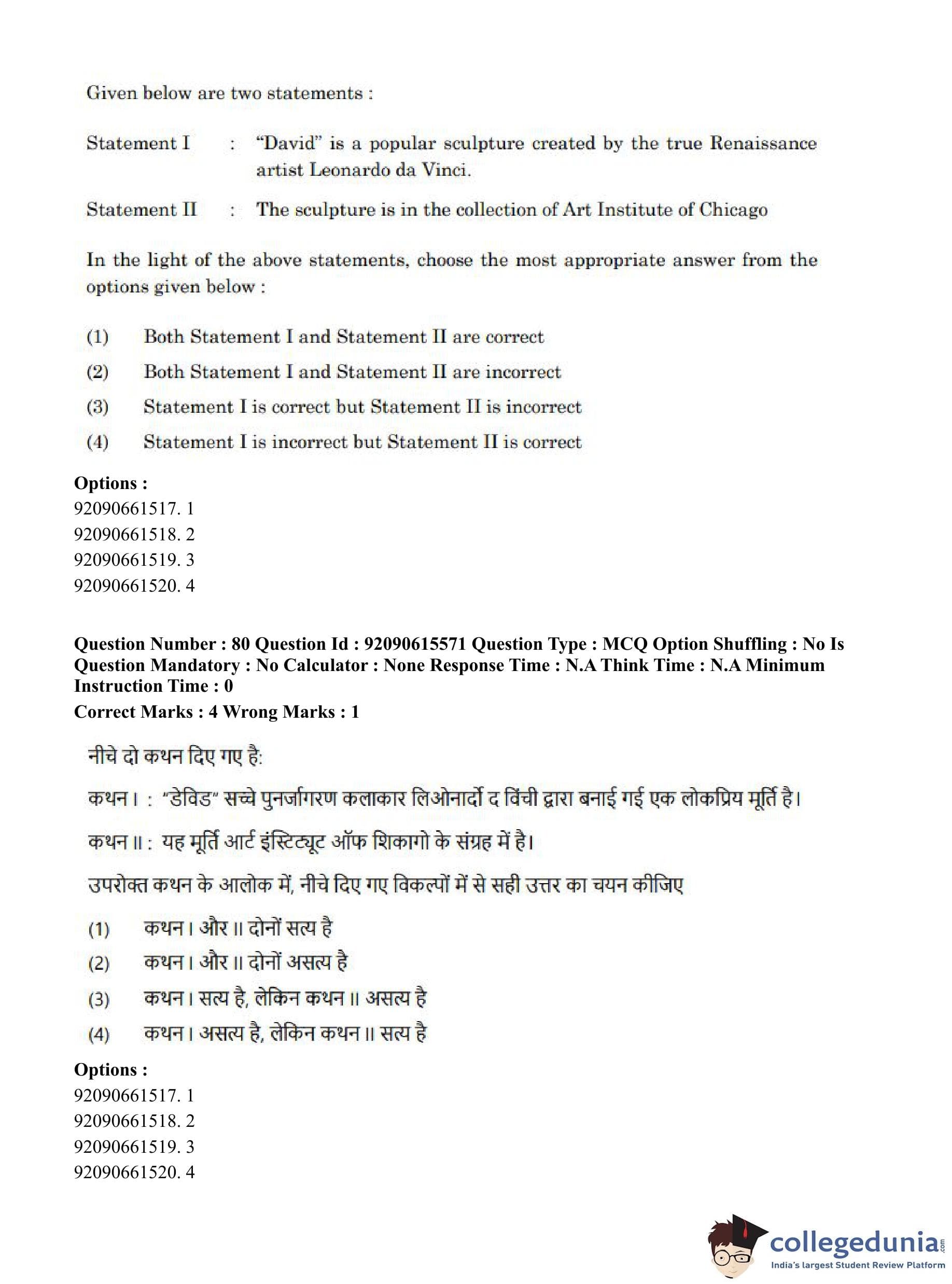CUET PG 2023 Fine Arts Question Paper in Hindi (June 12 - Shift 3)